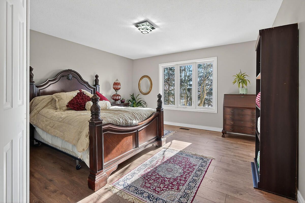 Extraordinary opportunity in sought after Old Kilworth, where privacy, nature, & quality come together in a way that is nearly impossible to find in today's market of small lots & quick builds. This 4000 sq ft mostly finished above grade approx. (including lower-level walk-out) custom built Rawlings ranch backs onto a breathtaking expanse of forest & open field, offering a wide, uninterrupted vista of rainbows, summer storms, & spectacular autumn colour. Designed for those who crave space, serenity, & connection to nature, this home is ideal for bird watchers, dog walkers, nature enthusiasts, multi generational families, or anyone seeking the option of a separate rental suite to help offset mortgage costs. Oversized windows & 10 ft ceilings flood the home with natural light. Large deck off kitchen overlooks forest & fields - the perfect spot for morning coffee or evening sunsets. Professionally landscaped with a large fishpond, brook, & waterfall, creating a peaceful backyard sanctuary. Spacious, flexible living - currently 4 bedrooms (could be more) - ideal for large families, guests, multi generational living or income-generating rental. Expansive lower family room, rough-in for a bar or kitchenette. Bright, open kitchen with quartz countertops, maple cabinetry, & new stainless appliances. Unbeatable Location - a true community-oriented neighbourhood with mature trees, quiet streets, & small town feel. Just steps from: Pickleball, tennis, basketball, baseball, & soccer facilities, the Thames River for hiking, kayaking, canoeing, & fishing. Excellent schools & quick access to the 402. This home offers size, privacy, nature, community, & craftsmanship. With extremely limited inventory in Old Kilworth, properties like this are rare. Whether you're seeking a peaceful nature retreat, a spacious multi generational home, or a property with income potential, this home delivers it all. Experience the beauty, privacy, & possibilities of this remarkable Kilworth sanctuary.