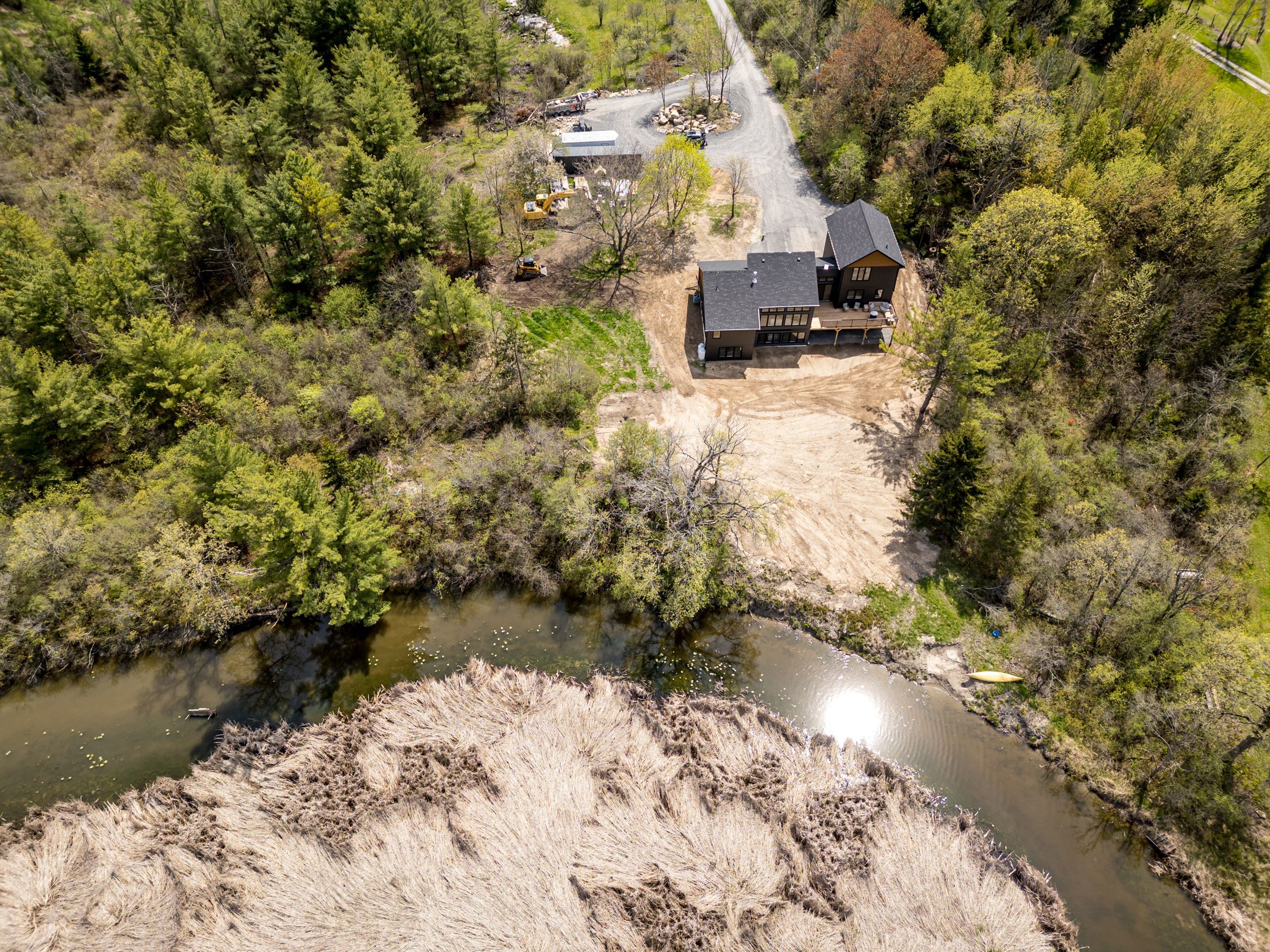 Discover this extraordinary 4-bedroom, 3-bathroom residence, beautifully renovated and set on over 30 acres of breathtaking land along Grass Creek. A brand new septic system installed in 2025 adds peace of mind to this already exceptional property. Step inside to soaring vaulted ceilings and an open concept layout filled with natural light. The stunning living room welcomes you with a cozy propane fireplace and rustic posts that seamlessly transition into a grand dining area-spacious enough to host gatherings of 10 or more, creating the perfect setting for lively conversations and unforgettable moments. The remarkable kitchen is a true culinary haven, featuring two toned cabinetry, gleaming white countertops, built in appliances, and an impressive pantry complete with double wall ovens and a wine fridge. This thoughtfully designed space inspires creativity and effortless entertaining. The main floor continues with a convenient laundry room, two generous bedrooms with vaulted ceilings, and a luxurious 4 piece bathroom showcasing a glass shower and deep soaker tub for ultimate relaxation. The second floor is dedicated entirely to the primary suite-a private retreat offering a bright bedroom, a spacious walk in closet, and an exquisite 4 piece ensuite with double sinks and a rejuvenating glass shower. The lower level reveals an inviting family room with a fireplace and a wall of windows framing enchanting views of the creek. Two additional spacious bedrooms, a 3 piece bathroom, and a dedicated gym space complete this versatile level, supporting a lifestyle of comfort and wellness. Step outside to an expansive deck overlooking the serene waterfront-perfect for entertaining, unwinding, or simply soaking in the beauty of nature. With Grass Creek Park just minutes away and downtown Kingston only a 10 minute drive, convenience and tranquility come together seamlessly. This property is a rare treasure-luxury, privacy, and natural beauty all in one extraordinary package.
