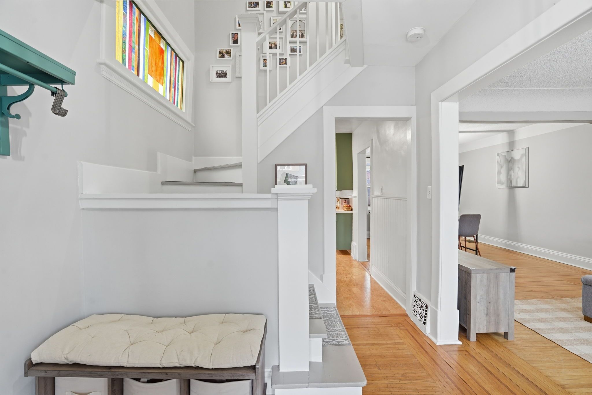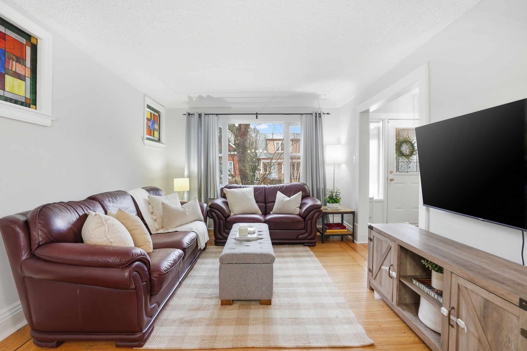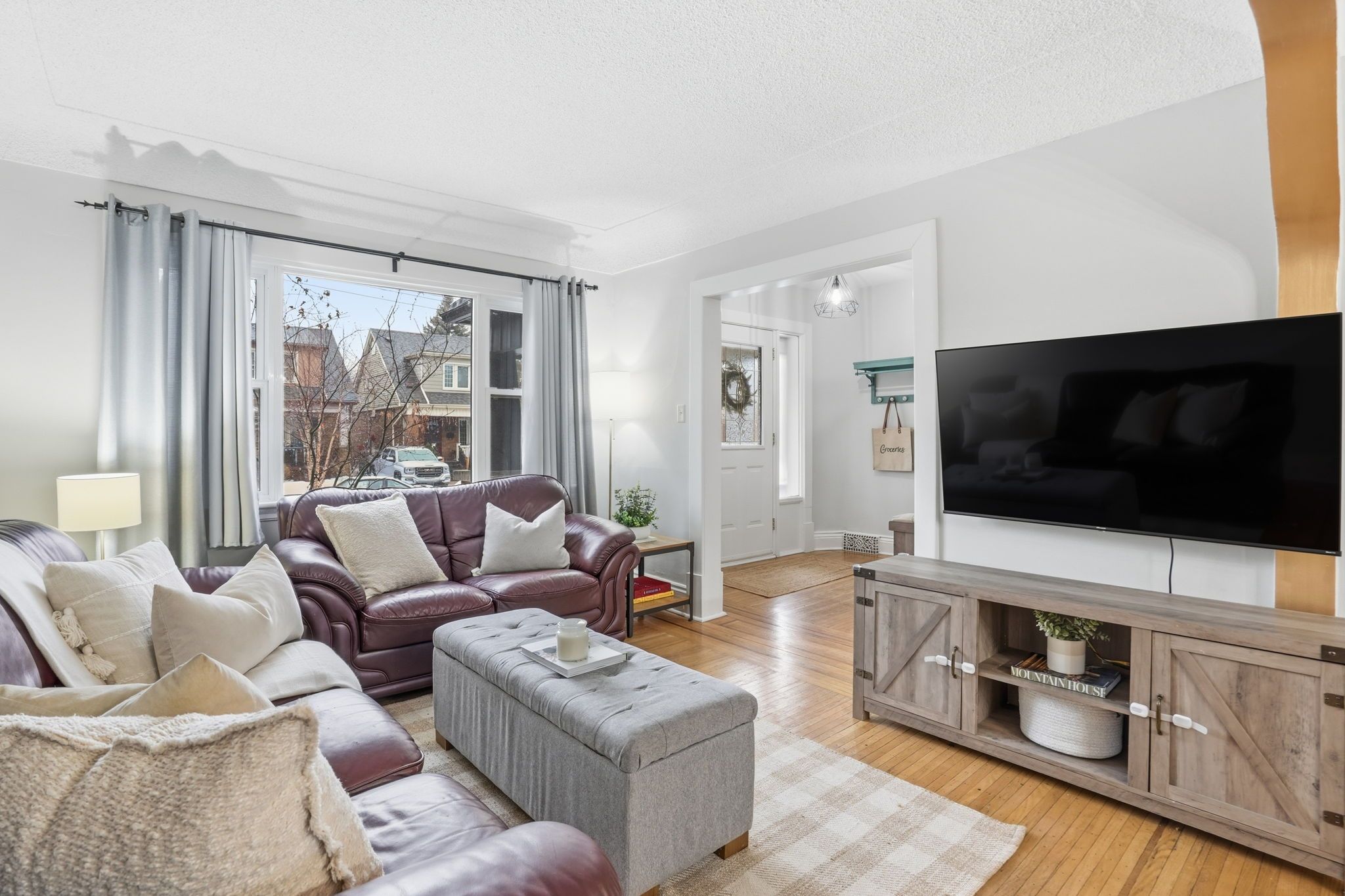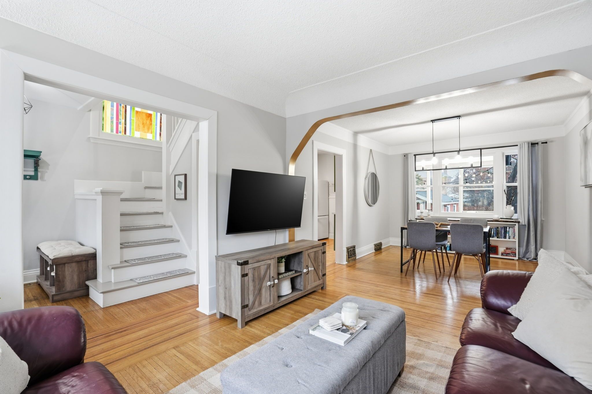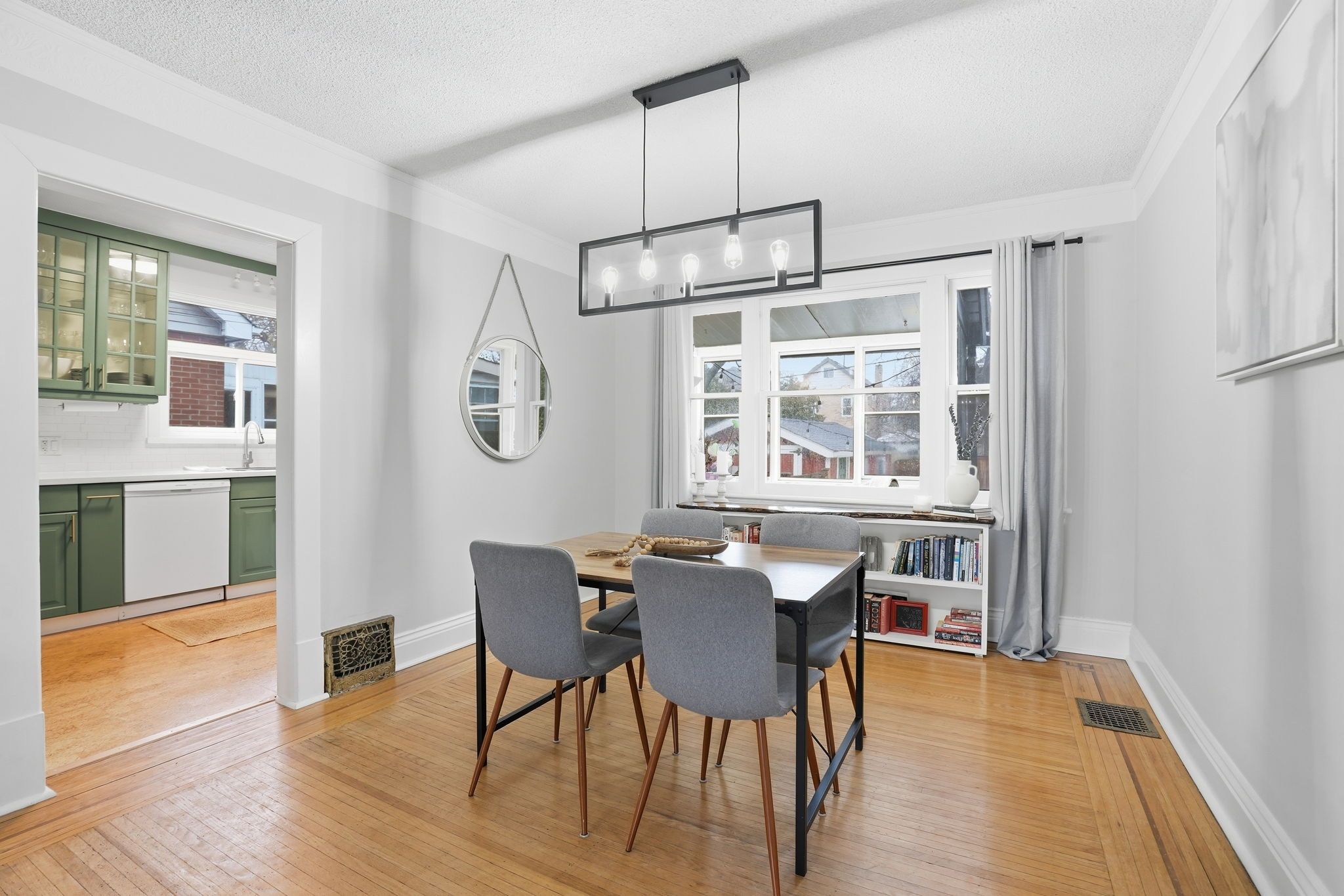 Welcome to this bright, character-filled 3-bedroom home in an unbeatable location just steps to Gage Park and vibrant Ottawa Street! Offering a beautiful blend of charm and function, this spacious home features original inlay hardwood floors on the main level, updated exterior stained glass windows throughout, and a full dining room perfect for hosting family and friends. The cozy sunroom just off the kitchen is the ideal morning coffee spot, and the vintage gas stove works like a charm for your baking and cooking needs! Downstairs you'll find a fully finished basement (2022) providing additional living space/work space/gym or a cozy hang out spot along with 2pc powder room and laundry for convenience & ample storage. Step outside to a generously sized backyard made for entertaining, complete with a HUGE detached shed/workshop with hydro - perfect for hobbyists, storage, or creative projects. Additional updates include furnace (approx. 2023), updated waterline, back flow valve, and private parking for one vehicle via mutual drive with wonderful neighbouring homes on either side.This home is full of charm, warmth, and opportunity in one of Hamilton's most sought-after neighbourhoods.