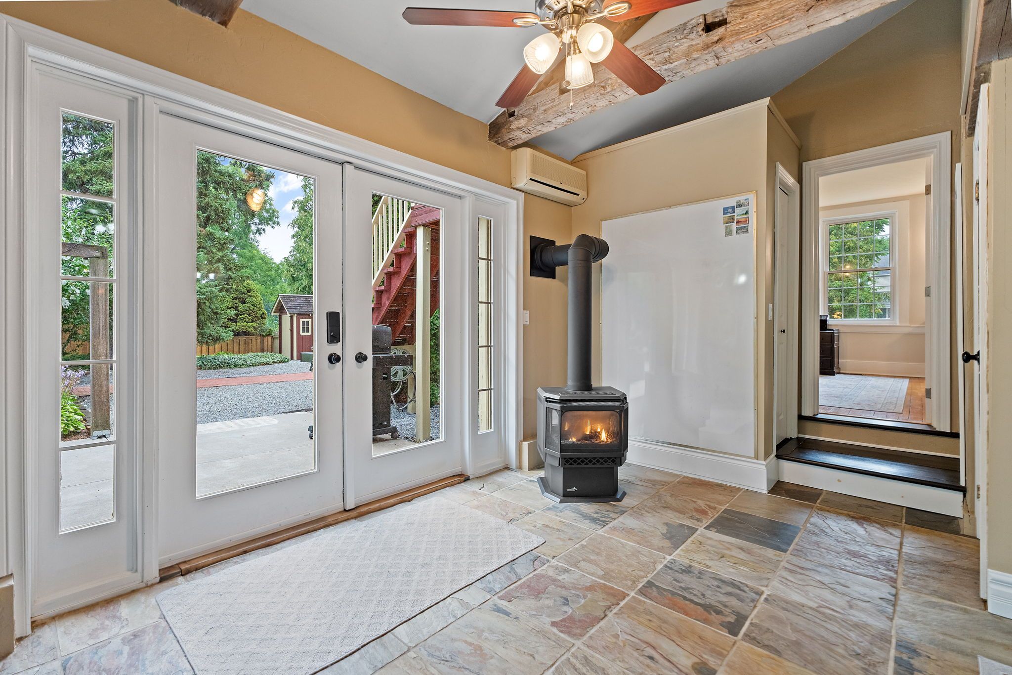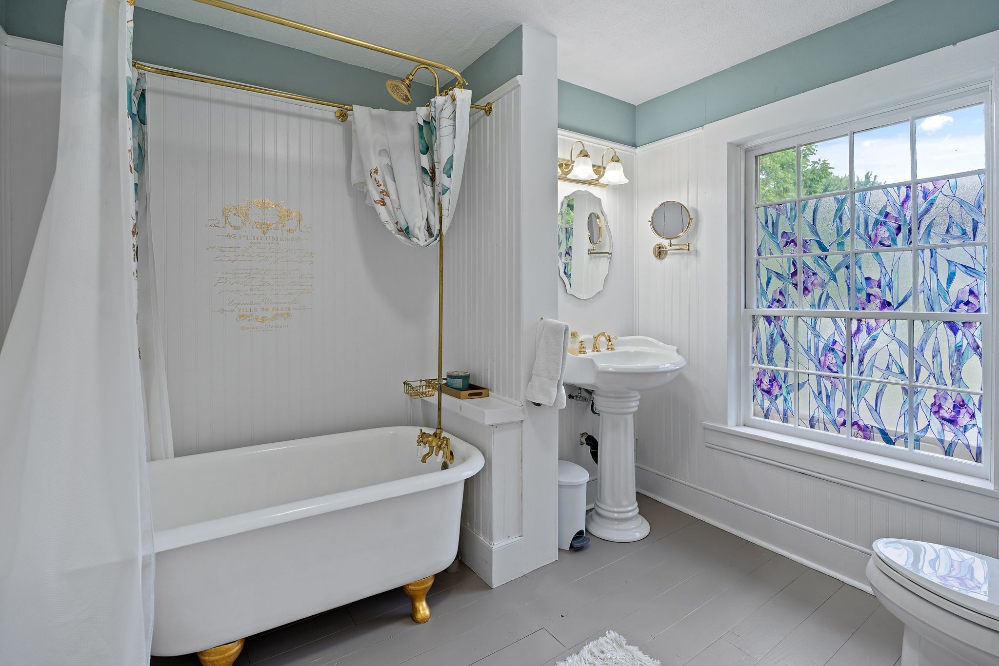 Step into The Schoolmasters House, a beautifully preserved c.1818 residence that blends historic charm with modern comfort in the heart of Old Town Niagara-on-the-Lake. Set on a generous 144 x 104 ft lot with landscaped gardens and a tranquil fish pond. With four bedrooms, three of which include private ensuites, and two additional full bathrooms, this former Bed and Breakfast is ideal for extended families or rental use. Several bedrooms feature private entrances, making them perfect for guests or short-term stays. Original wide-plank wood floors run throughout the home there is no carpet while four wood-burning fireplaces and a gas fireplace add warmth and character to every space. The main floor includes a spacious primary bedroom with ensuite, a second full bathroom with a deep soaker tub, laundry, and a large family room that also offers space for a home office or hobby area. The chefs kitchen is outfitted with a professional gas stove, abundant prep surfaces, and generous storage. Meals can be served in the formal dining room or enjoyed casually at the large island with breakfast bar. Upstairs, you'll find two additional ensuite bedrooms one with private stairs and an exterior entrance alongside a fourth bedroom, another full bath, and a cozy sitting area. This multi-generational, multi-family home offers exceptional flexibility and income potential. The home also includes powered workshops, a garden shed, and a garbage shed. Major upgrades include a new cedar roof on the front (2021) and rear (2024), and updated furnace and central air in 2017. A heritage grant is available to assist with roofing on the addition along Gage Street. This is a rare opportunity to own a piece of Niagara-on-the-Lakes history, with timeless character and modern convenience just steps from the shops, dining, and charm of Old Town.