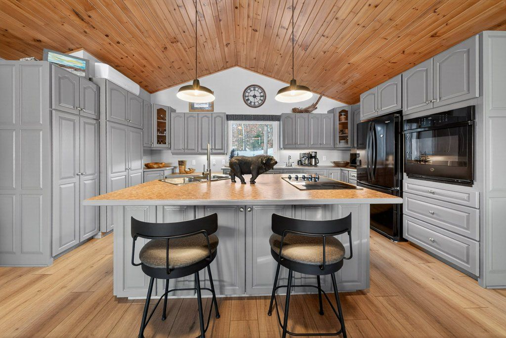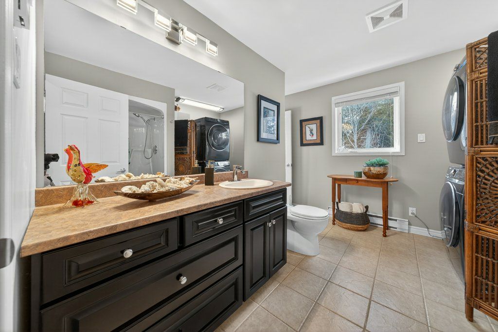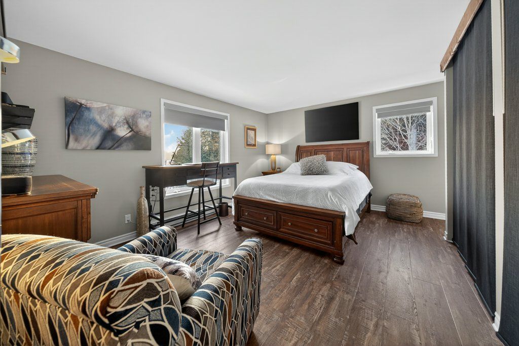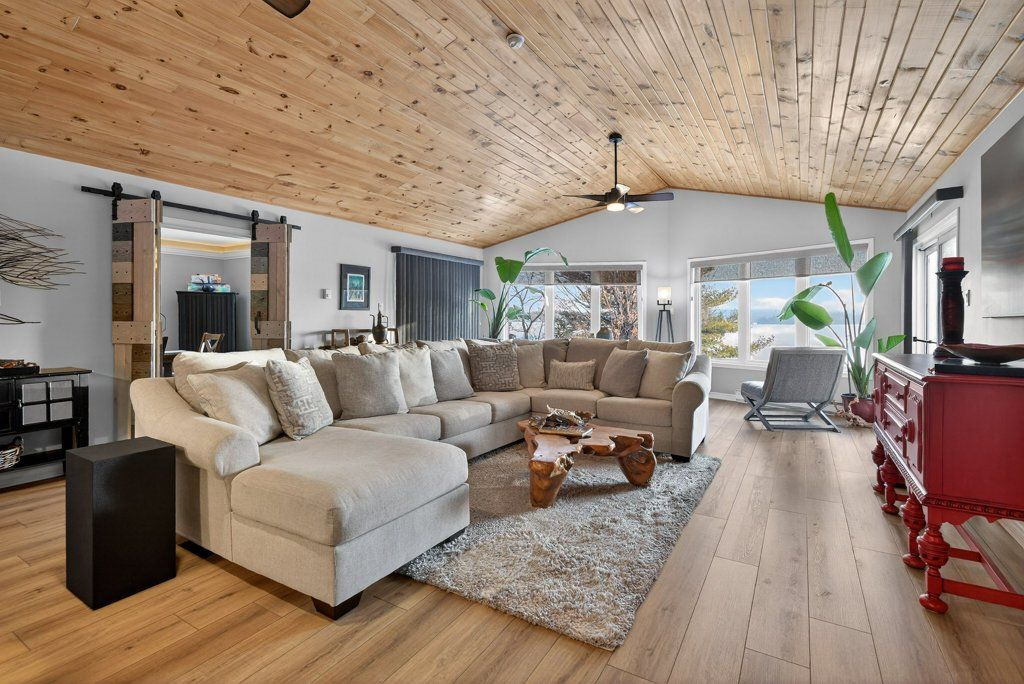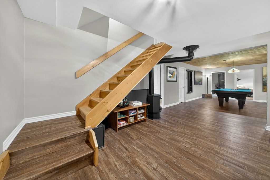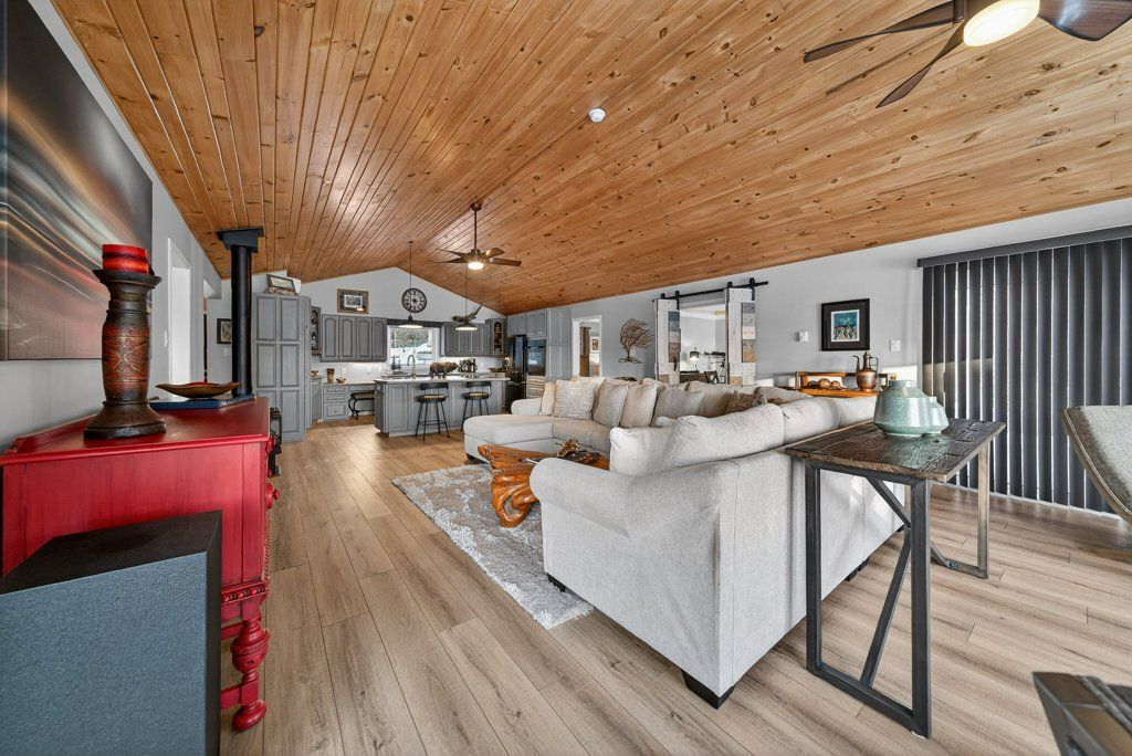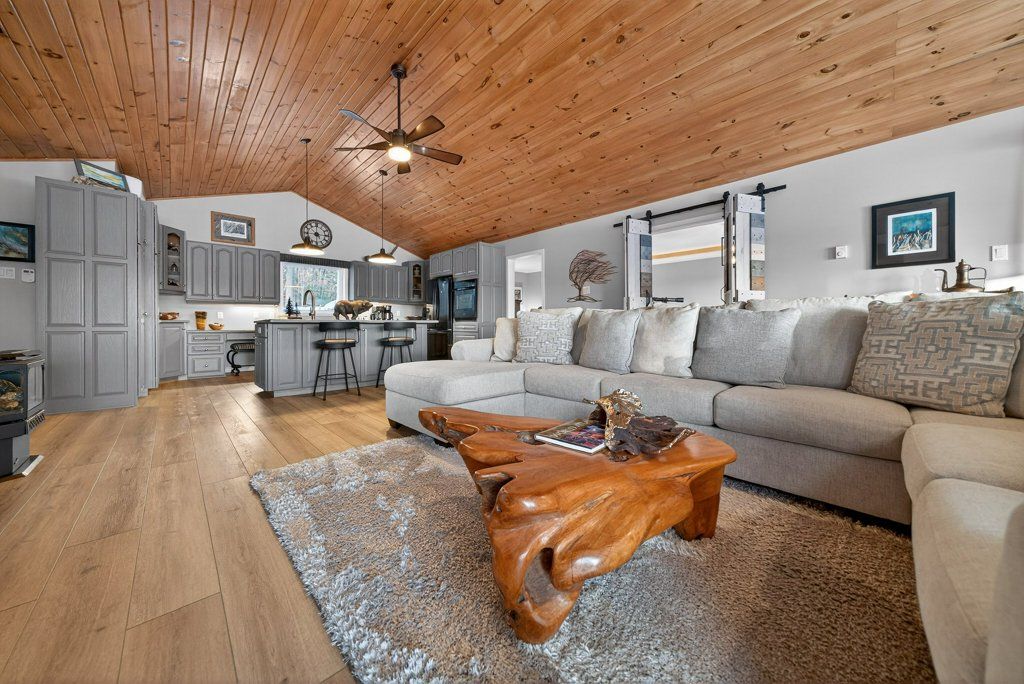 Experience the pinnacle of refined recreational living on this private 8.2-acre peninsula, boasting an extraordinary 548 feet of pristine waterfront. This meticulously curated waterfront residence seamlessly blends rugged natural beauty with tastefully curated interior upgrades, offering a turnkey sanctuary designed for the modern era.The heart of the home features an expansive open-concept kitchen and a glorious vaulted ceiling living room, where wall-to-wall views frame the daily masterpiece of the sunset. Step across engineered hardwood floors to find a residence built for ease, featuring custom power blinds, signature double-bifold barn doors, and a wellness-focused climate system powered by two new heat pumps (2026). The layout flows effortlessly with entry foyer, open concept living room with fireplace and walk- out to two lakefront decks, custom designed kitchen with centre island, new appliances; 2 bedrooms on the main level including primary bedroom & 4pce ensuite with laundry, a separate dining room with cove molding w/back light, electric fireplace and lakefront views, a lower level 519 sq. ft. recreation and games room-complete with pool and ping-pong tables, 2 additional bedrooms, and 3 pce bathroom, lake front walk out and large storage & utility rooms - perfect for hosting at scale.The transition to the outdoors is impeccable. Expansive decking with wide stairs leading to landscaped gardens to a new dock and swim platform at the lake. For the hobbyist, the oversized 1,276 sq. ft. detached garage is a standout feature, offering a workshop and ample space for a car collection or all-terrain vehicles.Whether you are exploring private trails, gathering at the waterfront fire pit, or enjoying the breeze from the Global Dec-K-ing balconies, this resilient property offers a "purpose-driven" lifestyle that is increasingly rare. Extra Special !!! - As there is potential for 3acre severance for a family compound, maintaining privacy for all!!!