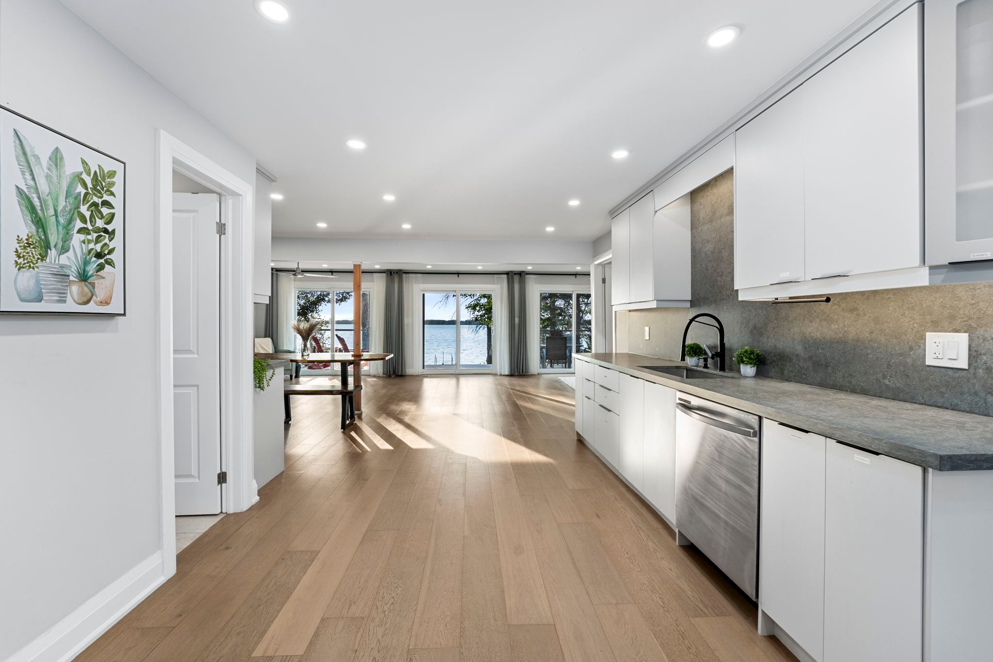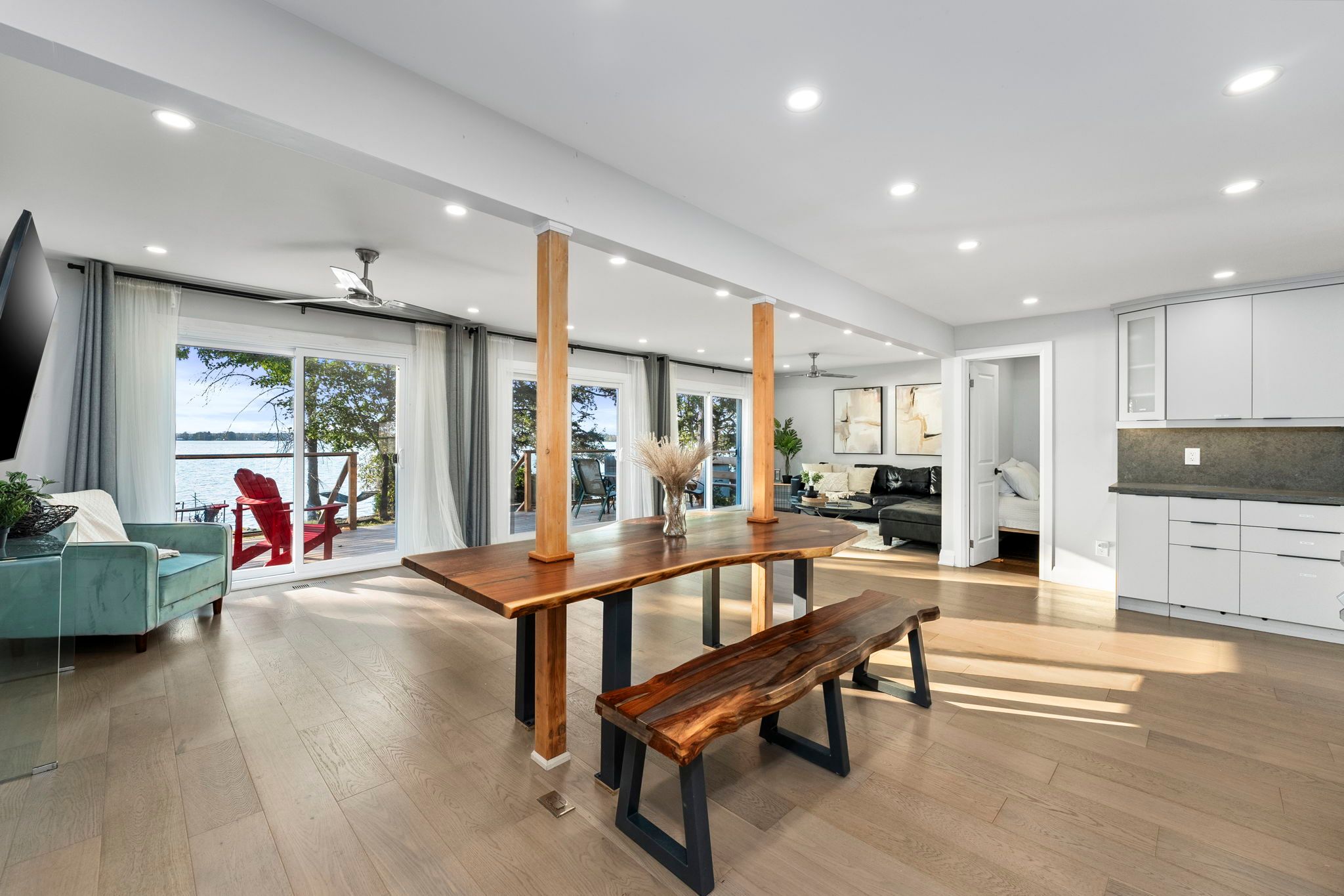 Welcome to 119 Campbell Beach Rd on the shores of beautiful Lake Dalrymple. This west-facing waterfront home offers sandy shoreline, stunning sunset views, and fully renovated interiors, the perfect blend of cottage charm and modern comfort. Featuring 4 bedrooms and 2 bathrooms, the bright open-concept living space is designed to maximize lake views with three large sliding glass doors that lead to a brand new wrap-around deck with sleek glass panels. The interior has been thoughtfully updated throughout with a fresh, beach-inspired aesthetic, making this home completely move-in ready for year-roundliving or seasonal enjoyment. The flat, usable lot provides direct access to a sandy, family-friendly waterfront ideal for swimming, boating, paddle-boarding, and relaxing by the water. An oversized heated garage witha beautiful corner fireplace adds flexible space for storage, hobbies, or entertaining. Located approximately 25-30 minutes from Orillia and within easy reach of amenities, thisproperty offers the perfect balance of peaceful lakeside living and everyday convenience. Experience the best of Lake Dalrymple living, sunsets included.