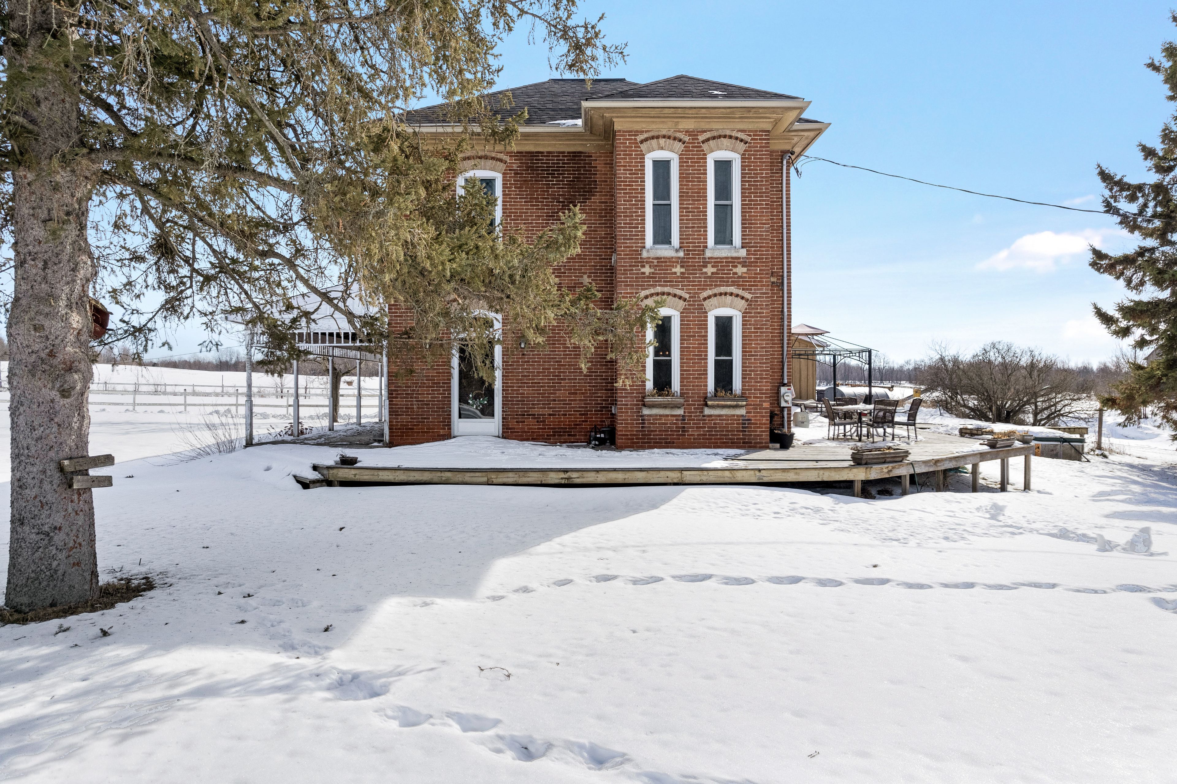 Set on nearly 27 picturesque acres in Lombardy, this exceptional equestrian estate offers the perfect blend of professional facilities and timeless country charm, just minutes from the Cataraqui Trail & Otter Lake. Designed with both competitive riders and lifestyle buyers in mind, the property features two well appointed barns and a 60' x 160' indoor riding arena complete with an attached 10 stall barn. Here you'll find box stalls with floor mats, a heated tack room with viewing window and lockers, feed room, and wash bay. A separate second laneway provides direct access to the arena with main barn, making this an ideal setup for a lesson program or boarding operation while maintaining privacy at the home lane. Outdoors, a sand ring, eight paddocks, and three underground waterlines to geothermal waterers (serviced to -10C) ensure your horses are well cared for. The second barn offers six box stalls, a heated washroom and tack room, outdoor wash bay, and a charming one bedroom apartment above with 3 pc bath - perfect for staff, guests, or supplemental income. At the heart of the property sits a warm and welcoming farmhouse full of character. A wrap-around porch and expansive deck invite you to relax and take in the sweeping views of pasture and paddocks. Inside, you'll appreciate the spacious family room addition, second floor laundry, and a beautifully updated bathroom featuring a walk-in tiled shower and classic clawfoot tub. The spring and summer welcome peonies lining the driveway, apple and crabapple trees dot the landscape, and a natural pond attracts ducks, geese, and heron visitors. Whether you're seeking a turnkey equestrian facility, income potential, or a private country retreat with room to grow, this farm property delivers on every level.