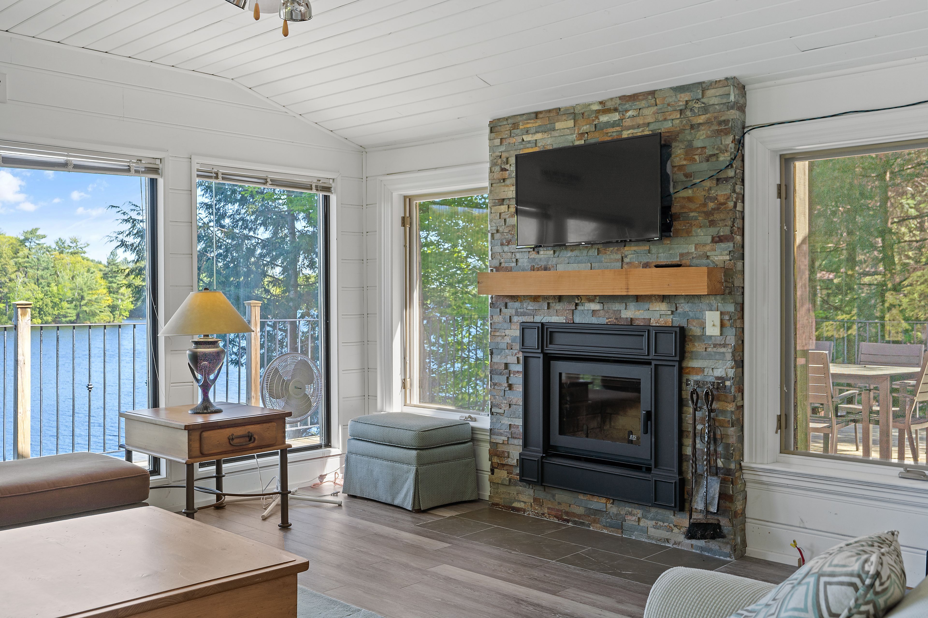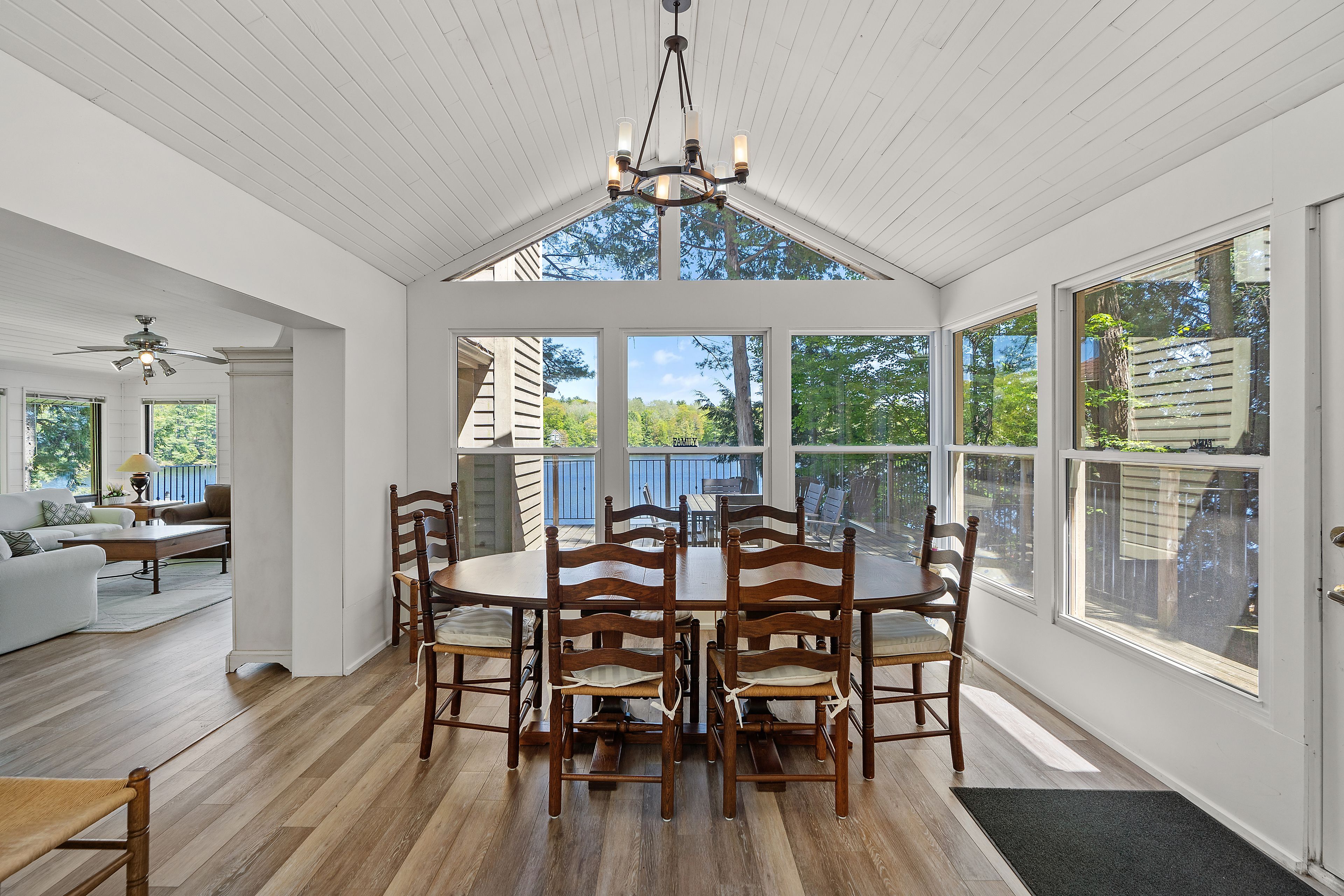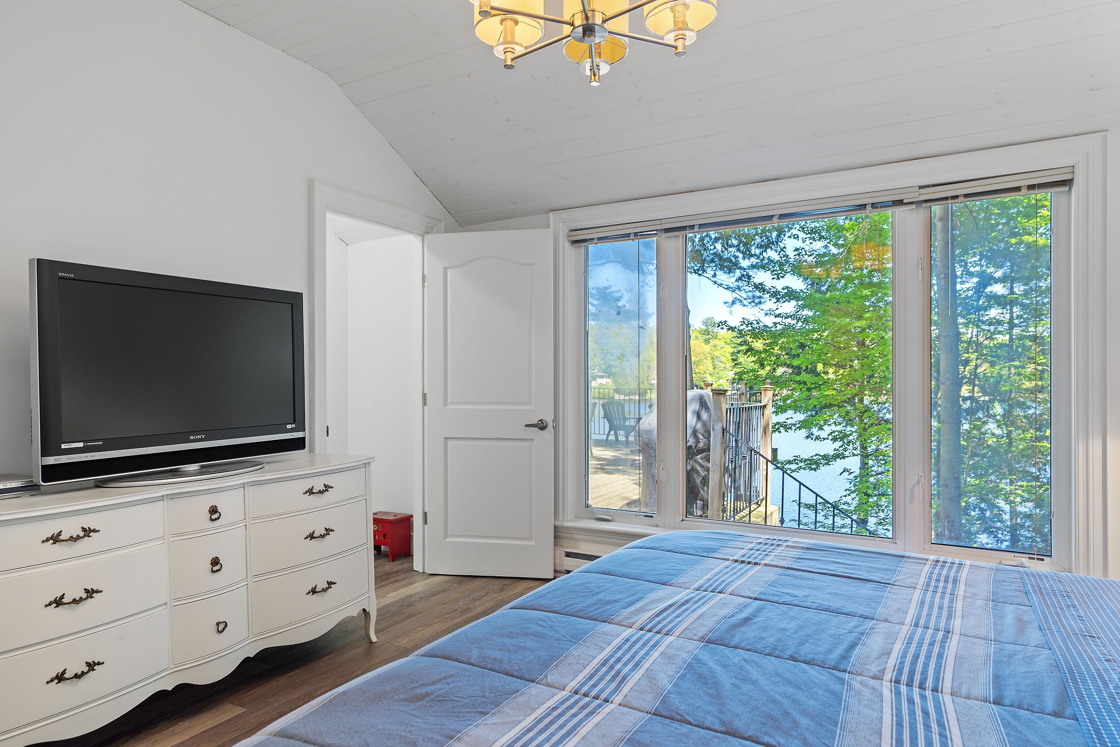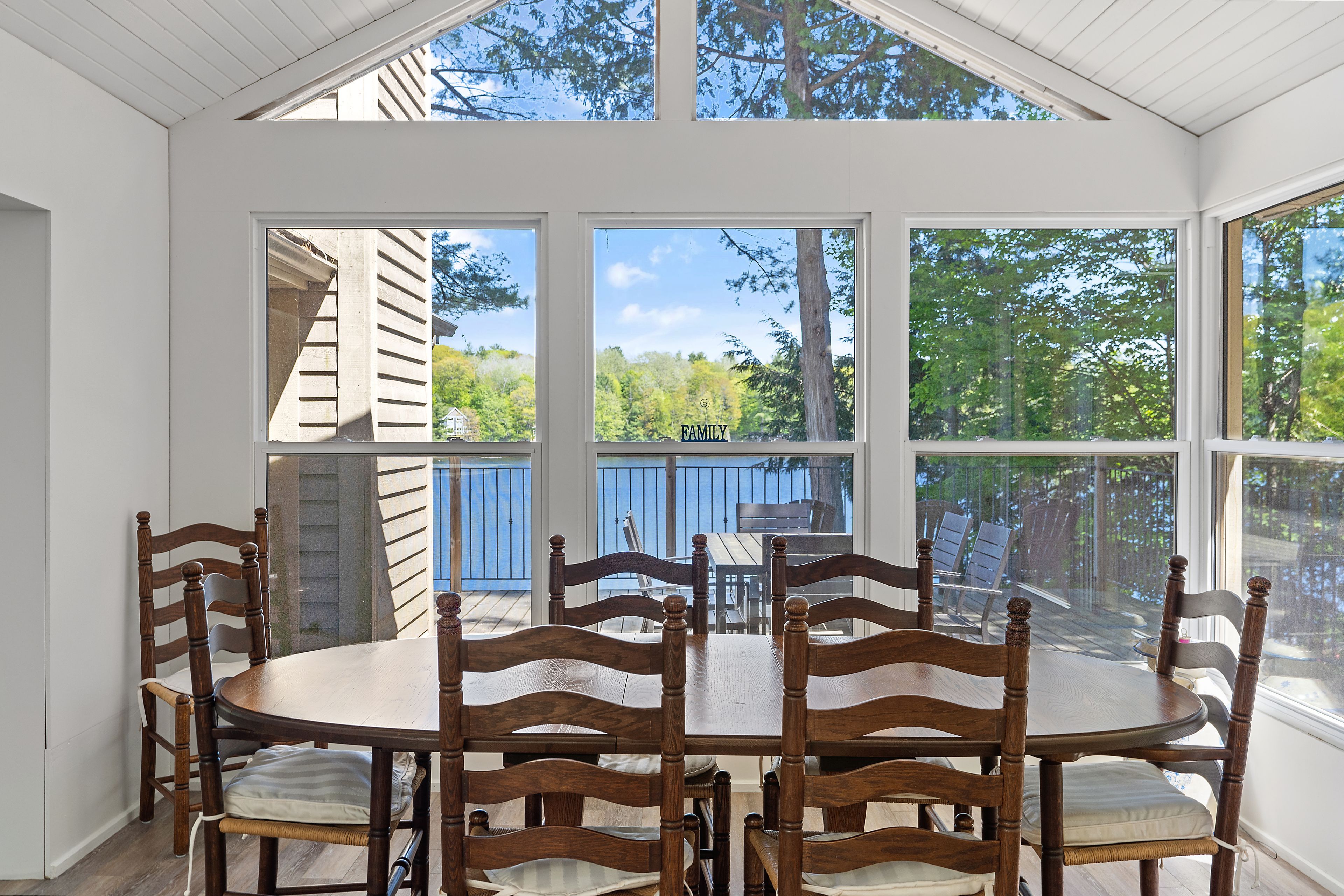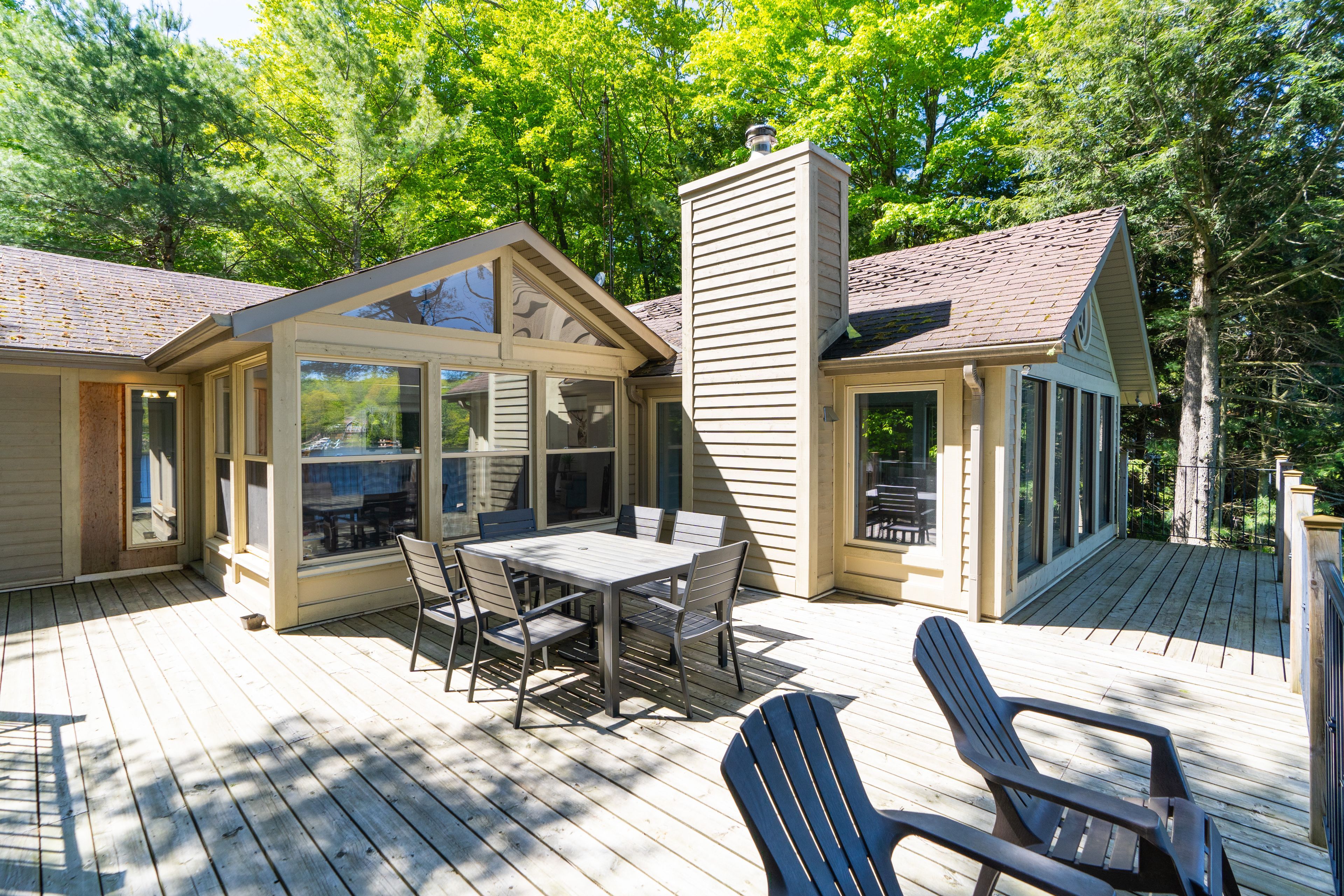 Welcome to this stunning 3-bedroom, 3-bathroom waterfront retreat on the shores of Bass Lake. Designed for both relaxation and entertaining, this home offers an inviting dining area and a spacious living room, each framed by picturesque lake views that bring the outdoors in. The open-concept kitchen flows seamlessly into the main living spaces, making it ideal for hosting family and friends. Generous bedrooms provide comfort and privacy, including a serene primary suite with breathtaking views of the water. Start your mornings with coffee on the dock as the sun rises over the lake, and spend your evenings entertaining on the expansive wrap-around deck. With 108 feet of private waterfront and two docks, this property delivers the ultimate Muskoka lifestyle. Centrally located in the heart of Muskoka, just minutes from Port Carling and Port Sandfield, this is a rare opportunity to own a true waterfront escape