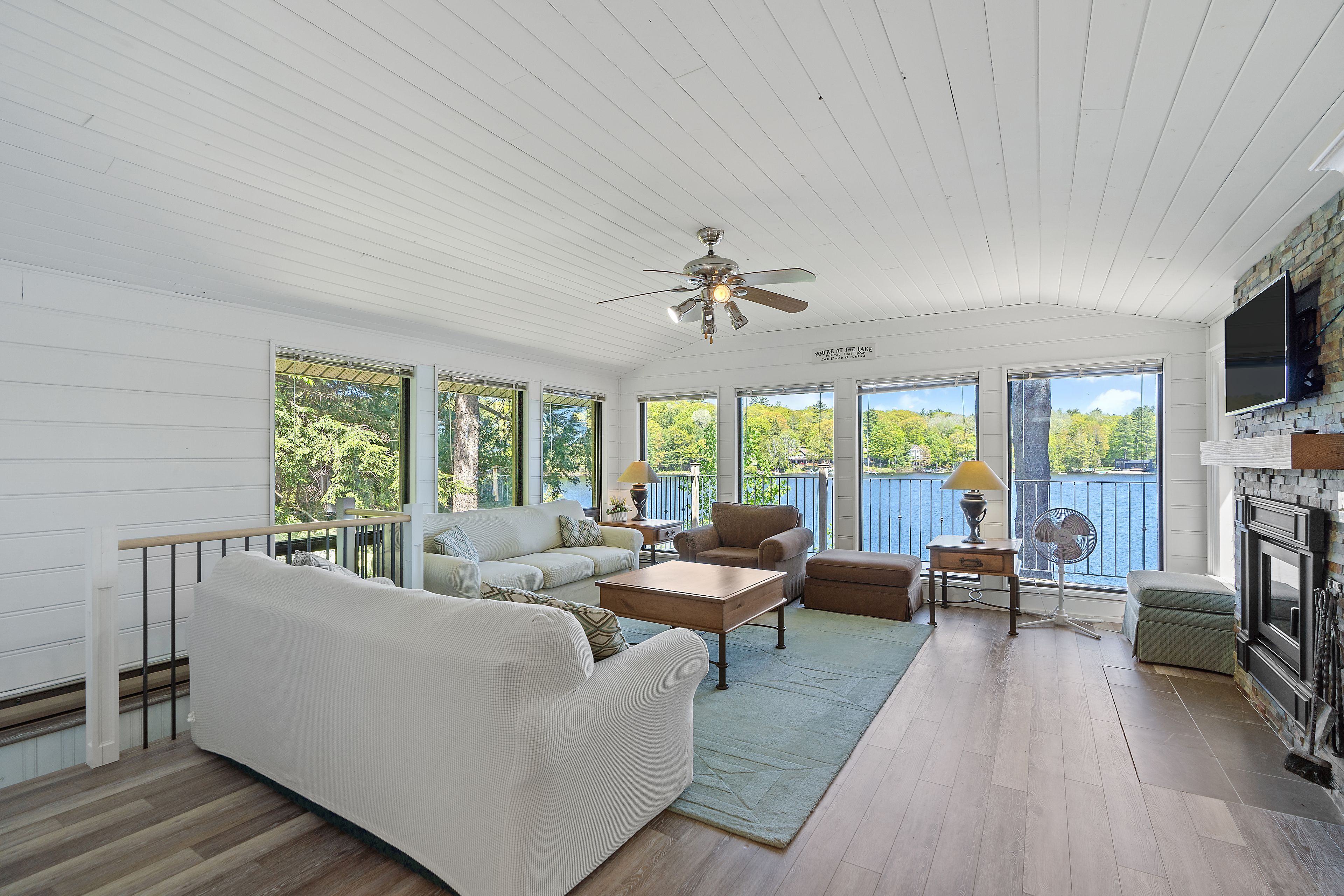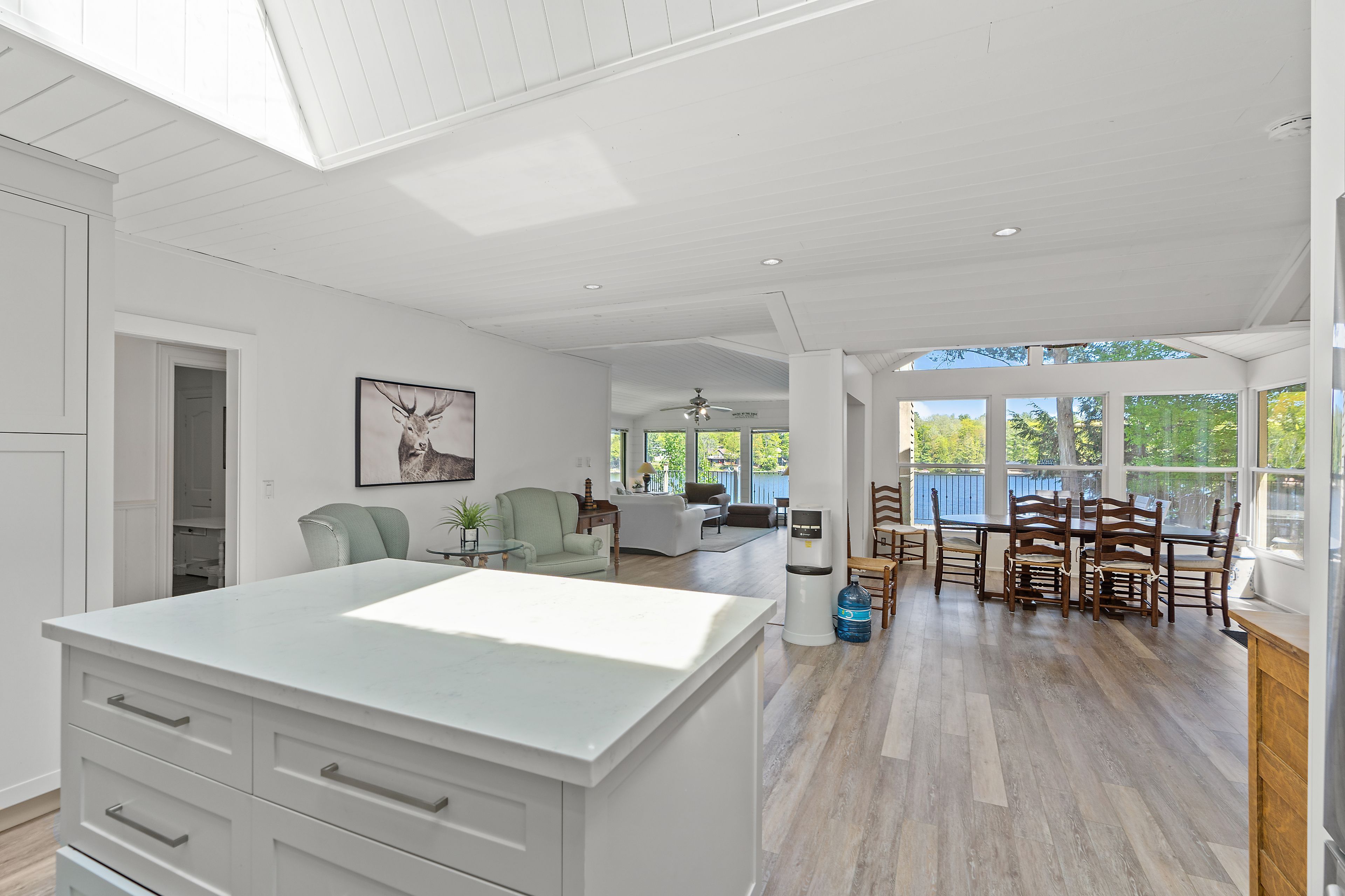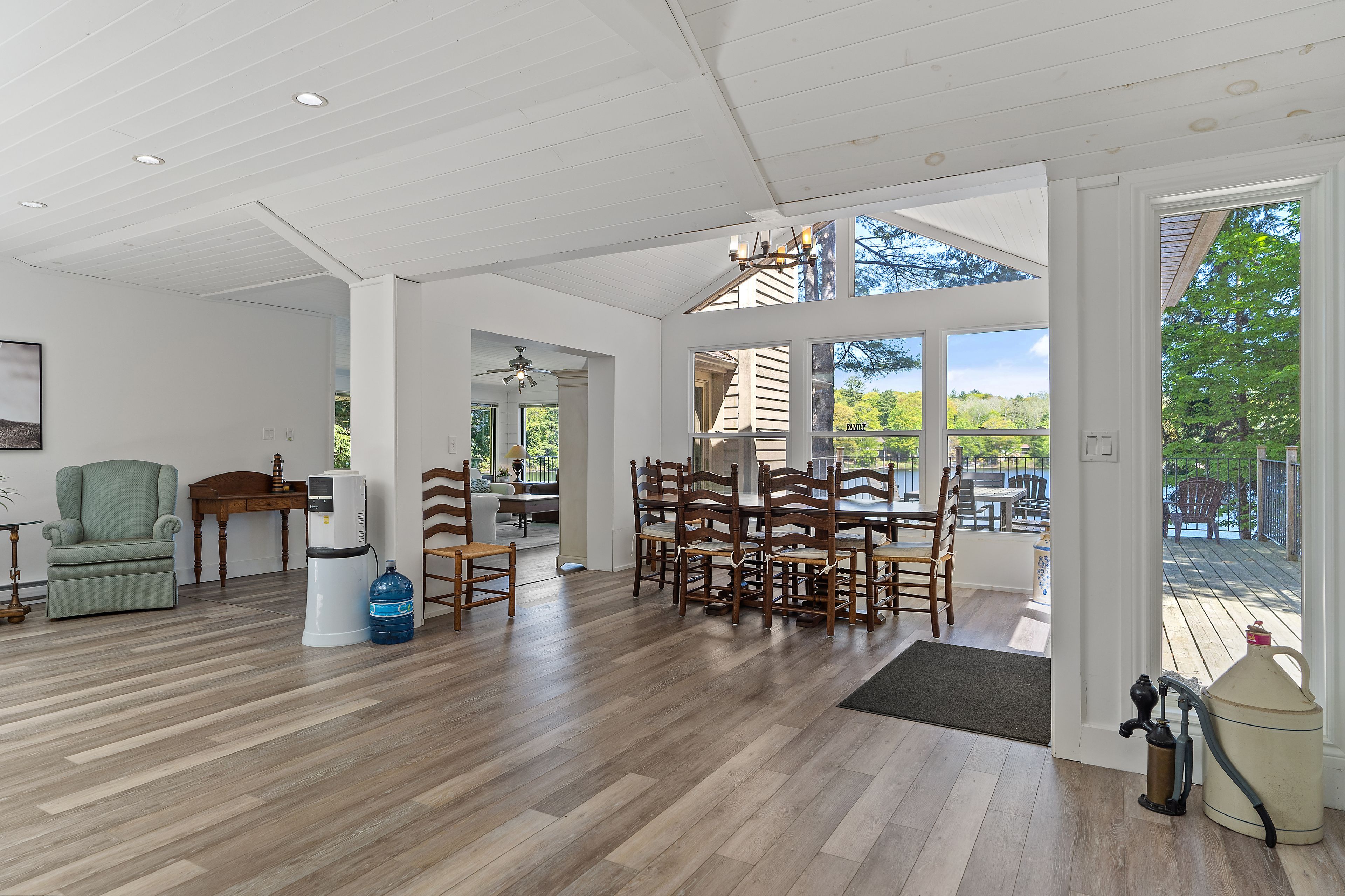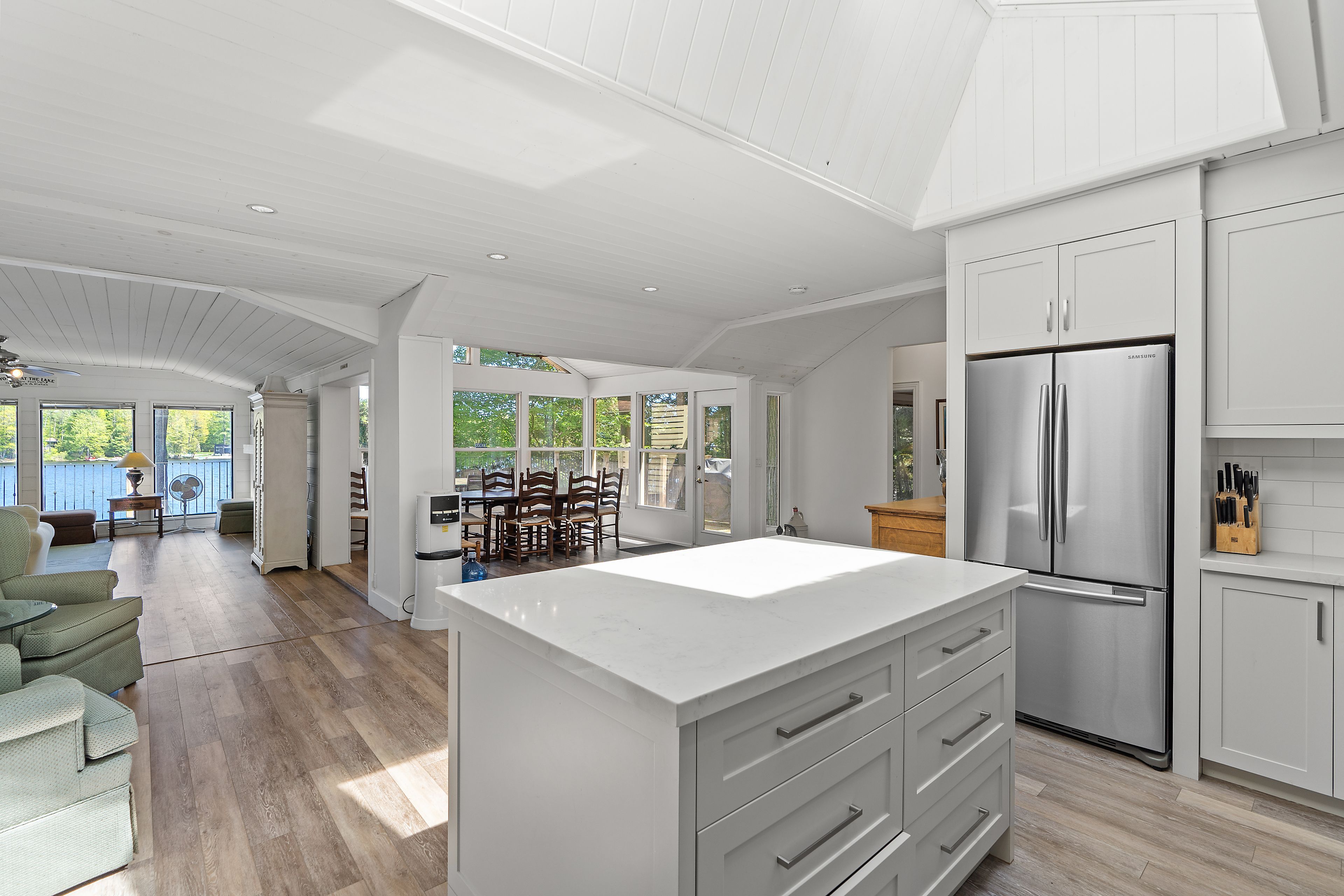 Welcome to this stunning 3-bedroom, 3-bathroom waterfront retreat on the shores of Bass Lake. Designed for both relaxation and entertaining, this home offers an inviting dining area and a spacious living room, each framed by picturesque lake views that bring the outdoors in. The open-concept kitchen flows seamlessly into the main living spaces, making it ideal for hosting family and friends. Generous bedrooms provide comfort and privacy, including a serene primary suite with breathtaking views of the water. Start your mornings with coffee on the dock as the sun rises over the lake, and spend your evenings entertaining on the expansive wrap-around deck. With 108 feet of private waterfront and two docks, this property delivers the ultimate Muskoka lifestyle. Centrally located in the heart of Muskoka, just minutes from Port Carling and Port Sandfield, this is a rare opportunity to own a true waterfront escape