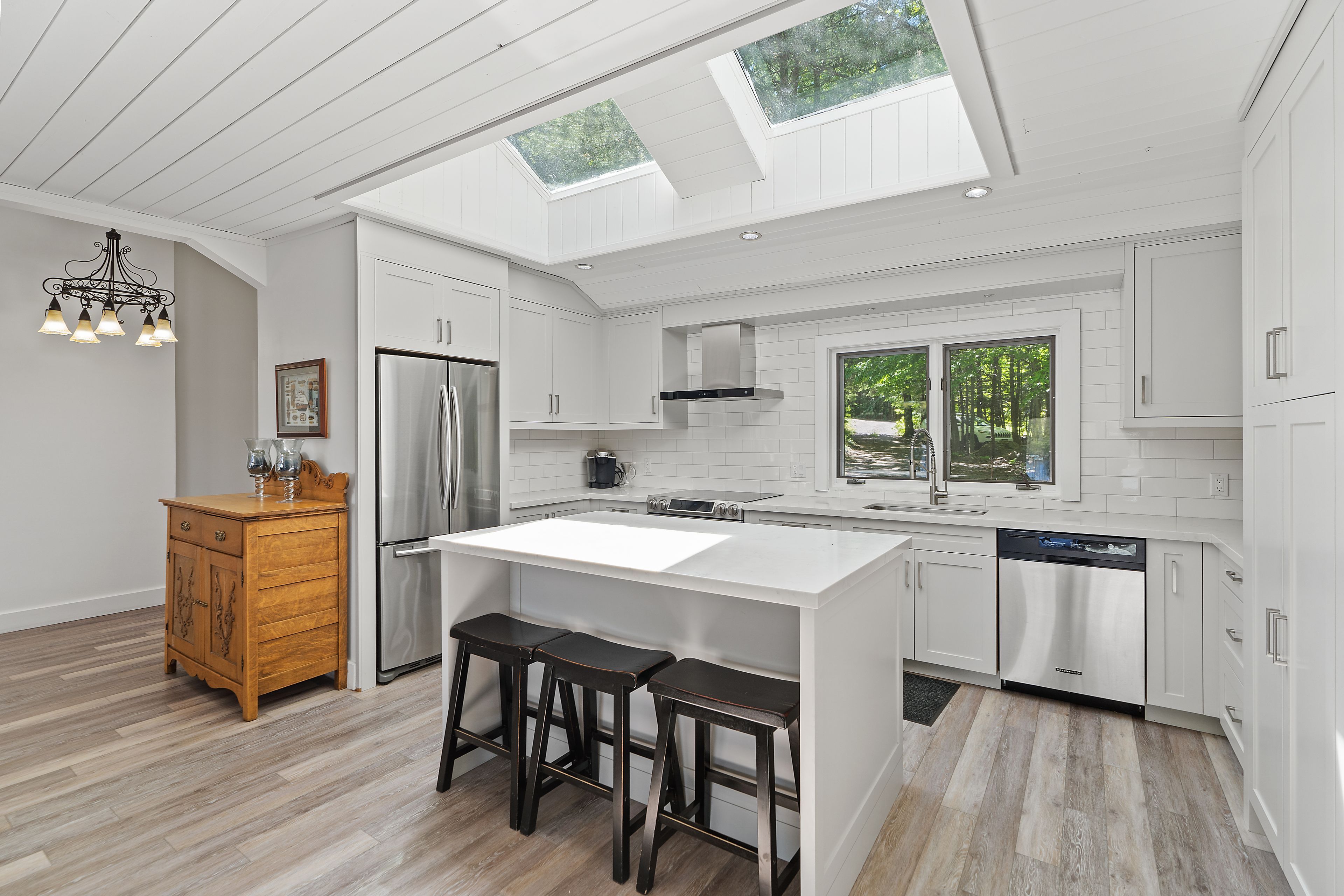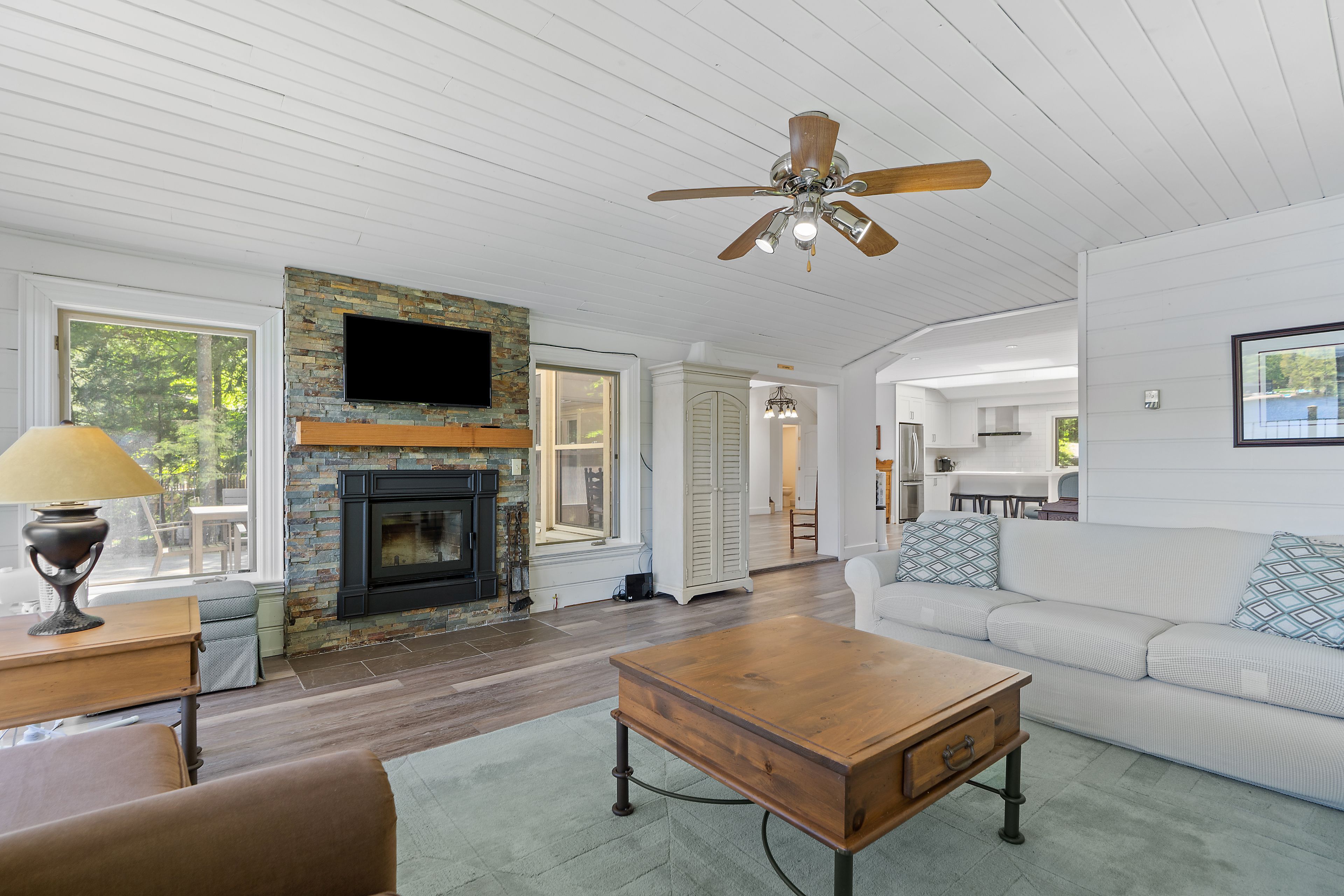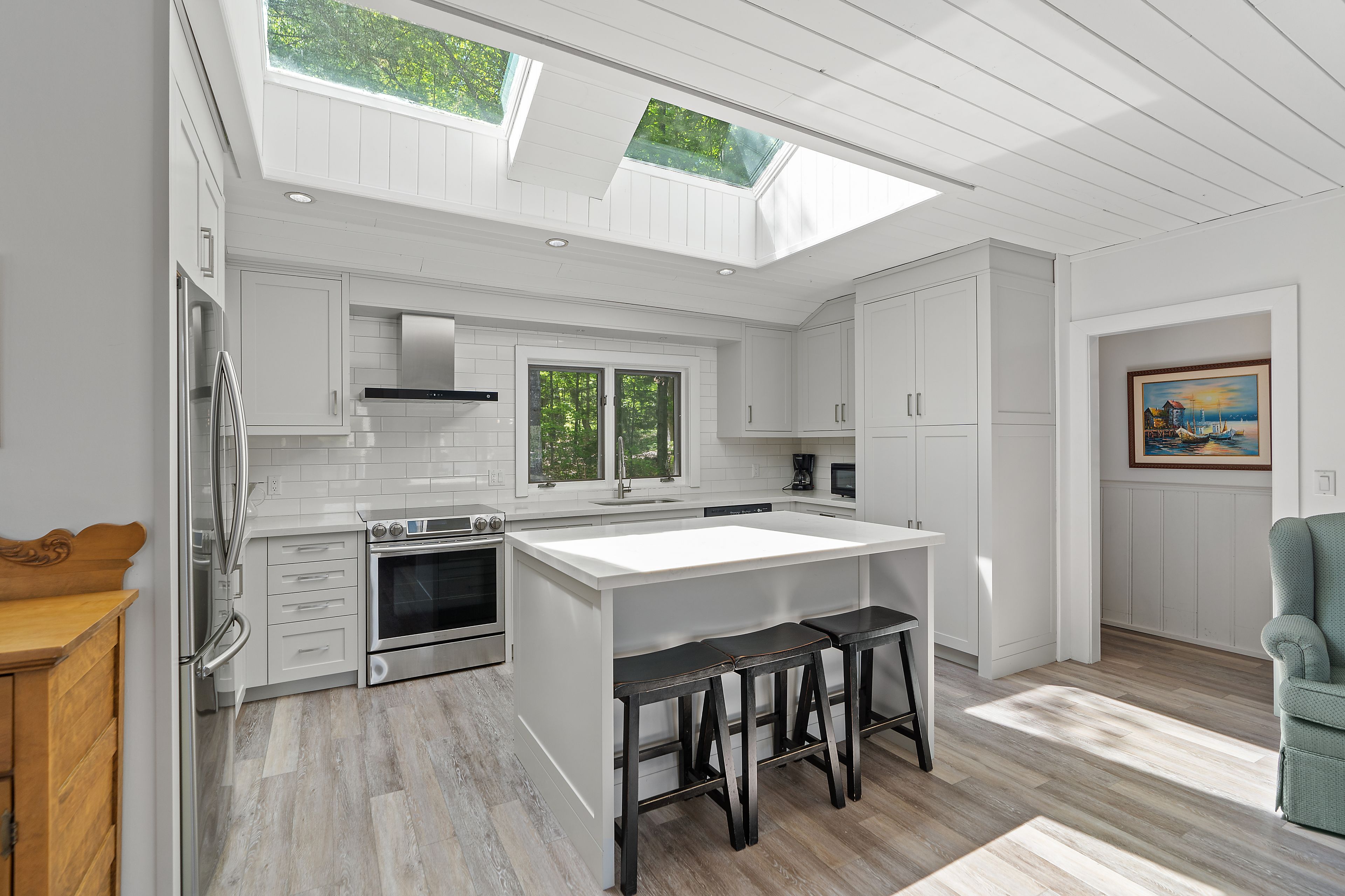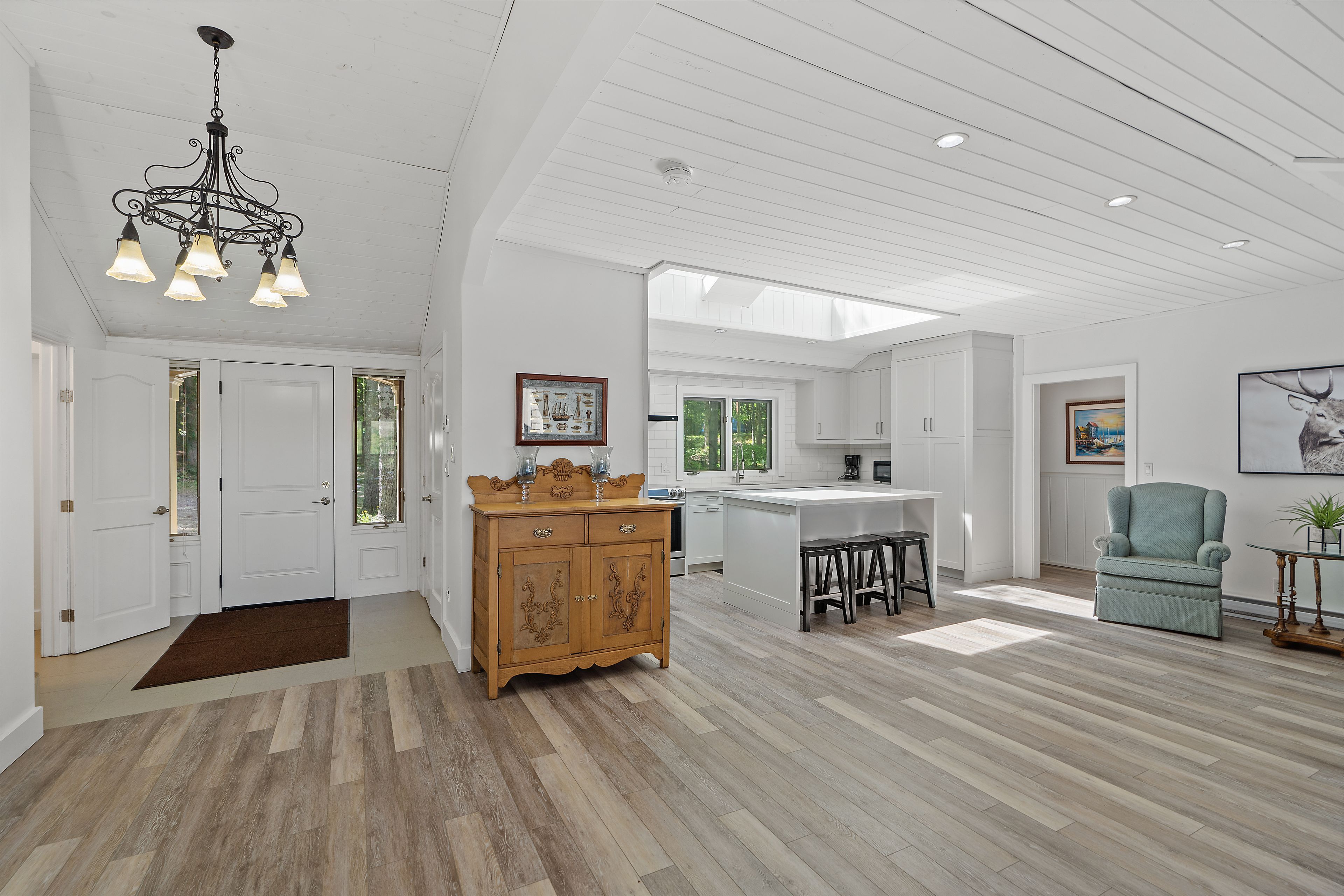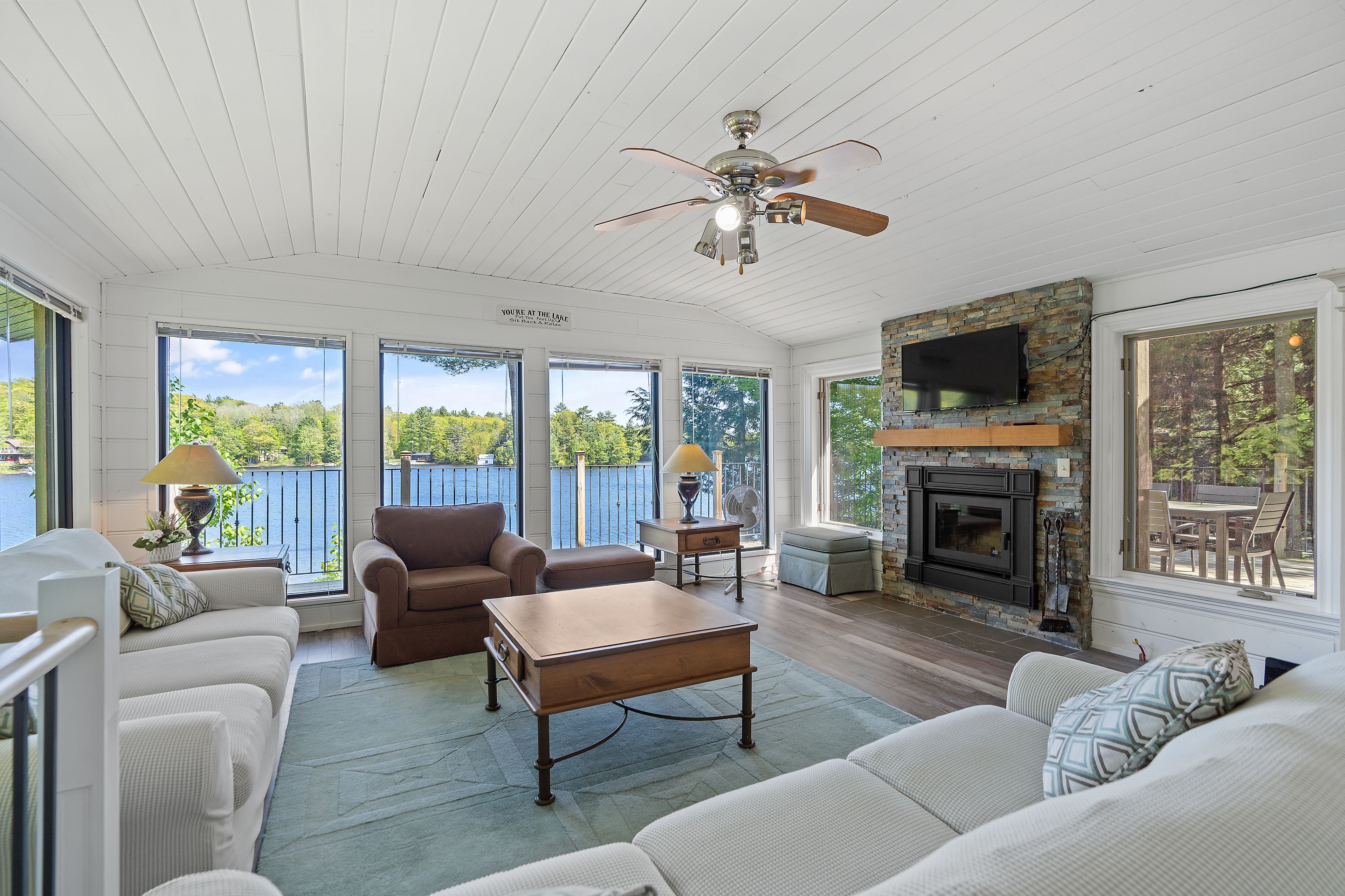 Welcome to this stunning 3-bedroom, 3-bathroom waterfront retreat on the shores of Bass Lake. Designed for both relaxation and entertaining, this home offers an inviting dining area and a spacious living room, each framed by picturesque lake views that bring the outdoors in. The open-concept kitchen flows seamlessly into the main living spaces, making it ideal for hosting family and friends. Generous bedrooms provide comfort and privacy, including a serene primary suite with breathtaking views of the water. Start your mornings with coffee on the dock as the sun rises over the lake, and spend your evenings entertaining on the expansive wrap-around deck. With 108 feet of private waterfront and two docks, this property delivers the ultimate Muskoka lifestyle. Centrally located in the heart of Muskoka, just minutes from Port Carling and Port Sandfield, this is a rare opportunity to own a true waterfront escape