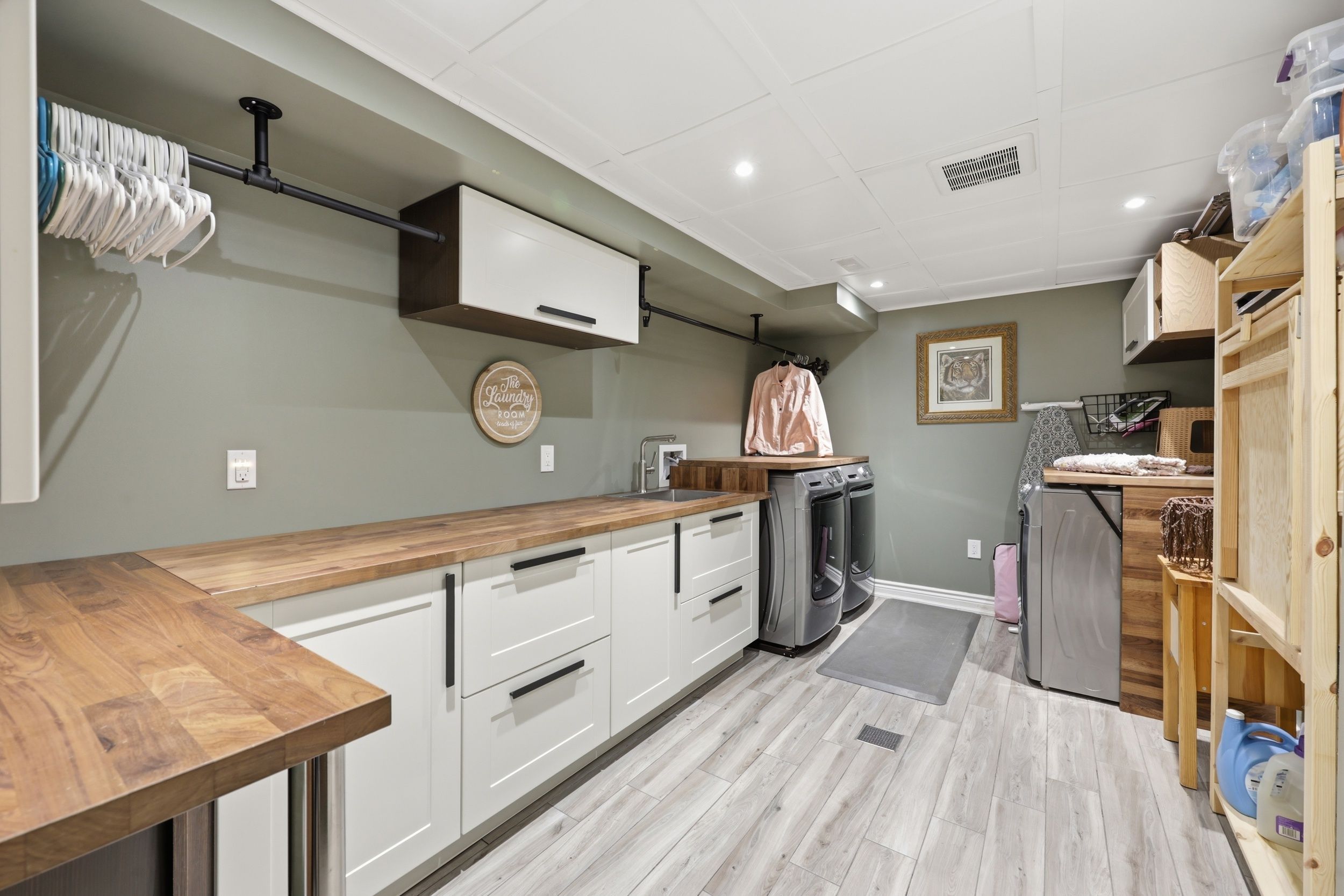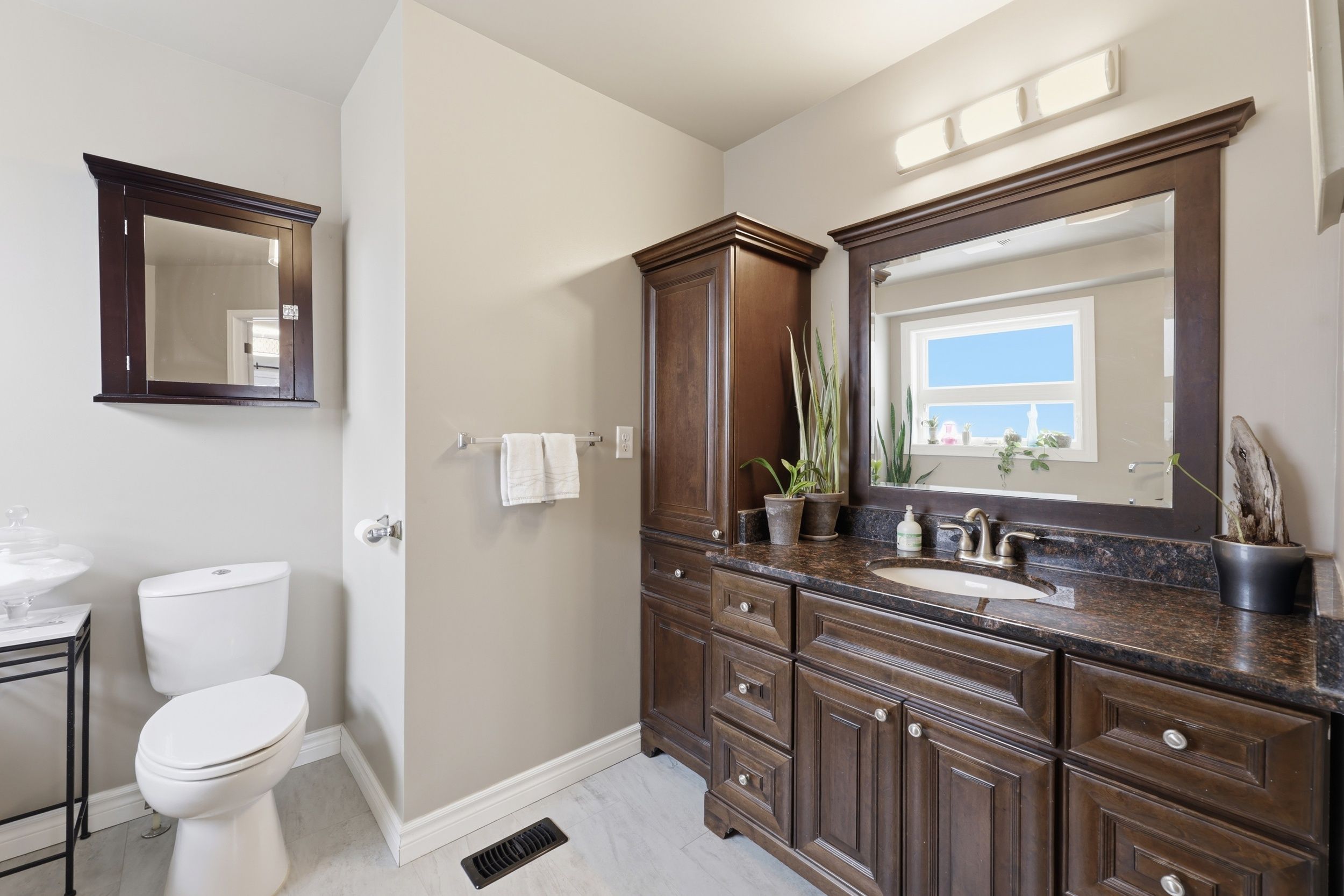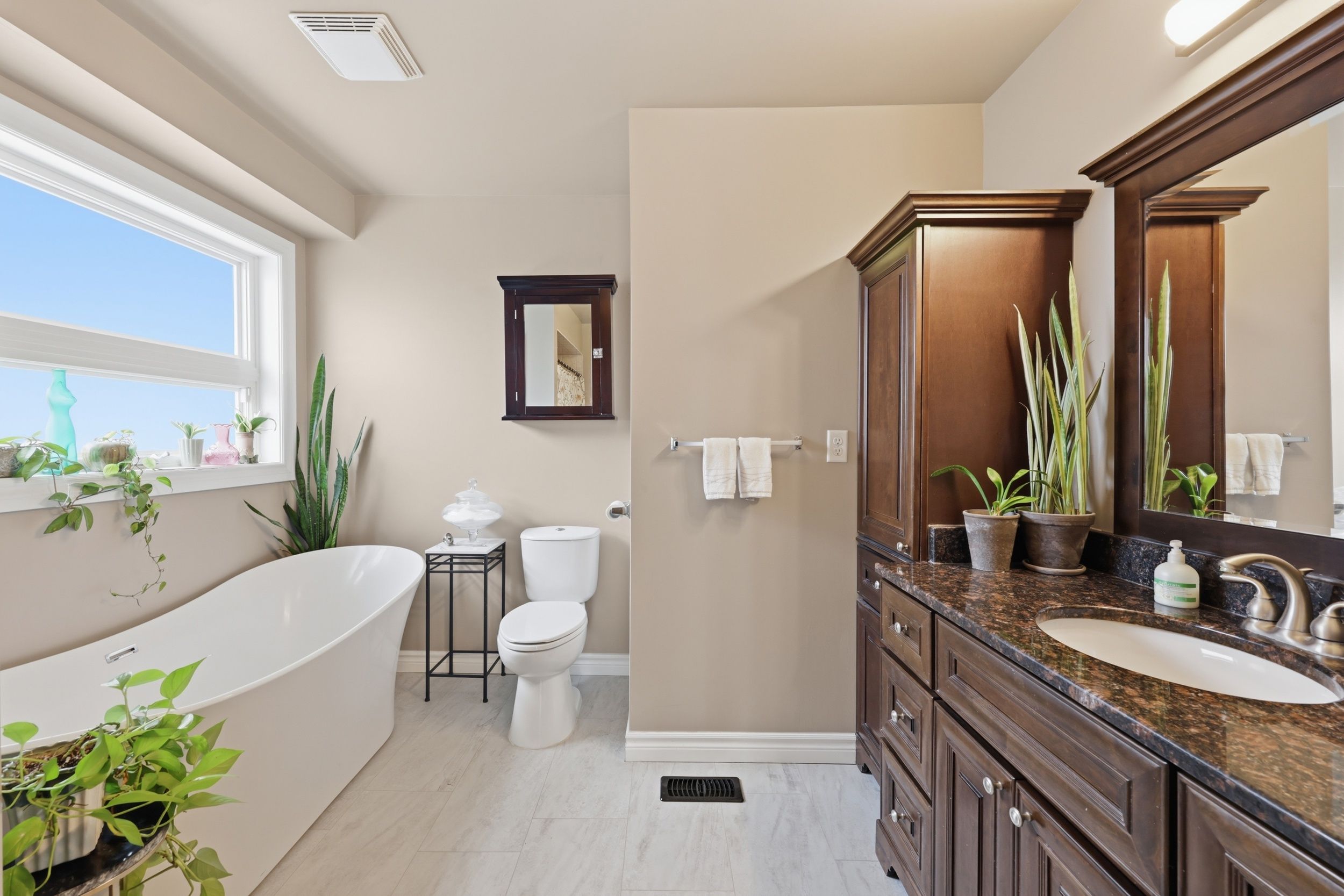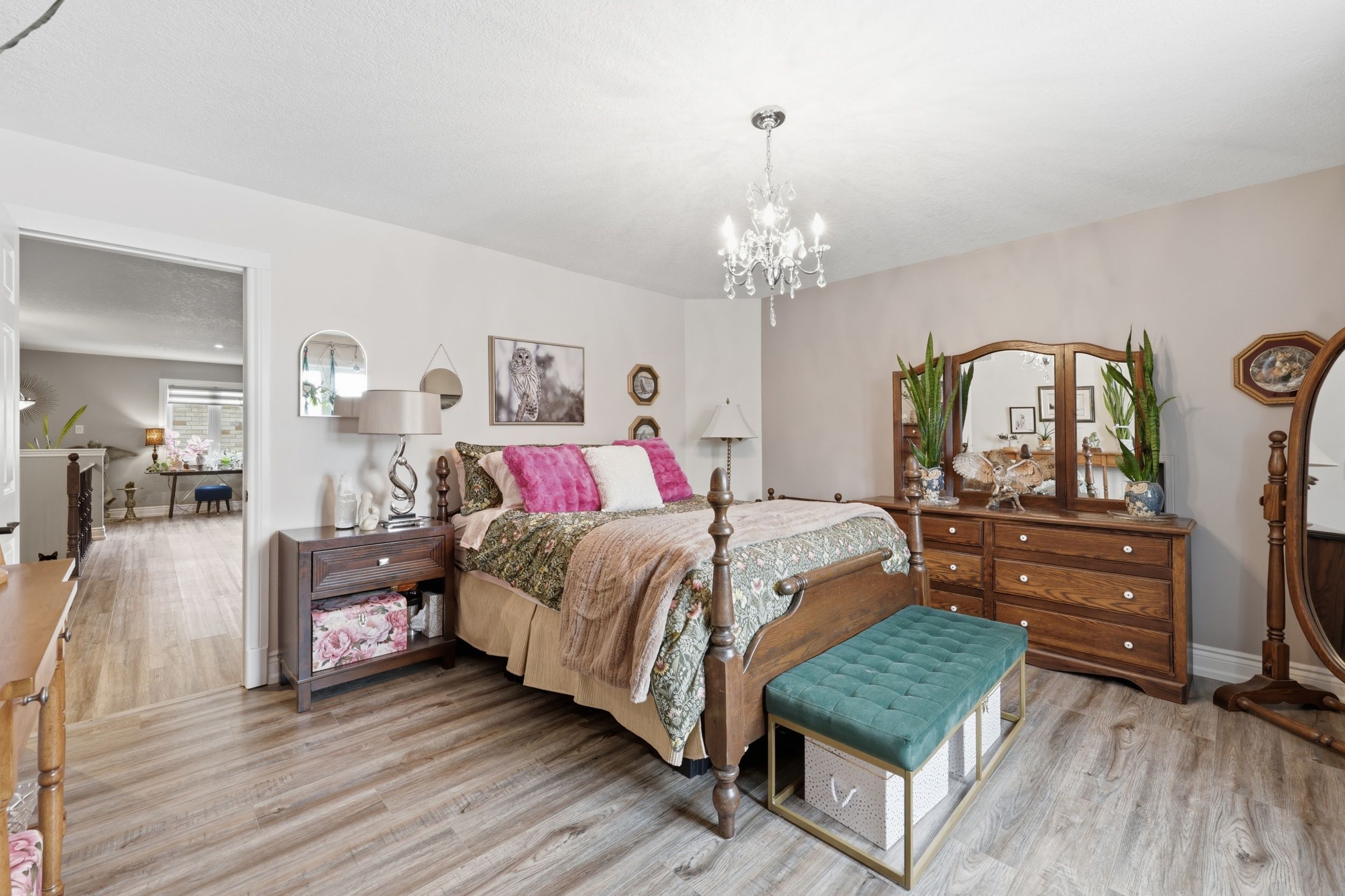 IMPRESSIVE 1.5-story, 5-bedroom, 4-bathroom home situated in a sought-after, family-friendly neighbourhood. Step inside and instantly feel the comfort and calm throughout its spacious 5,000 + square feet of finished living space. The thoughtfully designed layout ensures seamless transitions between relaxing and entertaining areas, highlighted by abundant natural light. The separate dining room and butler's pantry allow you to transition from a casual space to a more formal space. The open-concept, large eat-in kitchen is a warm, welcoming space and serves as a versatile, multi-functional hub for family and friends. Granite countertops, an island with sinks and breakfast bar, a pantry and loads of storage. Walk out to the backyard patio from the kitchen to enjoy the outdoors. The front and backyard feature breathtaking gardens, lovingly created by the current owners, who have devoted considerable time to making these spaces exceptionally beautiful and serene. The main floor features a tranquil primary suite with direct access to the fenced yard and a spa-like ensuite for ultimate comfort. Upstairs, the loft offers a private living area with a bedroom, bathroom, and kitchenette-ideal for guests or extended family and could be used as an in-law suite. The lower level boasts additional living space, with a fantastic recreation room, game room space, two bedrooms, a full bathroom and a wet bar. The remarkable laundry room is a functional sanctuary that is stylish and cozy, and an organized haven. A true retreat that feels like an extension of the home's living areas, complete with two washers and a dryer. Tall ceilings and large windows make the basement feel inviting and bright. Enjoy practical features like extensive storage, a custom mud room with dog washing station, inside entry to the garage, and modern upgrades, including a Euroshield rubber roof (2018). This home delivers exceptional value and space in today's market. Book a showing today!