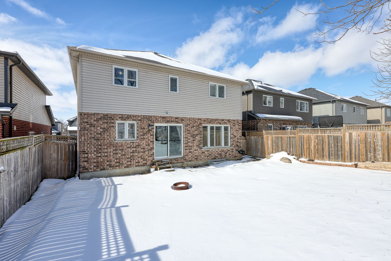 Close your eyes and picture total privacy. No rear neighbours. Just mature trees, open sky, and the quiet calm you crave at the end of a long day. That is the backyard here. It feels tucked away, peaceful, and rare. Morning coffee with birdsong instead of traffic. Summer dinners outside with friends lingering long after sunset. Kids and pets playing freely in a space that feels safe and yours. This is the kind of yard people wait for, and it sets the tone for everything else this home offers. Step inside and you will find a beautiful two storey designed for real life. Four generous bedrooms upstairs give everyone their own space, all bright and well sized for growing families or work from home needs. The primary suite offers a private 3 piece ensuite, creating a comfortable retreat at the end of the day. With four bathrooms in total, mornings run smoother and guests are always accommodated. The open concept main floor invites connection. The kitchen with rich cabinetry and centre island flows seamlessly into the living area where one of two fireplaces anchors the space and creates that warm, welcoming feeling. Laundry is thoughtfully located in the back entrance on the main level, practical and convenient. The finished basement adds even more flexibility with a second fireplace and spacious recreation area. With a little work, it could easily host a fifth bedroom, perfect for teens, guests, or multi generational living. This home blends comfort, function, and privacy in a way that simply feels right.