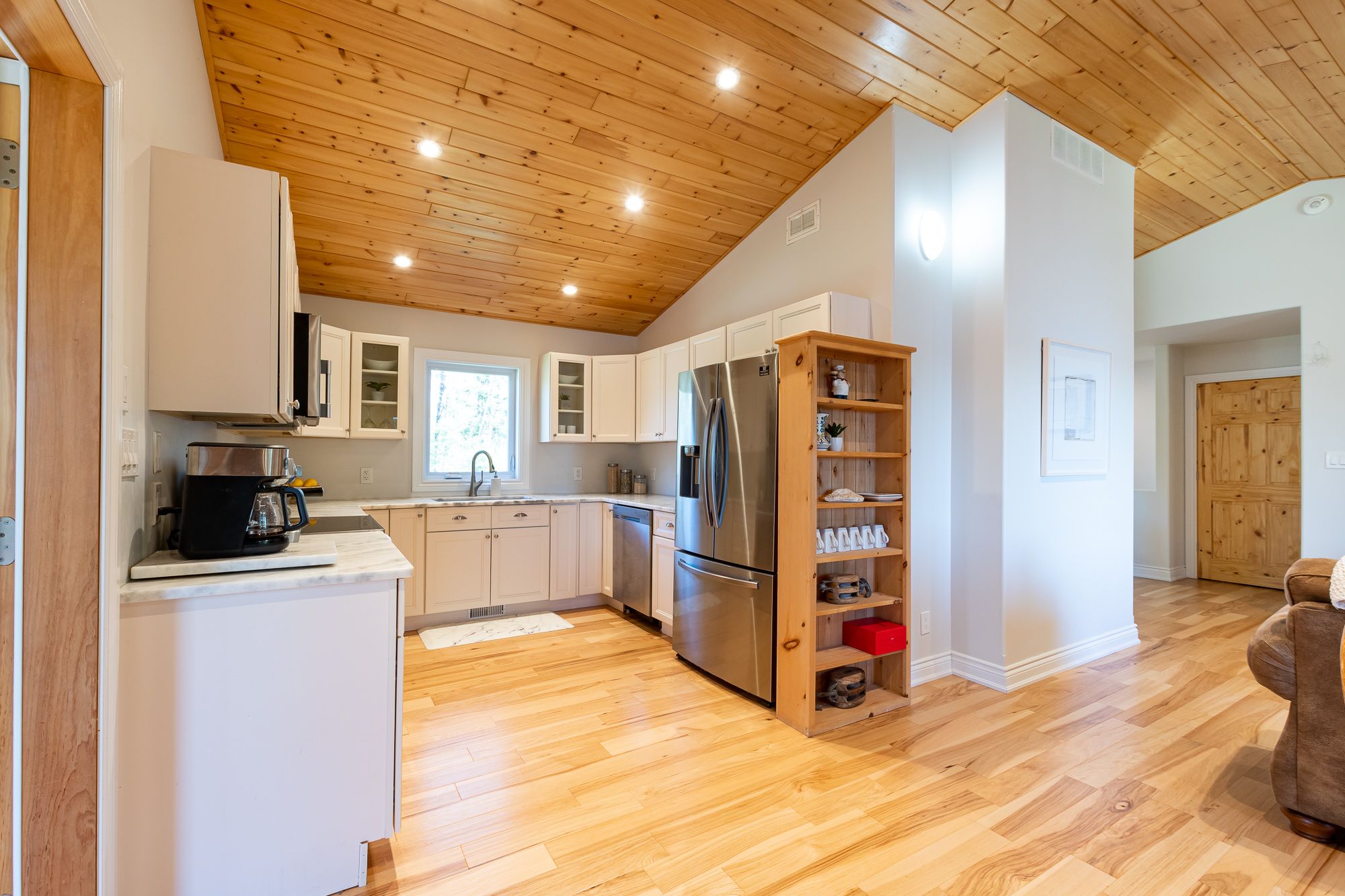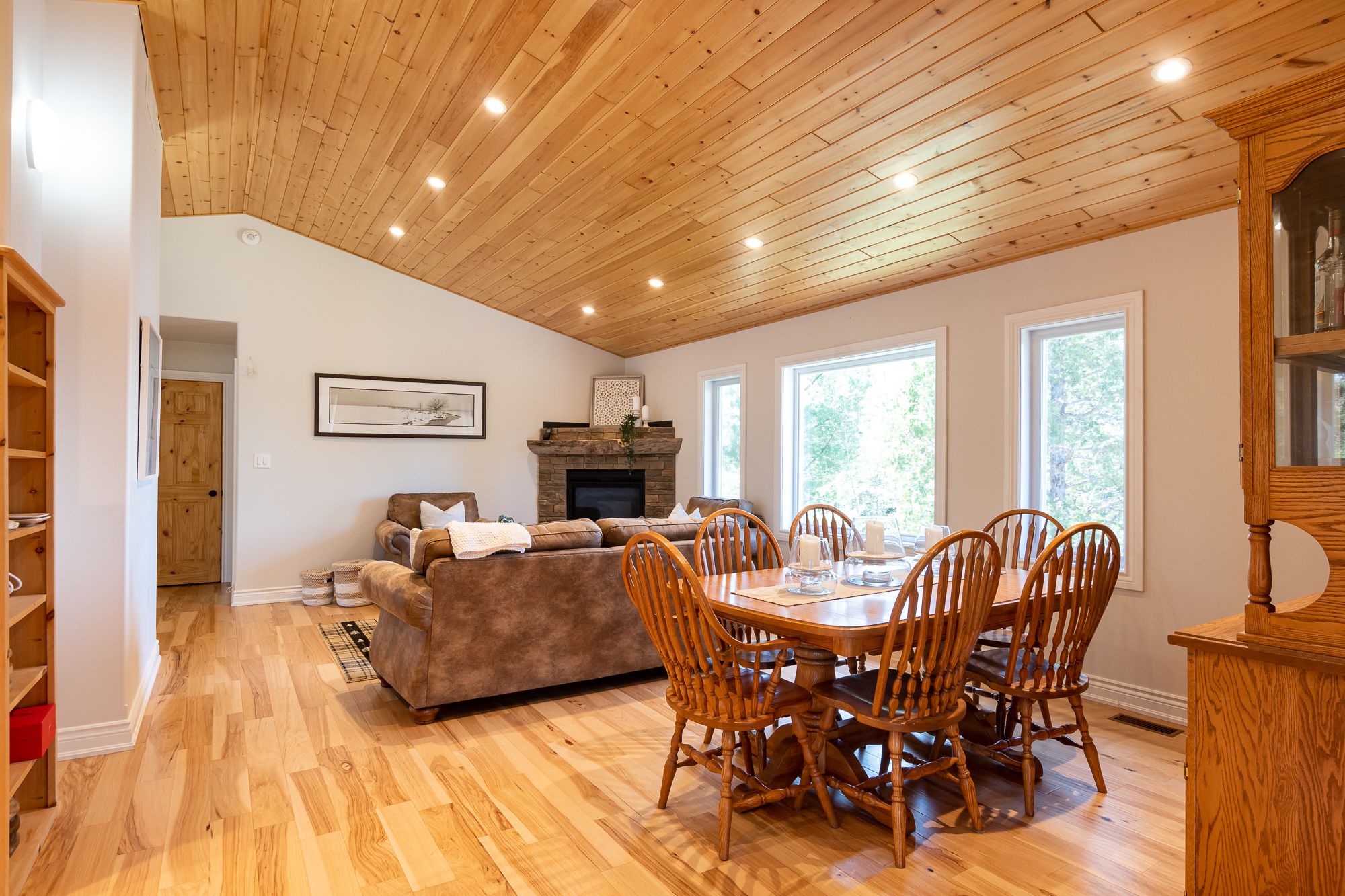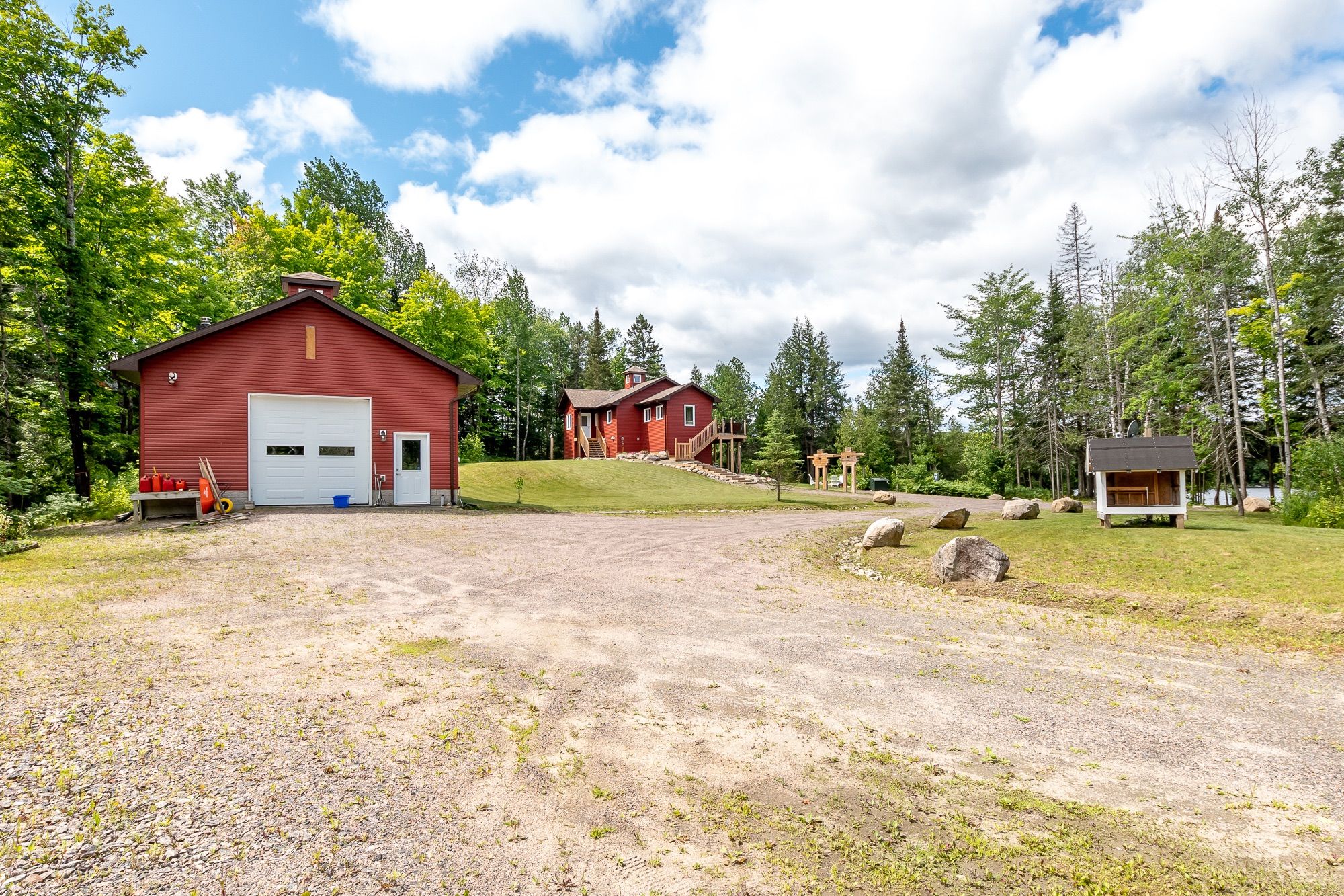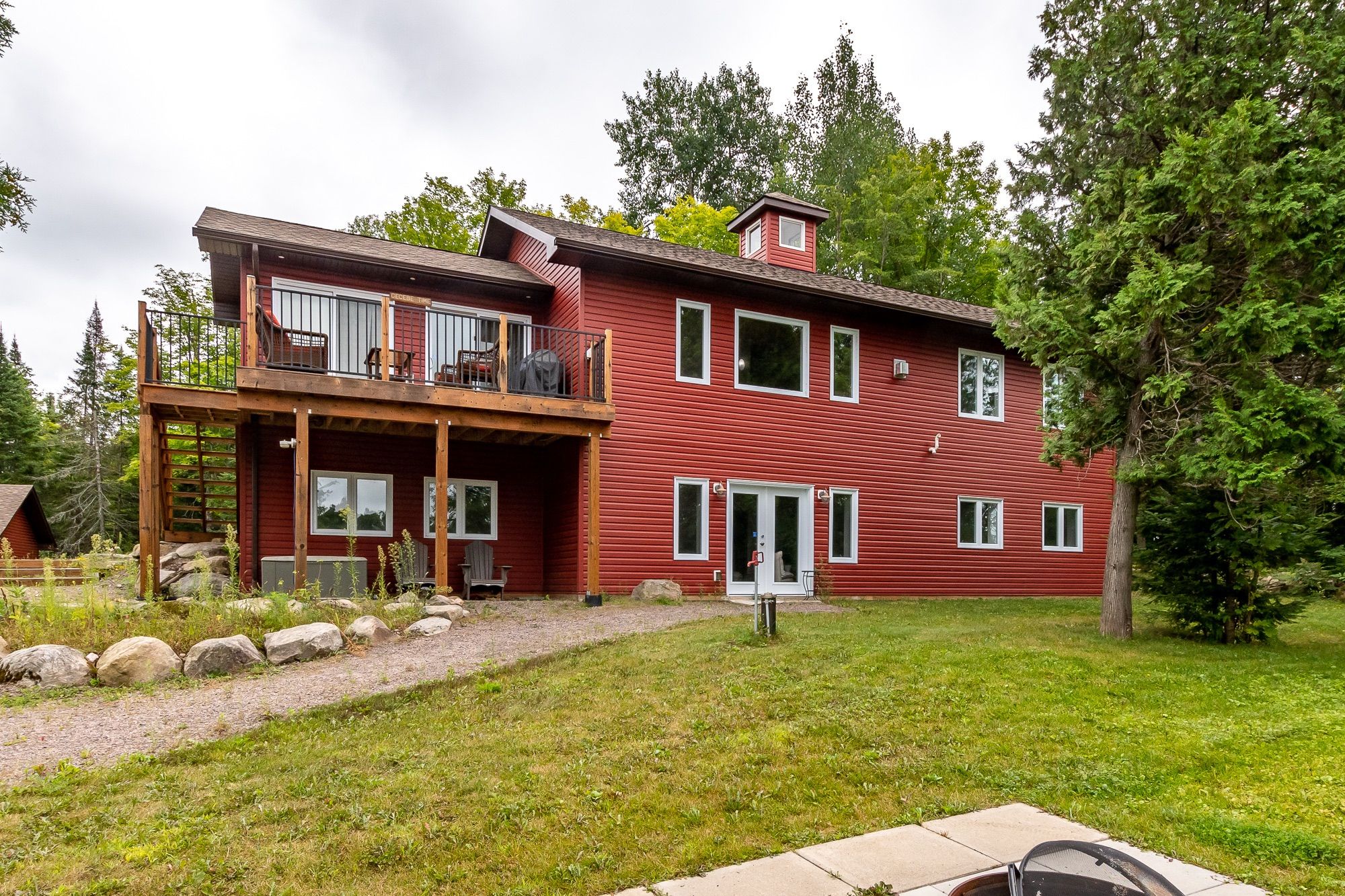 Welcome to your own slice of paradise on Lake Cecebe! Nestled on an expansive 13.37 acres, this stunning property boasts a custom-built home or cottage, meticulously crafted in 2022 to offer the ultimate in lakeside living. Discover hard-packed sandy coves with shallow entry, picturesque rock outcrops, captivating points of land, & convenient boat launch beside the property. Approach this oasis via a dead-end, municipally maintained, year-round road, ensuring both privacy & accessibility. As you step inside, you're greeted by a bright foyer that flows seamlessly into the living room. Floor-to-ceiling windows offer breathtaking views of the coveted southwest-facing waterfront, complemented by a cozy propane fireplace. The main floor features an open-concept layout, with the living room leading into the dining area & kitchen. Adorned with Cinderella stone countertops, the kitchen is a chef's dream, while a Muskoka sunroom beckons you to unwind & soak in the natural beauty that surrounds you. Step outside onto the deck, complete with a propane hook-up, ideal for al fresco dining & entertaining. Throughout the main floor, soaring vaulted ceilings & engineered hickory floors exude warmth & elegance. The primary suite offers a luxurious retreat, boasting a spacious walk-in closet & an ensuite bathroom awaiting your personal touch to become a 4 or 5 piece oasis. Venture downstairs to the walkout level, where you'll find 3 additional generously sized bedrooms, another partially finished washroom, ample storage space, & a meticulous utility room. This exceptional offering also includes a 1800 sq ft detached garage, with a wood stove, 3-piece washroom, & oversized height, ensuring plenty of space for vehicles, watercraft, & all your recreational gear. Built to exceed code standards with careful consideration for the future, this home & garage epitomize quality craftsmanship & attention to detail. Don't miss your opportunity to own this extraordinary retreat on Lake Cecebe!
