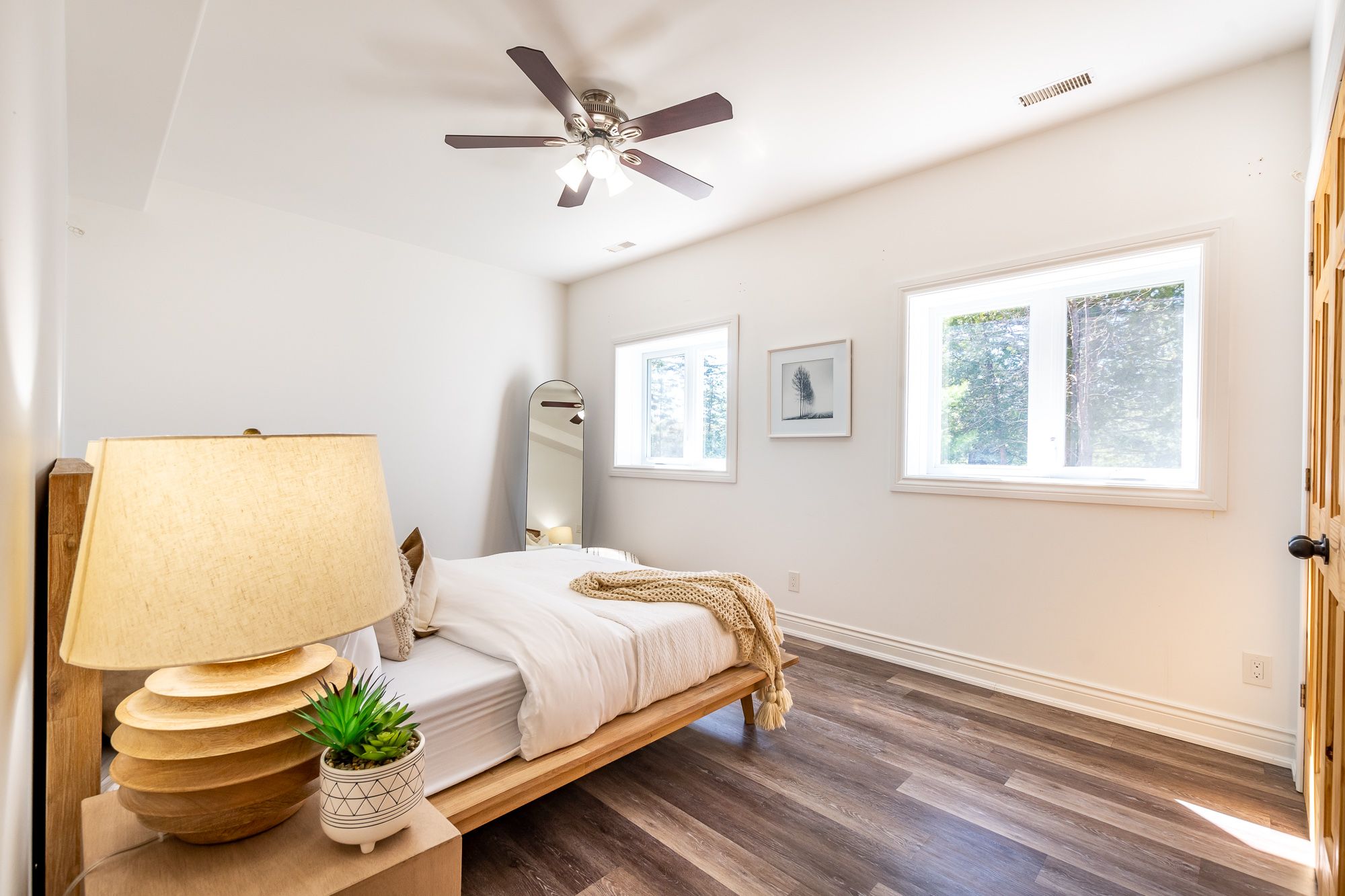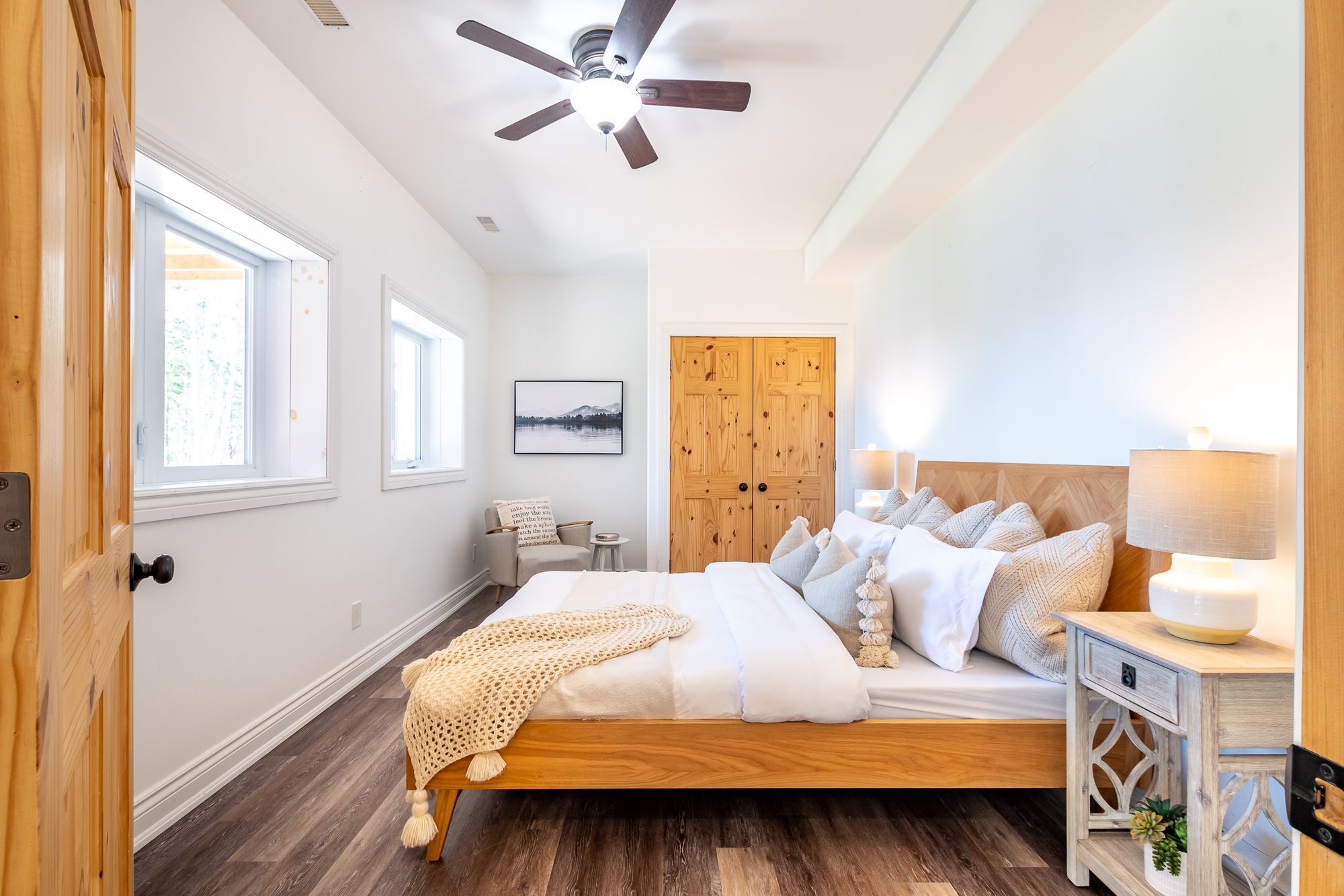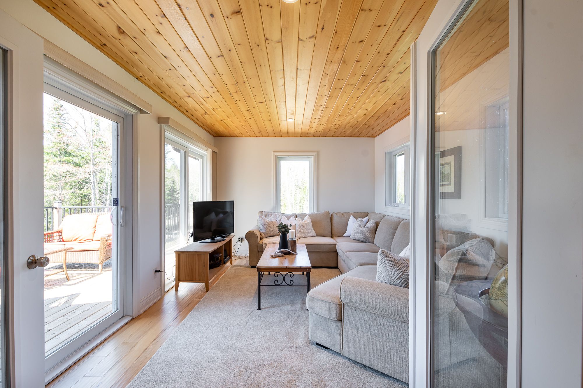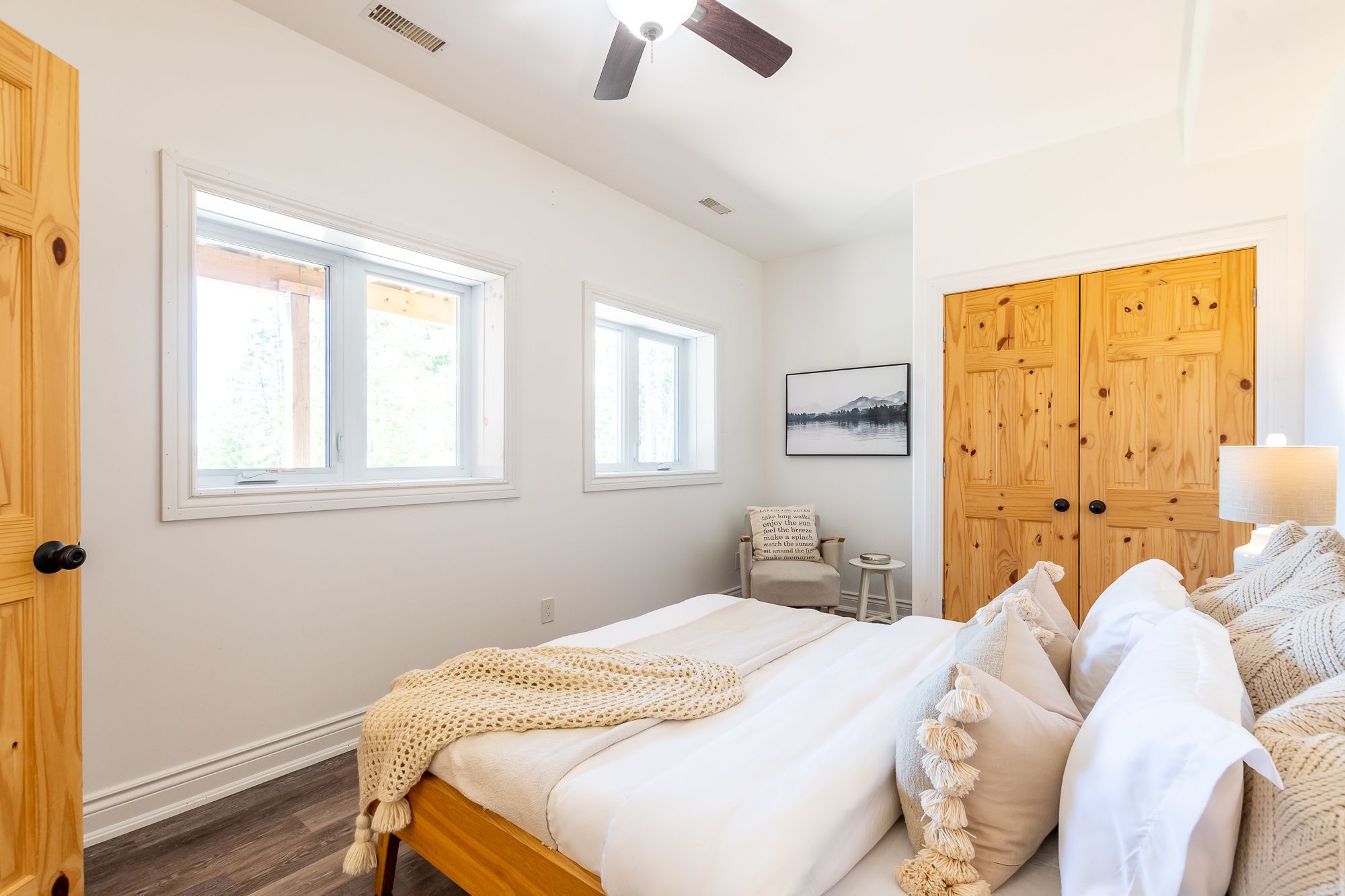 Welcome to your own slice of paradise on Lake Cecebe! Nestled on an expansive 13.37 acres, this stunning property boasts a custom-built home or cottage, meticulously crafted in 2022 to offer the ultimate in lakeside living. Discover hard-packed sandy coves with shallow entry, picturesque rock outcrops, captivating points of land, & convenient boat launch beside the property. Approach this oasis via a dead-end, municipally maintained, year-round road, ensuring both privacy & accessibility. As you step inside, you're greeted by a bright foyer that flows seamlessly into the living room. Floor-to-ceiling windows offer breathtaking views of the coveted southwest-facing waterfront, complemented by a cozy propane fireplace. The main floor features an open-concept layout, with the living room leading into the dining area & kitchen. Adorned with Cinderella stone countertops, the kitchen is a chef's dream, while a Muskoka sunroom beckons you to unwind & soak in the natural beauty that surrounds you. Step outside onto the deck, complete with a propane hook-up, ideal for al fresco dining & entertaining. Throughout the main floor, soaring vaulted ceilings & engineered hickory floors exude warmth & elegance. The primary suite offers a luxurious retreat, boasting a spacious walk-in closet & an ensuite bathroom awaiting your personal touch to become a 4 or 5 piece oasis. Venture downstairs to the walkout level, where you'll find 3 additional generously sized bedrooms, another partially finished washroom, ample storage space, & a meticulous utility room. This exceptional offering also includes a 1800 sq ft detached garage, with a wood stove, 3-piece washroom, & oversized height, ensuring plenty of space for vehicles, watercraft, & all your recreational gear. Built to exceed code standards with careful consideration for the future, this home & garage epitomize quality craftsmanship & attention to detail. Don't miss your opportunity to own this extraordinary retreat on Lake Cecebe!