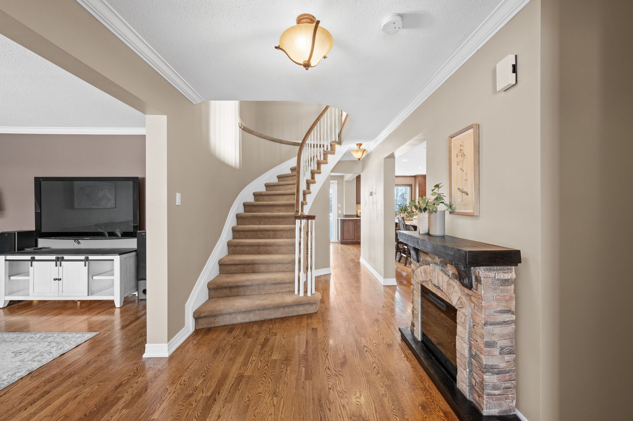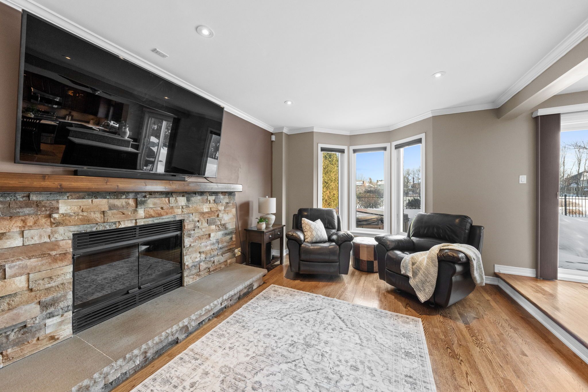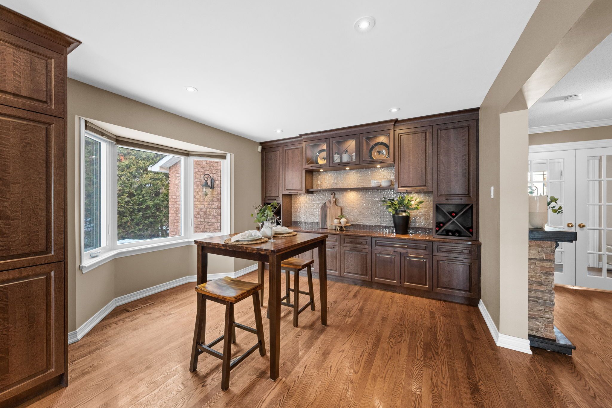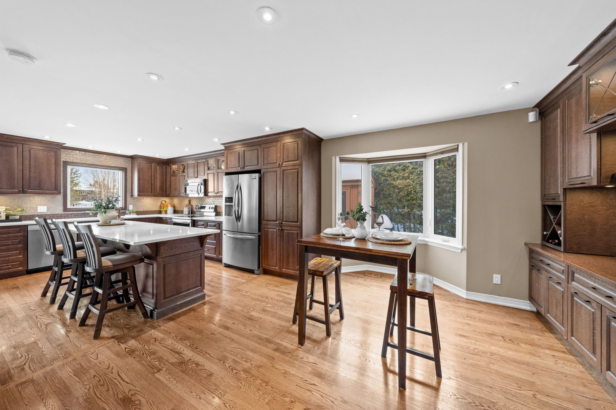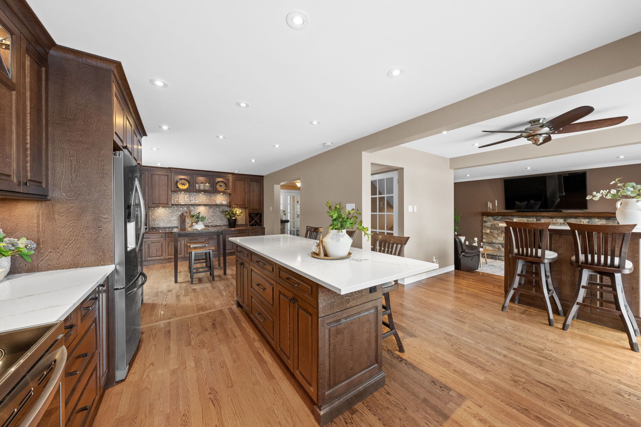 Welcome to this exceptional home in the heart of prestigious Kanata Lakes! Perfectly positioned backing onto greenspace with breathtaking open views. This elegant 4-bedroom, 4-bath detached home offers refined living, sophisticated updates, and a backyard retreat designed for both relaxation and entertaining.The beautifully renovated kitchen is the centerpiece of the home, showcasing quartz countertops, timeless finishes, and an effortless flow into the family living spaces - ideal for hosting in style. A warm and inviting family room with wood-burning fireplace adds character and charm, while the versatile front living room offers the perfect space for a private office or formal sitting area. Upstairs, the expansive primary suite is a true sanctuary. Featuring two closets and a spa-inspired ensuite complete with a freestanding soaker tub, dual vanities, and a glass-enclosed shower, this retreat is designed for comfort and indulgence. Three additional spacious bedrooms and full bathroom complete the upper level.The fully finished lower level elevates the home even further with a generous recreation room, gas fireplace, stylish wet bar with wine fridge, a flexible bonus room ideal for a gym or hobby space, full bathroom, and abundant storage. Step outside to your private resort-style backyard featuring an in-ground salt water pool, hot tub, and mature landscaping - all set against the serene backdrop of a golf course greenspace. A rare opportunity to own a refined home in one of Kanata's most sought-after communities.