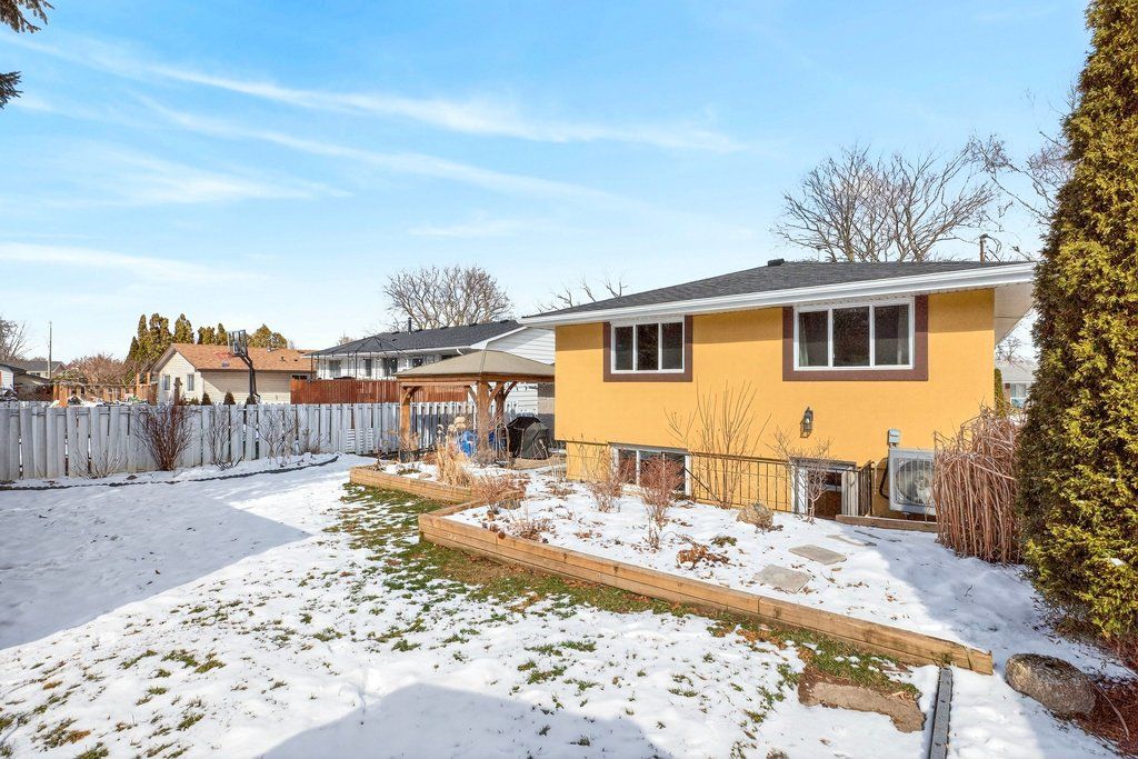Welcome to 36 Hanover Place - a spacious raised bungalow with genuine character, tucked on a quiet street in Gershome, one of East Hamilton's most sought-after neighbourhoods. Step through the front door into a welcoming entry before heading up to the main level, where hardwood floors, a curated gallery wall, and a sun-filled living and dining area set the tone. The kitchen continues the personality with stainless steel appliances, additional eat-in space, and two east-facing windows. Three generous bedrooms and a primary 4-piece bath - thoughtfully renovated in 2025 with new tub, tile, flooring and lighting - complete the main floor. The lower level is anything but a basement. A spacious family room, two additional bedrooms with garden-level windows, a full bath with walk-in shower, and a dedicated laundry room with backyard walk-out make this an ideal in-law suite, home studio, or gym. The attached garage - currently set up as a home gym - also features convenient inside access. Outside, a fully fenced yard with pergola patio, two oversized sheds, a private 3-car drive, and Avesi-designed landscaping with rain garden deliver serious curb appeal. A mature tree - maintained in 2024 - completes the view. Major updates include heat pump, AC, furnace, smart thermostat, roof insulation, and exterior finishes including new gutters with leaf guards, downspouts, fascia, soffits, Govee lighting, and updated paint and fixtures throughout. Close to schools, parks, trails, Glendale Golf Club, and the Red Hill Valley Parkway. This one is the real deal.