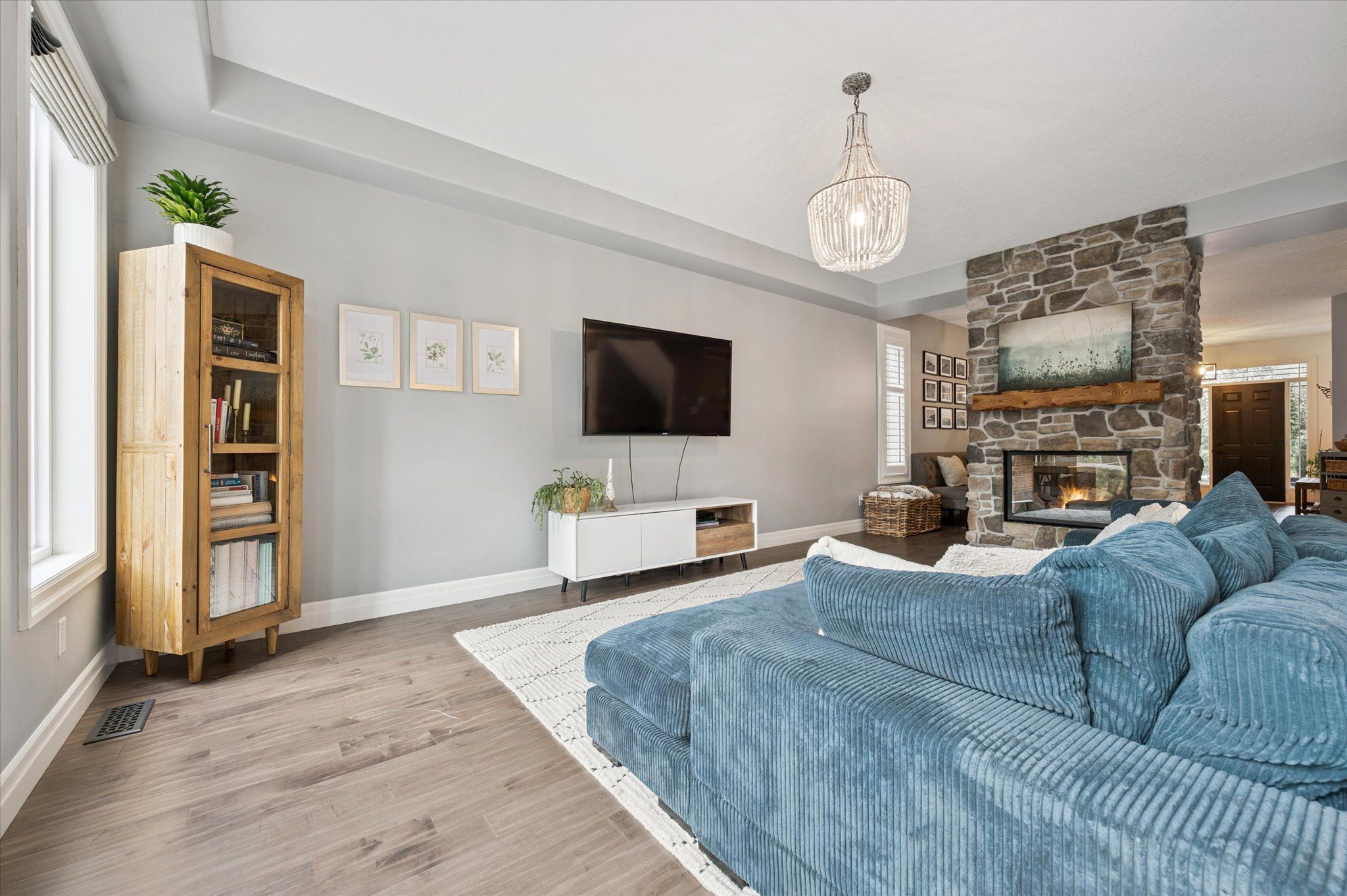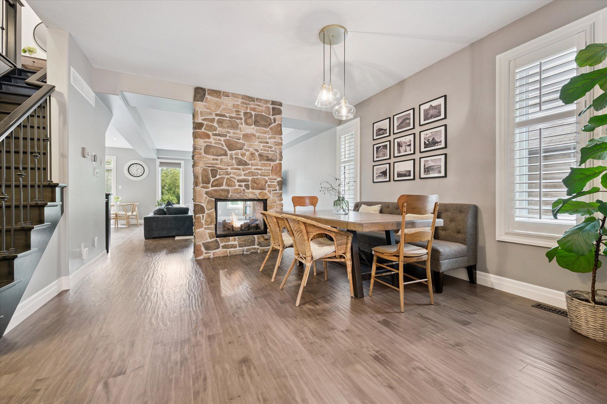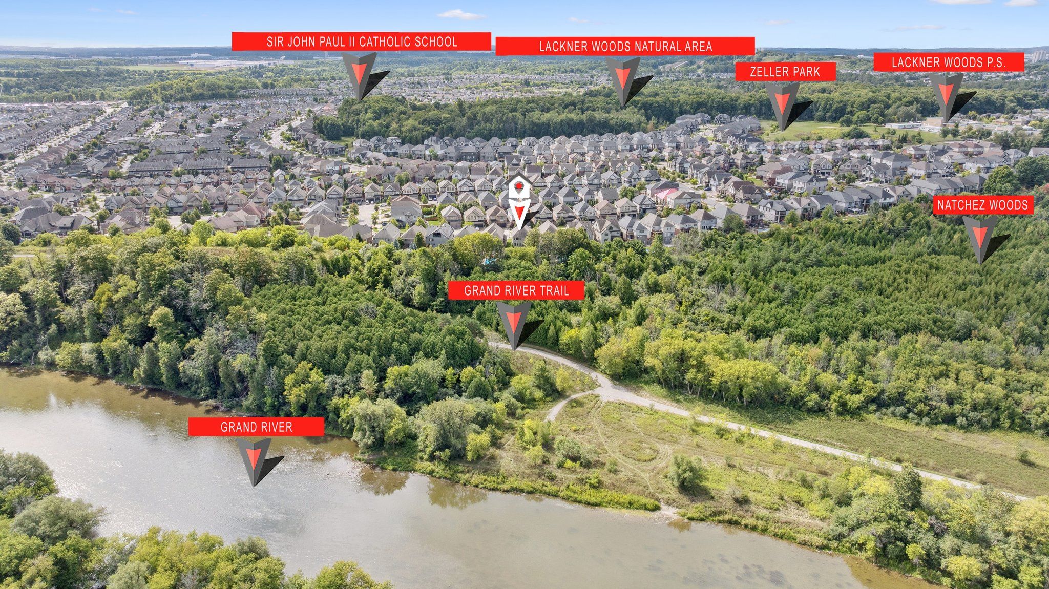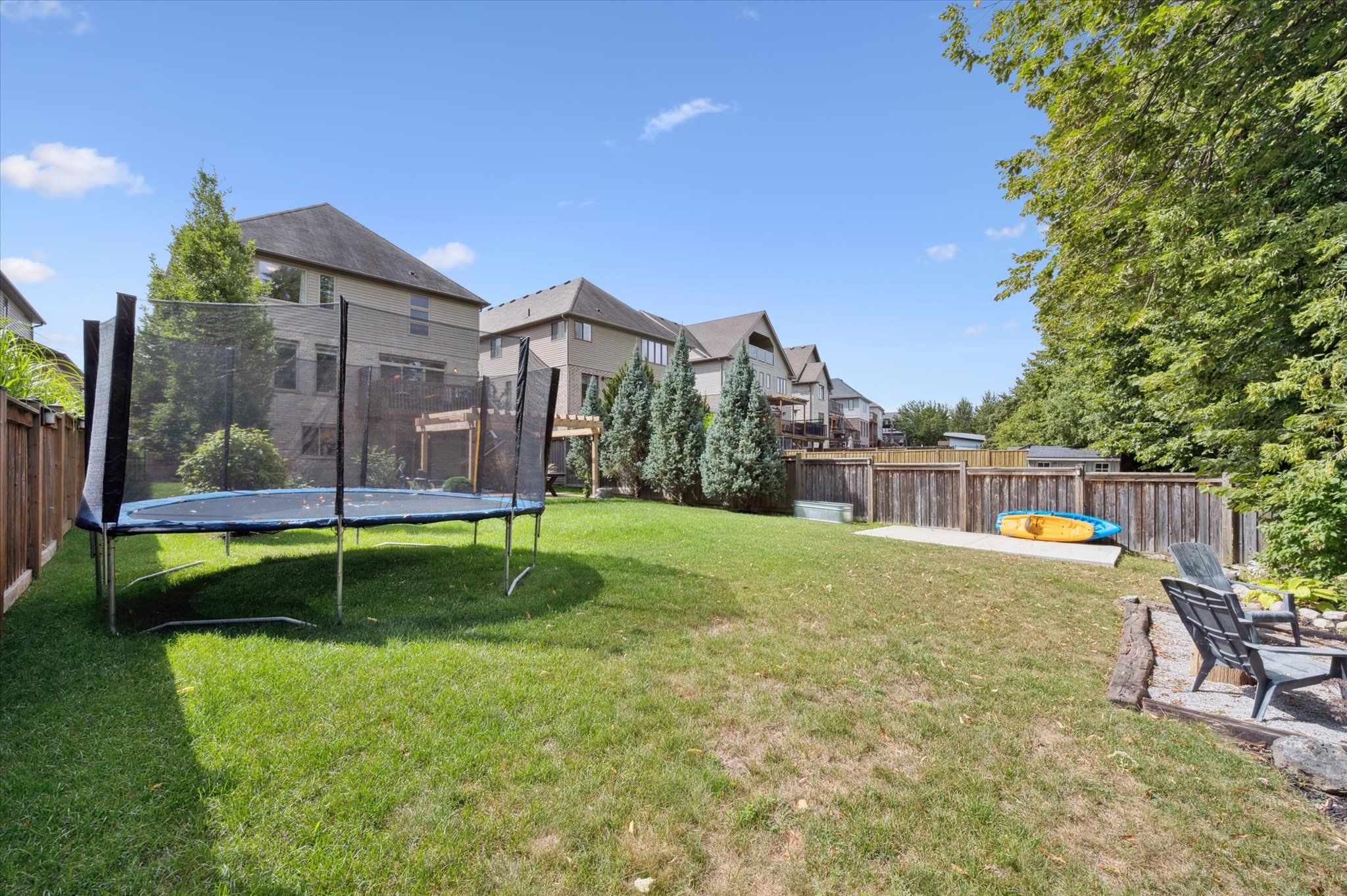 Welcome to this stunning custom-built home in the highly sought-after Lackner Woods neighbourhood in Kitchener. Tucked against a backdrop of mature trees and backing onto green space with no rear neighbours, this home offers a peaceful, nature-inspired lifestyle just minutes from city conveniences. Outdoor enthusiasts will love the endless options for hiking, jogging, canoeing and exploring the surrounding parks and trails including direct access to the scenic Grand Valley Trail and Walter Bean Grand River Trail. Located close to Springmount Park, Idlewood Creek, and the Grand River Natural Area. Chicopee Ski & Summer Resort is also nearby, offering snowboarding, downhill skiing, tubing and more! Inside, the home is equally impressive. The heart of the main floor is a breathtaking floor-to-ceiling Muskoka-style, two-sided stone fireplace that warms both the great room and the dining area. The chefs kitchen is a show stopper featuring an oversized island and open-concept layout with direct access to the large laundry/mudroom and a walkout to the backyard deck. Upstairs, the primary suite is a true retreat with its spacious dressing room/walk-in closet and luxurious 5-piece ensuite. Two additional bedrooms, a 4-piece bath, and a flexible upper-level family room or office space complete this level. The walkout basement offers 9 foot high ceilings, oversized windows, rough-in for a bathroom, and endless potential to customize to your needs. Step outside to enjoy additional living space with a backyard deck off the kitchen, a beautiful stone patio, outdoor firepit and a level yard that backs onto nature. A 16' x 10' concrete pad is ready for your future shed. Situated on one of the largest lots in the neighbourhood, this home offers a Muskoka-like setting right in the city with easy access to Highway 401, Highway 24, Guelph, and all the amenities you need. Come experience the perfect blend of nature, comfort, and convenience.