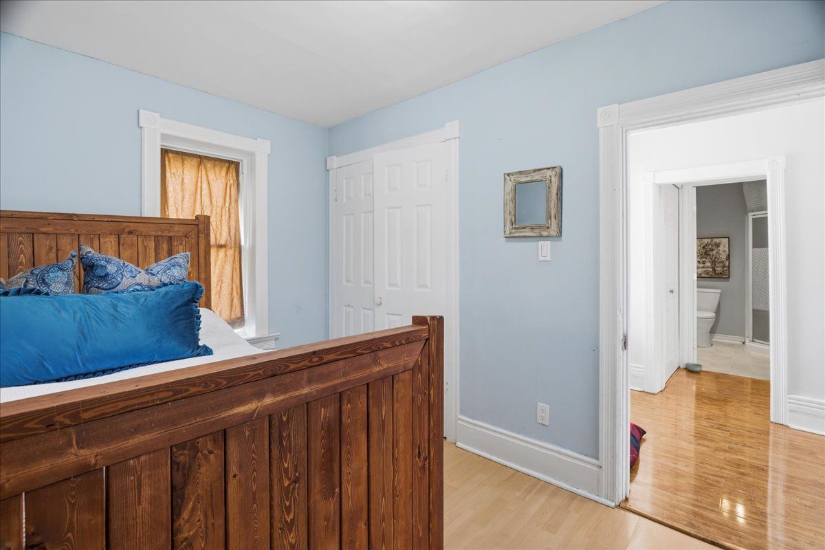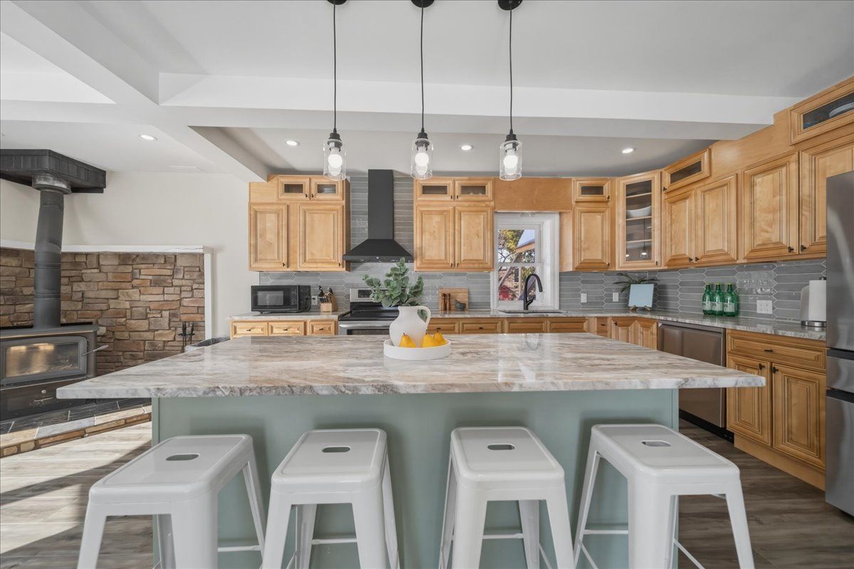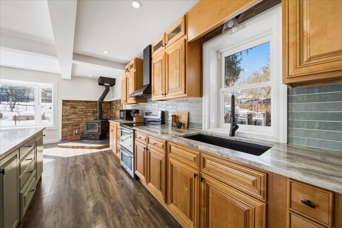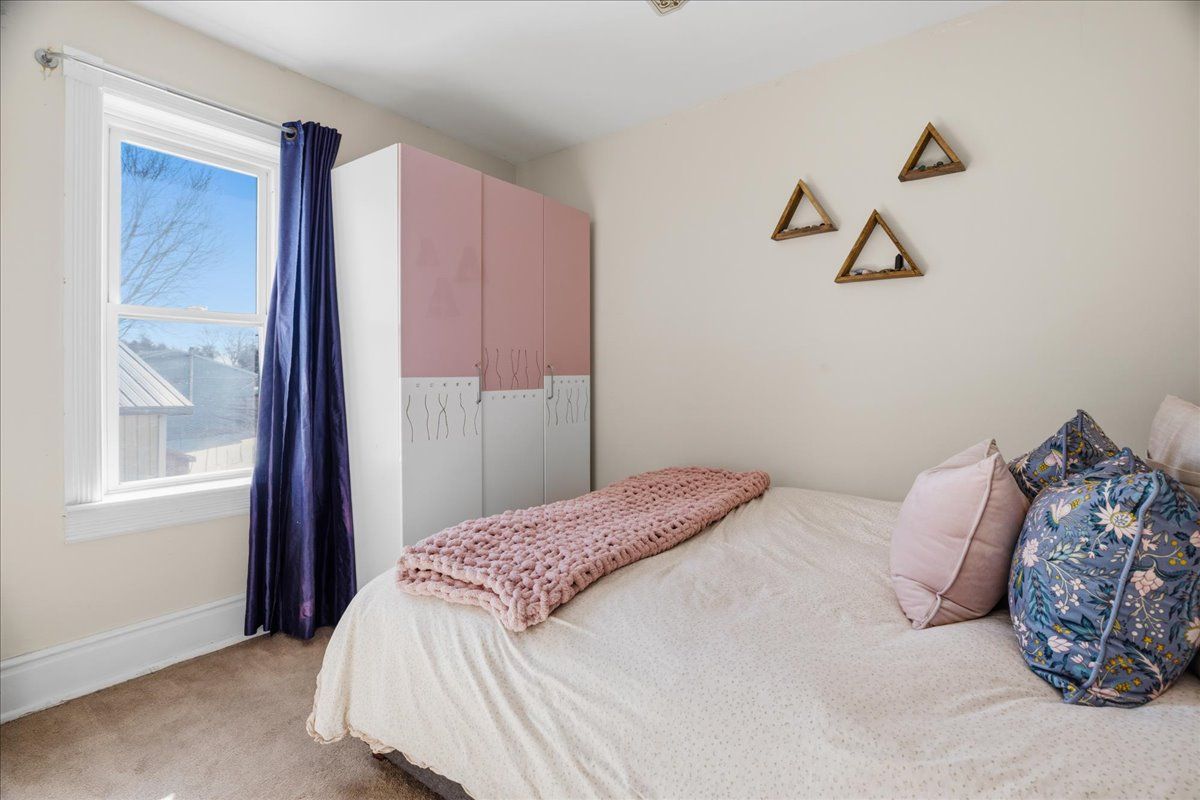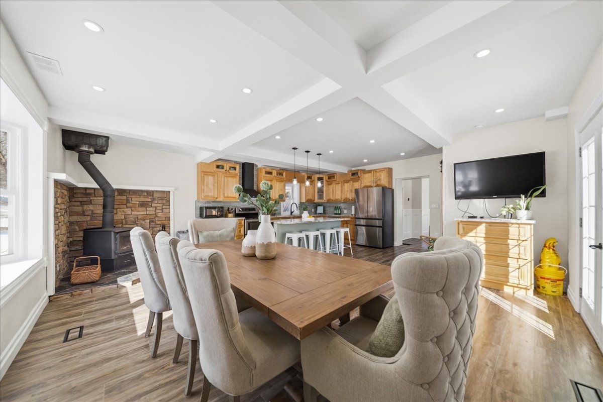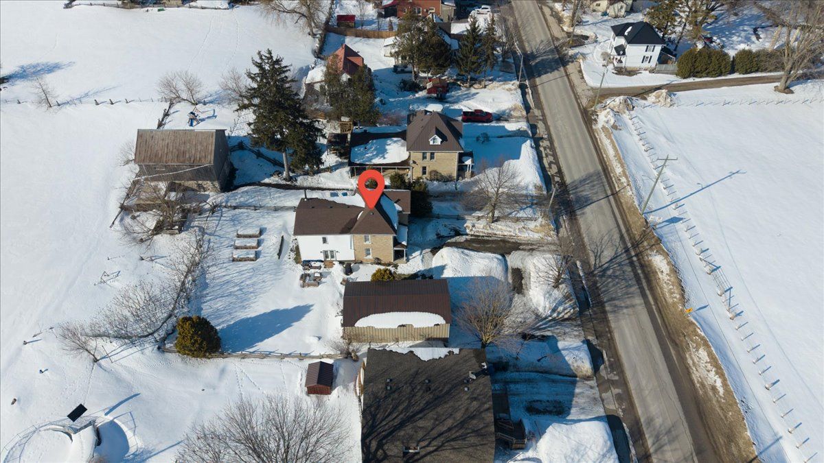 Welcome to this beautifully updated two-story brick home in the charming community of Holstein, where small-town living meets modern comfort. The main level offers a bright, open-concept kitchen and dining area filled with natural light, a convenient main-floor bathroom, and a versatile room that works perfectly as a home office or additional bedroom. Upstairs, you'll find a spacious primary bedroom complete with a walk-in closet and a private ensuite that includes a washer and dryer. Three additional cozy bedrooms and a second bathroom with a stand-up shower complete the upper level, offering plenty of space for family or guests. Year-round comfort is provided by an energy-efficient heat pump system installed in September 2025, while a wood stove adds warmth and cozy character on those really cold winter mornings. Step outside and enjoy a backyard that gardeners will love, featuring a patio and raised garden beds ready for the growing season. The detached shop is a standout feature, offering excellent space for hobbyists, tradespeople, or additional storage. With its functional layout, classic brick character, and thoughtful updates, this move-in-ready home offers a wonderful opportunity to enjoy the slower pace of small-town living. It's the kind of place where neighbours wave, mornings start a little slower, and there's still room to breathe. Schedule your private viewing today!