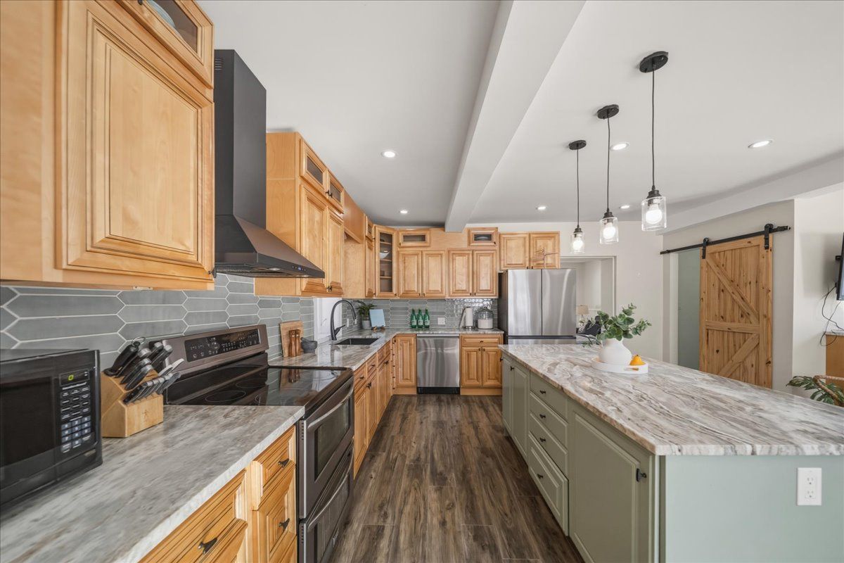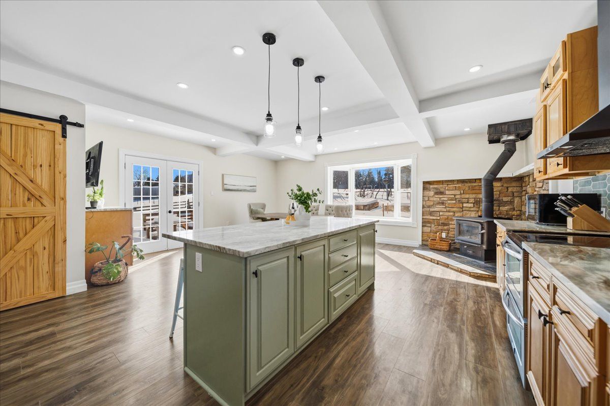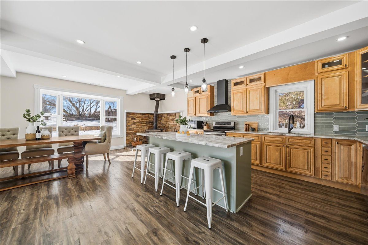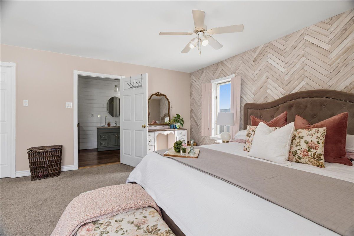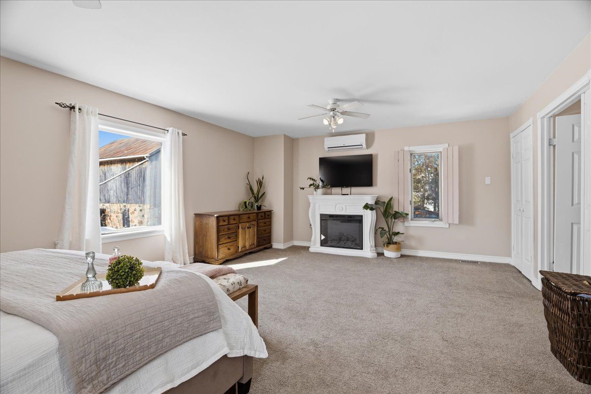 Welcome to this beautifully updated two-story brick home in the charming community of Holstein, where small-town living meets modern comfort. The main level offers a bright, open-concept kitchen and dining area filled with natural light, a convenient main-floor bathroom, and a versatile room that works perfectly as a home office or additional bedroom. Upstairs, you'll find a spacious primary bedroom complete with a walk-in closet and a private ensuite that includes a washer and dryer. Three additional cozy bedrooms and a second bathroom with a stand-up shower complete the upper level, offering plenty of space for family or guests. Year-round comfort is provided by an energy-efficient heat pump system installed in September 2025, while a wood stove adds warmth and cozy character on those really cold winter mornings. Step outside and enjoy a backyard that gardeners will love, featuring a patio and raised garden beds ready for the growing season. The detached shop is a standout feature, offering excellent space for hobbyists, tradespeople, or additional storage. With its functional layout, classic brick character, and thoughtful updates, this move-in-ready home offers a wonderful opportunity to enjoy the slower pace of small-town living. It's the kind of place where neighbours wave, mornings start a little slower, and there's still room to breathe. Schedule your private viewing today!