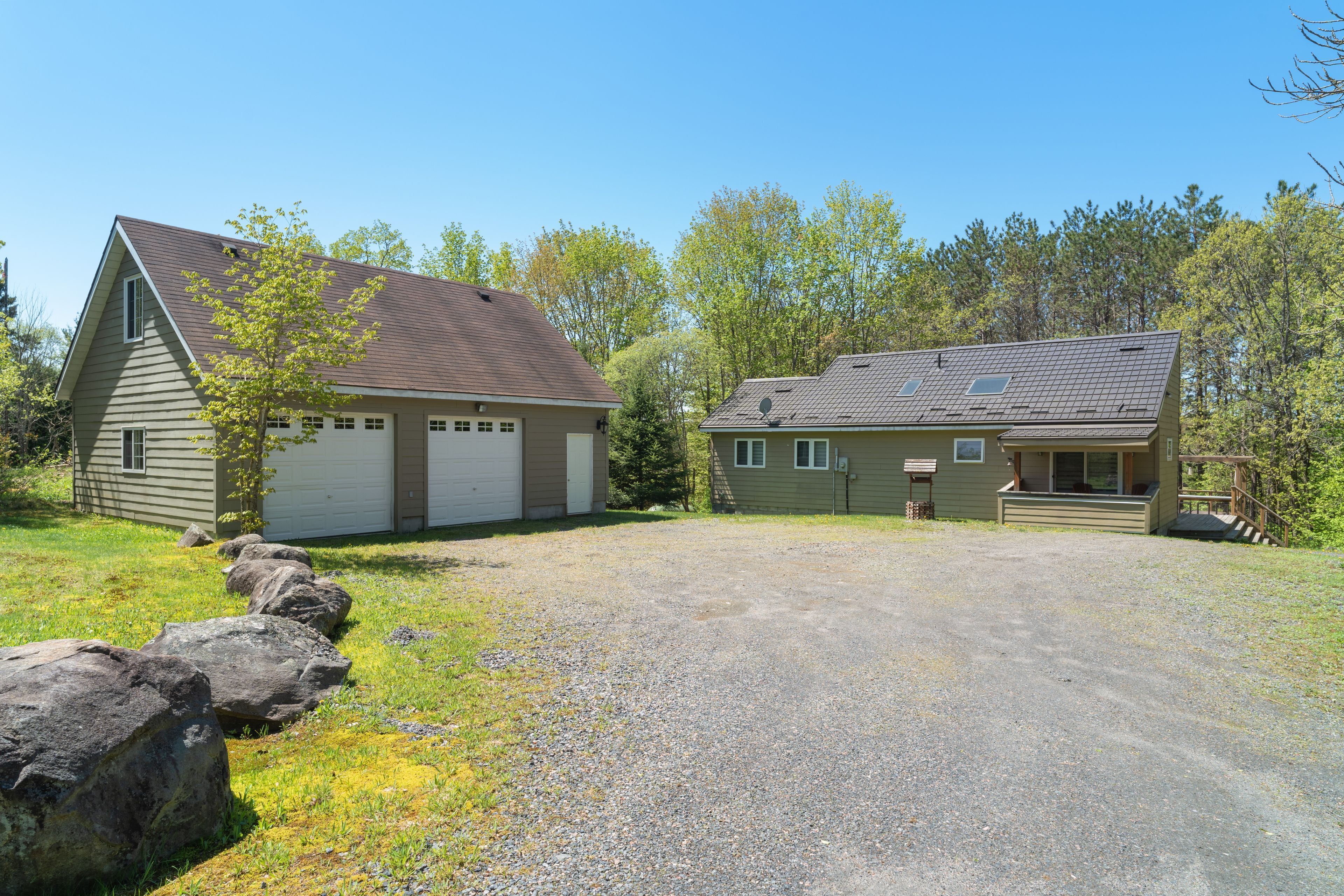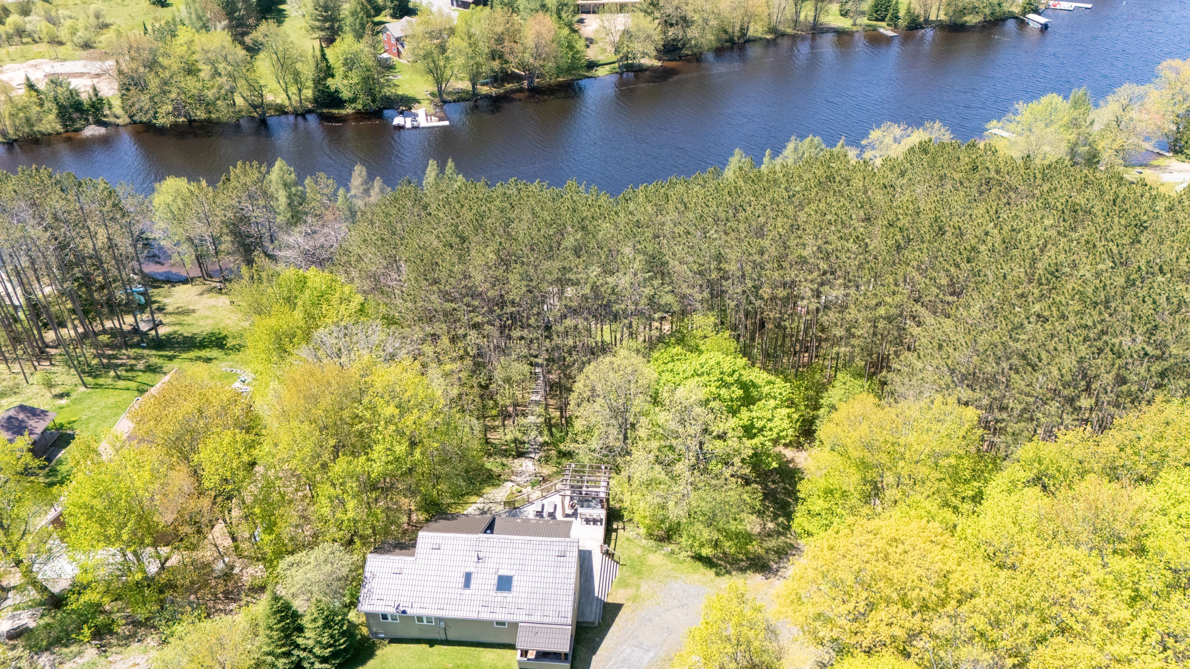 The full cottage country experience! 4 season, bungalow, winterize home/cottage on large and desirable Lake Manitouwabing in McKellar. A serene drive into 3.1 acres of privacy and 150 feet of waterfront shoreline enjoyment. Enjoy the calmness of Mother Nature and gaze at the glistening waters from your Lake House deck. Meticulous placement of trees for privacy and view. No details forgotten for this well built and maintained Viceroy home Hardwood flooring and pine ceilings. Granite counter tops. New top of the line ensuite bathroom. Vaulted ceilings throughout. The open concept is great for entertaining. Large windows bringing in plenty of natural light. Waterside shed to store your water toys or have yourself a tiki party. Newer steel roof. Propane forced air heating and propane fireplace for getting cozy on a cool fall day and outdoor winter fun. Drilled well. Double car garage with plenty of storage space. Short drive into McKellar for amenities and your mixers, golfing and community centre. Just down the highway join the cross country ski club. Visit Parry Sound for big store shopping, boutique shops, restaurants, hospital, schools, theatre of the arts and much more. All season activities from your door step with great swimming, boating, fishing, snowmobiling, ATVing and Ice fishing. Living life for experience and creating fond memories. Click on the media arrow for virtual tour, floor plans and 3D imaging.