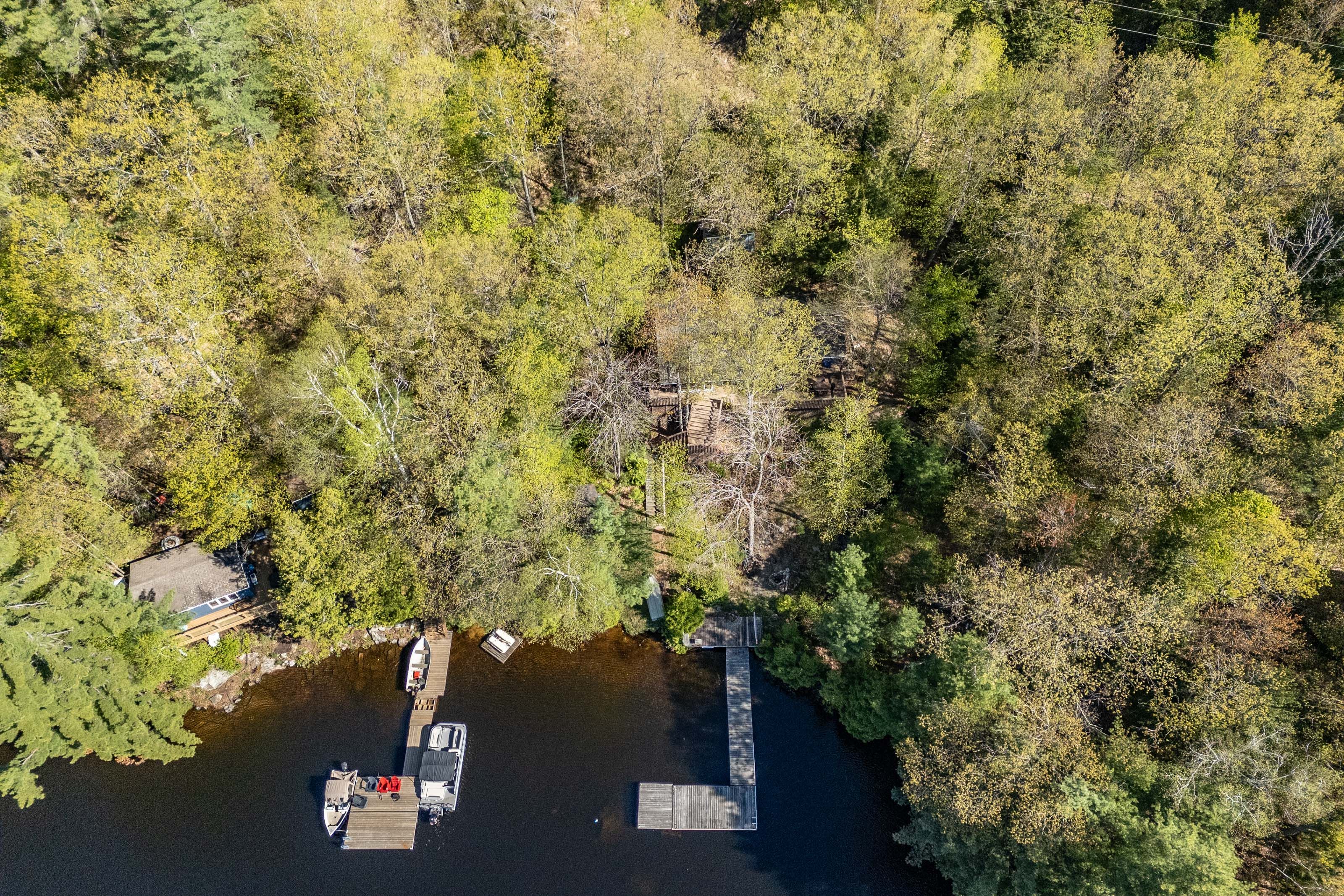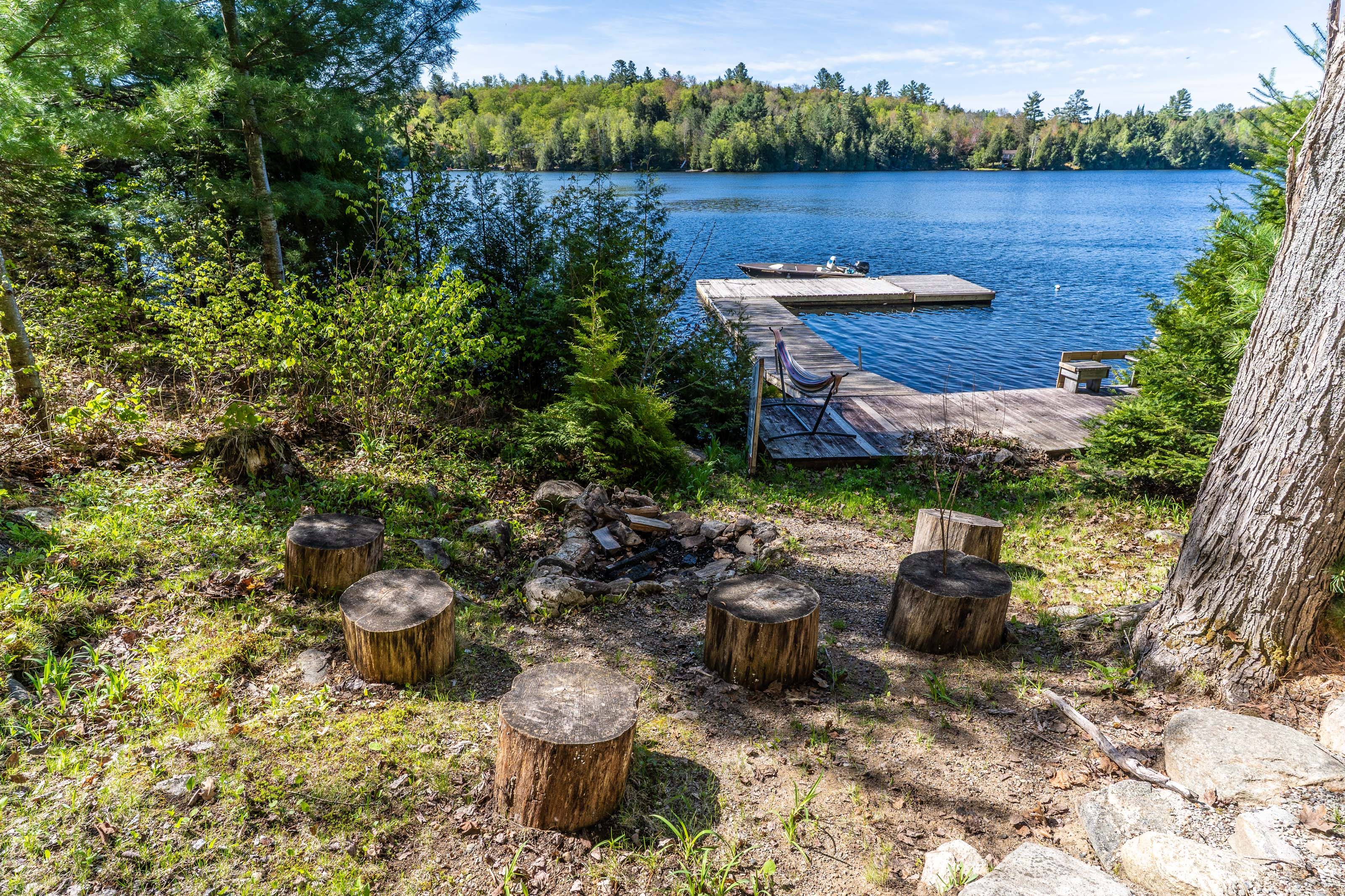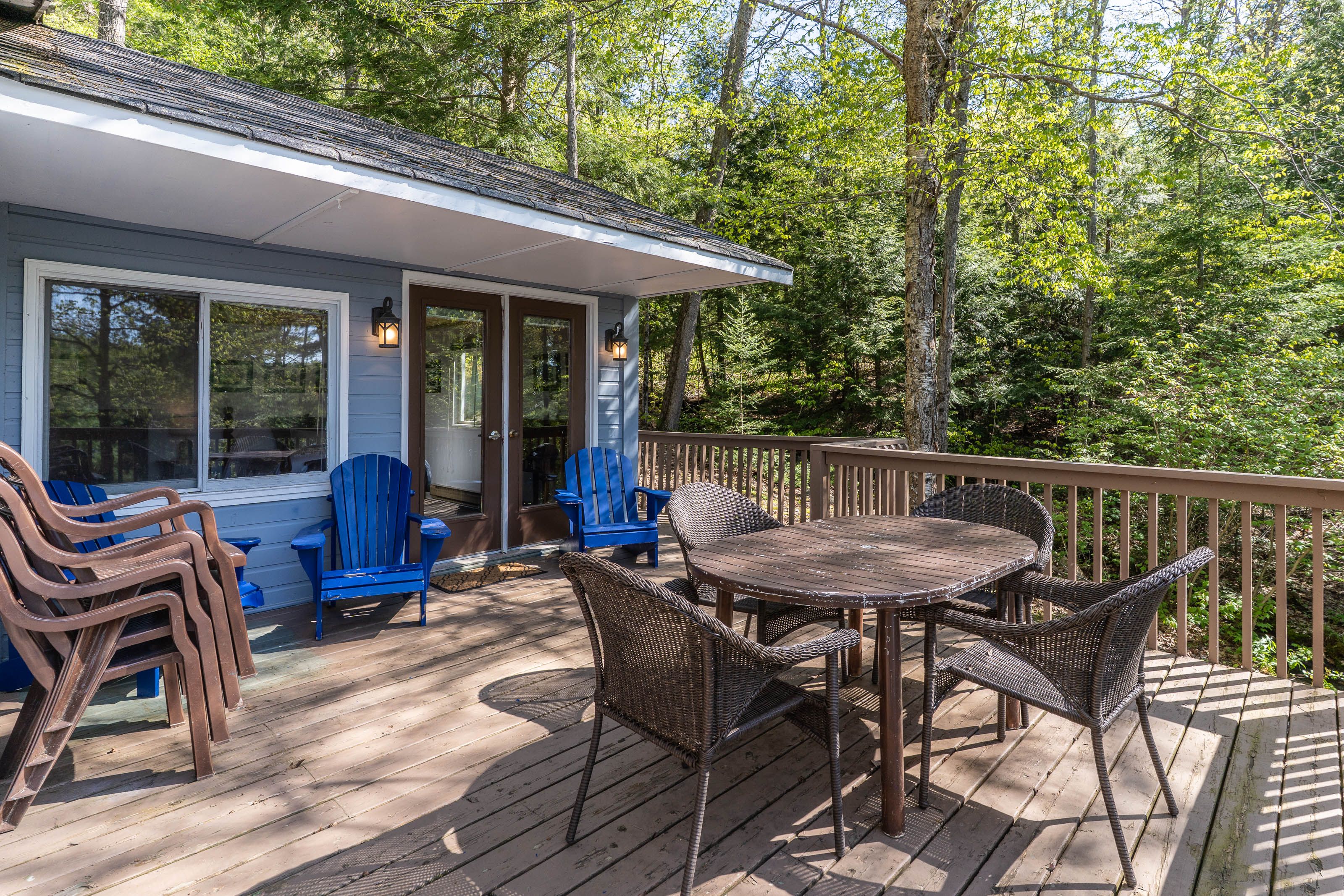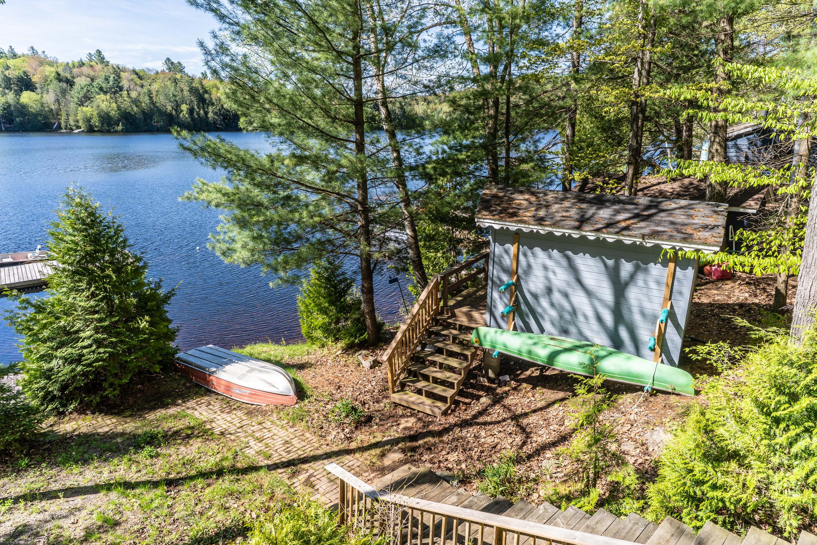 Charming waterfront retreat on Raven Lake. Fully Furnished! Welcome to your private lakeside paradise with 141 feet of waterfront on sought-after Raven Lake. Set in a tranquil bay, just a short 1-minute boat ride from your own private boat slip, this fully furnished 3-bedroom cottage + large bunkie offers the perfect blend of rustic charm and modern comfort.The main cottage features an open-concept layout with stunning lake views from the kitchen and living room with a walkout to a large sundeck. The primary bedroom is executive-size, and all bedrooms boast new laminate flooring (installed 2 years ago). A quaint stream with a picturesque bridge runs through the property from spring until late July, adding to the serene ambiance. Professionally rebuilt over the last 25 years and supported by solid concrete and wooden piers. Electric baseboard heaters and a cozy wood stove provide warmth throughout. A 3-piece bathroom with laundry, fully equipped kitchen and pine accents enhance the cottage vibe. There is a water purification system (with UV and reverse osmosis) and septic system. High speed internet is available, and newer appliances and furnishings are included. Outdoors, enjoy a large deck wrapping around the front and sides of the cottage, perfect for soaking in gorgeous lake views and nature. The property includes a cedar sauna in the pump house, a spacious workshop man cave with fridge and workbench and a large wooden L-shaped dock with a swim ladder. Bonus: Ownership includes a transferable membership and dock slip with Raven Lake Dock Association (valued at ~$10,000 & annual fees of $700). Negotiable: Trailer and 2006 20 ft Pontoon Boat, Make/Model is Misty Harbor, 50 HP outboard motor in very good condition with newer upholstery on seats in 2022. Only 5 minutes to Dorset, 30 min to Huntsville & Minden and 45 min to Bracebridge and Algonquin Park. This turn-key property is ready for you - just bring your suitcase and start your memories here!