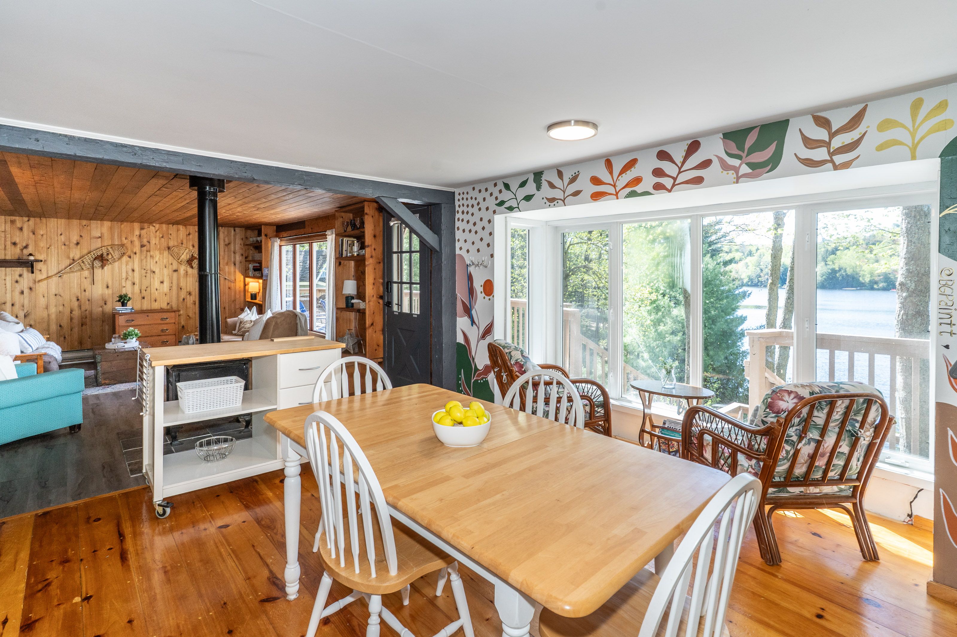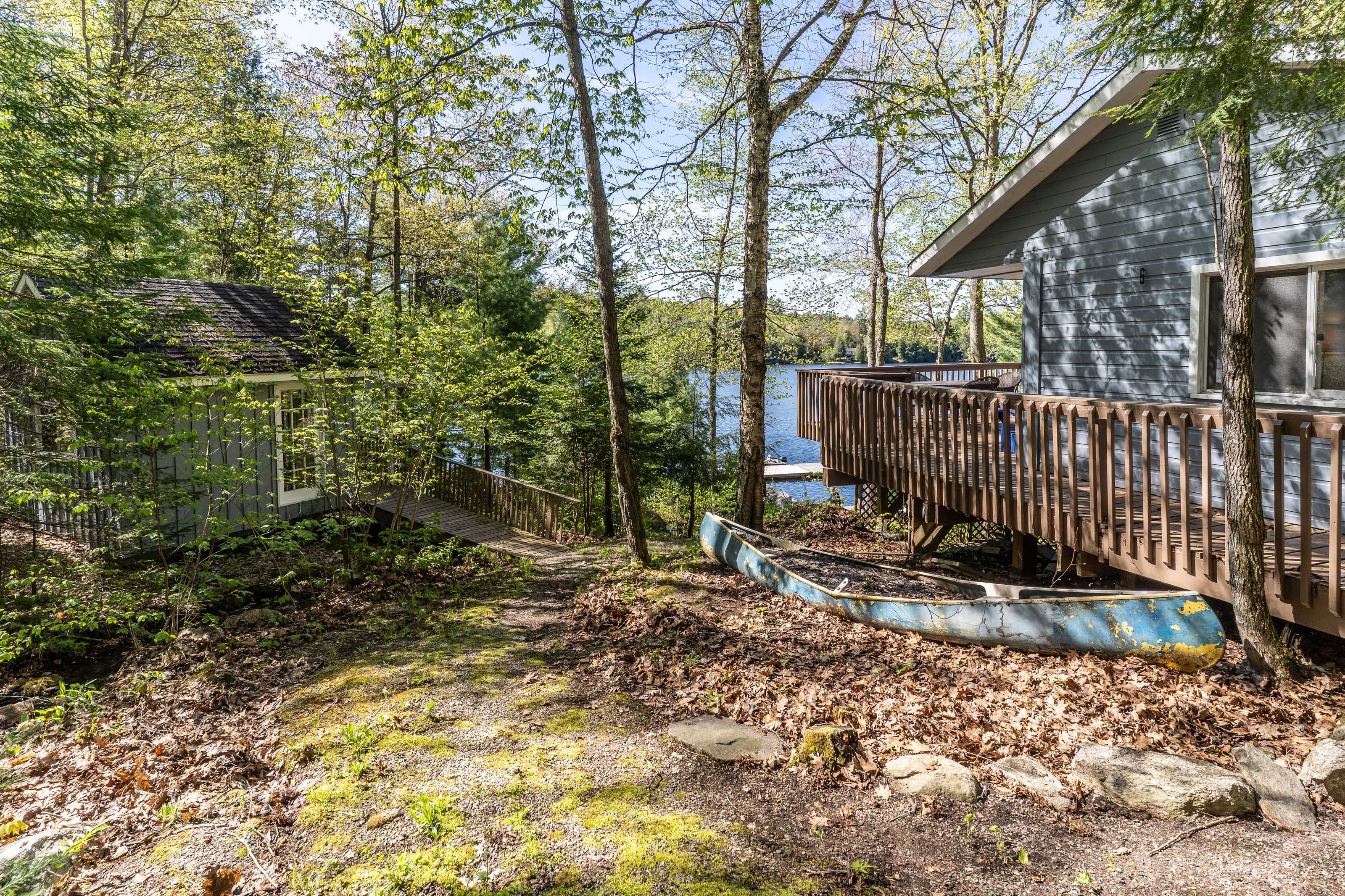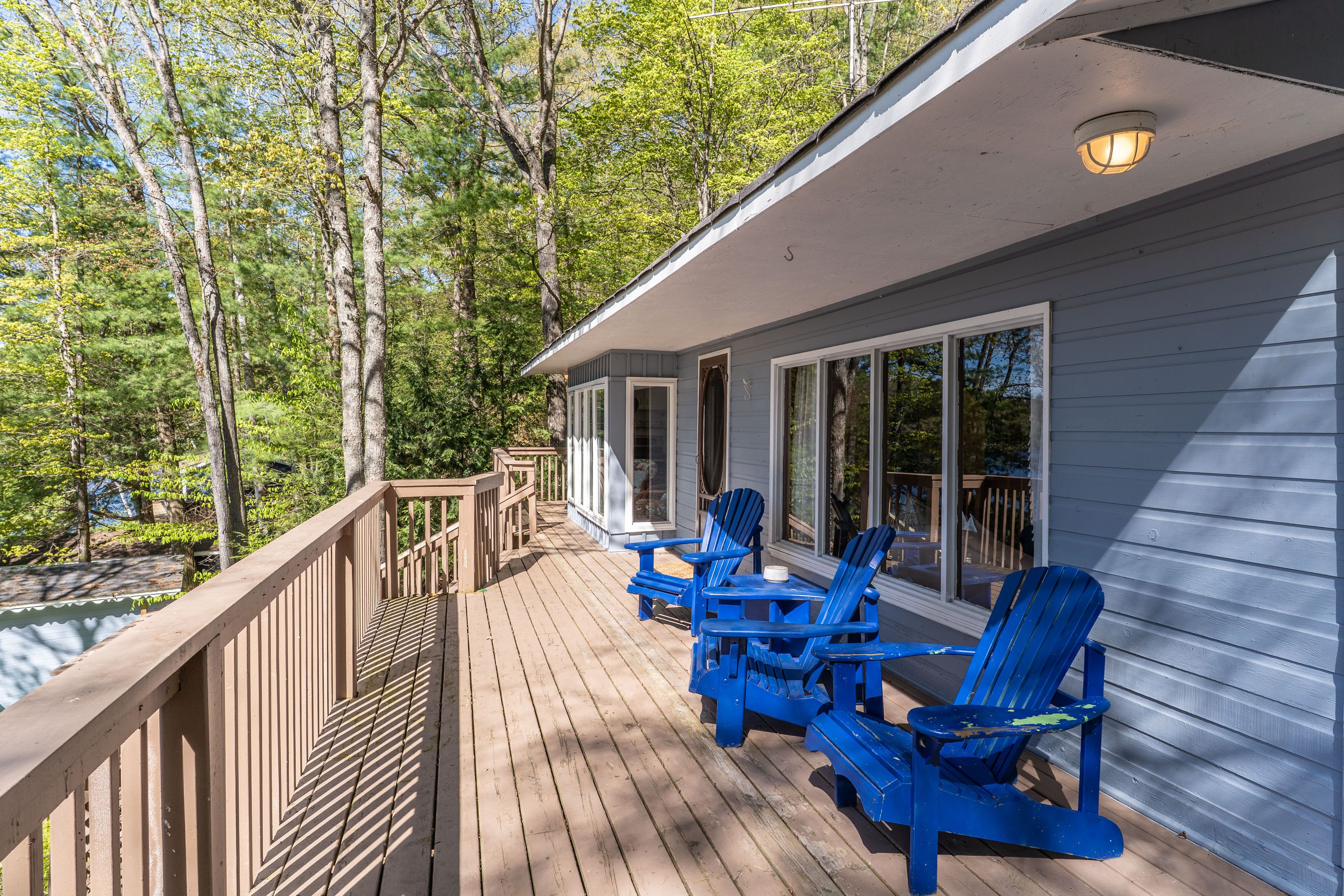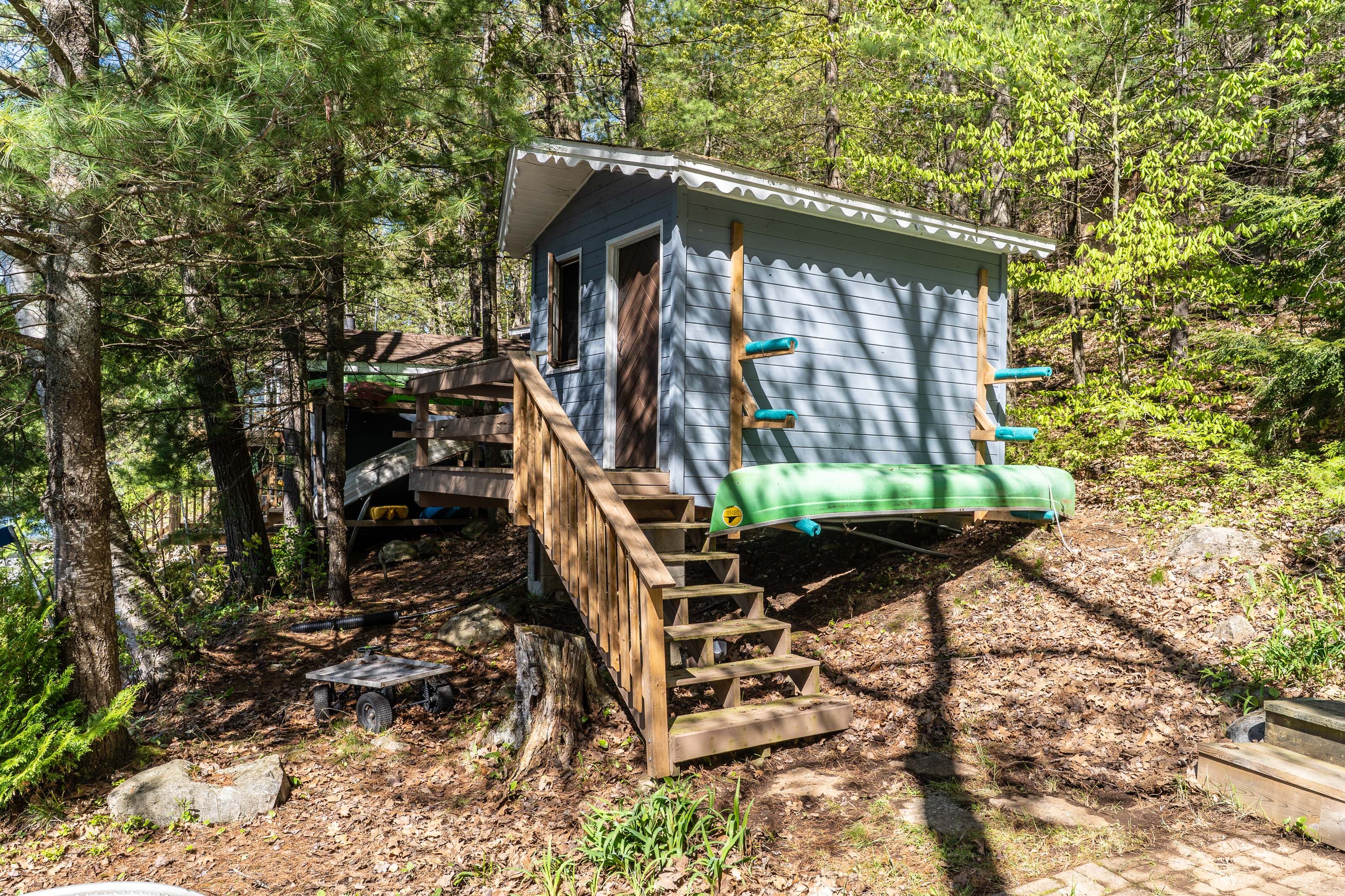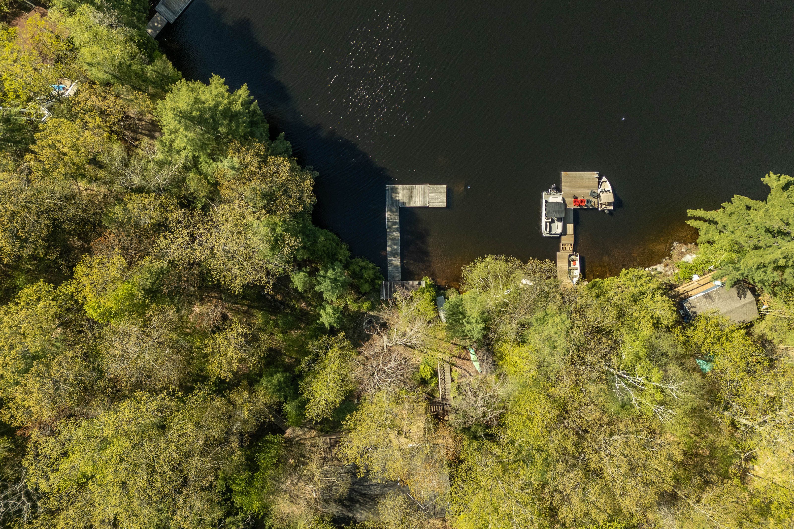 Charming waterfront retreat on Raven Lake. Fully Furnished! Welcome to your private lakeside paradise with 141 feet of waterfront on sought-after Raven Lake. Set in a tranquil bay, just a short 1-minute boat ride from your own private boat slip, this fully furnished 3-bedroom cottage + large bunkie offers the perfect blend of rustic charm and modern comfort.The main cottage features an open-concept layout with stunning lake views from the kitchen and living room with a walkout to a large sundeck. The primary bedroom is executive-size, and all bedrooms boast new laminate flooring (installed 2 years ago). A quaint stream with a picturesque bridge runs through the property from spring until late July, adding to the serene ambiance. Professionally rebuilt over the last 25 years and supported by solid concrete and wooden piers. Electric baseboard heaters and a cozy wood stove provide warmth throughout. A 3-piece bathroom with laundry, fully equipped kitchen and pine accents enhance the cottage vibe. There is a water purification system (with UV and reverse osmosis) and septic system. High speed internet is available, and newer appliances and furnishings are included. Outdoors, enjoy a large deck wrapping around the front and sides of the cottage, perfect for soaking in gorgeous lake views and nature. The property includes a cedar sauna in the pump house, a spacious workshop man cave with fridge and workbench and a large wooden L-shaped dock with a swim ladder. Bonus: Ownership includes a transferable membership and dock slip with Raven Lake Dock Association (valued at ~$10,000 & annual fees of $700). Negotiable: Trailer and 2006 20 ft Pontoon Boat, Make/Model is Misty Harbor, 50 HP outboard motor in very good condition with newer upholstery on seats in 2022. Only 5 minutes to Dorset, 30 min to Huntsville & Minden and 45 min to Bracebridge and Algonquin Park. This turn-key property is ready for you - just bring your suitcase and start your memories here!