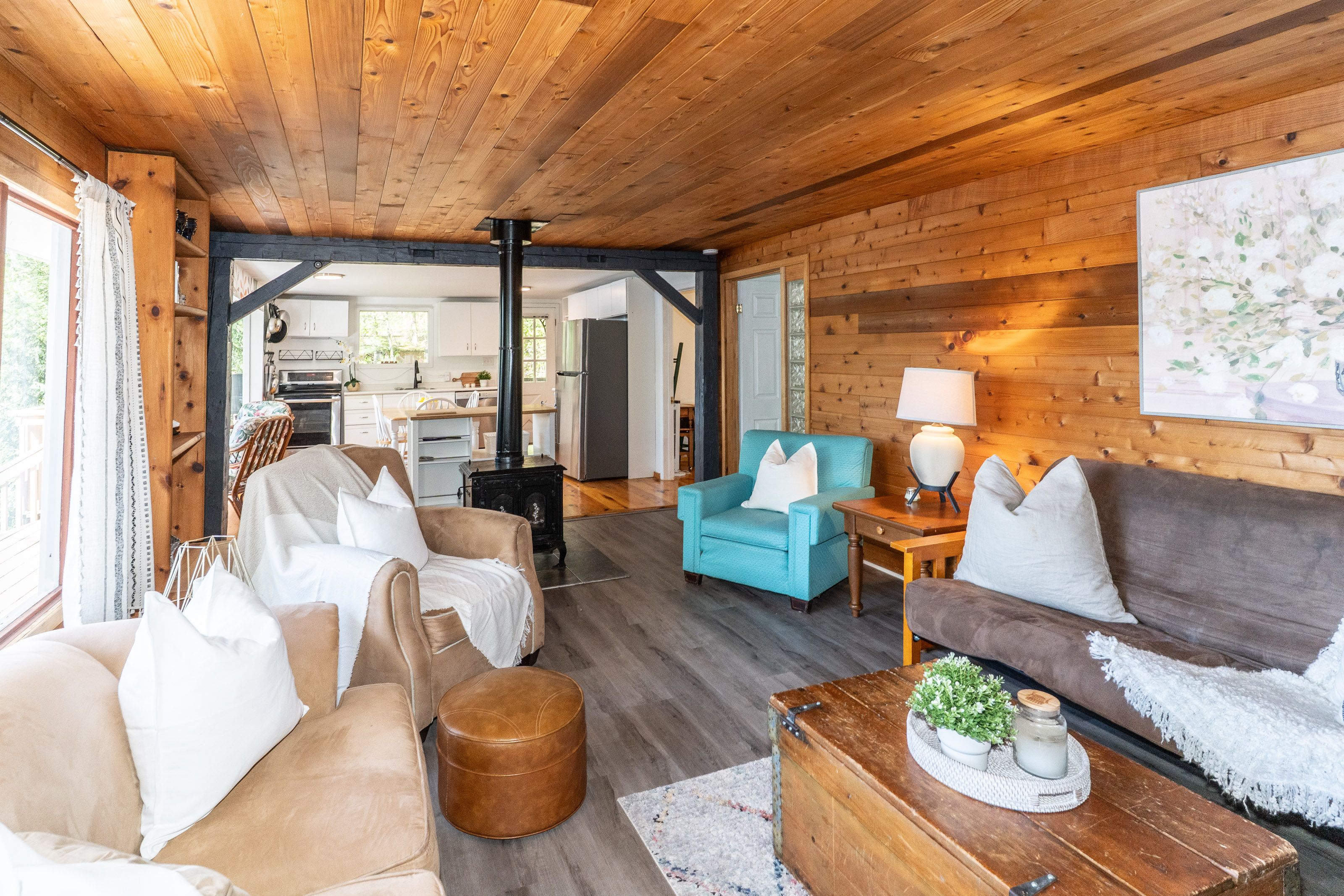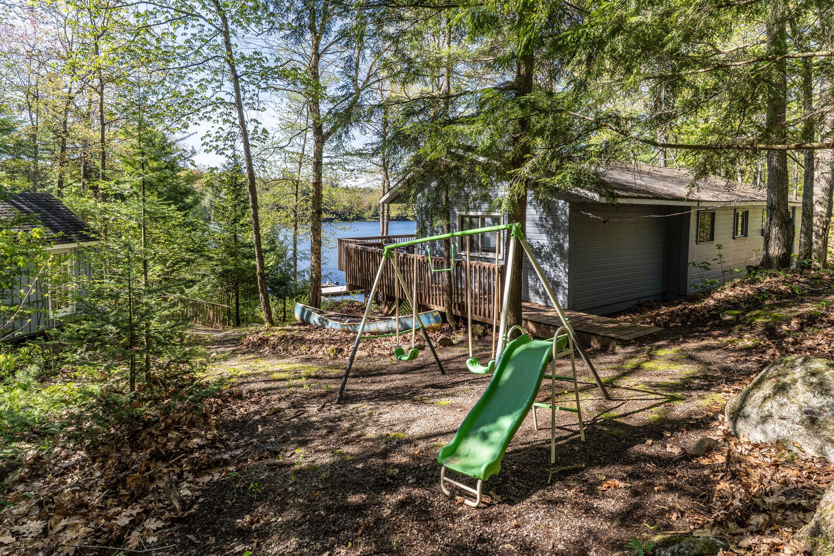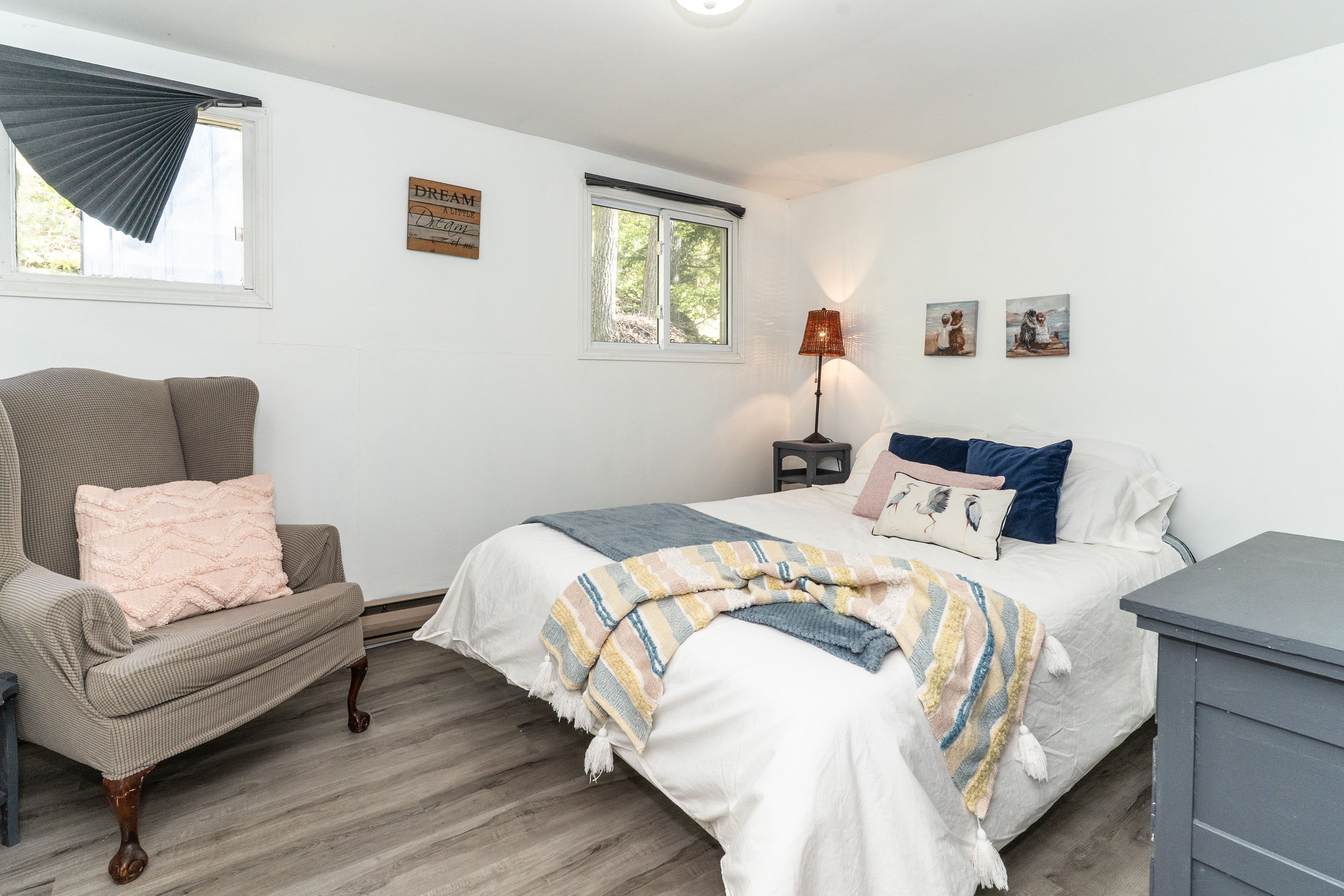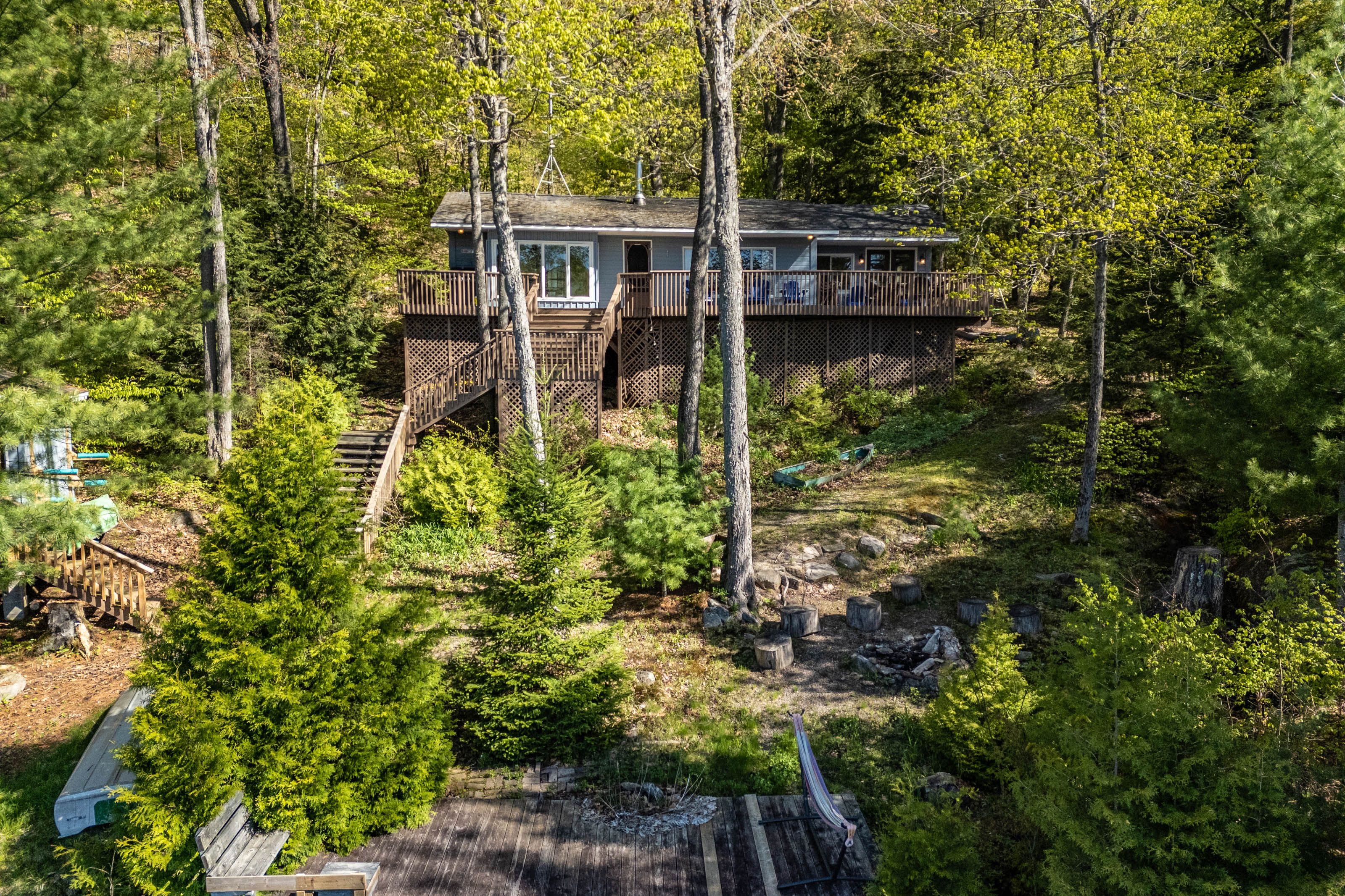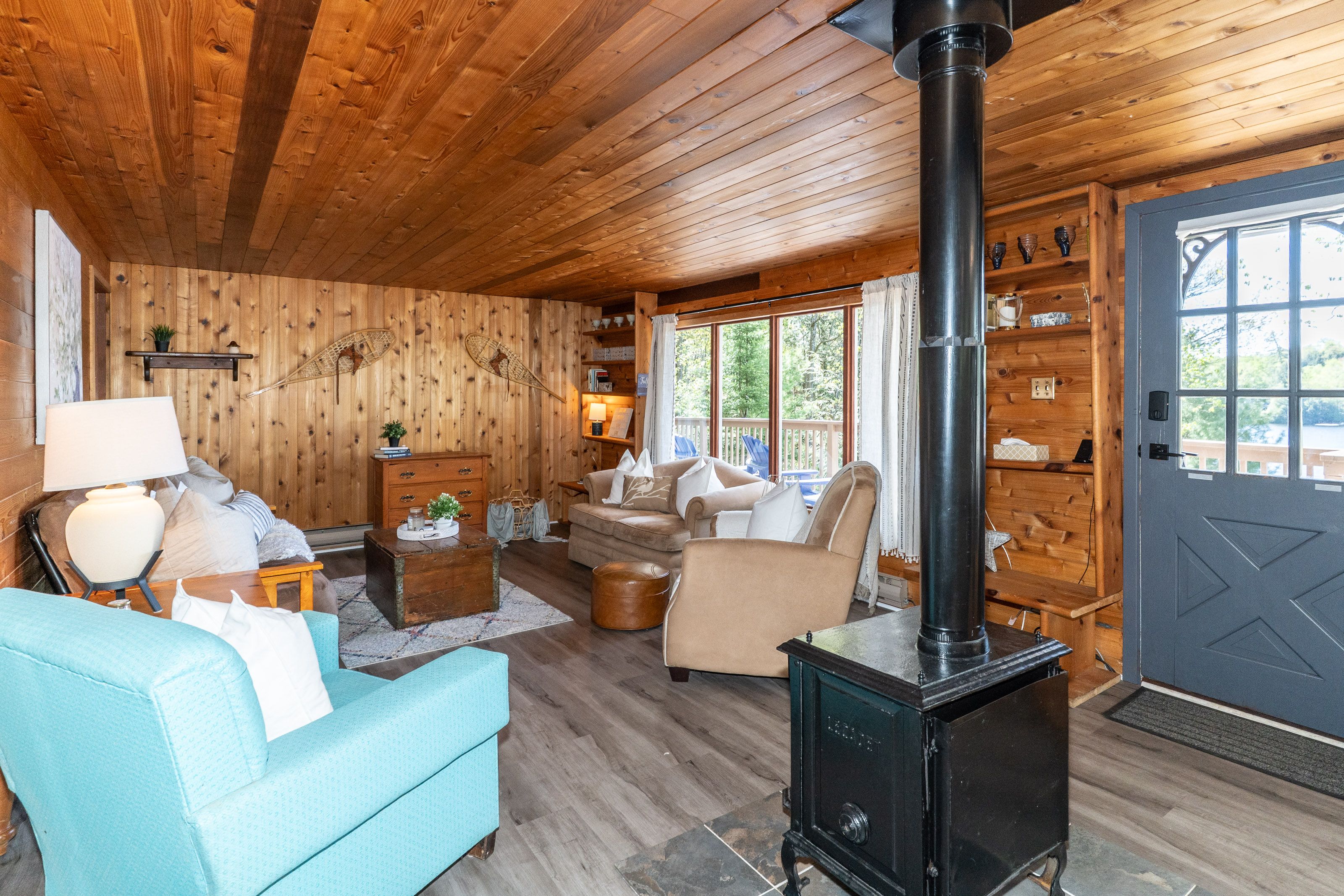Charming waterfront retreat on Raven Lake. Fully Furnished! Welcome to your private lakeside paradise with 141 feet of waterfront on sought-after Raven Lake. Set in a tranquil bay, just a short 1-minute boat ride from your own private boat slip, this fully furnished 3-bedroom cottage + large bunkie offers the perfect blend of rustic charm and modern comfort.The main cottage features an open-concept layout with stunning lake views from the kitchen and living room with a walkout to a large sundeck. The primary bedroom is executive-size, and all bedrooms boast new laminate flooring (installed 2 years ago). A quaint stream with a picturesque bridge runs through the property from spring until late July, adding to the serene ambiance. Professionally rebuilt over the last 25 years and supported by solid concrete and wooden piers. Electric baseboard heaters and a cozy wood stove provide warmth throughout. A 3-piece bathroom with laundry, fully equipped kitchen and pine accents enhance the cottage vibe. There is a water purification system (with UV and reverse osmosis) and septic system. High speed internet is available, and newer appliances and furnishings are included. Outdoors, enjoy a large deck wrapping around the front and sides of the cottage, perfect for soaking in gorgeous lake views and nature. The property includes a cedar sauna in the pump house, a spacious workshop man cave with fridge and workbench and a large wooden L-shaped dock with a swim ladder. Bonus: Ownership includes a transferable membership and dock slip with Raven Lake Dock Association (valued at ~$10,000 & annual fees of $700). Negotiable: Trailer and 2006 20 ft Pontoon Boat, Make/Model is Misty Harbor, 50 HP outboard motor in very good condition with newer upholstery on seats in 2022. Only 5 minutes to Dorset, 30 min to Huntsville & Minden and 45 min to Bracebridge and Algonquin Park. This turn-key property is ready for you - just bring your suitcase and start your memories here!