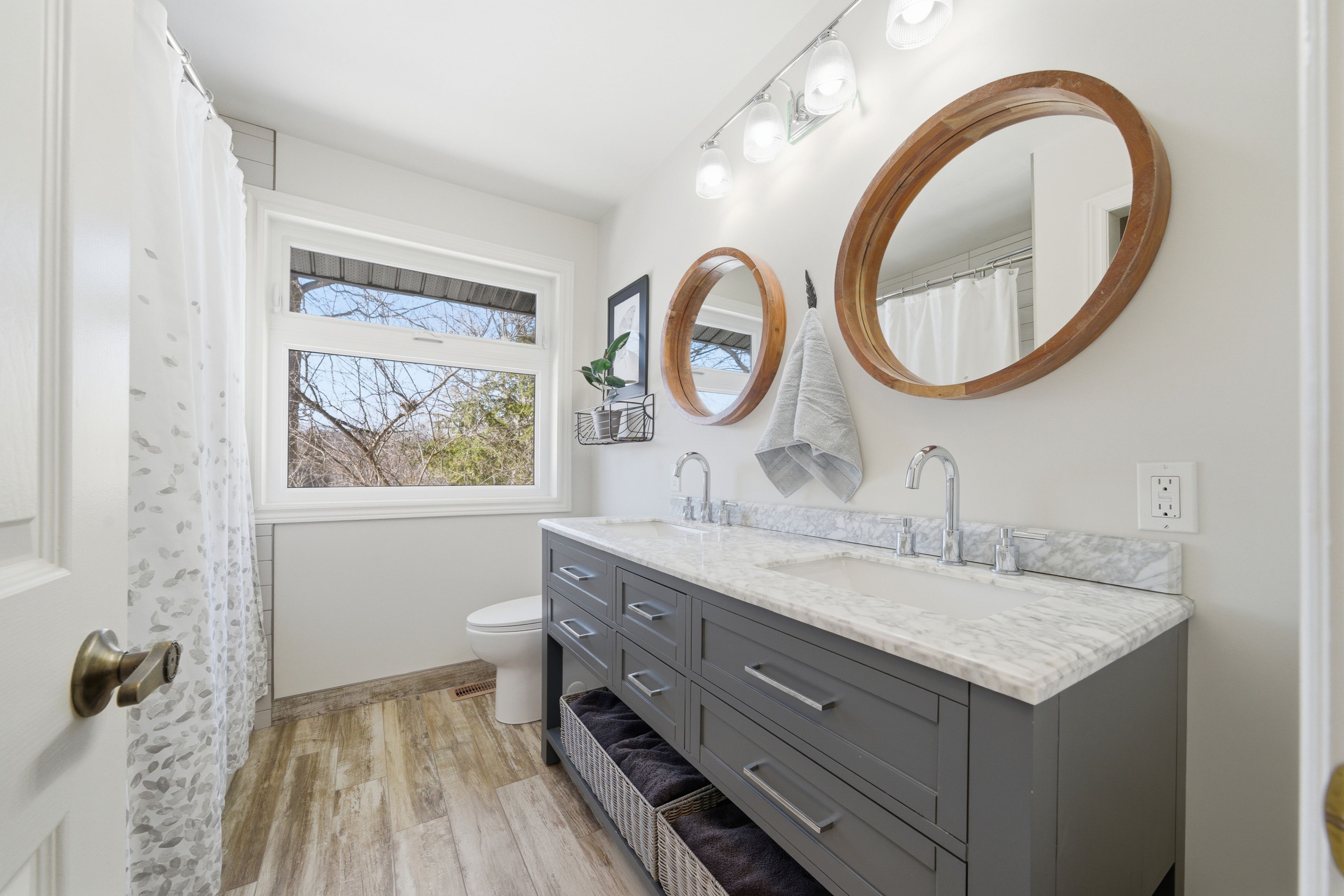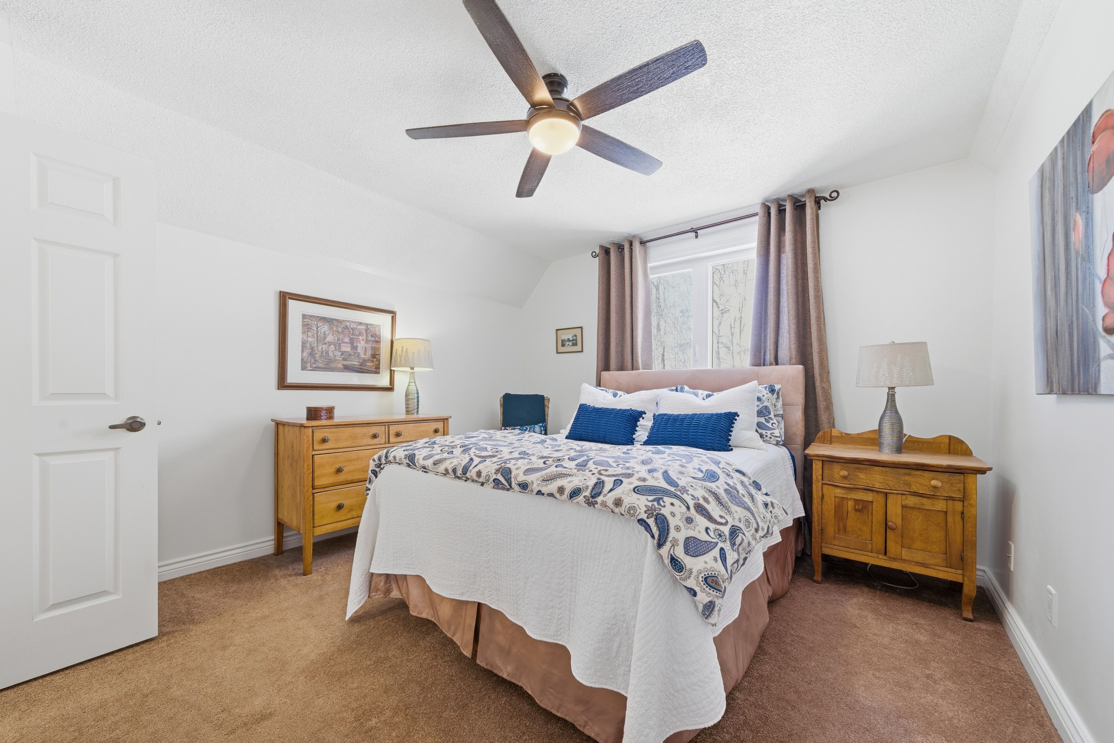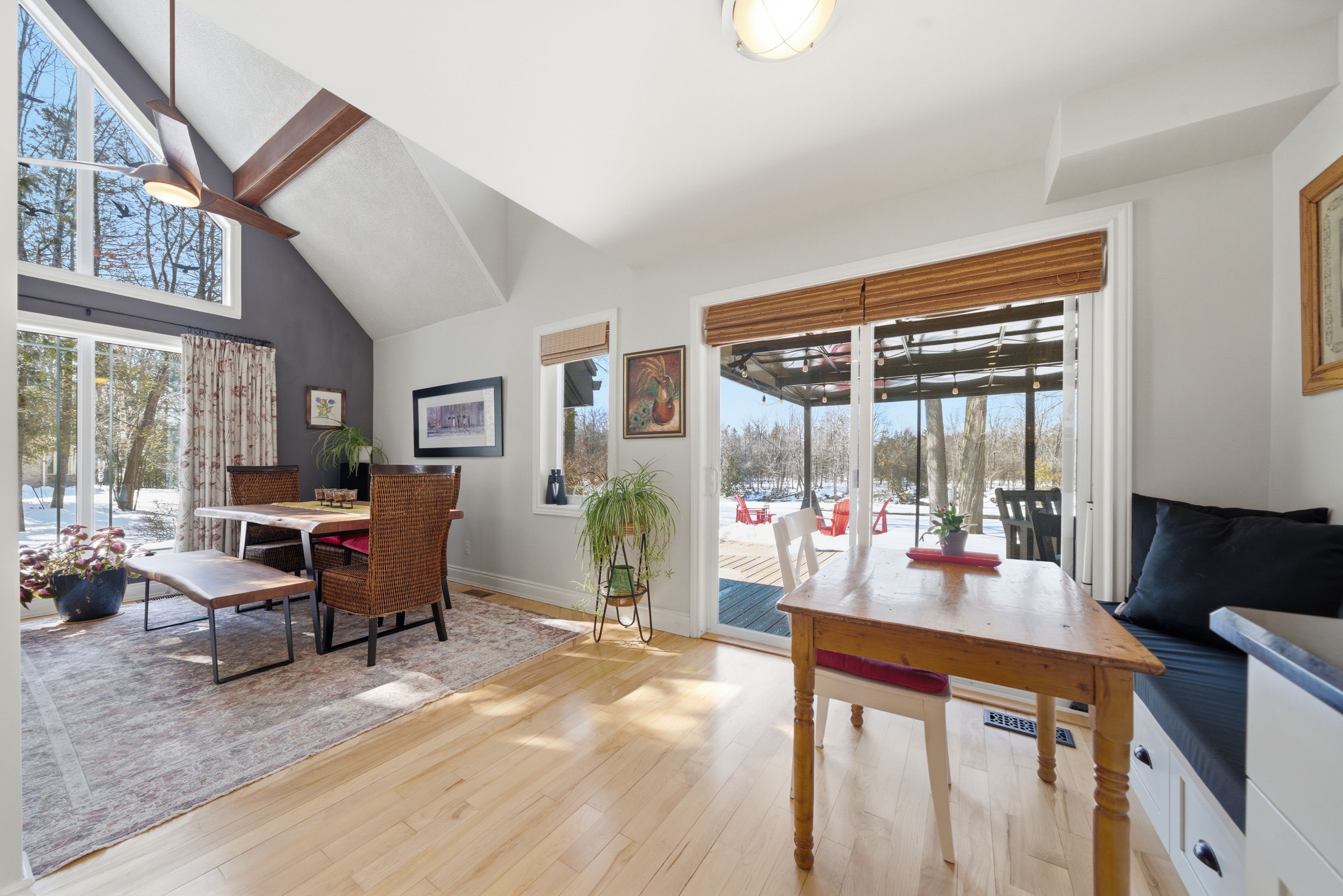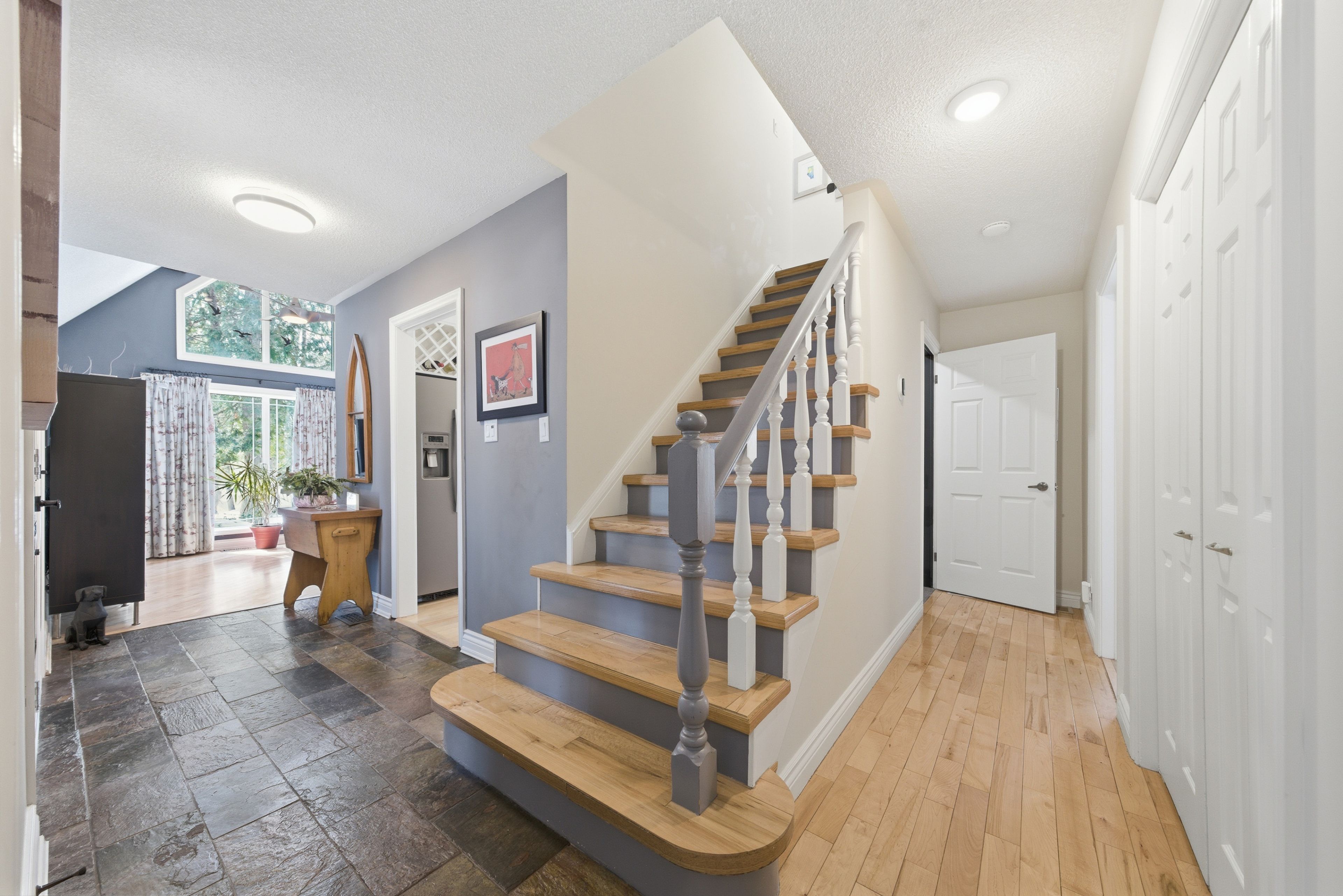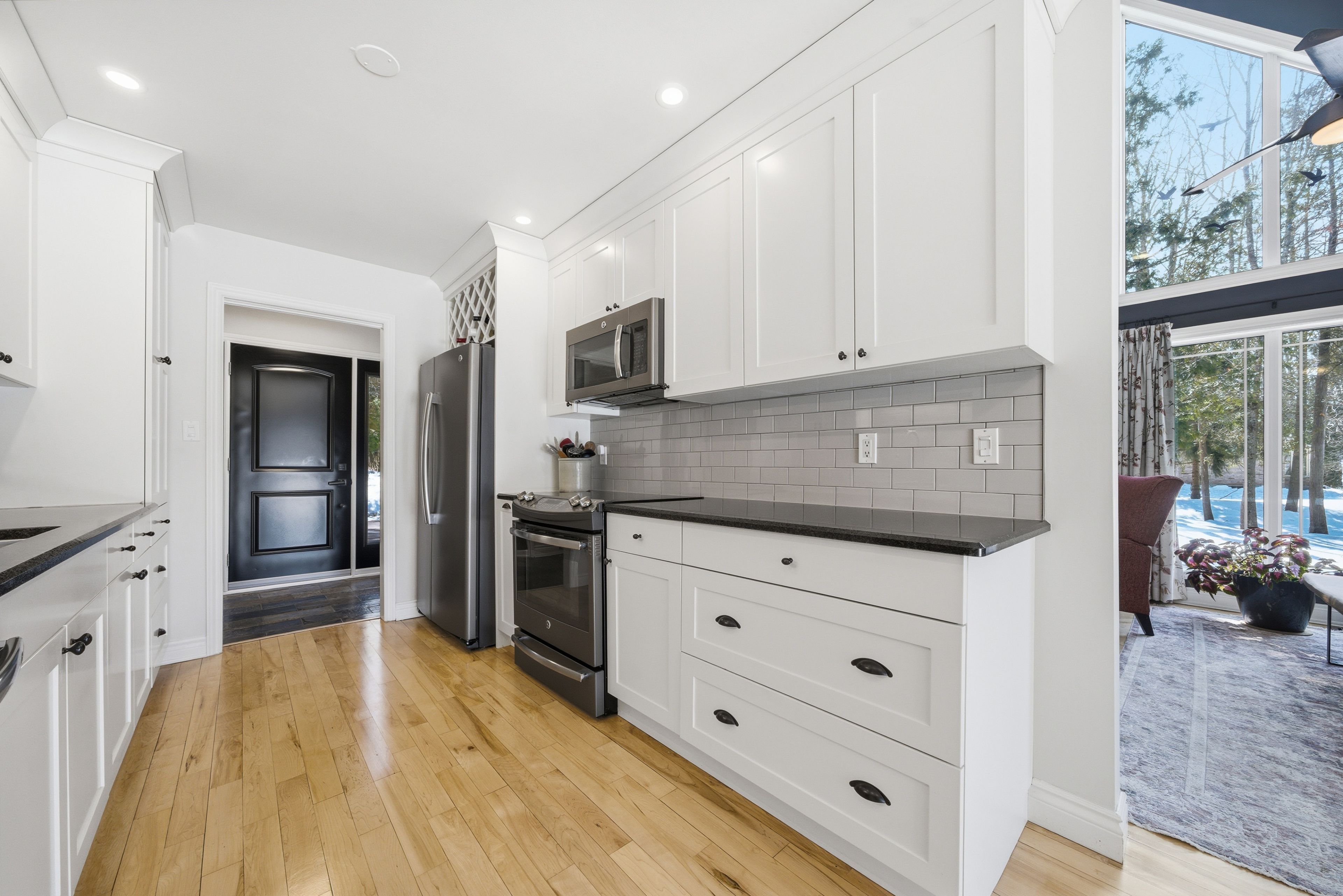 This unique and beautifully updated home offers stunning views of the Moira River and is filled with natural light from large windows throughout. Featuring an attached two-car garage, this property combines comfort and functionality in an exceptional waterfront setting. The main floor boasts a stunning living room with vaulted ceilings and a striking floor-to-ceiling brick fireplace that creates a warm and inviting focal point, flowing seamlessly into the dining area. The well-appointed kitchen offers ample storage, a large double sink, stainless steel appliances, granite countertops, and convenient walk-out access to the rear deck-perfect for entertaining with a river front backdrop. The primary bedroom is conveniently located on the main level and includes a walk-in closet, a luxurious 4-piece en-suite with soaker tub and tiled stand-up shower, and it's own walk-out to the rear deck. Main floor laundry and a 2-piece bathroom add to the convenience. Upstairs, a generous sitting room overlooks the living space below and features a private balcony with river views, along with an additional bedroom and a 5-piece bathroom. The fully finished basement provides incredible flexibility with a recreation room complete with a stove fireplace, a 2-piece bathroom, three additional flex spaces ideal for a home office, gym, hobbies or guest bedroom, walk-up access to the garage, and abundant storage throughout.