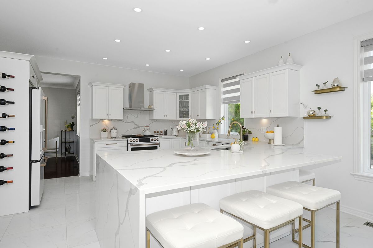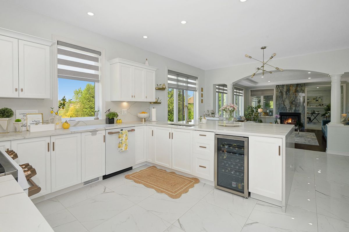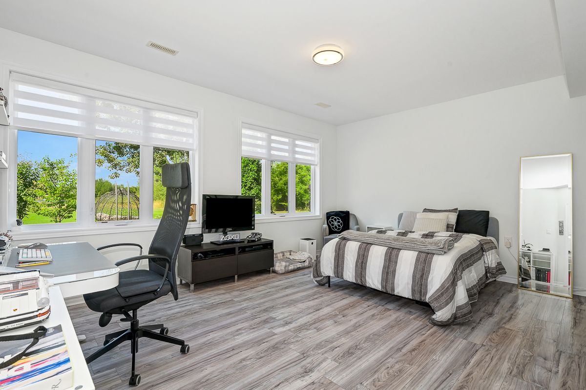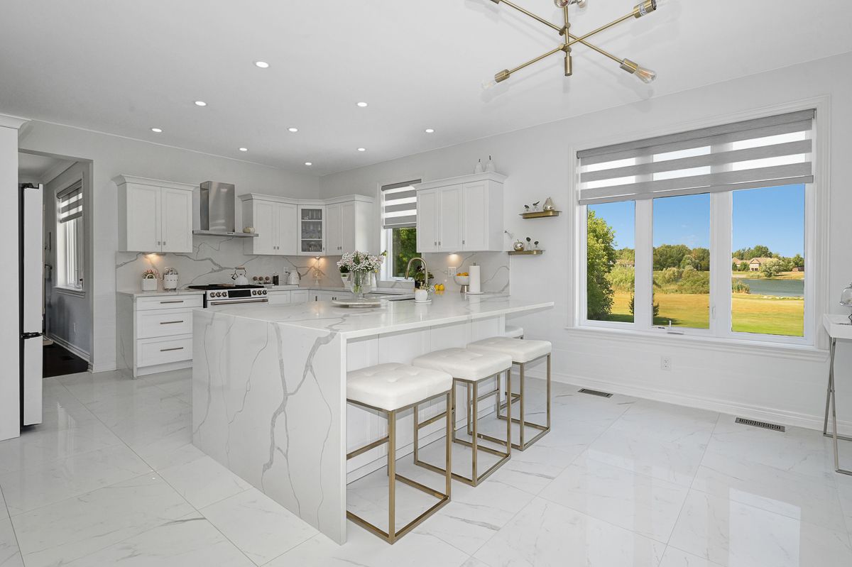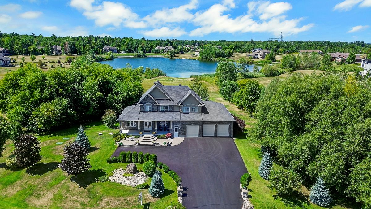 Experience the ultimate in waterfront living with this exceptional 5 bedroom, 5 bath residence set on a private 2.3 acre lot with over 120 feet of direct lake frontage in sought after West Lake Estates. Offering rare year round access to the water, this property delivers a lifestyle that is peaceful, private, and just minutes from the city. Perfectly located only 10 minutes from Kanata's tech hub, shopping, and dining, and just 5 minutes to Highway 417 for an easy downtown commute. Custom built in 2010 and offering approximately 5,000 sq ft of finished living space, this residence has been extensively upgraded with over $500,000 in renovations, blending timeless craftsman design with refined modern finishes. The main level showcases its waterfront setting with expansive living and dining areas, oversized windows, and stunning lake views. The chef's kitchen features Calcutta quartz counters and backsplash, white shaker cabinetry, oversized peninsula, and high end appliances. A bright breakfast area and inviting family room with gas fireplace flow into a sun-filled three season room with panoramic lake views. A dedicated office, oversized mudroom, and convenient laundry with garage access complete this level. Upstairs, three suite style bedrooms offer comfort and privacy, including a primary retreat with tranquil views and a spa inspired ensuite with freestanding tub, dual vanities, and glass walk in shower. The fully finished walkout lower level adds two bedrooms, a full bathroom, recreation space, and ample storage. Outdoors, enjoy landscaped grounds with mature trees, stone patio, pergola, fruit-bearing orchard, and direct lake access perfect for relaxing or entertaining. Additional features include a three car garage, 10 zone sprinkler system, GenerLink wiring, 40amp EV receptacle, new furnace, A/C, owned water heater, and epoxy-coated porch. Annual co-tenancy fee of $100 covers lake maintenance.