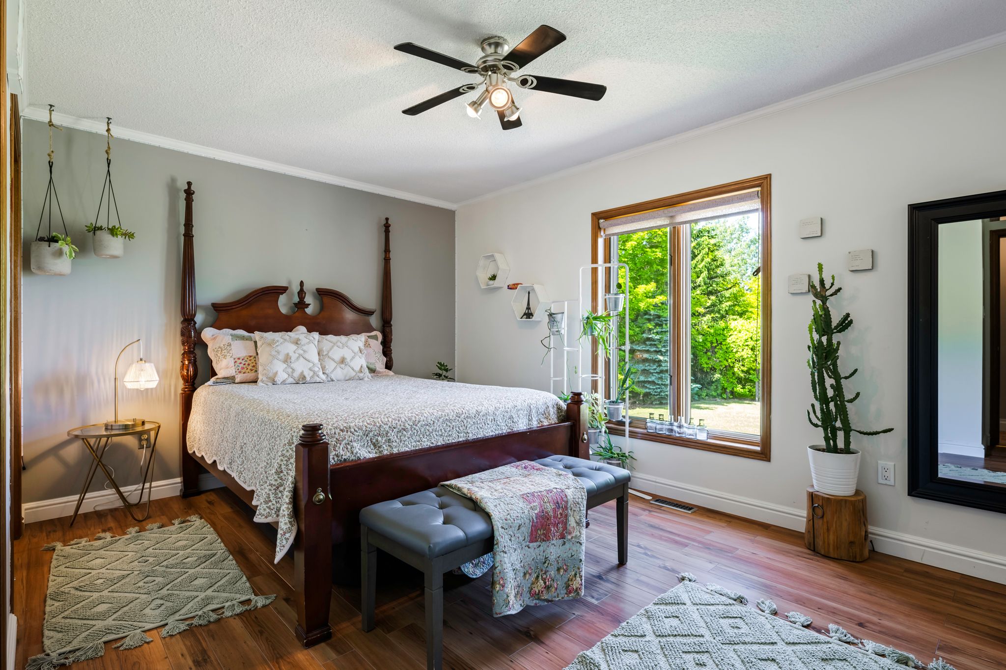 *OPEN HOUSE: Saturday April 25th, 1:00-3:00pm* So much MORE than your average country Bungalow! Welcome Home to this Spectacular 5+ Acre Property With Gorgeous Views of the Mulmur Hills PLUS 25 x 30ft * DETACHED WORKSHOP * This completely updated 5 bed, 4 bath full Brick Bungalow offers TWO MASTER BEDROOMS both with private luxury ensuite. In-law suite / rental potential (separate entrance to one wing of house). Main floor primary Bedroom features aprivate Juliette balcony with stunning views of the Mulmur hills. Double Walk out basement, geothermal heat and AC, granite counters in kitchenand bathrooms, glass showers (3). Loads of cupboards in kitchen plus all new appliances in the last 2 years! Bar/Cantina in bright basement with tons of storage. This open concept FULL BRICK home is sure to impress with its location in the hills of Mulmur, less than 1 hour to the GTA (easy commute right off Airport Road) on a quiet, paved road less then 5 min to Mansfield Ski Club, County Forest Trails, Bruce Trail and more! DOUBLE LOT with 2 already existing entrances - potential for severance or secondary dwelling! No neighbours direct on either side or behind.Very private lot with mature trees and views for miles! Stunning Sunsets and nature right out your back door - view deer, fox and birds galore from your deck, hot tub, camp fire or balcony with the Mulmur hills as your backdrop! Includes hot tub, barrel sauna, & pool table. Owners are both Realtors. Flexible Closing Available. Ideal layout for a blended or multi family living situation with almost 4000 sq ft of finished living space!Location Location - Popular Primrose Elementary School district and only 5 min door to door to Mansfield Ski Club! Minutes from Alliston or Shelburne and a stones throw from the Village of Rosemont. View Floor Plans, Movie and Virtual Tour on link in listing.