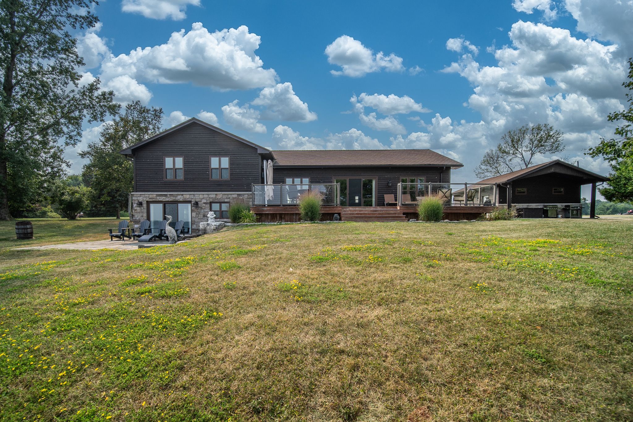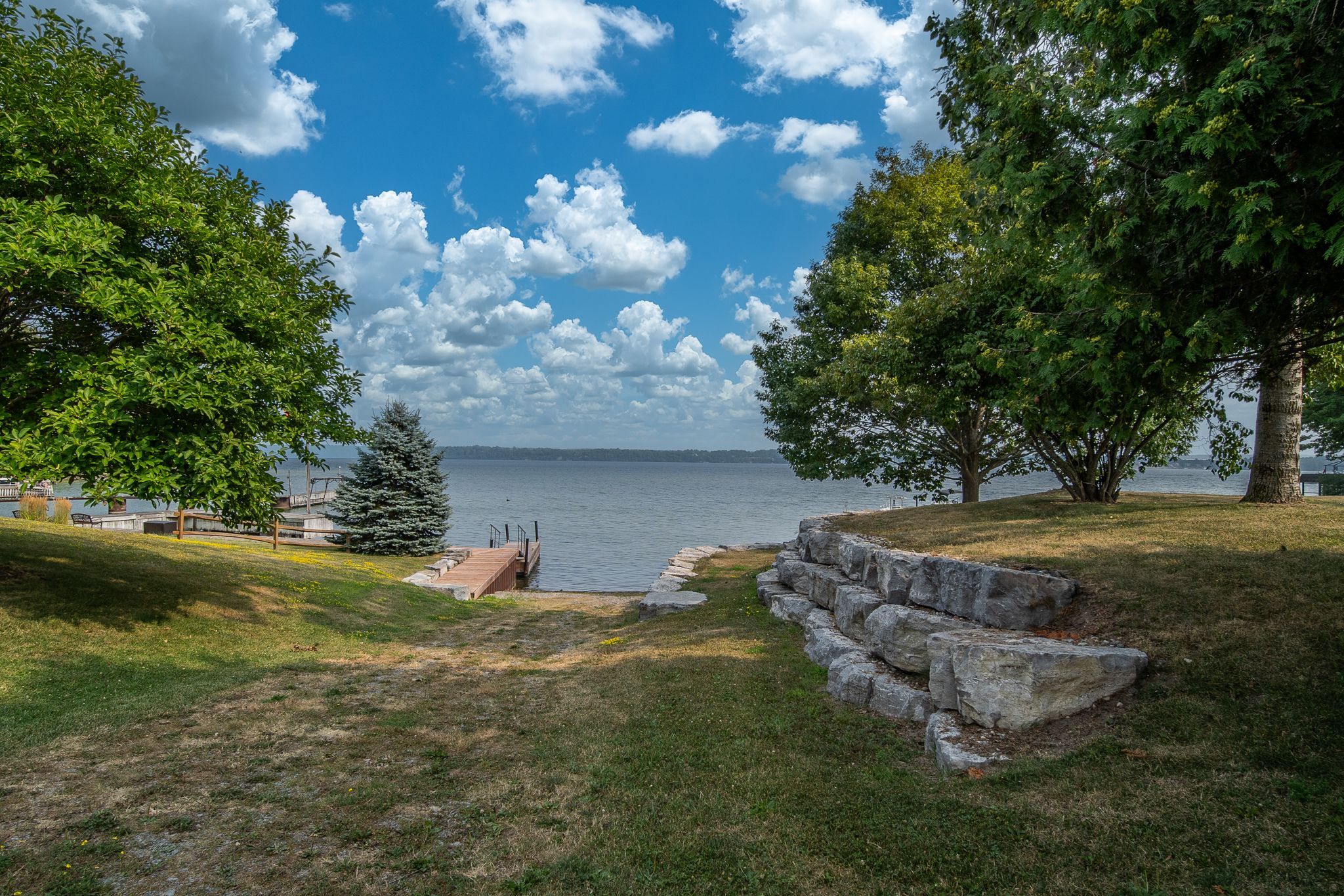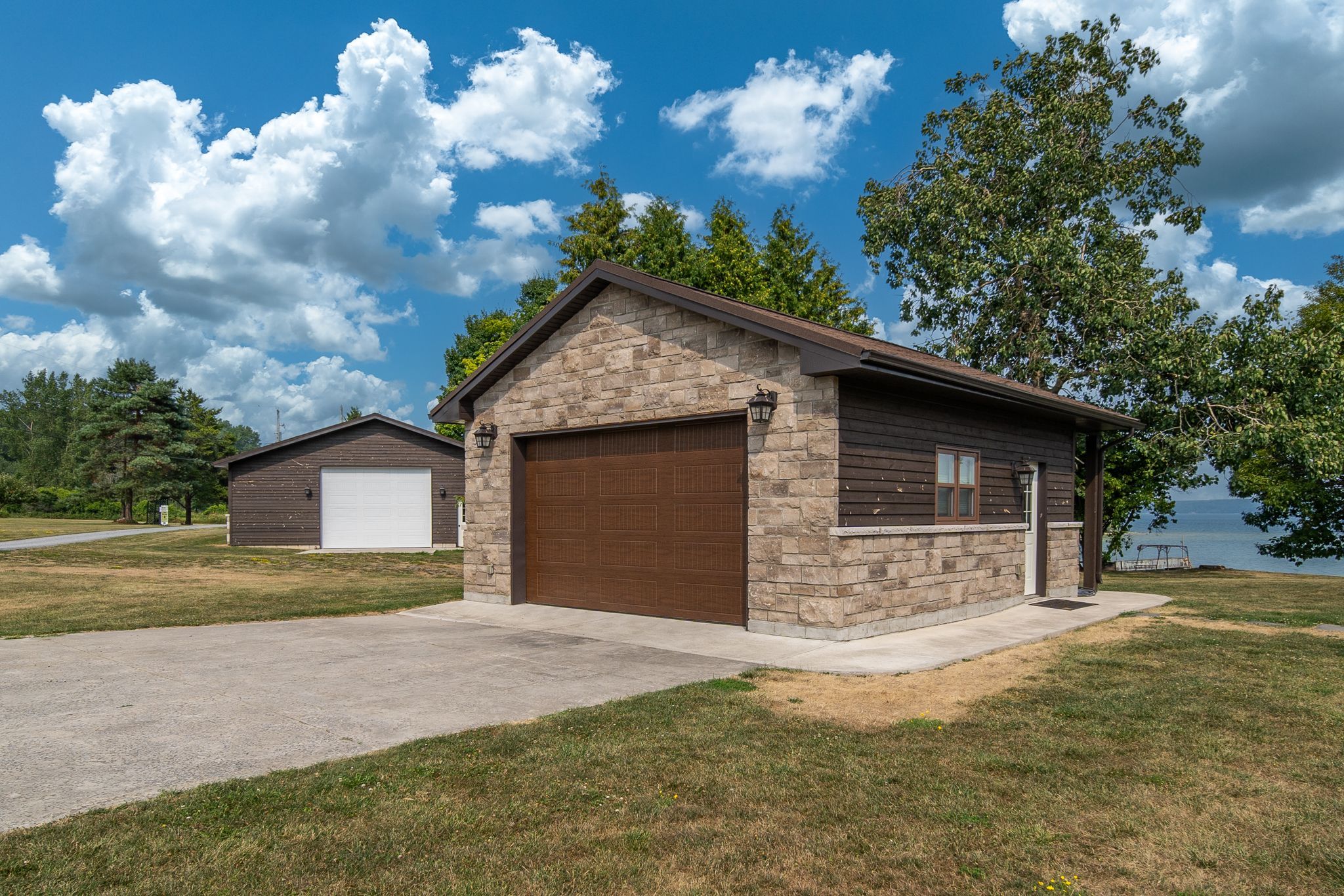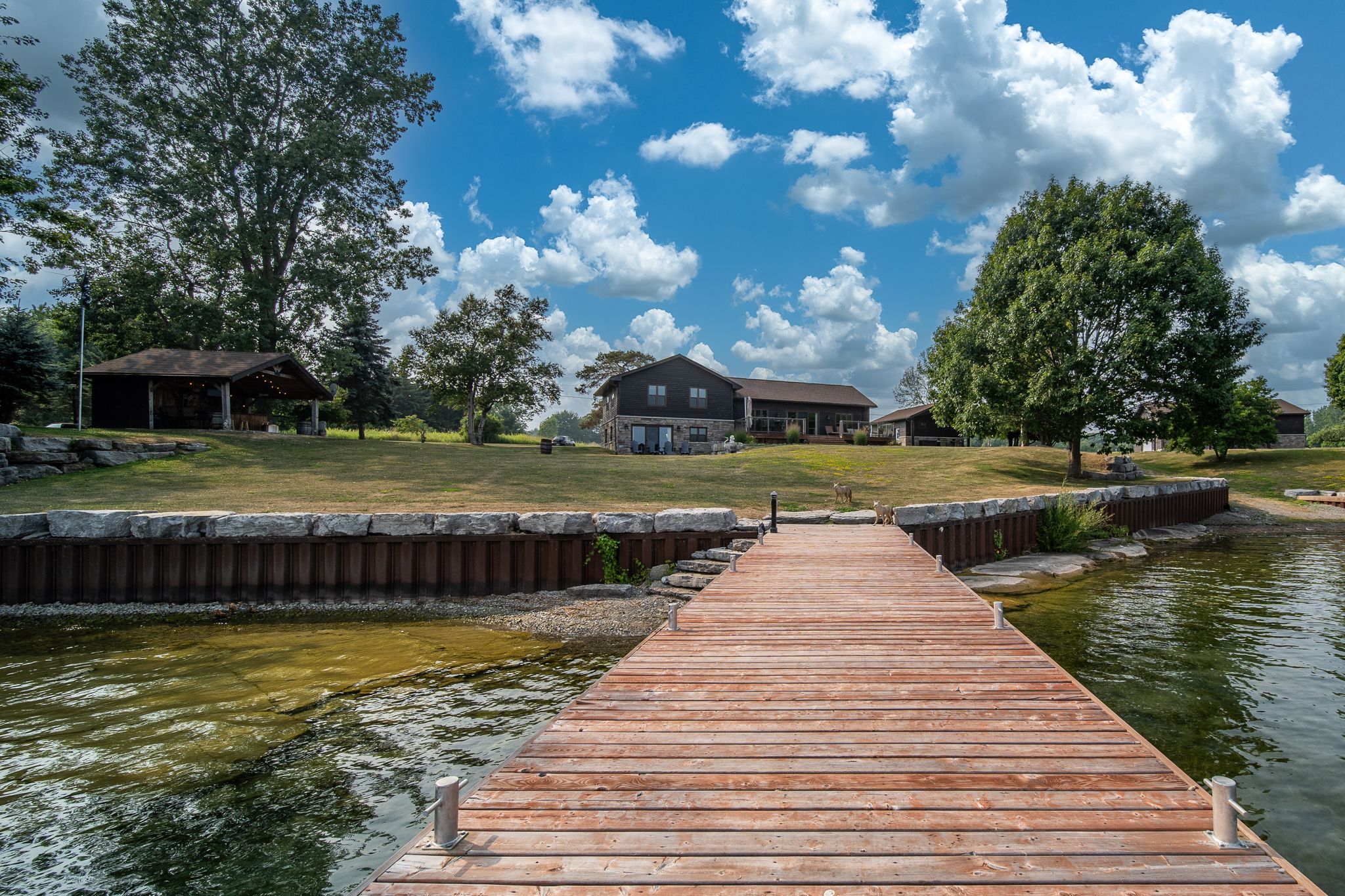 Rare opportunity to own 2 separate but adjoined waterfront properties, offering a combined 3.6 acres and 312 feet of clean, sheltered shoreline on the South/Eastern end of Wolfe Island in the heart of the Thousand Islands. Currently a perfect a perfect single family compound, two deeds allow the option of a guest house if desired. 199 Leone's Cove Lane is a fabulous turnkey, recently constructed, split level home. The main level's great layout offers open concept kitchen and dining. electric fireplace, and patio doors opening onto a spectacular river view deck. A walk through pantry and custom bar lead to a 3-piece bathroom. The upper level has three bedrooms and full bath, while the lower level has a rec room with walk out to patio doors, laundry/mechanical room and an additional bedroom. Outside, over 2 acres of landscaped and manicured grounds provide ample space to enjoy more than 220 feet of natural flat rock shore. The property boasts new steel and stone break walls and ample floating and fixed dockage, perfect for swimming, fishing, kayaking, and boating. A fantastic garage (22x19) with pine board and batten interior with pot lighting provides another cozy indoor space. There is a lovely outdoor pavilion built for parties and entertaining that overlooks ships navigating the St. Lawrence River to and from Lake Ontario.213 Leone's Cove Lane, the waterfront neighbouring property, has a 38x35 foot barn adorned from floor to ceiling with knotty pine, patio doors leading out to a stone landing, and quality lighting. All buildings for both properties have beautifully coordinated stone and siding. An additional 1.2 acres leads to 91 feet of clean shoreline, with your own boat launch and floating dock. Truly a once-in-a-lifetime opportunity. It's time to pack your bags, grab your friends and family and start making wonderful memories. Be one of the lucky few to know the joys of island life.