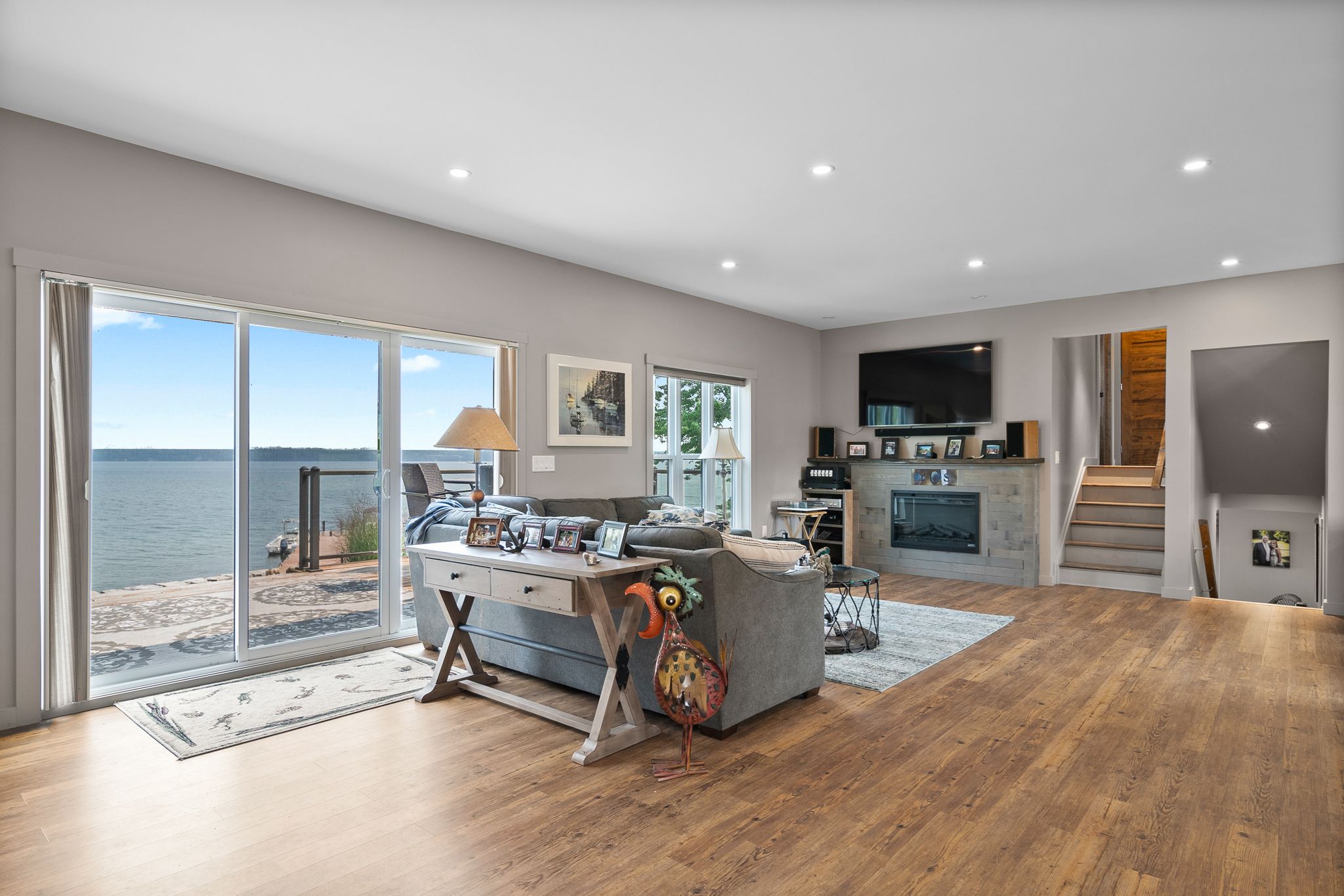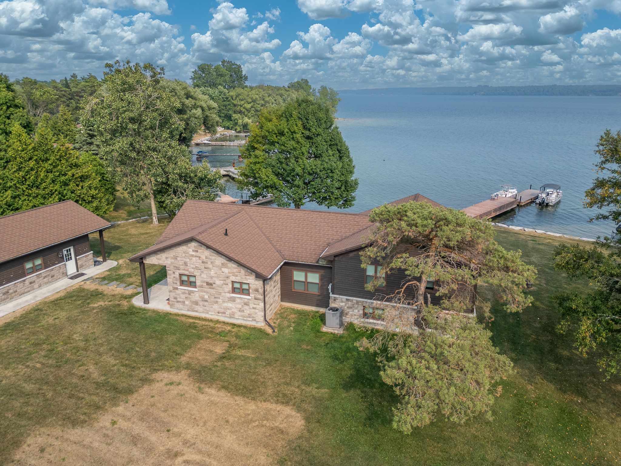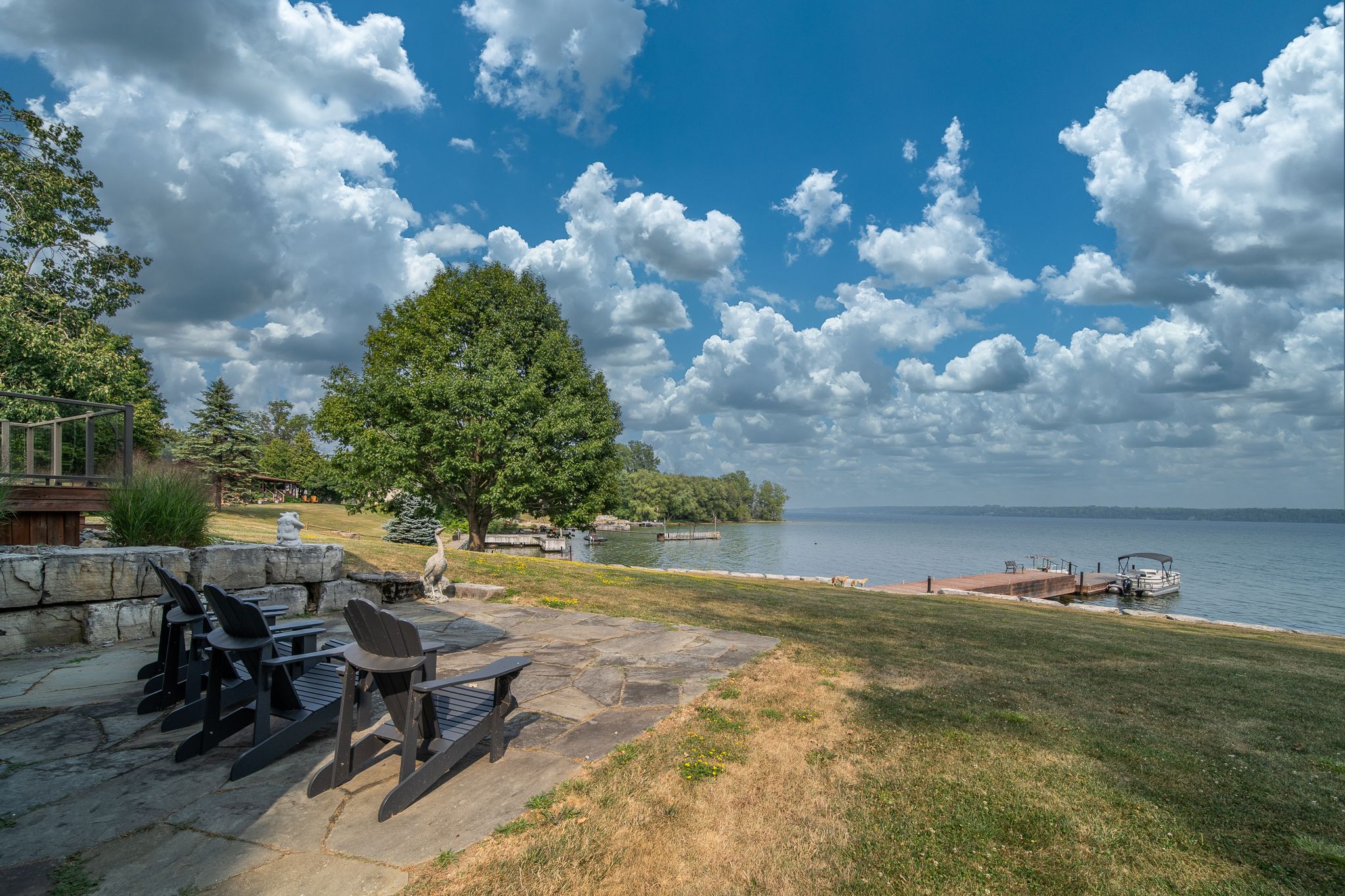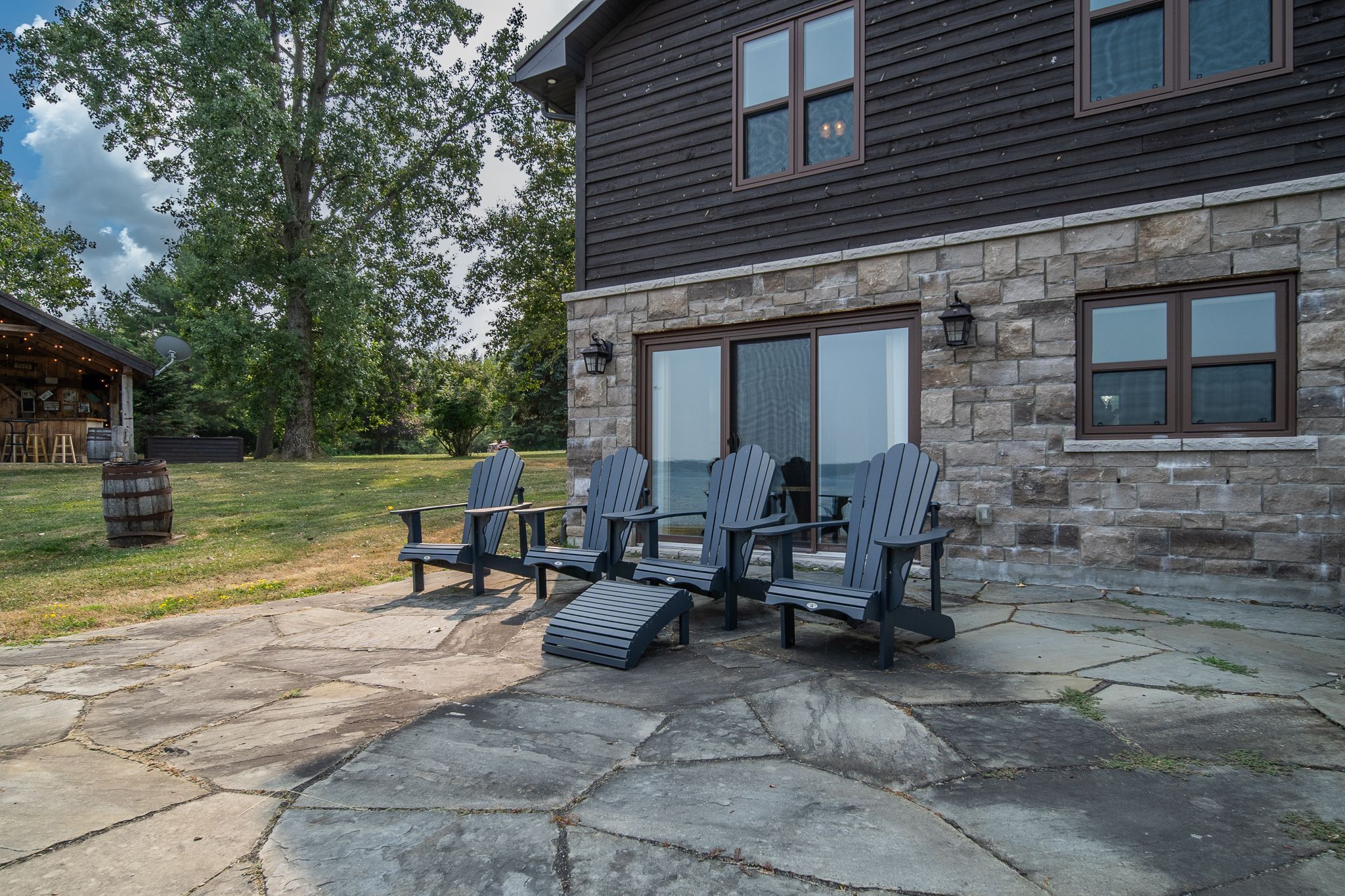 Rare opportunity to own 2 separate but adjoined waterfront properties, offering a combined 3.6 acres and 312 feet of clean, sheltered shoreline on the South/Eastern end of Wolfe Island in the heart of the Thousand Islands. Currently a perfect a perfect single family compound, two deeds allow the option of a guest house if desired. 199 Leone's Cove Lane is a fabulous turnkey, recently constructed, split level home. The main level's great layout offers open concept kitchen and dining. electric fireplace, and patio doors opening onto a spectacular river view deck. A walk through pantry and custom bar lead to a 3-piece bathroom. The upper level has three bedrooms and full bath, while the lower level has a rec room with walk out to patio doors, laundry/mechanical room and an additional bedroom. Outside, over 2 acres of landscaped and manicured grounds provide ample space to enjoy more than 220 feet of natural flat rock shore. The property boasts new steel and stone break walls and ample floating and fixed dockage, perfect for swimming, fishing, kayaking, and boating. A fantastic garage (22x19) with pine board and batten interior with pot lighting provides another cozy indoor space. There is a lovely outdoor pavilion built for parties and entertaining that overlooks ships navigating the St. Lawrence River to and from Lake Ontario.213 Leone's Cove Lane, the waterfront neighbouring property, has a 38x35 foot barn adorned from floor to ceiling with knotty pine, patio doors leading out to a stone landing, and quality lighting. All buildings for both properties have beautifully coordinated stone and siding. An additional 1.2 acres leads to 91 feet of clean shoreline, with your own boat launch and floating dock. Truly a once-in-a-lifetime opportunity. It's time to pack your bags, grab your friends and family and start making wonderful memories. Be one of the lucky few to know the joys of island life.