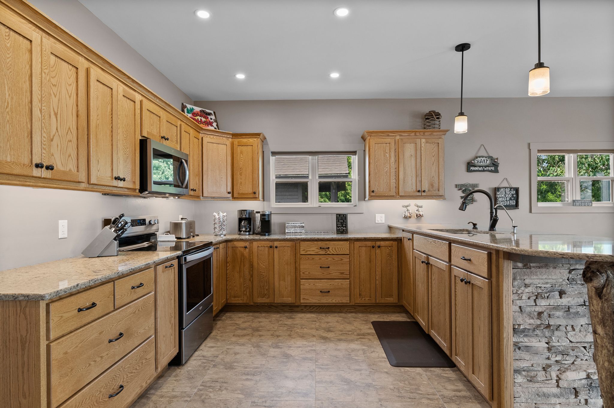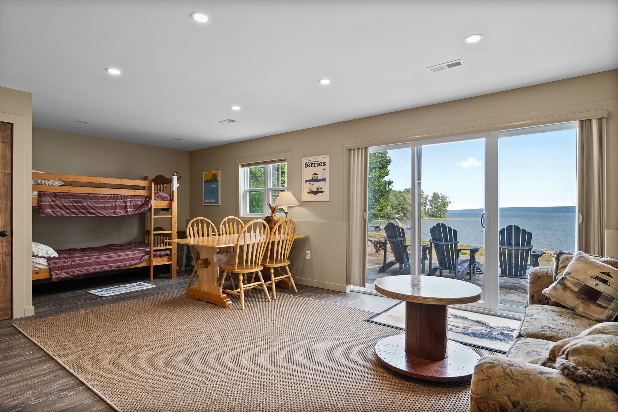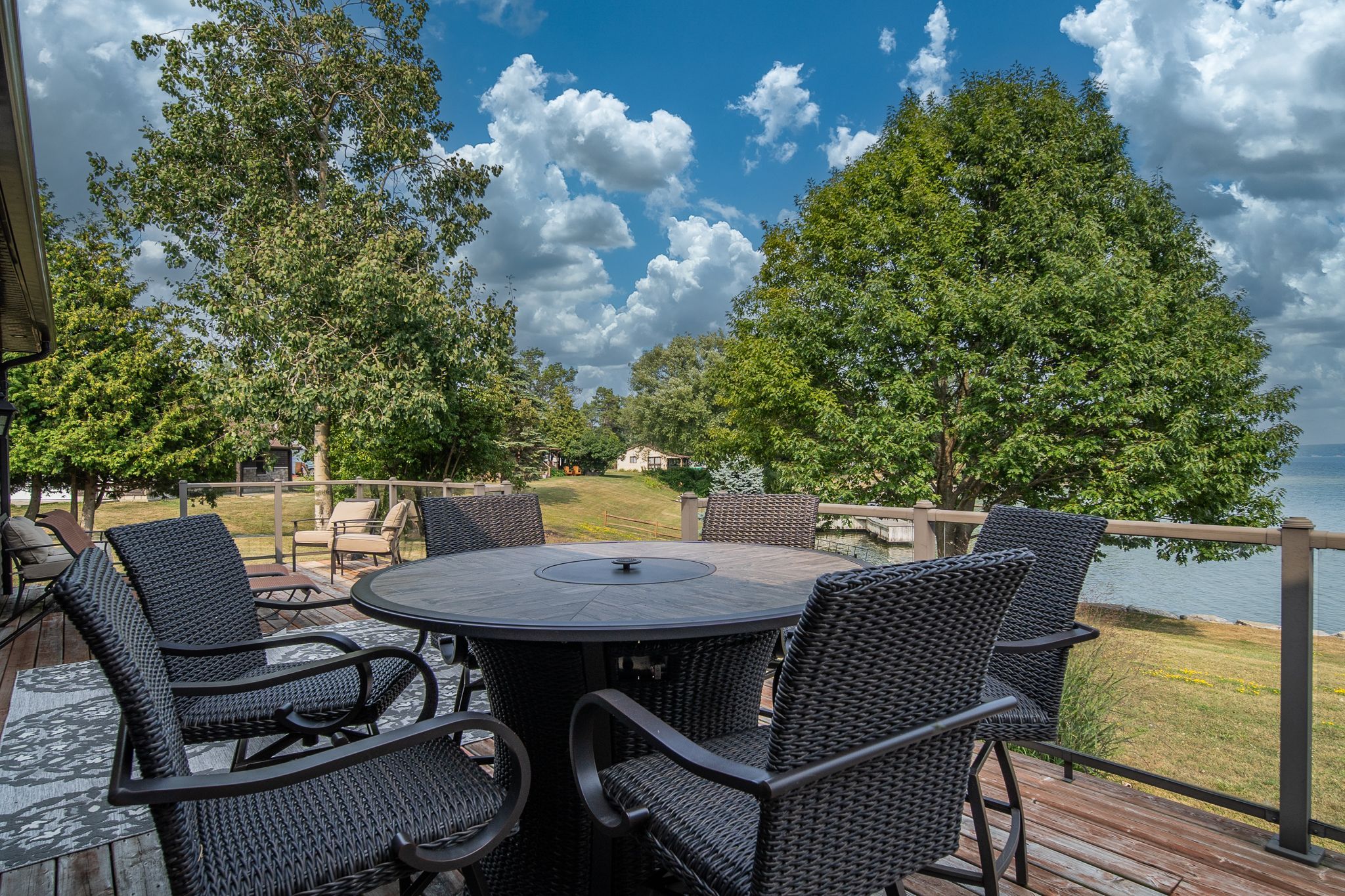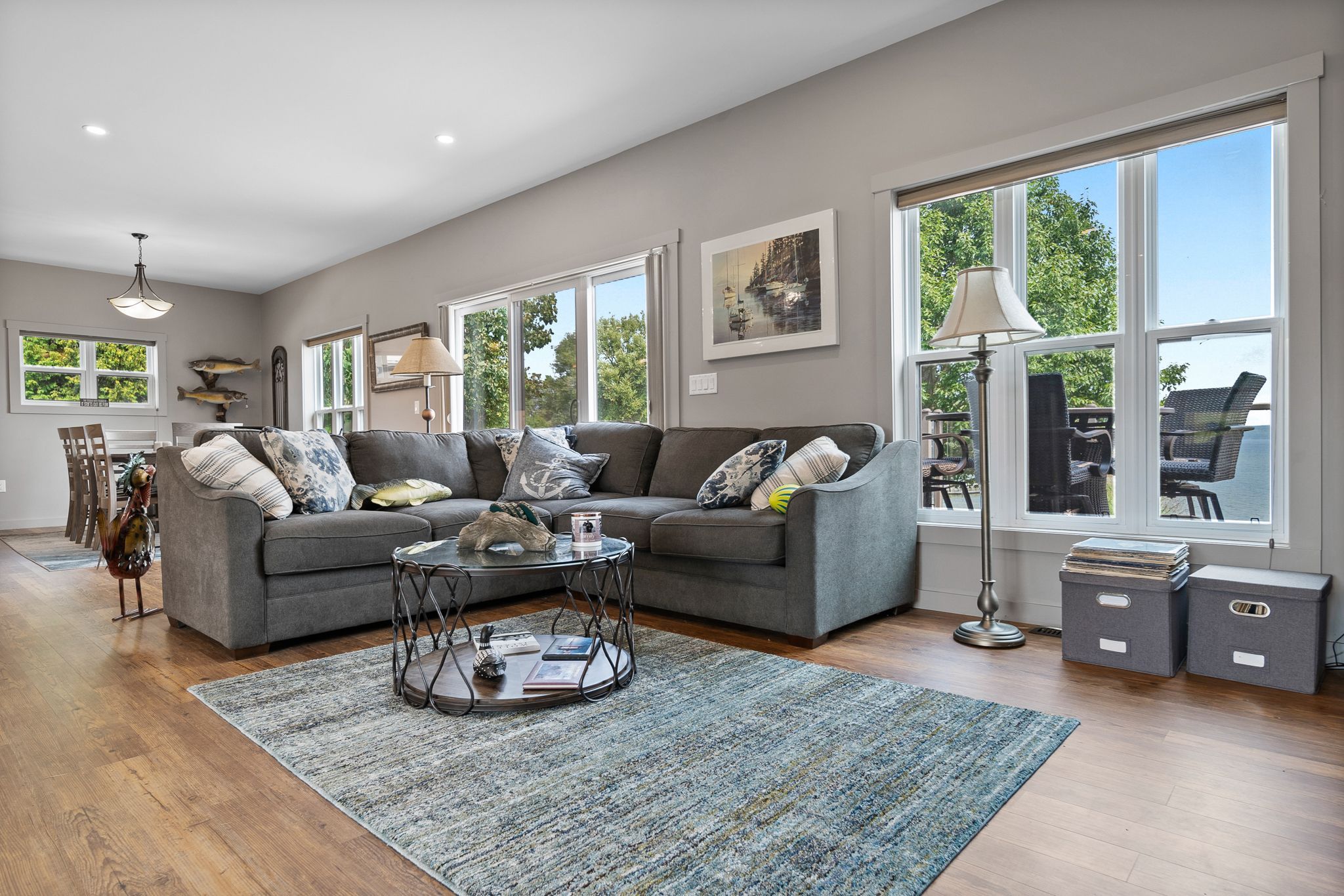 Rare opportunity to own 2 separate but adjoined waterfront properties, offering a combined 3.6 acres and 312 feet of clean, sheltered shoreline on the South/Eastern end of Wolfe Island in the heart of the Thousand Islands. Currently a perfect a perfect single family compound, two deeds allow the option of a guest house if desired. 199 Leone's Cove Lane is a fabulous turnkey, recently constructed, split level home. The main level's great layout offers open concept kitchen and dining. electric fireplace, and patio doors opening onto a spectacular river view deck. A walk through pantry and custom bar lead to a 3-piece bathroom. The upper level has three bedrooms and full bath, while the lower level has a rec room with walk out to patio doors, laundry/mechanical room and an additional bedroom. Outside, over 2 acres of landscaped and manicured grounds provide ample space to enjoy more than 220 feet of natural flat rock shore. The property boasts new steel and stone break walls and ample floating and fixed dockage, perfect for swimming, fishing, kayaking, and boating. A fantastic garage (22x19) with pine board and batten interior with pot lighting provides another cozy indoor space. There is a lovely outdoor pavilion built for parties and entertaining that overlooks ships navigating the St. Lawrence River to and from Lake Ontario.213 Leone's Cove Lane, the waterfront neighbouring property, has a 38x35 foot barn adorned from floor to ceiling with knotty pine, patio doors leading out to a stone landing, and quality lighting. All buildings for both properties have beautifully coordinated stone and siding. An additional 1.2 acres leads to 91 feet of clean shoreline, with your own boat launch and floating dock. Truly a once-in-a-lifetime opportunity. It's time to pack your bags, grab your friends and family and start making wonderful memories. Be one of the lucky few to know the joys of island life.