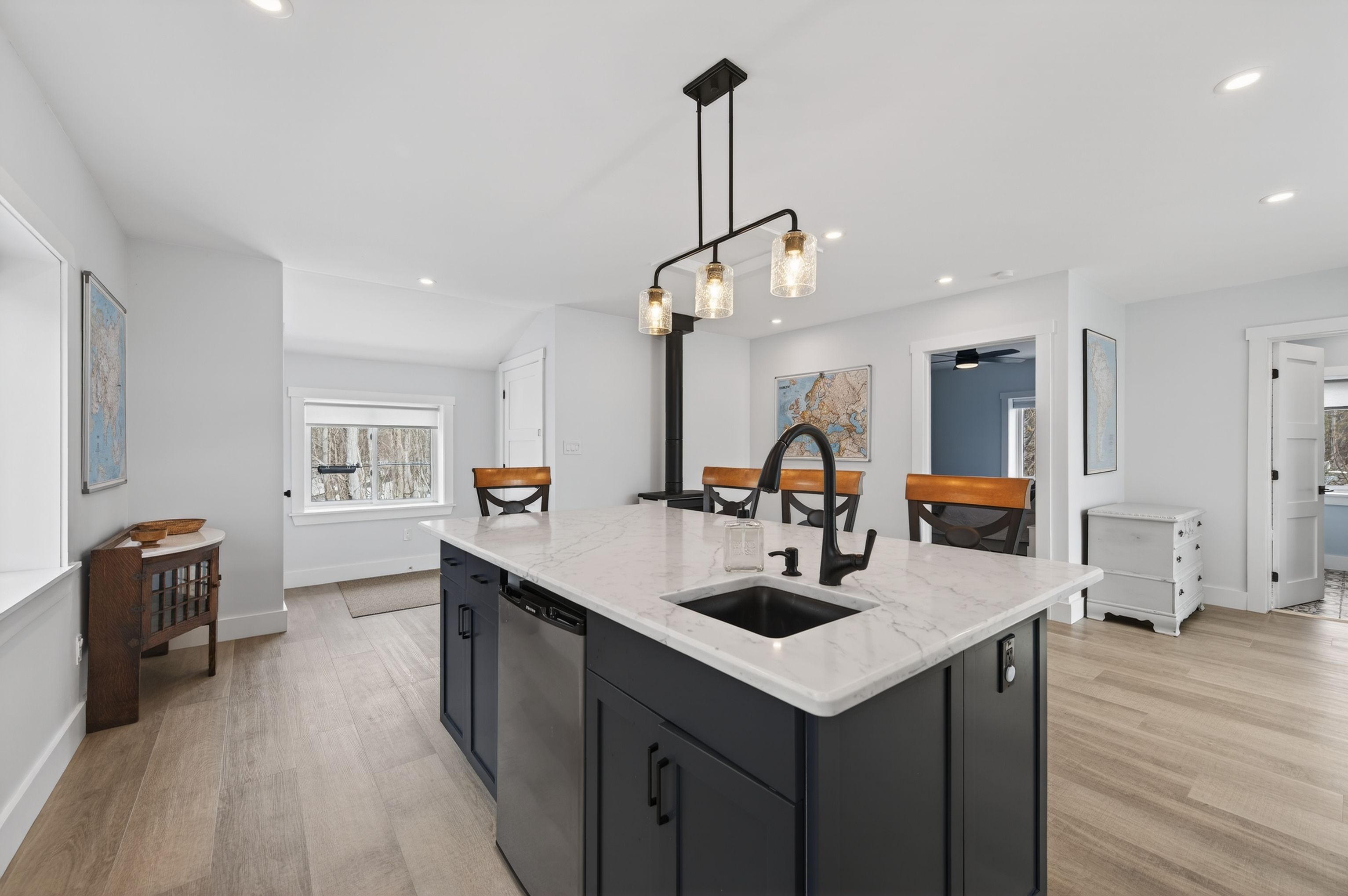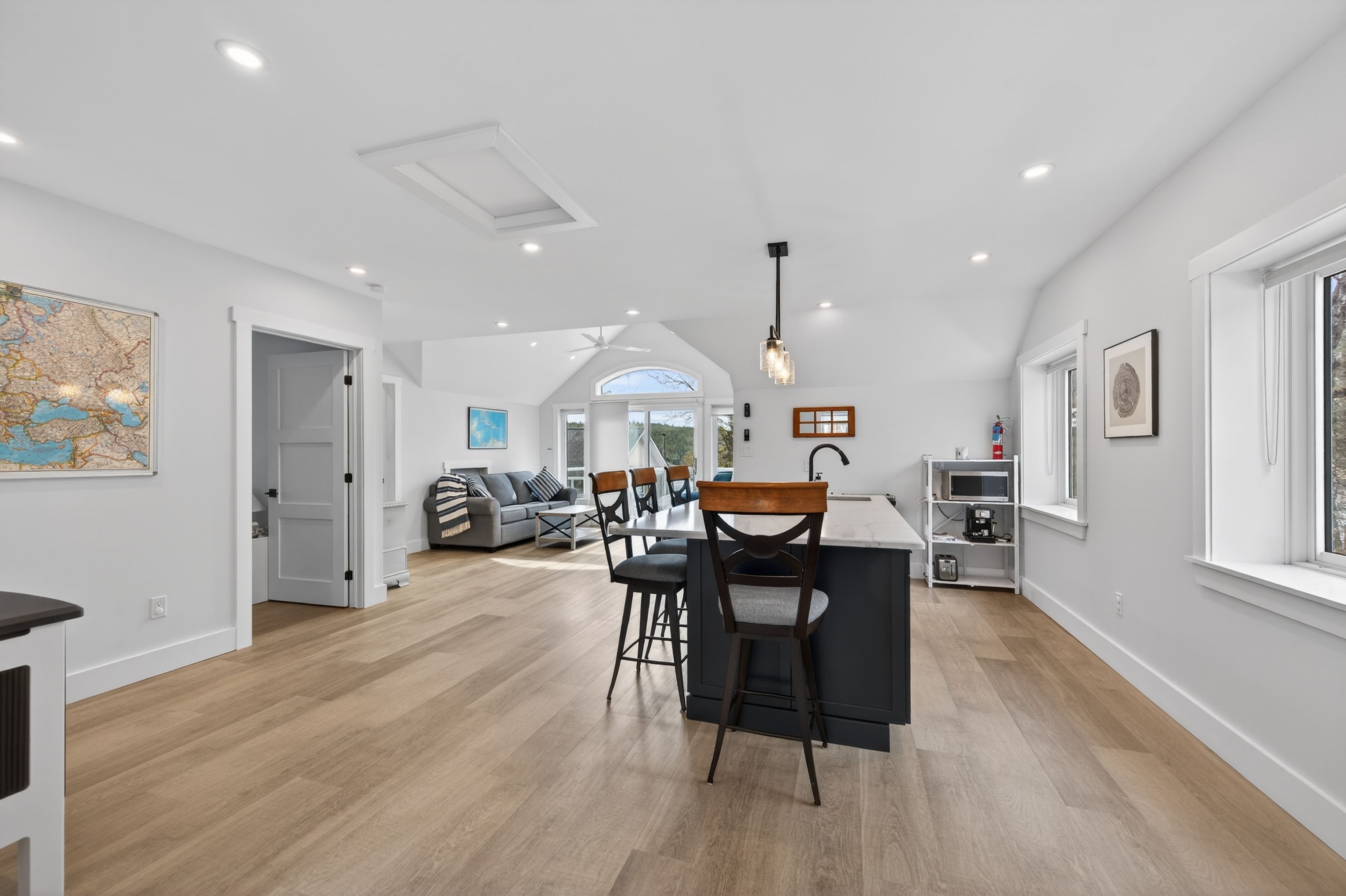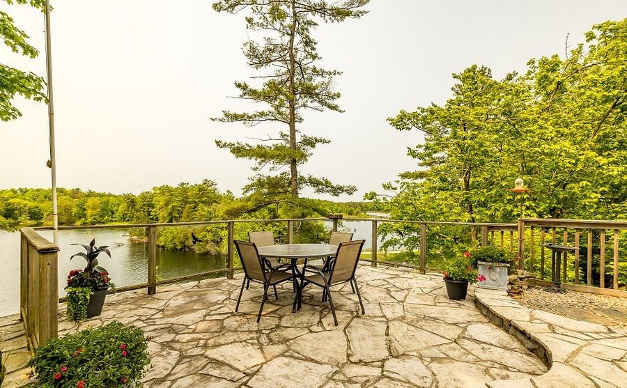 164A Deans Island Road offers a rare combination of expansive acreage, exceptional waterfront, and beautifully updated living spaces on the coveted Whitefish Lake-part of the Rideau Waterway. With approximately 500 ft of shoreline on the quiet channel leading into Morton Bay, this property delivers outstanding swimming, boating, and fishing, along with direct access to one of the region's most scenic stretches of the UNESCO designated Rideau system. Panoramic views of the lake and Rock Dunder create a breathtaking backdrop in every season. The main residence features vaulted ceilings and offers almost 3,000 sqft of well designed living space, featuring 4 bedrooms and 3.5 baths. The spacious primary suite offers the luxurious style ensuite you've been hoping for, with serene views and generous storage. A three season screened porch extends your living space outdoors, perfect for morning coffee or evening gatherings overlooking the water. A separate guest suite above the garage with approximately 1,000 sqft of living space features 1 bedroom and 1 full bath-ideal for extended family, visitors, or private workspace. The property includes both a 2 car attached garage and a second detached 2 car garage, plus a dedicated woodshed for year round convenience. Set on over 14 acres, the grounds are beautifully landscaped with stone features, rock gardens, and a charming herb garden. Outdoor living is enhanced by a striking stone fireplace, multiple seating areas, and natural pathways that lead toward the shoreline. Over the past decade, the owners have invested in a thoughtful series of upgrades that elevate both the home and the property-enhancing comfort, efficiency, and year round enjoyment while preserving the natural beauty and timeless character of this remarkable lakeside retreat.