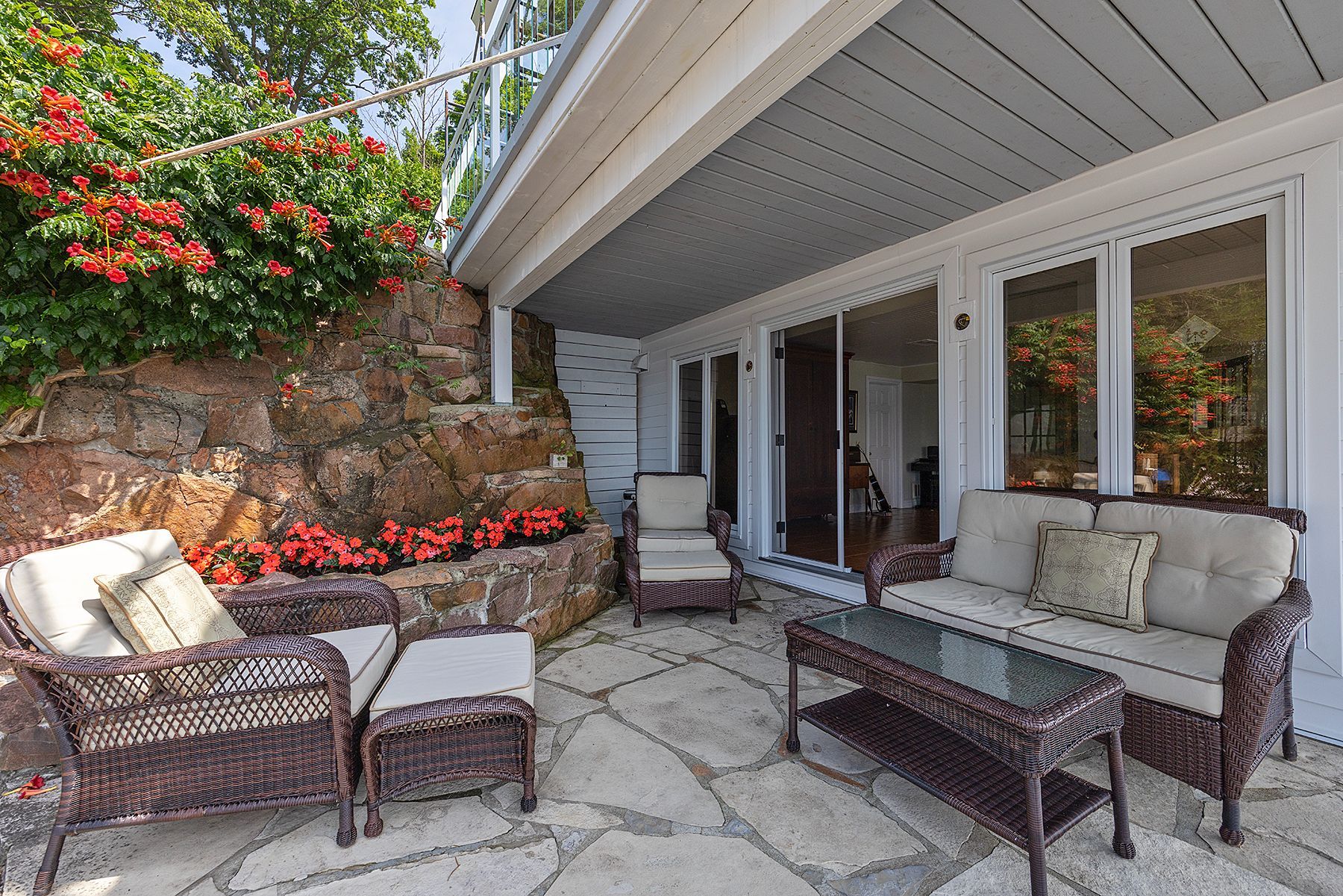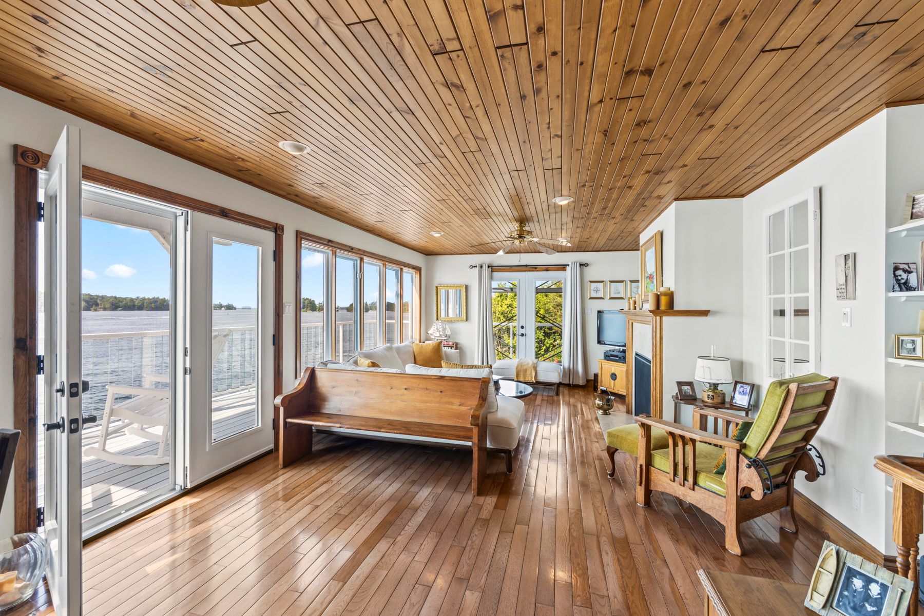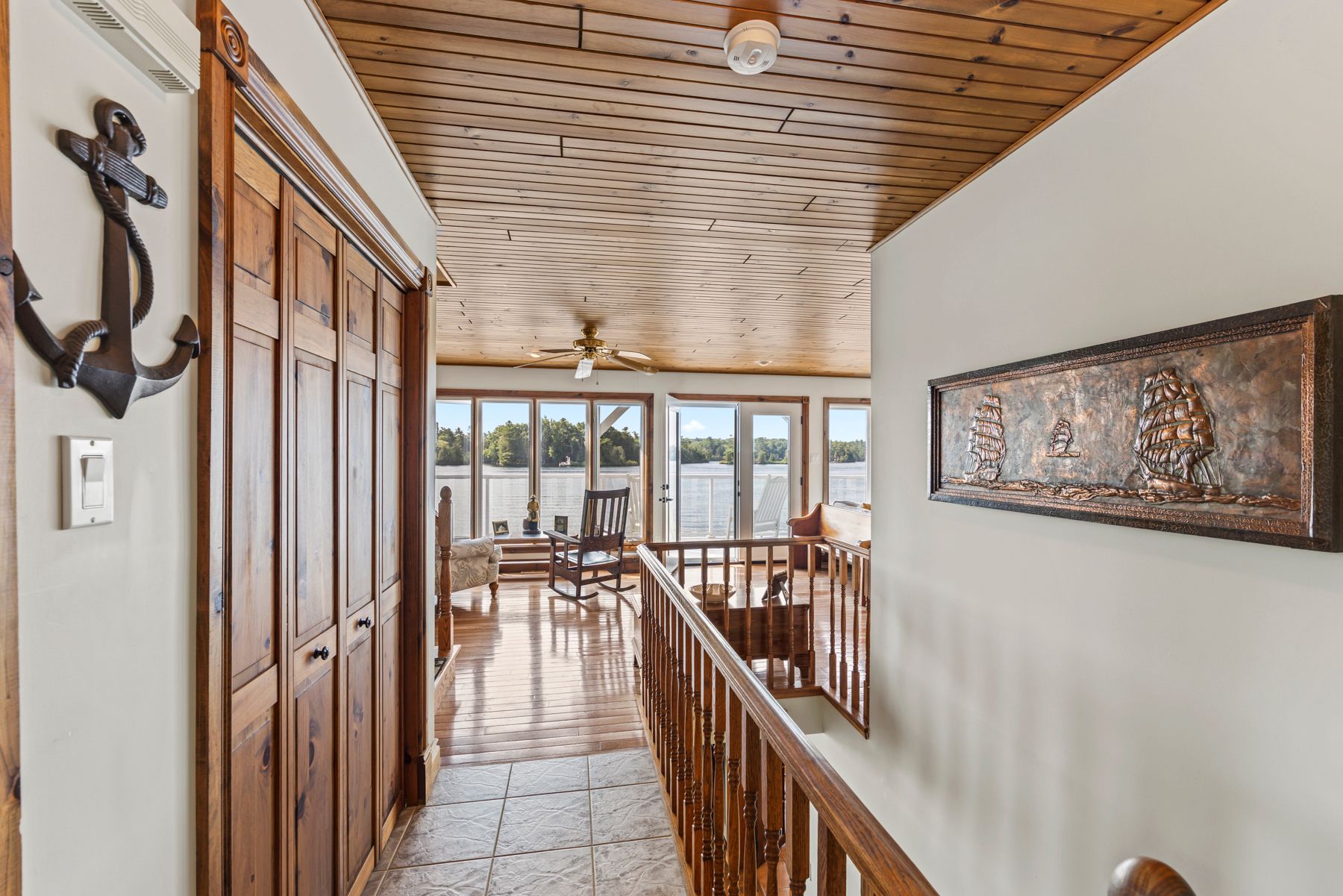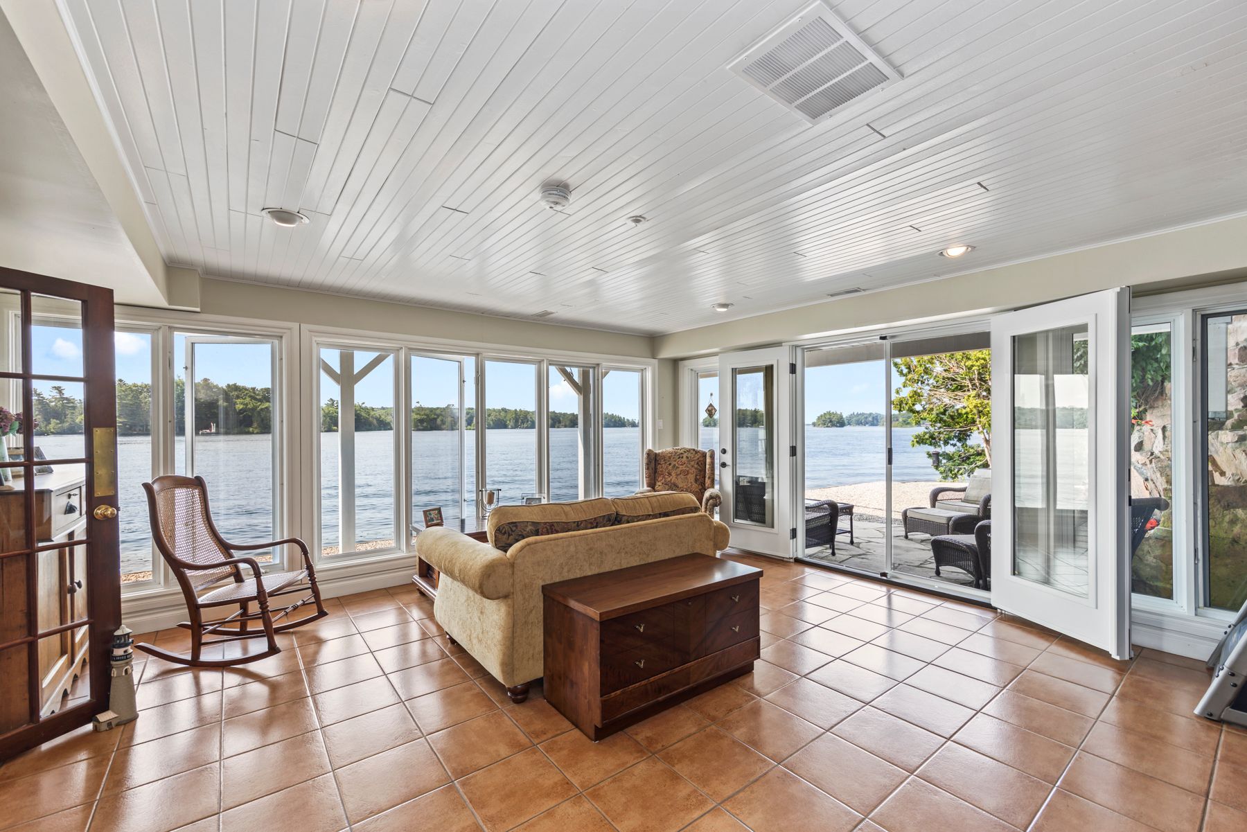 Perched on the pristine shores of the St Lawrence River in the exclusive Ivy Lea enclave, this exceptional three bedroom, two bathroom residence is a rare offering that blends refined comfort with world class waterfront living. Every room in the home is framed by sweeping river views, creating an ever changing backdrop of natural beauty. The upper level is dedicated entirely to the primary suite, a private sanctuary with panoramic vistas, large walk in closet and spa-like serenity. There is also a private deck for your morning coffee or evening wine. On the main level, a well appointed guest bedroom and full bathroom provide comfort and privacy for family or guests. There is a substantial family room with access to the equally generous sized deck also offering those incredible 1000 Islands views. The heart of the home lies on the walkout lower level, where a large eat in kitchen and sun drenched family room open directly to the waters edge, ideal for effortless entertaining or quiet evenings watching the boats drift by. Step outside to discover your private dock with deep and clean water ideal for boats or pwc of almost any size. Whether you're seeking a year round residence or a seasonal escape, this turnkey home delivers timeless charm, modern convenience, and an unparalleled 1000 Islands lifestyle, all just steps from the river. This home sits on a double lot and boasts 120' of waterfront. This modern construction is concrete slab on grade, and has been recently renovated. The positioning of the home on the lot allows for both magnificent sunrises and breathtaking sunsets from a singular vantage point.