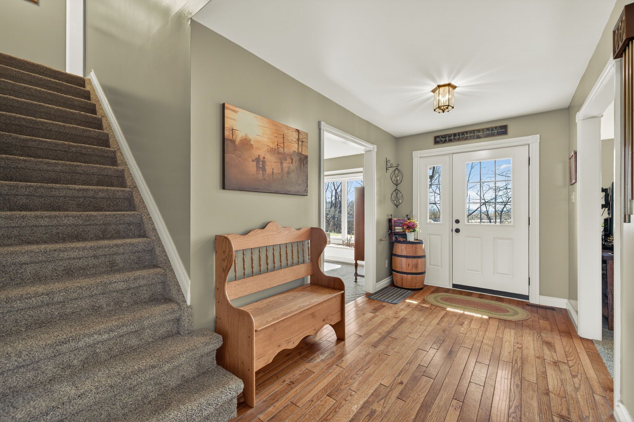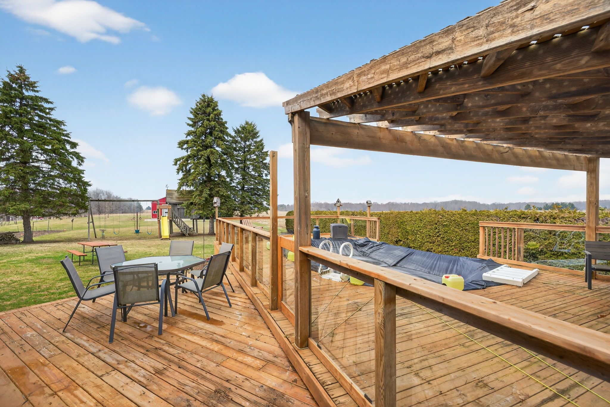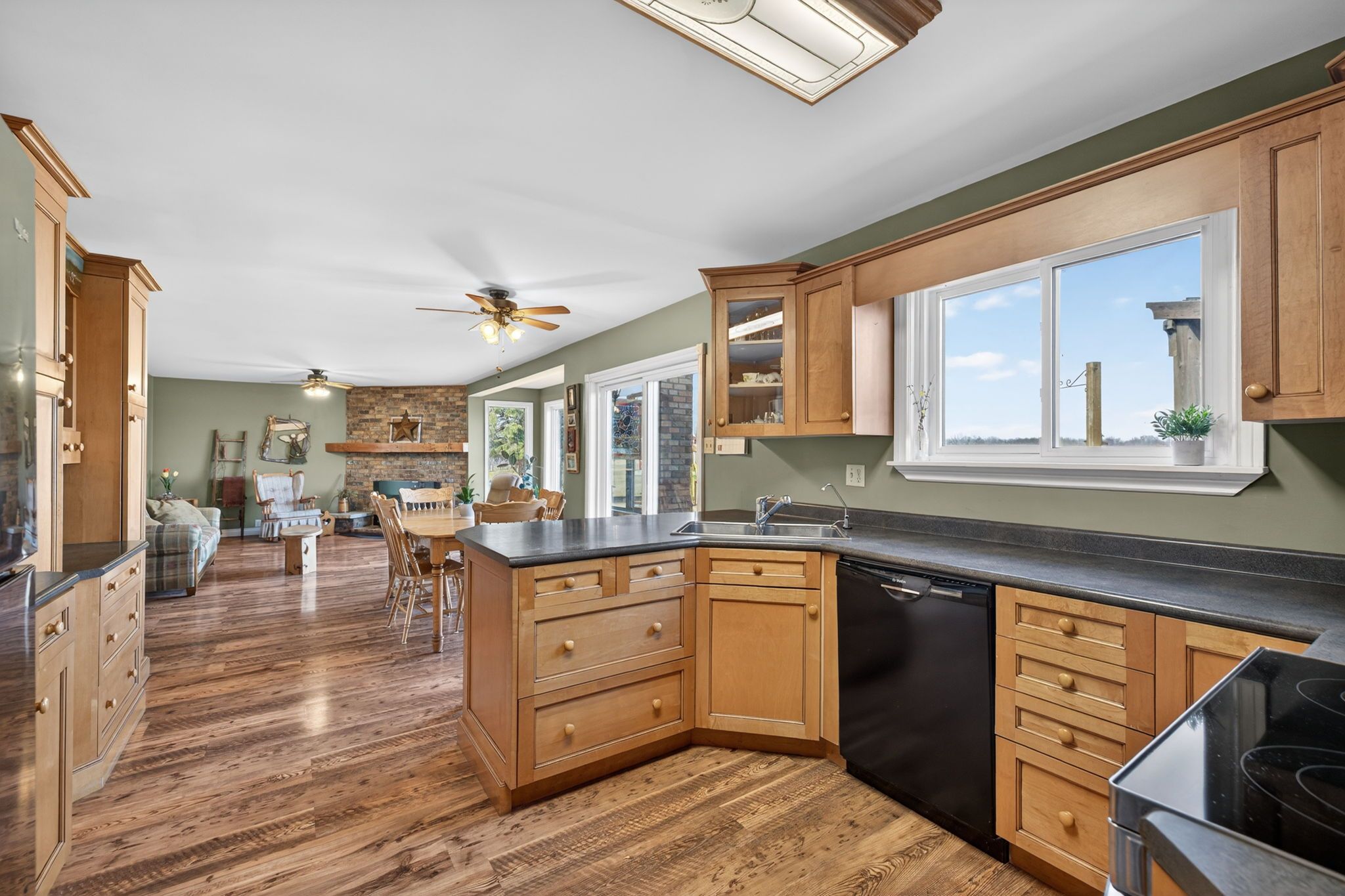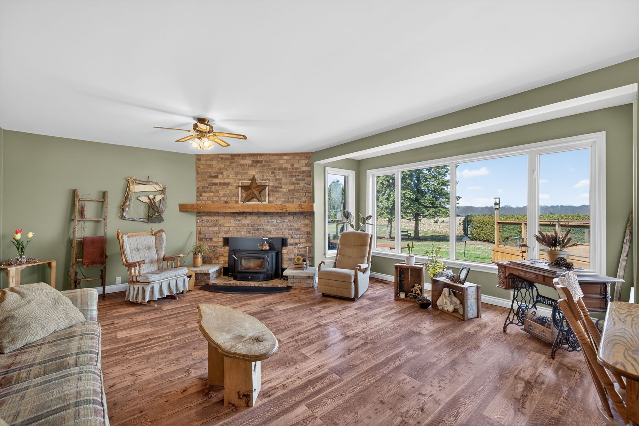 Discover the perfect blend of country charm, space, and modern comfort in this beautifully maintained approx. 2,400 sq. ft. brick 1.5-storey home set on 5.7 picturesque acres. Built in 1979 and thoughtfully updated throughout, this property offers the privacy, natural beauty & functionality today's buyers are searching for. A large welcoming foyer opens to a spacious main floor designed for comfortable everyday living easy entertaining. The inviting family room is a standout, featuring a Elmira wood stove with brick mantle and barn beam accent, creating a warm and cozy gathering space. The kitchen offers excellent workspace and flows seamlessly into the dining & living areas. The main level includes three generous bedrooms, highlighted by a private primary suite with 2 closets and a beautifully updated 3-piece ensuite. A recently renovated laundry room & stylish powder room with granite countertops add convenience & modern appeal. Upstairs you'll find a spacious 4th bedroom retreat complete with a walk-in closet, storage room with attic access, and a rough-in for a future 4-piece bathroom. The lower level includes a finished family room ideal for relaxing or entertaining, plus a large cold room. Outside, the property truly shines. Enjoy 5.7 scenic acres with a creek, mature bush and fenced pasture previously used for cattle and possibly suitable for horses. A major highlight is the impressive 30' x 30' drive shed (approx. 4 yrs old) with 12' doors, hydro, RV outlet, and 220V welder plug, plus an enclosed workshop with loft. Additional features include an oversized attached 2-car garage, fibre internet, Northstar windows, 50-year GAF Timberline shingles, Lennox heat pump with electric furnace backup, reverse osmosis system, central vac, drilled well plus secondary well, and an above-ground pool with covered deck. A rare opportunity to own a beautifully cared-for country property offering space, privacy, and outstanding amenities just minutes from city conveniences.