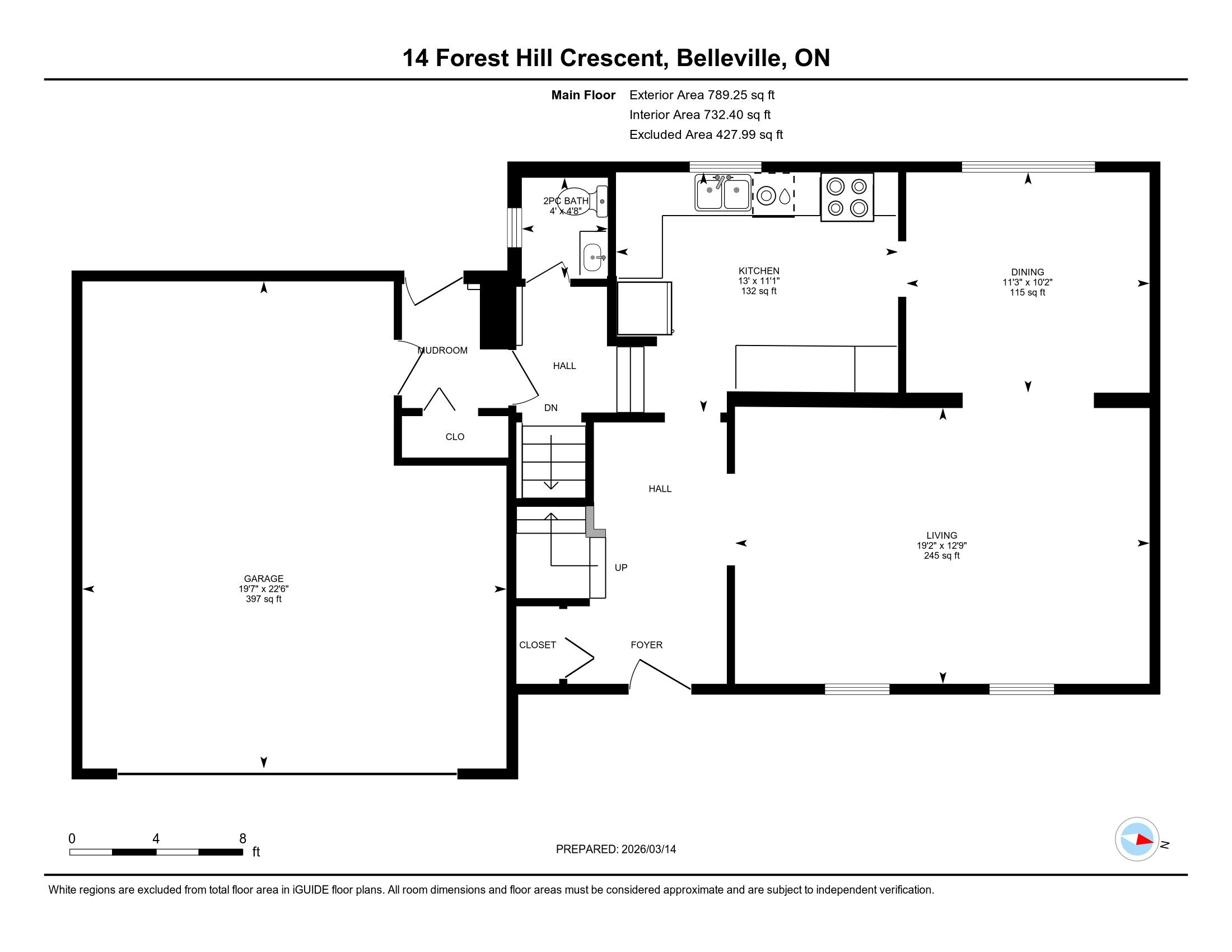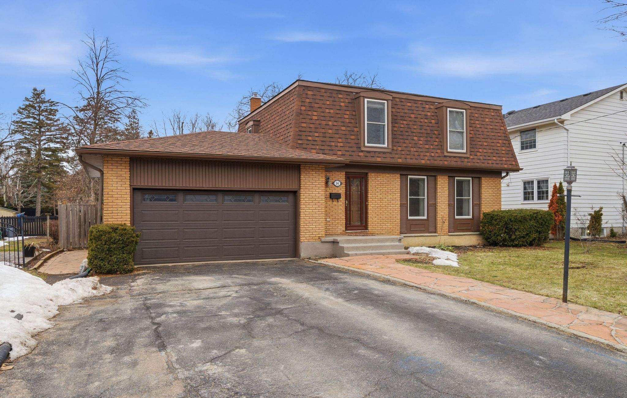 Introducing 14 Forest Hill Crescent. Situated on a quiet residential street within walking distance to children's play park, schools, recreation centres, churches & hospital resides this well maintained mansard roof style 2 storey house welcoming its next family, home. Ample parking in the paved driveway with flagstone lined walkway. Enter via the 397 sq ft attached double garage into the rear mudroom or spacious tiled front foyer. Hardwood flooring and updated baseboards through the large east facing living room providing early morning natural sunlight & into the west facing dining room. Nicely updated kitchen with coffee coloured cabinetry to ceiling, complimenting custom window valance & backsplash. An additional bank of cabinetry provides functional pull out pantry storage & breakfast bar, ideal for those busy mornings, providing added food prep space or displaying an entertaining spread. This main floor also offers a 2 piece powder room. The hardwood continues up the stairs & throughout the upper level. Here you're granted 4 generously sized bedrooms with deep window sills, the primary with updated double closets and a modernized full bath offering timeless tiled flooring, vanity with marble countertop & subway tiled deep soaking tub with spa shower feature. Additional living space in the finished basement providing great ceiling height in the large recreation room & separate bonus room with two windows & pot lighting. Rear interlocking patio with gas BBQ hook-up overlooks the massive fenced yard with tree fort & open space for play. This well maintained home in Belleville's east end is now available for your viewing. Windows(2022), Kitchen(2013), Main bath(2019), Roof(2021), Furnace & AC(2014), Freshly Painted(2026), Select Lighting Fixtures(2026), Foyer, Living & Dining Room, Kitchen & Powder Room Baseboards(2026), Laundry Room Flooring(2025), Storm Door(2024), Mudroom Door(2026), Upper Level Hall Runner(2026) Primary Closets & Wall(2026), Garage Door(2020).