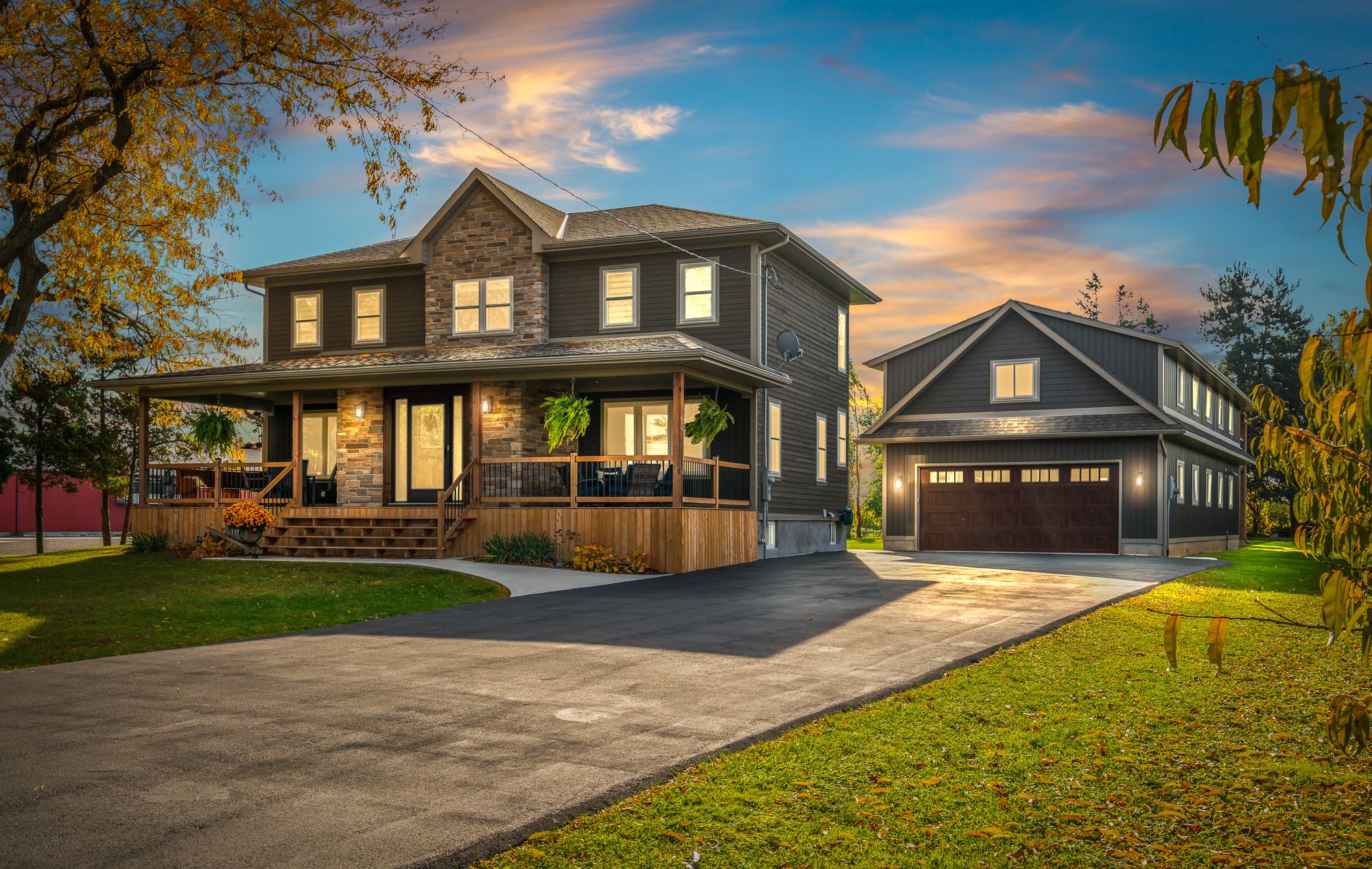 Experience the pinnacle of craftsmanship in this impeccably rebuilt Niagara-on-the-Lake estate. Nestled on close to 3/4 acre rural lot, this 5 bedroom, 4 bathroom custom home with over 3,000 finished sqft is for the discerning buyer who values true solid and quality construction. In the main residence, you will find warm deep wood trims, gleaming hardwood floors, large open living + dining spaces with many windows to bring in the light from all sides of the home. Chef's kitchen is outfitted with stone countertops, under-mount sink, and top-tier cabinetry, open to the backyard, hot tub, and in the distance, mature trees + a fire pit to enjoy those family summer evenings. There are 3 outdoor covered porch spaces to enjoy. The upper level includes 4 bedrooms on one floor, perfect for families, & 2 bathrooms including an ensuite and walk-in closet with built-ins. There are 2 laundry areas conveniently located. The lower level is completely finished with hi-end luxury flooring and includes living room, bedroom + bathroom, and additional storage. BONUS PROPERTY FEATURES: IMMACULATE INSULATED 6 CAR HEATED GARAGE, EV charger, workshop including bathroom, 600 volt power for 220 & 110 outlets. Perfect for any home based business. Plus EXTRA BONUS (Rarely Offered): 2nd level space - almost 1500 sqft! Ready to be transformed to a luxury guest house, second residence, or home based offices. Unbeatable location in Niagara-on-the-Lake - close to world class theatre, wineries, + dining experiences. A peaceful retreat, yet very close to all modern amenities. Huge opportunity here - MUST SEE!! **INCLUDED: John Deere Riding Mower with Trailer, tool cabinet in garage, snowblower, all appliances as seen in photos**and so much more!!!