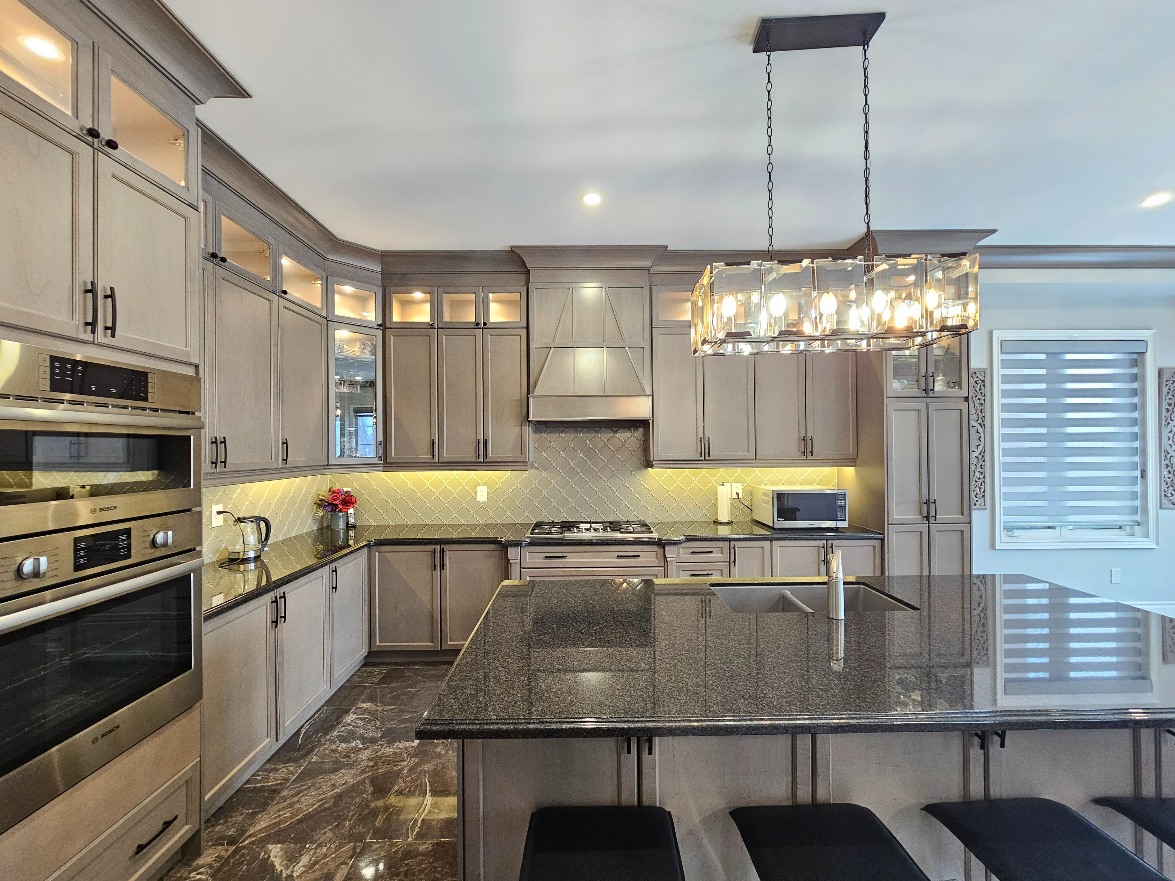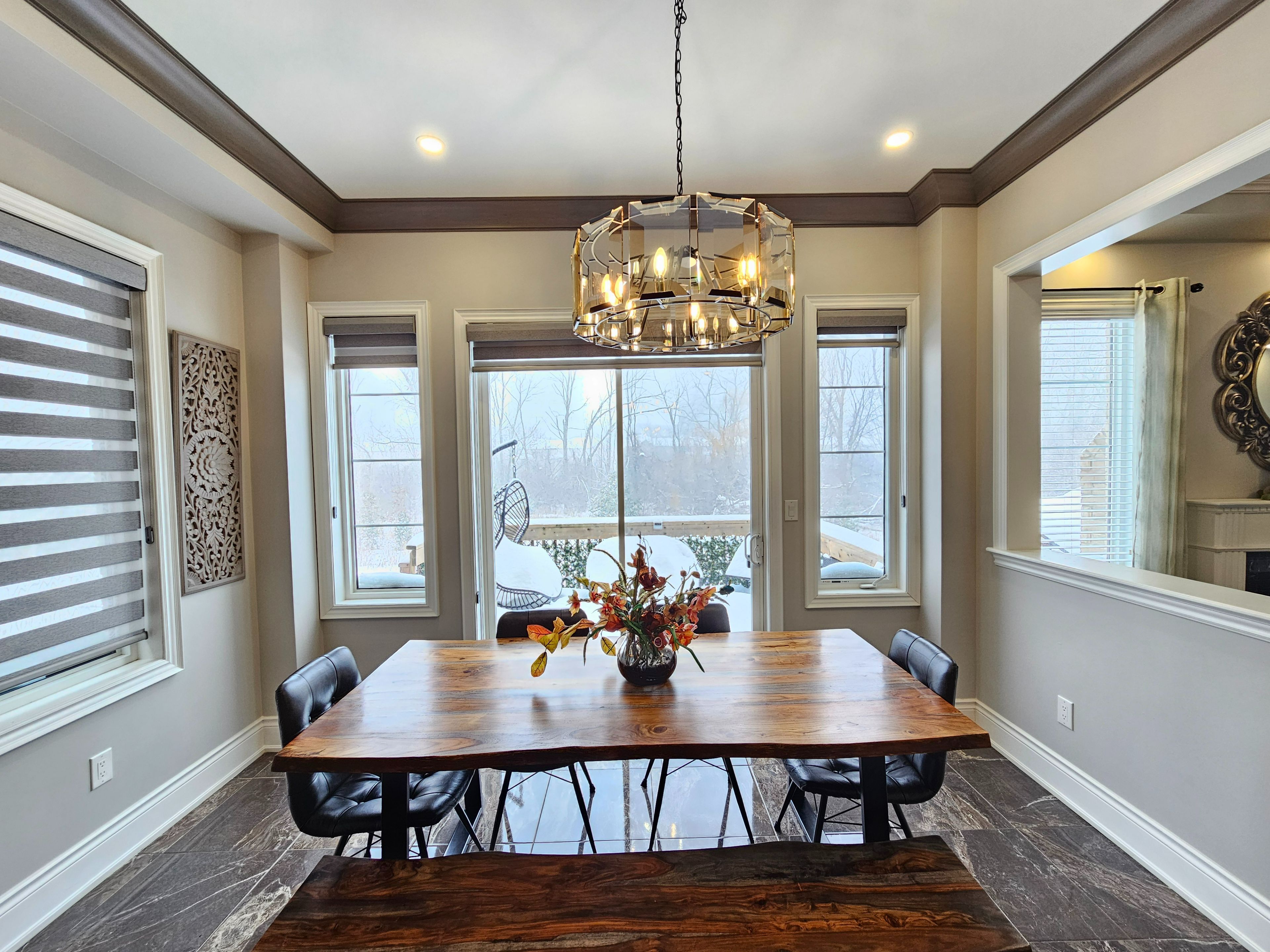 Welcome to 227 Humphrey St, an impressive 5+1 bedroom, 5.5-bathroom executive home in Waterdown's prestigious Mountainview Heights, offering a total of 4,871 sq. ft. of luxurious living space, including a permitted 1,358 sq. ft. finished basement with a separate entrance. Situated on a premium ravine lot, this home provides stunning views, privacy, and ample space for families and multi-generational living. Designed with elegance and functionality in mind, the home features 10-ft ceilings on the main floor, a chef's dream kitchen with ceiling-height custom cabinetry, granite counter-tops, a built-in double oven, a gas cook-top, and a grand centre island, all complemented by designer lighting. The bright and airy family room, filled with natural light, offers a cozy fireplace and scenic views of the ravine, while the formal living and dining areas provide sophisticated entertaining spaces.