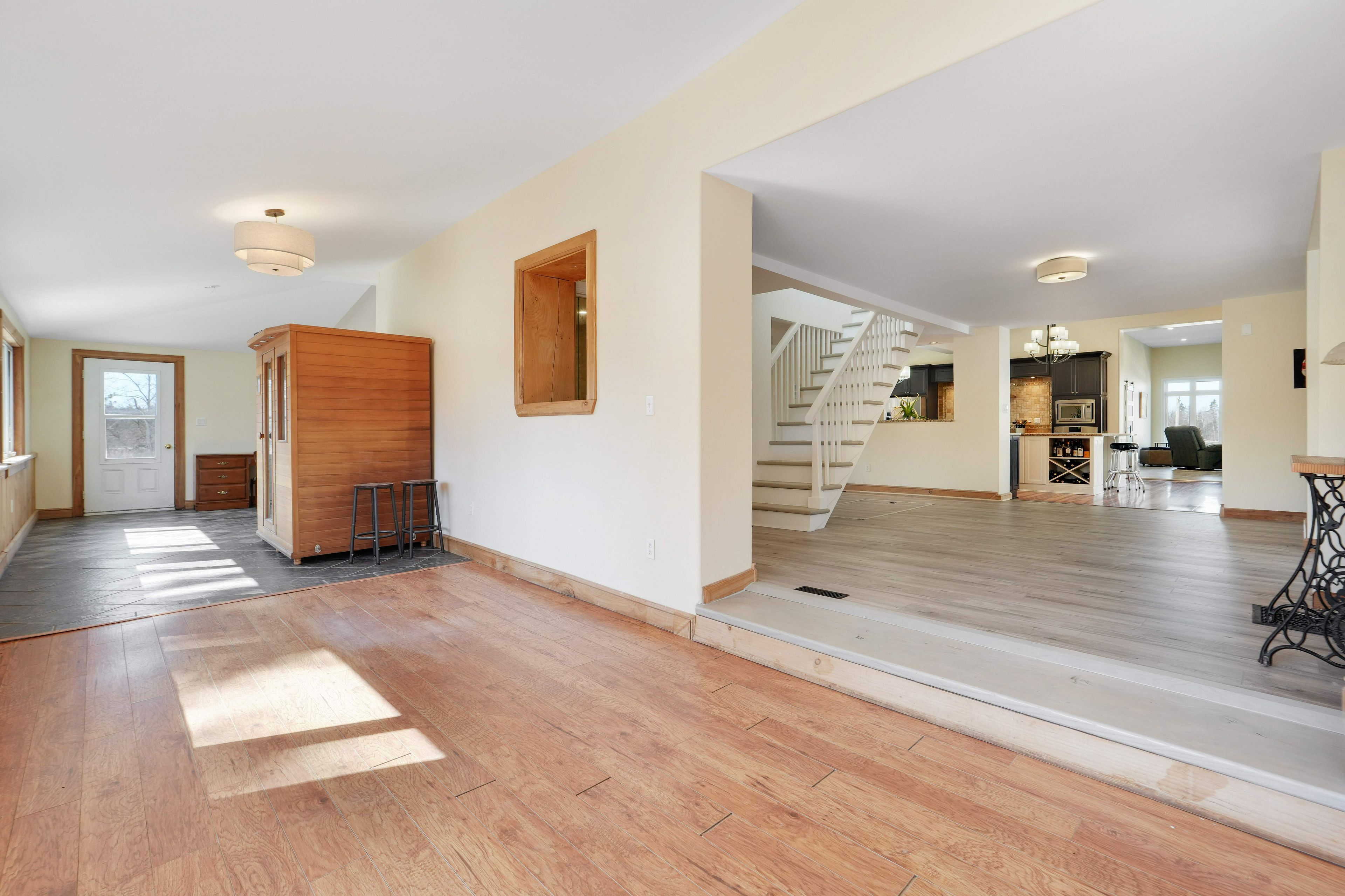 - Interior Features: Auto Garage Door Remote, Carpet Free, Primary Bedroom - Main Floor, Sauna, Water Heater Owned