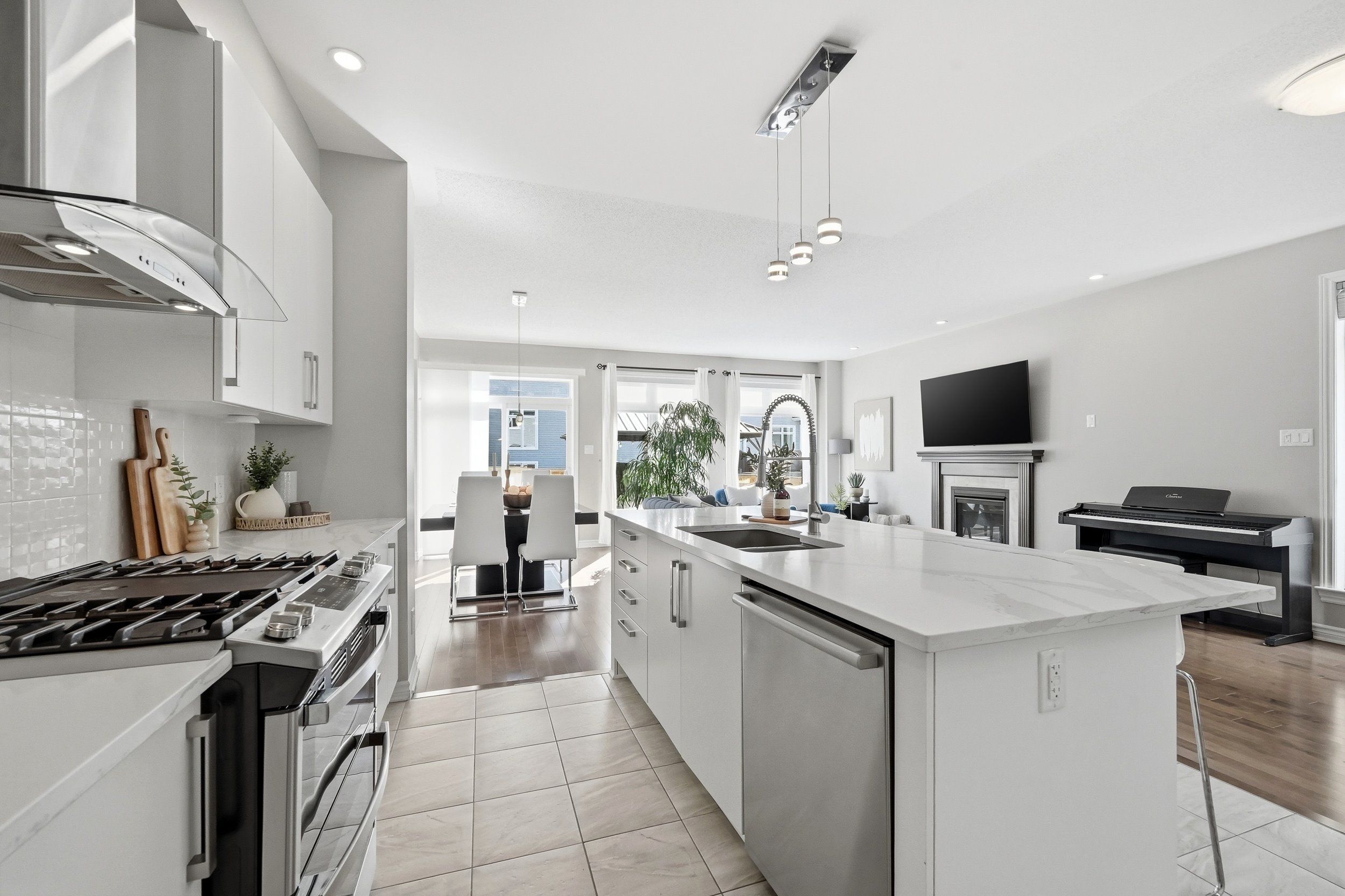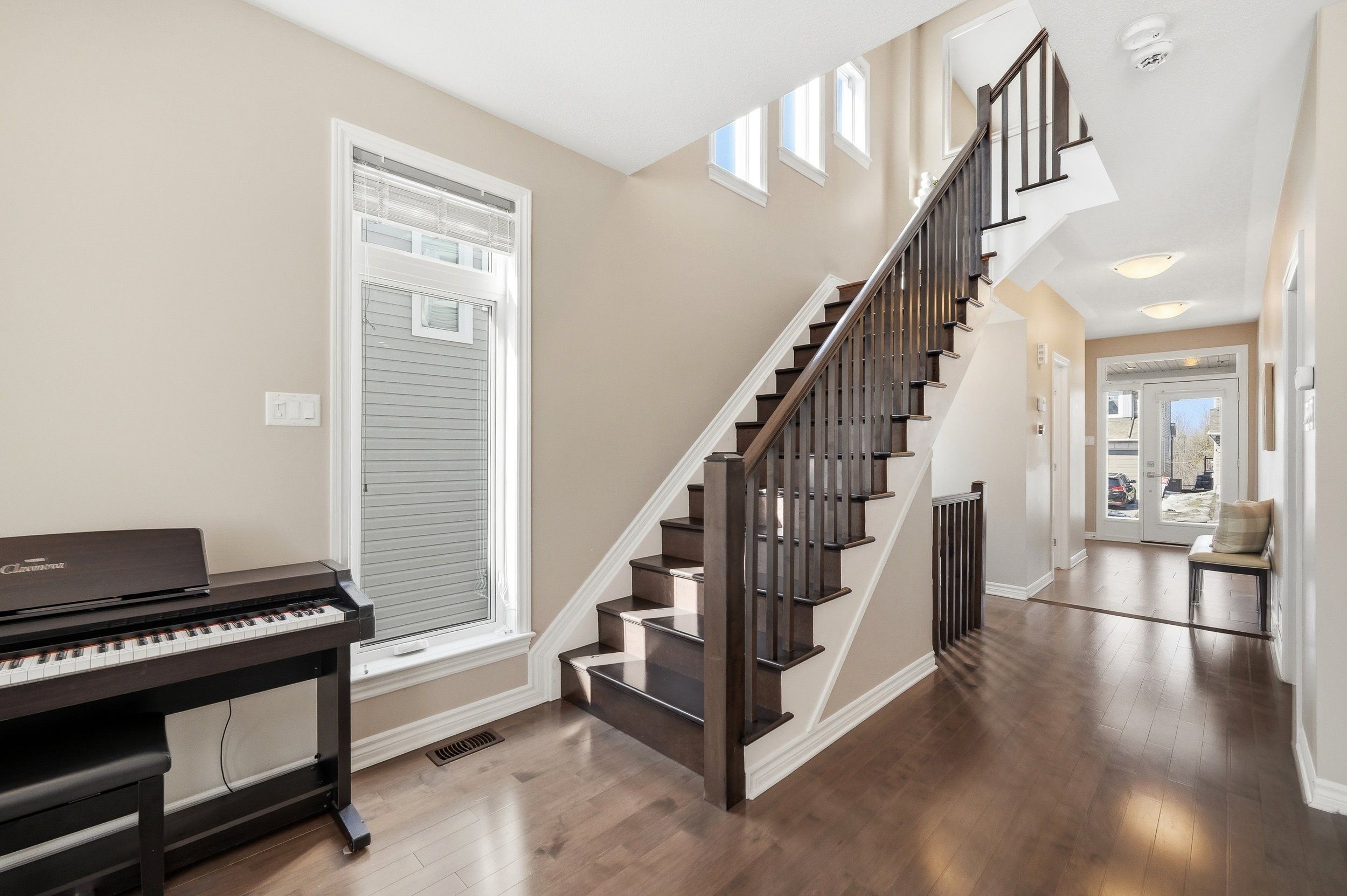 Welcome to this stunning Tamarack home in the highly desirable community of Cardinal Creek. Beautifully maintained and thoughtfully designed, this property offers an exceptional blend of quality finishes, bright spaces, and everyday comfort. The main floor features impressive 9-foot ceilings and rich hardwood flooring throughout, creating a warm and inviting atmosphere. At the heart of the home is a stylish kitchen featuring sleek quartz countertops, gas stove, extended cabinetry, and ample storage to keep everything organized and within reach. The kitchen flows seamlessly into the dining area and spacious living room, where a cozy gas fireplace serves as a beautiful focal point. The main floor also features a convenient powder room & large mudroom. As you go up the hardwood staircase and reach the upper floor, you'll find a spacious primary bedroom retreat, complete with a gorgeous bathroom featuring double sinks, quartz countertops, a glass shower and a stand-alone bath, as well as his-and-hers closets. You will also find 3 other generously sized bedrooms, another full bathroom and laundry room. The fully finished basement provides additional space for relaxation and entertainment, featuring a projector and a movie screen, an electric fireplace and custom built-in entertainment units - perfect for movie nights or hosting friends and family. The basement also offers a bonus room, currently used as an office. Outside, the fully fenced backyard offers privacy and room to enjoy the outdoors, whether you're hosting summer gatherings on the two-tiered deck or unwinding at the end of the day. A double car garage and 2 more parking space offers convenience for multi-drivers household. Situated in a sought-after, family-friendly neighbourhood, this home is close to parks, schools, shopping, and Petrie Island. Commuters will appreciate the convenient access to the nearby LRT expansion, offering an easy connection to downtown Ottawa and surrounding areas.