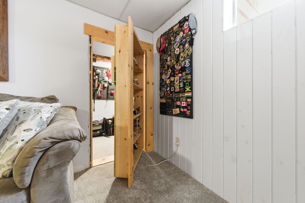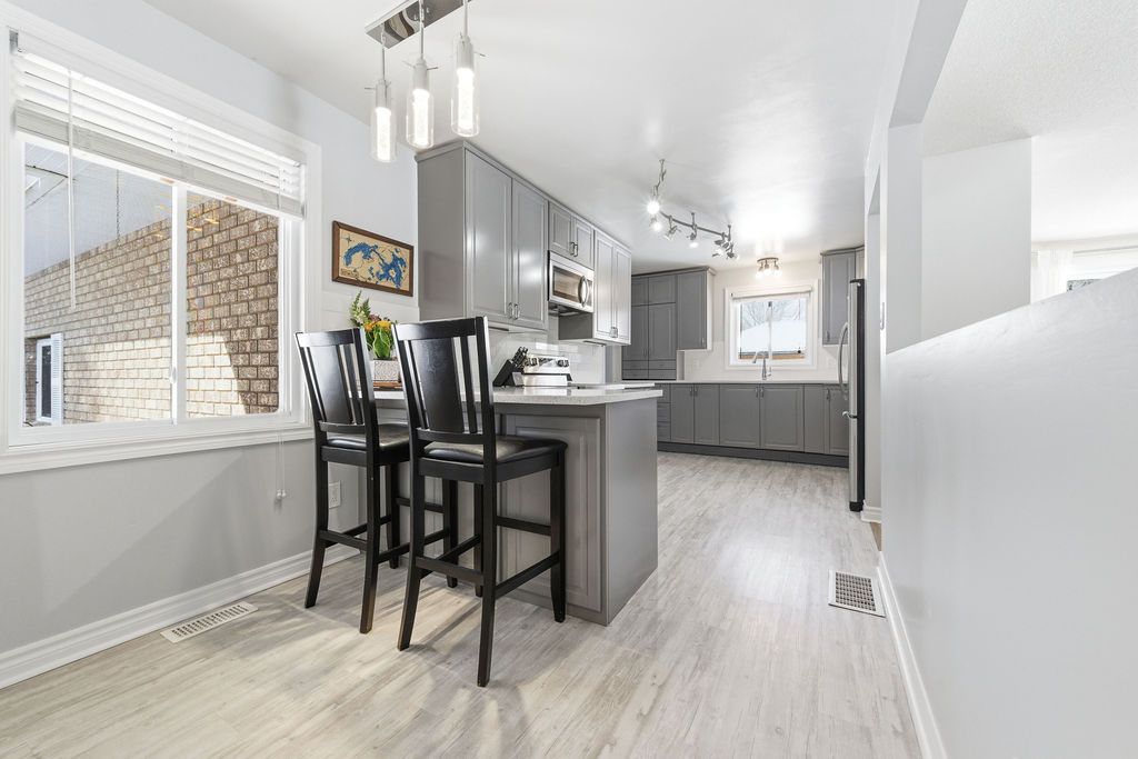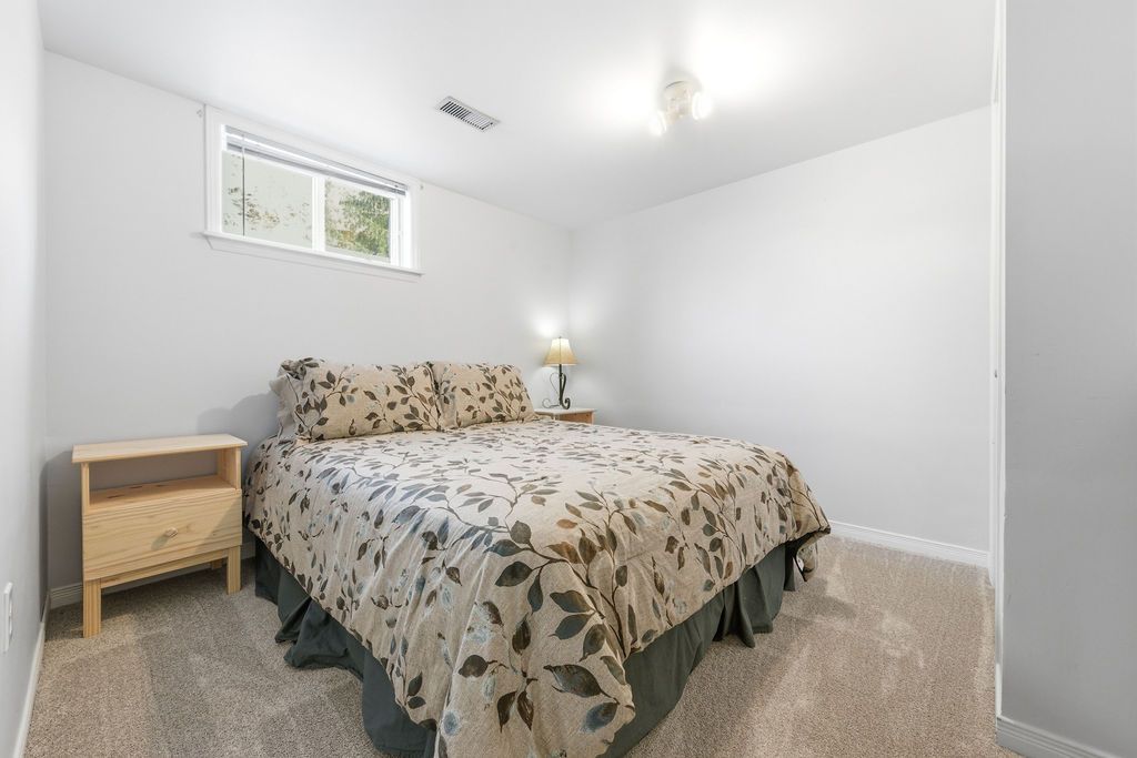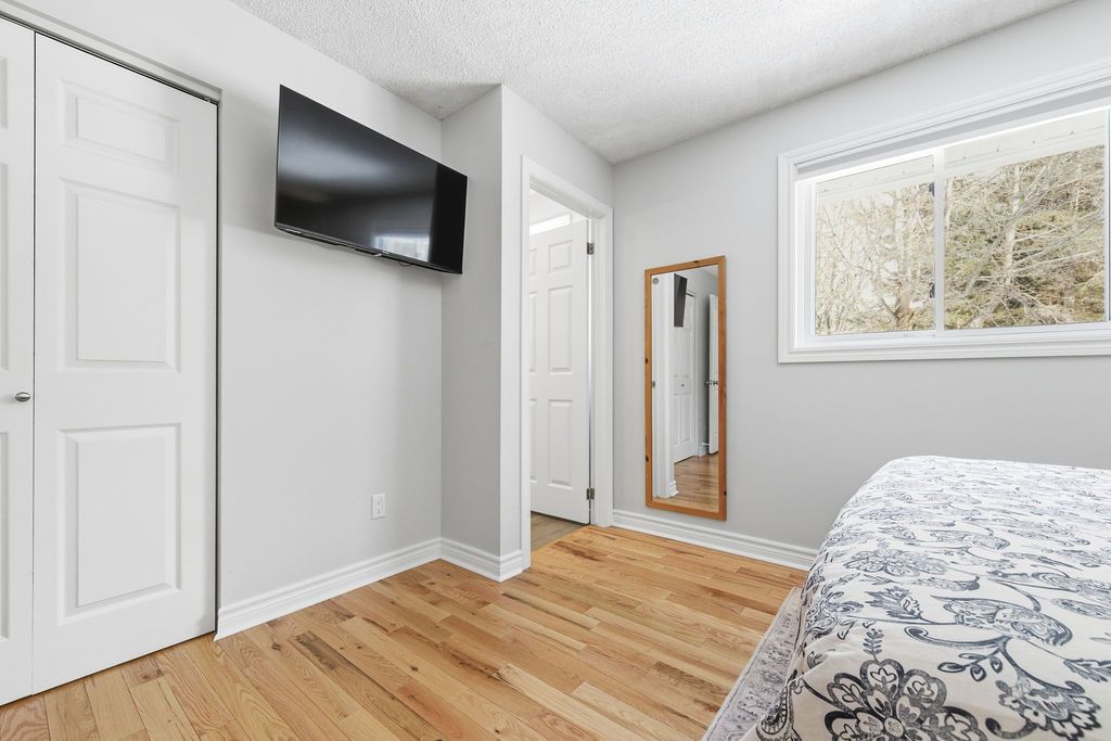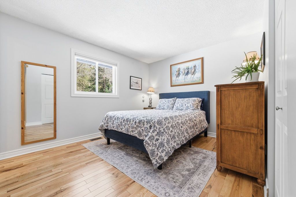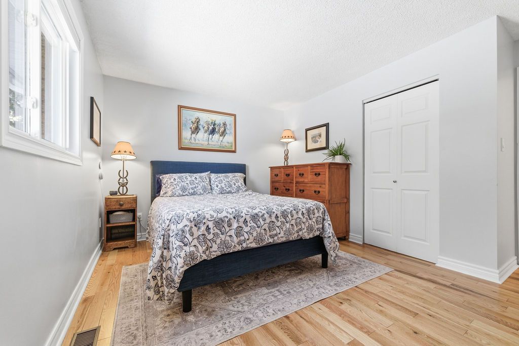 Welcome to this beautifully maintained solid brick bungalow, located in a highly desirable neighborhood enriched with mature trees and timeless charm. This home features 3+1 bedrooms and 2 full bathrooms, seamlessly blending classic character with extensive modern updates. Step inside to discover a bright and inviting main level adorned with hardwood floors throughout the living room, dining area, hallway, and bedrooms. The living room boasts patio doors that lead to a private backyard deck-perfect for entertaining or relaxation. The modern kitchen, updated in 2021, offers abundant cabinetry, quartz engineered countertops, and a convenient pantry, making it both functional and stylish. The five-piece main bathroom includes a cheater ensuite door to the primary bedroom for added comfort and privacy. A mudroom off the garage enhances functionality, making your daily comings and goings effortless. The lower level expands your living space with a spacious rec room anchored by a cozy gas fireplace, complemented by brand-new carpeting. It also includes an additional bedroom, a laundry room, a generous storage area, and a hidden "secret room" tucked behind a bookcase for a unique touch. This home has been thoughtfully refreshed, featuring all new paint throughout in the past month, new flooring completed within the last two years, and recent major mechanical and exterior updates, including new shingles in 2024 and a high-efficiency furnace installed in 2024.Outside, enjoy a private, fully fenced backyard, ideal for relaxing evenings or entertaining guests. A standout feature of this property is the attached insulated double garage, along with a newly built, detached double garage, providing exceptional space for vehicles, hobbies, or storage. Move-in ready and situated in a coveted neighborhood, this home offers the perfect combination of comfort, style, and practicality! Please note that a 48-hour irrevocable is required with all offers.