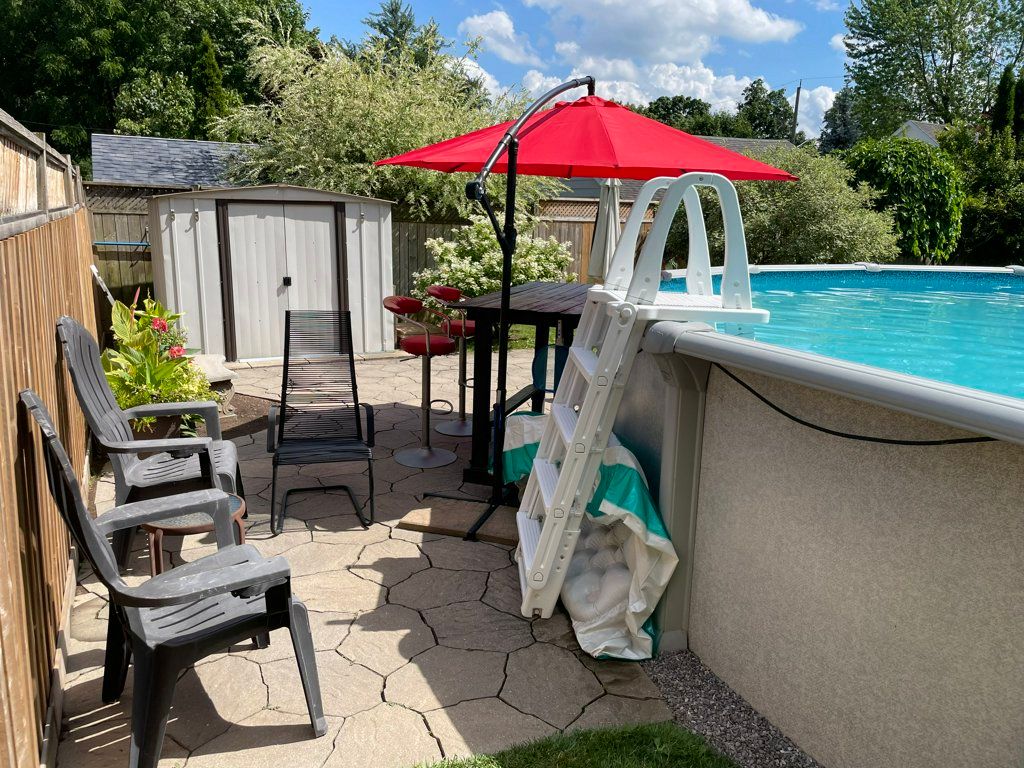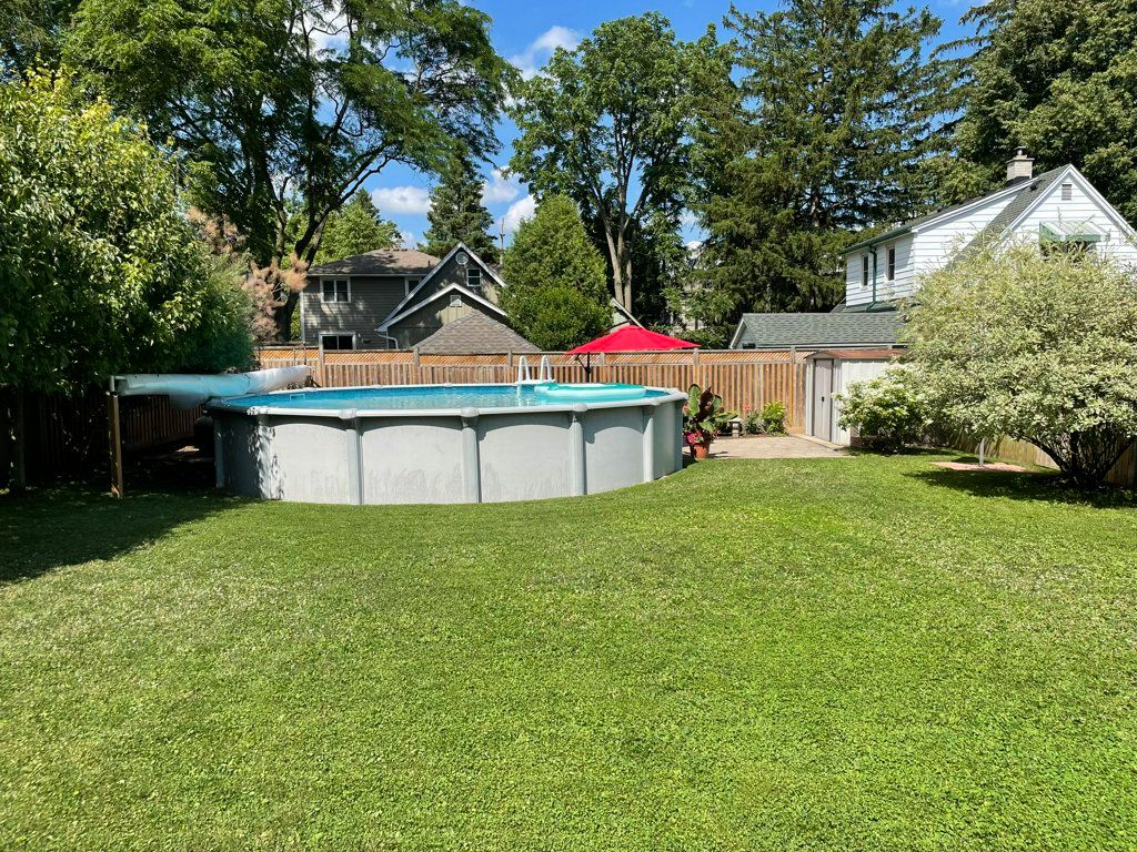 Charming and spacious 1.5 storey home on beautiful Mill St in the core of Waterdown! Incredible location, walking distance to schools, shops, walking trail, restaurants and Memorial Park. The main floor of this home offers a generous amount of living space including a brightly lit front living room with cove ceiling, a kitchen with ample cabinetry and convenient pantry closet, a formal dining room, a large family room addition with gas fireplace and beamed ceiling and a 4 piece bathroom. A hardwood staircase takes you to the upper level that includes a spacious primary bedroom with 2 closets and a good sized second bedroom also with two closets. The basement level offers a handy separate walk up entrance, recreation room and loads of storage. The beautifully manicured fully enclosed backyard features an above ground pool with recently replaced liner, pump and filter and two patio spaces. Additional features include loads of attic storage, 2 sheds, recently painted exterior, newer washing machine, updated furnace, a/c and roof. This home offers so much opportunity for those looking for a solid affordable detached home with vintage charm, character and potential for reimagination. A fabulous core offering, not to be missed!