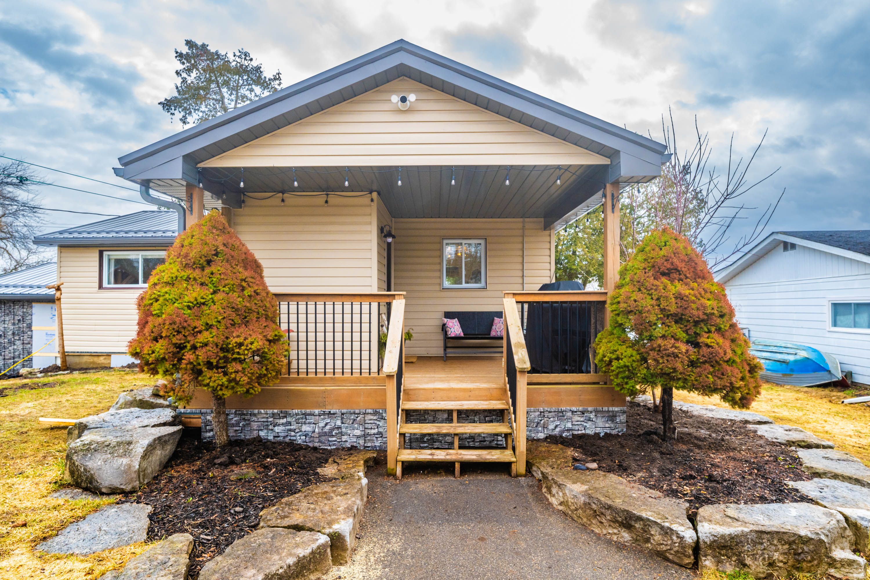 PUBLIC OPEN HOUSE SUNDAY 04/12/26 1PM TO 3PM. Nestled on a peaceful cul-de-sac in Betty's Bay, this immaculately presented 1,100 sq ft bungalow is a boater's paradise. With 65 ft of shoreline on Sturgeon Lake, a private dock, and direct Trent-Severn access-boat to Fenelon Falls and Bobcaygeon with no locks. This home offers an attached single-car garage, plus a detached 2-car garage and dual driveways for all your vehicles and toys. Inside, enjoy 3 bedrooms, an eat-in kitchen, main floor laundry, and a walkout deck. The bonus room overlooking the water adds future potential. Minutes to Lindsay and Fenelon Falls-your four-season waterfront lifestyle starts here!