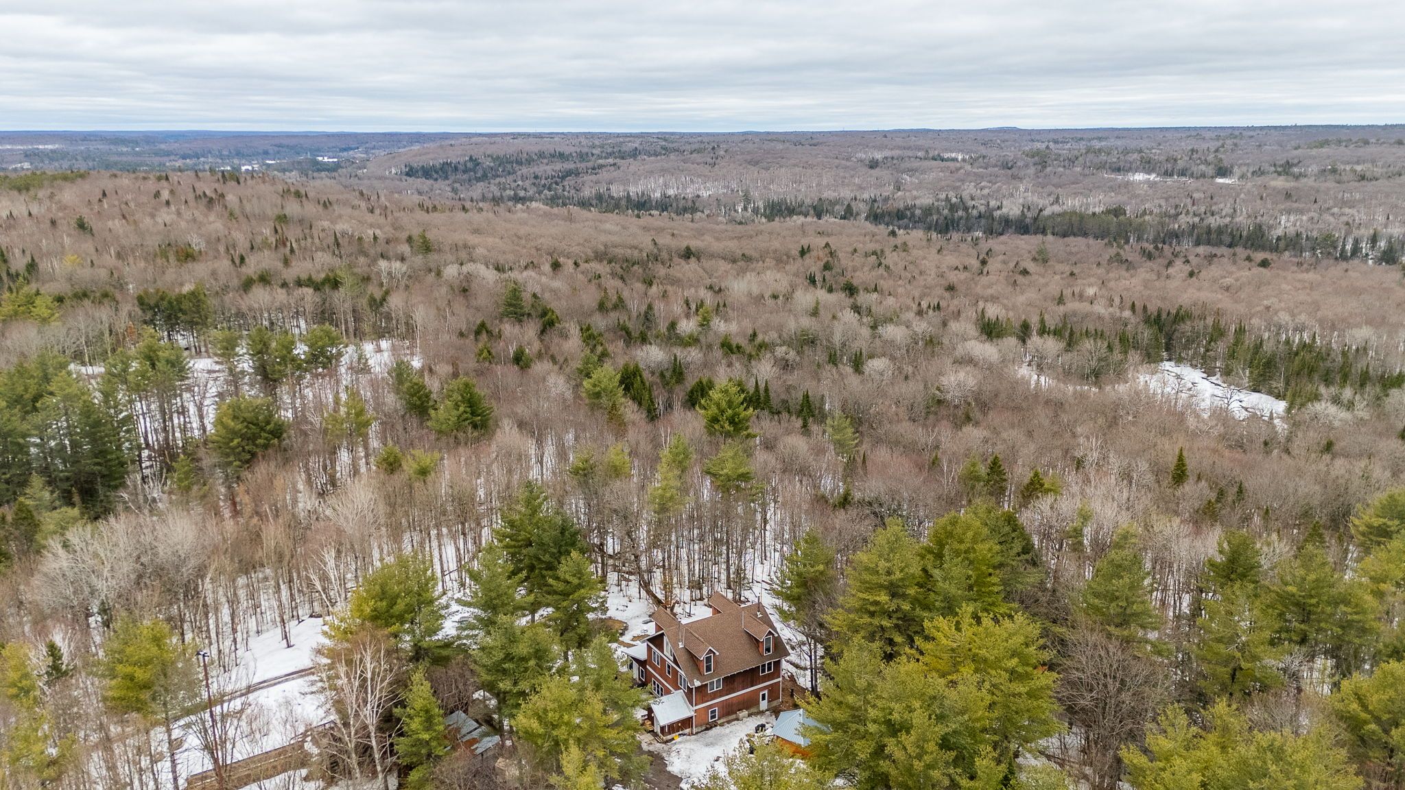Welcome to your private escape in the heart of Haliburton County-where nature, space, and lifestyle come together on approximately 46 acres of woodland currently enrolled in the Managed Forest Incentive Program. With trails to explore and a a stream at the rear of the property, this is the ultimate setting for those seeking the true cottage country experience. This unique off-grid year round home is designed for comfort, functionality, and gathering. Step inside through the oversized mudroom-perfect for storing all your outdoor gear-and into a spacious dining area warmed by a cozy woodstove. The adjoining living and family room offers a welcoming space to relax, with direct access to a generous 3-season solarium. The main floor also features a 2 pc bath and a large country kitchen complete with ample storage, stainless steel appliances, a separate bar sink, and its own walkout to the exterior-ideal for entertaining and everyday living. Upstairs, the second level offers four spacious bedrooms, a shared 5-pc bathroom, and a versatile common or gaming area-perfect for kids or additional lounging space. The third-floor loft is dedicated to a private primary retreat, featuring a 4-pc ensuite with an oversized walk-in shower complete with dual shower heads for a spa-like experience. As an added bonus, the accessory building expands your living options with two decks, a main floor laundry shared with main house, living space, and bath, plus an upper in-law suite with its own kitchen, bath, and living area-ideal for extended family or guests. This is a rare opportunity to embrace Haliburton life at its finest-offering a self-sufficient, off-grid lifestyle with the potential to connect to hydro at the road in the future. A true homestead setting perfect for large or multi-generational families looking to live, explore, and unwind. Don't miss your chance to experience this one-of-a-kind property and the lifestyle that comes with it.