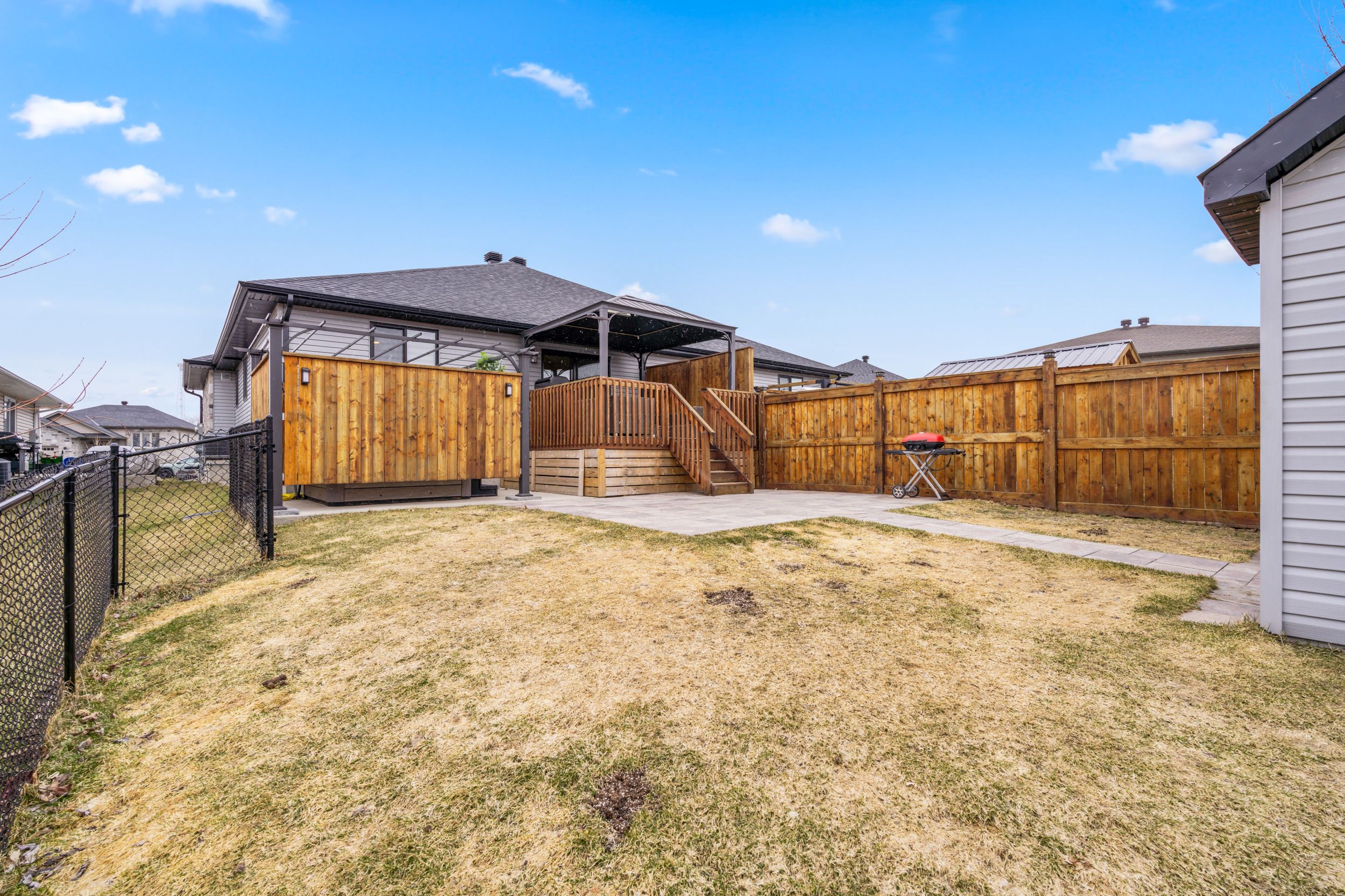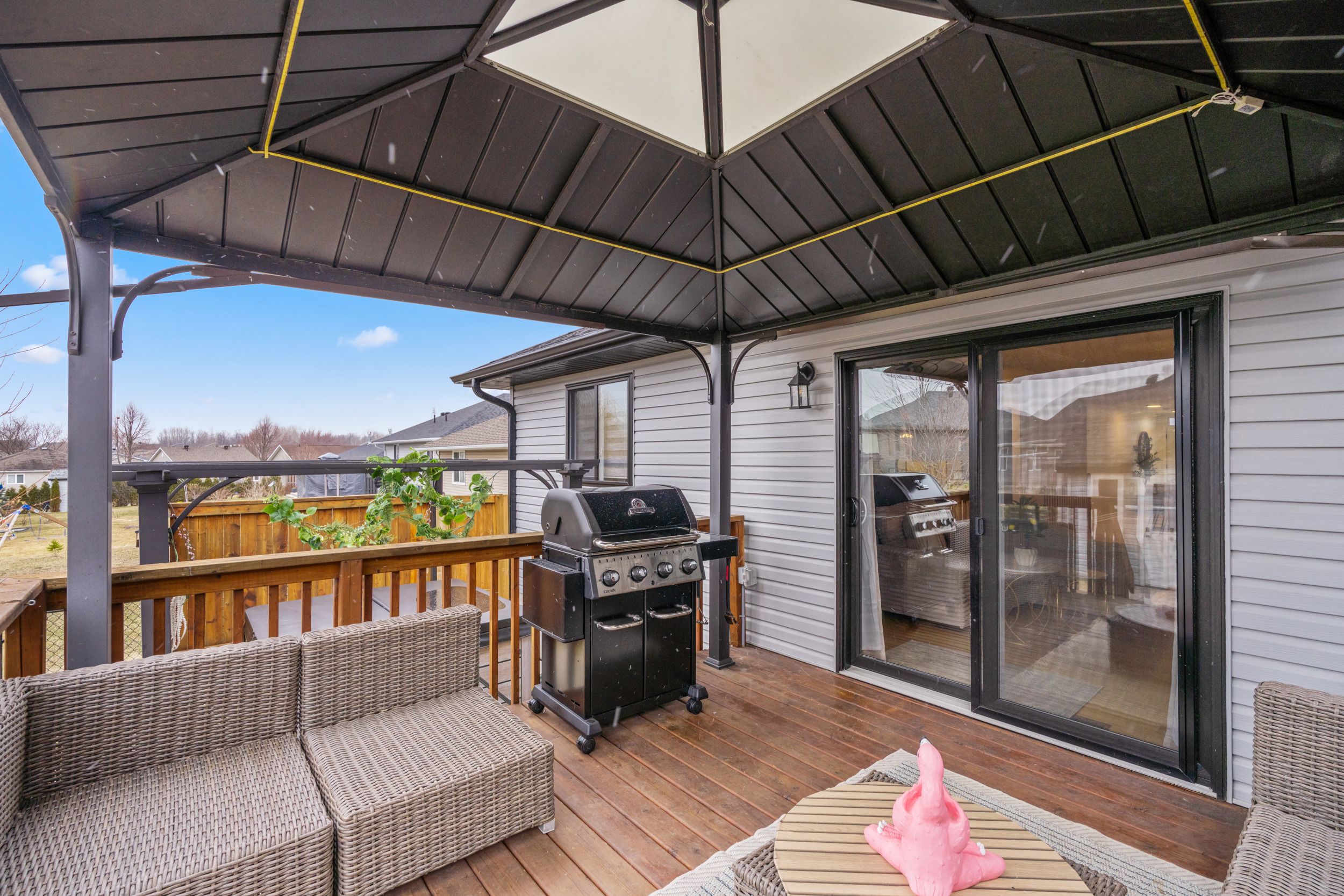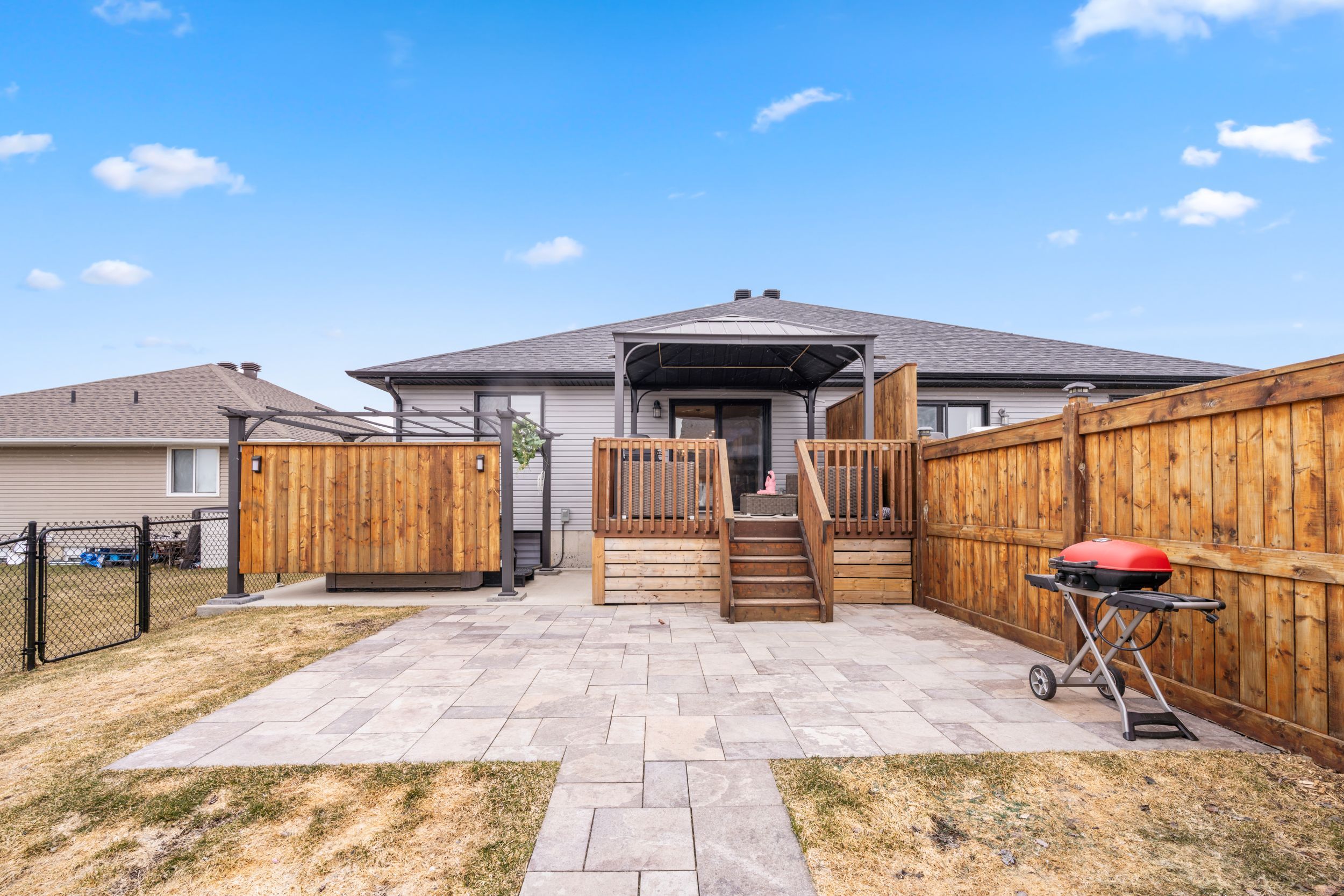 Introducing impressive 274 Eastridge Dr! This one is anything but ordinary, a stunning 1-car garage semi-detached bungalow, ideally nestled in the coveted EastRidge community, near all family-friendly amenities and great schools. Ideally situated within walking distance to public transit, Gray's Creek Conservation Area, the Waterfront Trail, the St-Lawrence River & trails, and easy access to HWY 401. Everything about this property makes you want to stay and soak in the modern vibe. From the fully fenced-in backyard retreat featuring a deck and gazebo, a hot tub on a concrete slab with pergola, a ground-level patio, to the large custom shed (with power), every corner is sure to impress. Step inside to a sunlite open-concept floor plan featuring a gourmet kitchen complete with highend stainless appliances (inlc built-in microwave), quartz countertops, an under-mount sink, ceramic backsplash, a breakfast counter/island, a convenient pantry, pot lights high ceiling. The dining area flows seamlessly into the inviting LR, accented by crafted coffered ceilings and a walk out to your backyard oasis. The main level offers a spacious primary bedroom, a full 4-piece bathroom, a 2-pc bath, and a separate laundry area for added convenience and access to the garage. Downstairs, the professionally finished basement expands your living space with a spacious lounge area boasting a gas fireplace, a brick feature wall with a live-edge mantel, a spa-like 3 pc bathroom, and a large utility room incl. the natural gas furnace, central A/C, hot water on demand system, and air exchanger, with plenty of additional space for storage or a potential future hobby room, bedrm or rec area. The custom closet organiser is incl. (20k). Please allow 24 hours business hrs irrevocable to all offers.