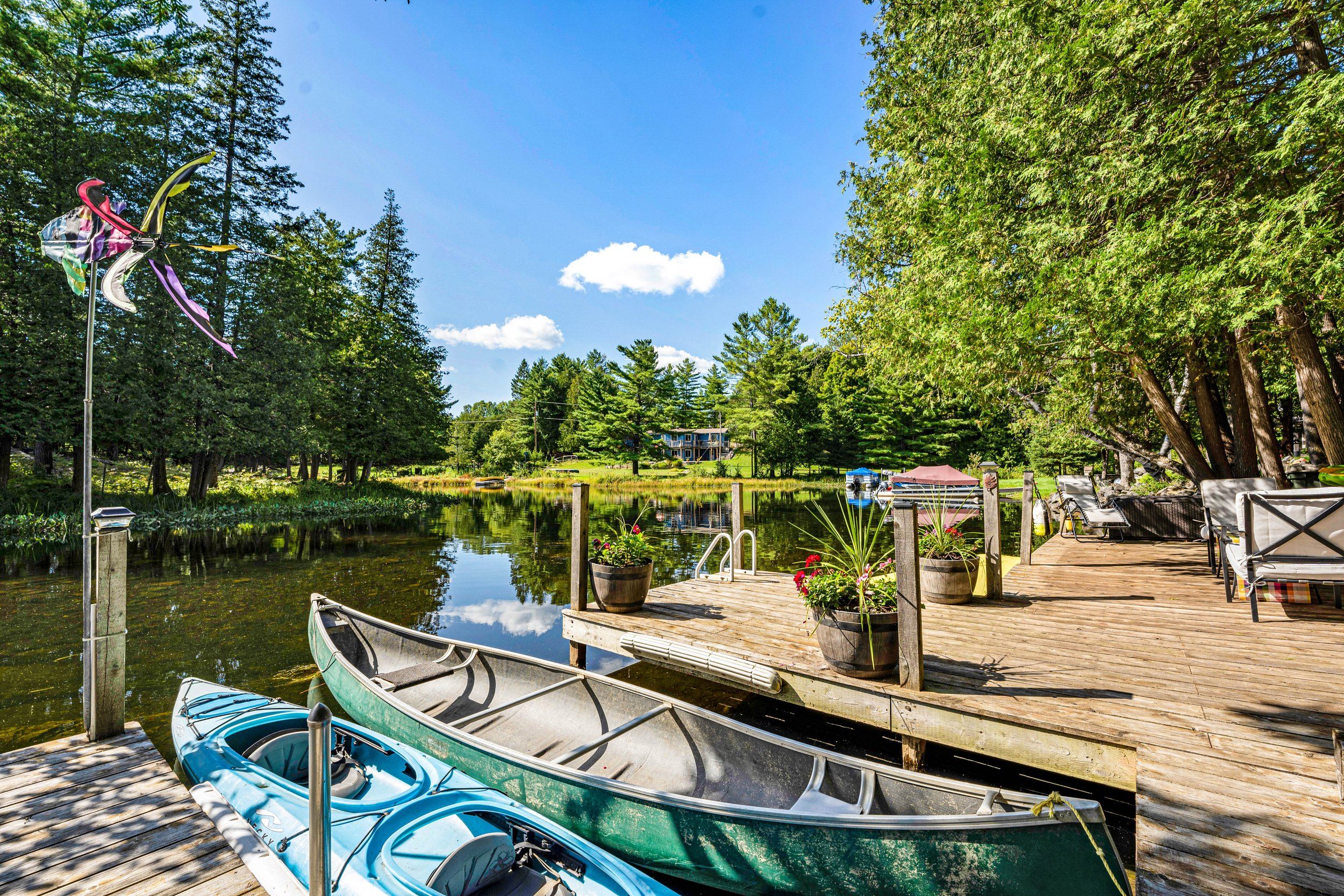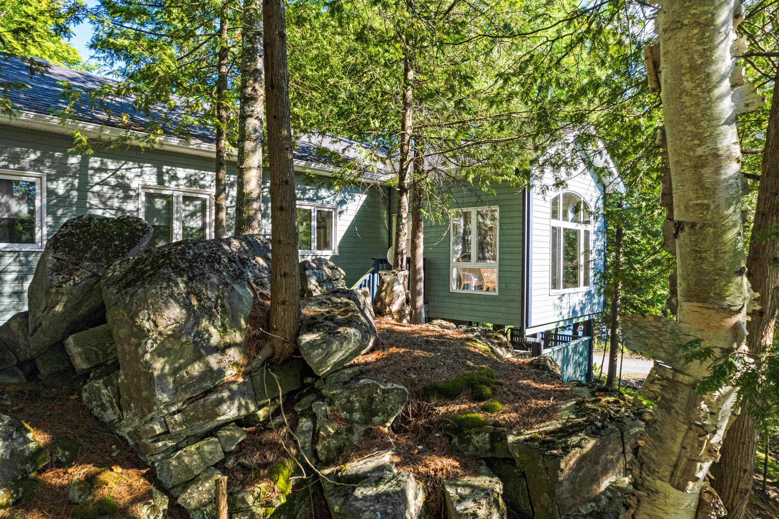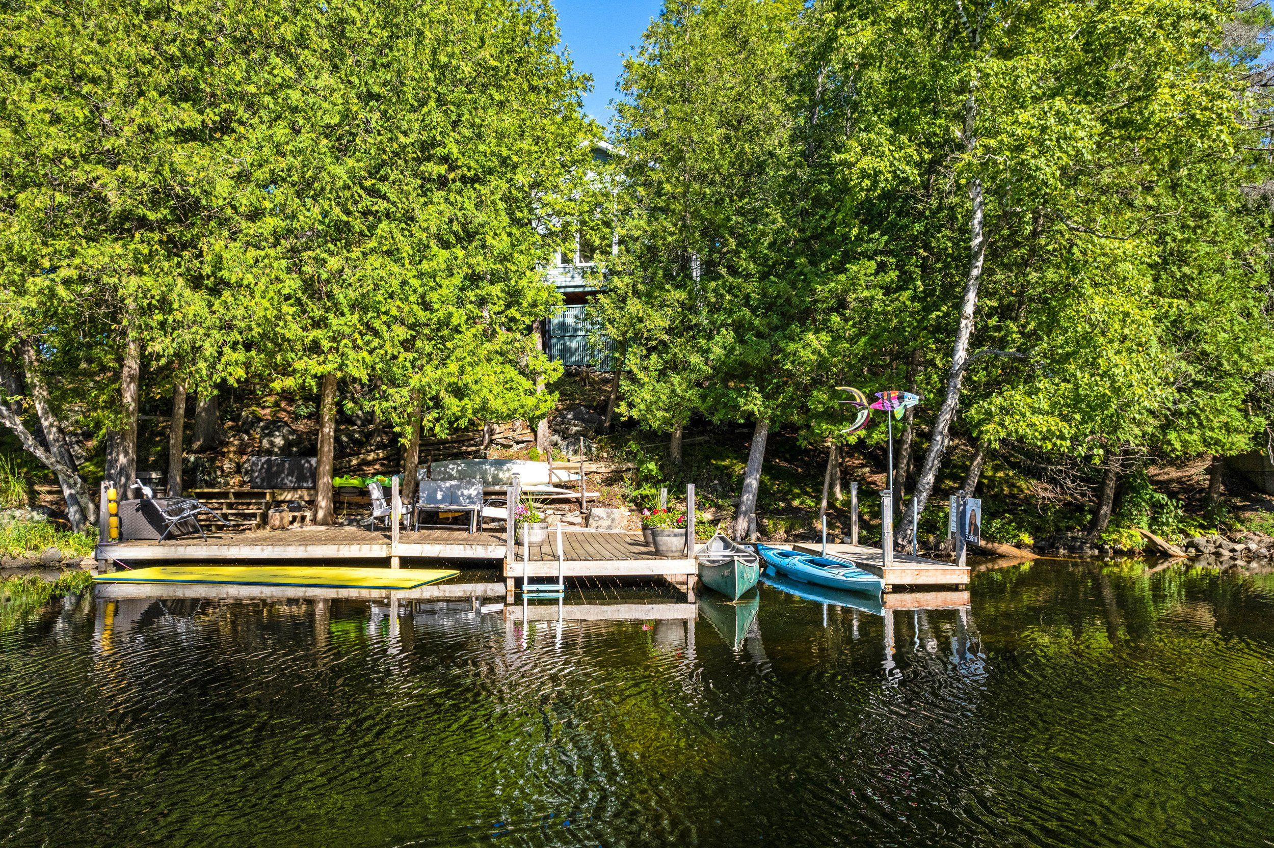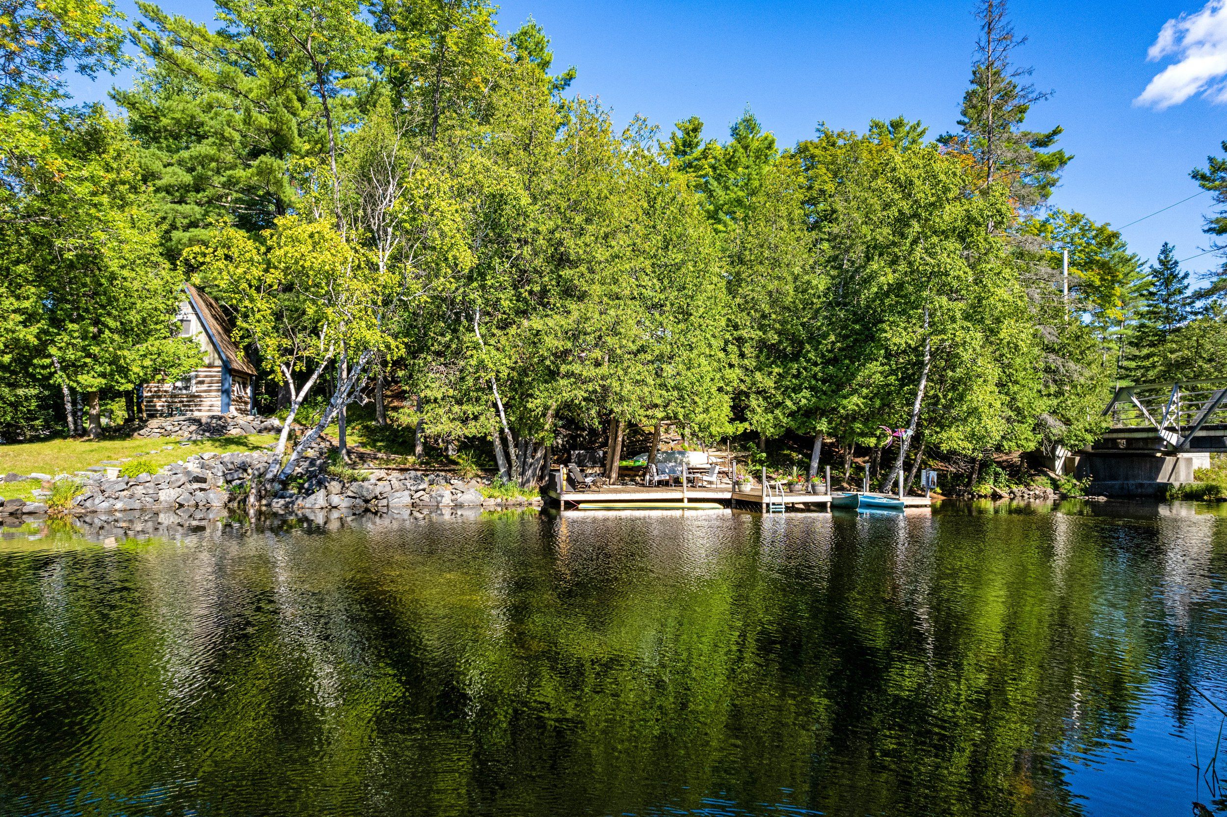 Merging the luxury of a stunning, four-season residence with the quintessential charm of a waterfront retreat, this 1.2-acre property-meticulously renovated in 2016-is sure to impress. Boasting 158 feet of Mississippi River frontage and adjacent to Palmerston Highlands Island, the home is easily accessible via a year-round, fully serviced municipal road. (Bridge to left of cottage leads to a private island, Palmerston Highlands Island). Rebuilt from the foundation up in 2016. The main level showcases an inviting open-concept Great Room anchored by a cozy propane fireplace, a chef-friendly kitchen featuring granite countertops, a center island, and stainless steel appliances, all set upon gleaming hardwood floors. Retreat to the primary suite, which offers a private 3-piece ensuite and dual closets, alongside two additional spacious bedrooms and a full family bathroom. Outdoor living is effortless: savour meals in the river-view screened porch or host gatherings on the expansive deck equipped with a gas BBQ hook-up. Guests will enjoy total privacy thanks to a fourth bedroom on the lower level and a charming bunkie that sleeps three. For recreation: swim from the dock or launch your canoe, kayak or seadoo from the 2-slip dock; enjoy ghost stories by the firepit; or let the kids blow off some steam at the play structure. The Snow Road Snowmobile Club and Snow Road Community hall offer community recreation as well. Don't miss out on summer on the Mississippi!