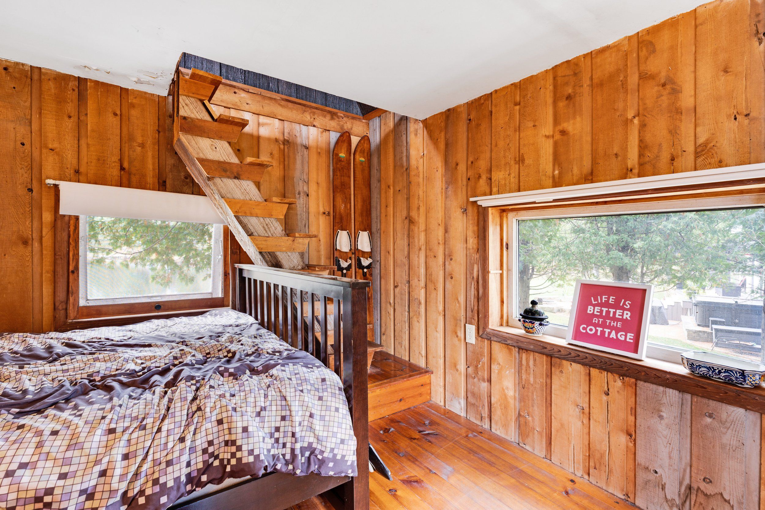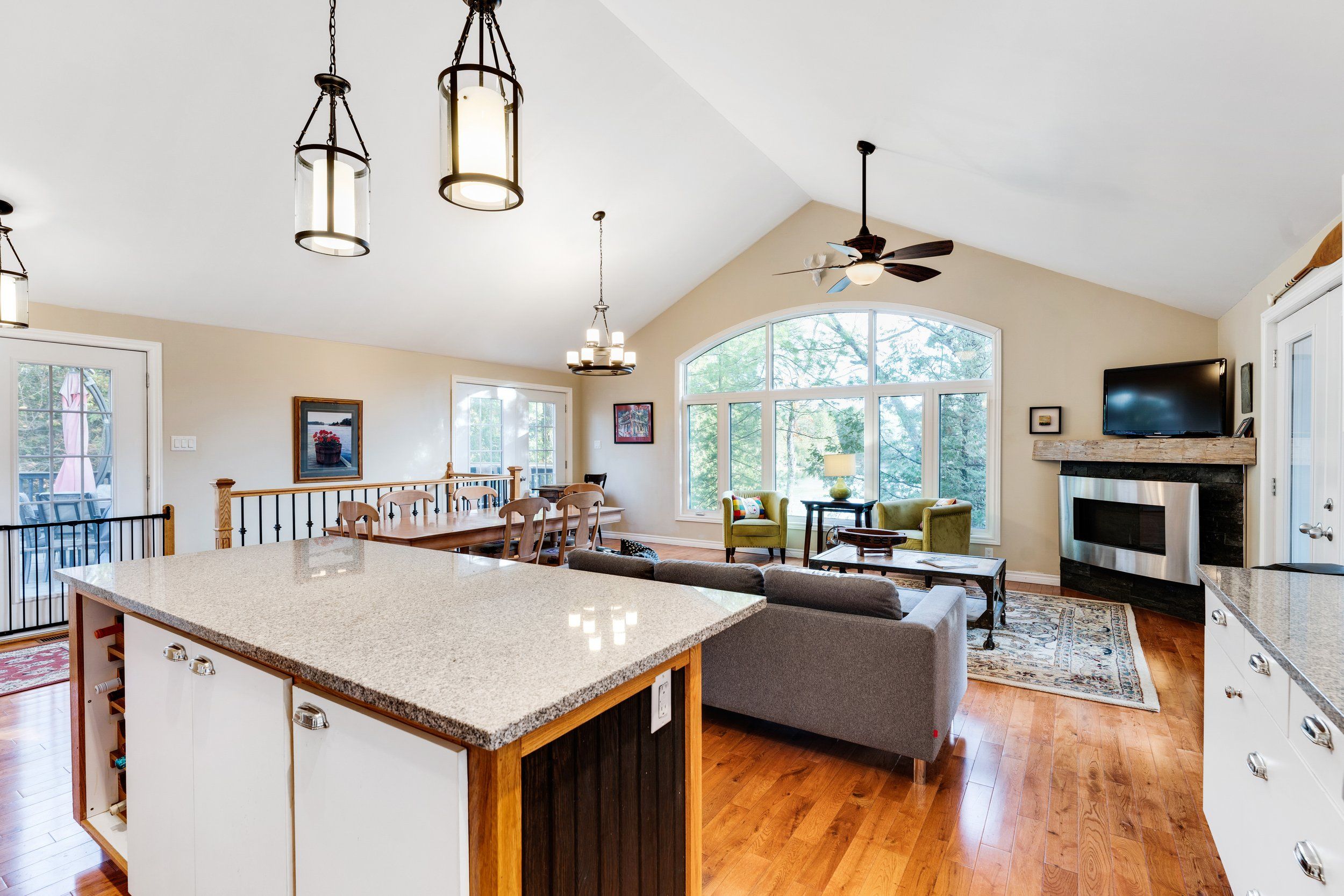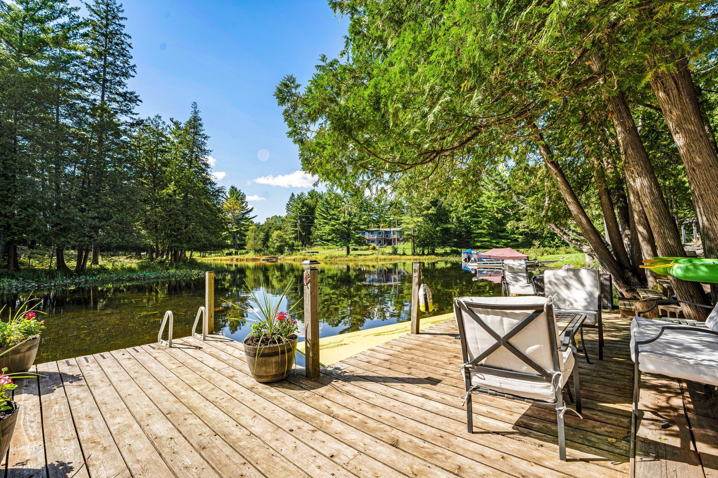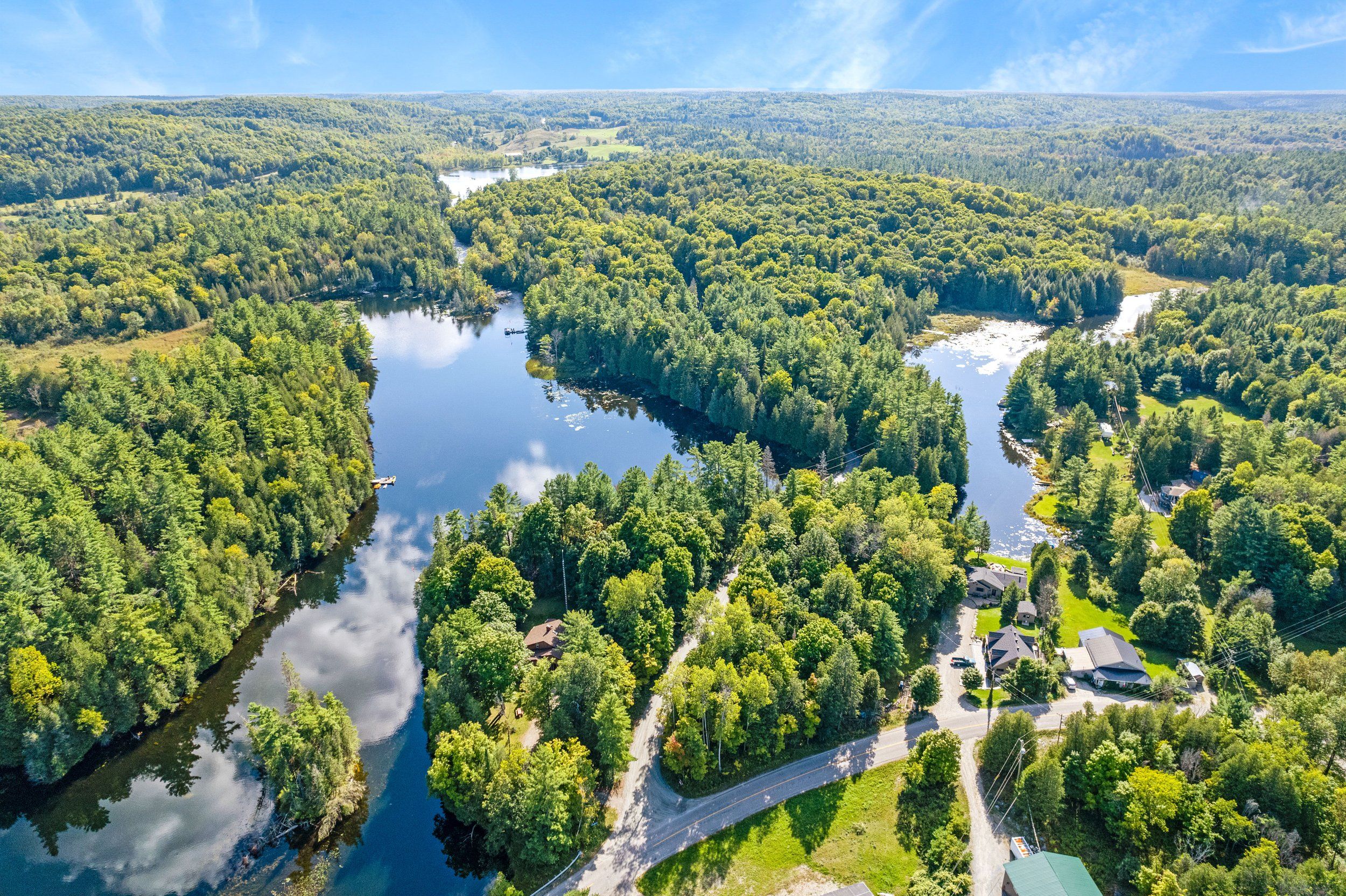 Merging the luxury of a stunning, four-season residence with the quintessential charm of a waterfront retreat, this 1.2-acre property-meticulously renovated in 2016-is sure to impress. Boasting 158 feet of Mississippi River frontage and adjacent to Palmerston Highlands Island, the home is easily accessible via a year-round, fully serviced municipal road. (Bridge to left of cottage leads to a private island, Palmerston Highlands Island). Rebuilt from the foundation up in 2016. The main level showcases an inviting open-concept Great Room anchored by a cozy propane fireplace, a chef-friendly kitchen featuring granite countertops, a center island, and stainless steel appliances, all set upon gleaming hardwood floors. Retreat to the primary suite, which offers a private 3-piece ensuite and dual closets, alongside two additional spacious bedrooms and a full family bathroom. Outdoor living is effortless: savour meals in the river-view screened porch or host gatherings on the expansive deck equipped with a gas BBQ hook-up. Guests will enjoy total privacy thanks to a fourth bedroom on the lower level and a charming bunkie that sleeps three. For recreation: swim from the dock or launch your canoe, kayak or seadoo from the 2-slip dock; enjoy ghost stories by the firepit; or let the kids blow off some steam at the play structure. The Snow Road Snowmobile Club and Snow Road Community hall offer community recreation as well. Don't miss out on summer on the Mississippi!