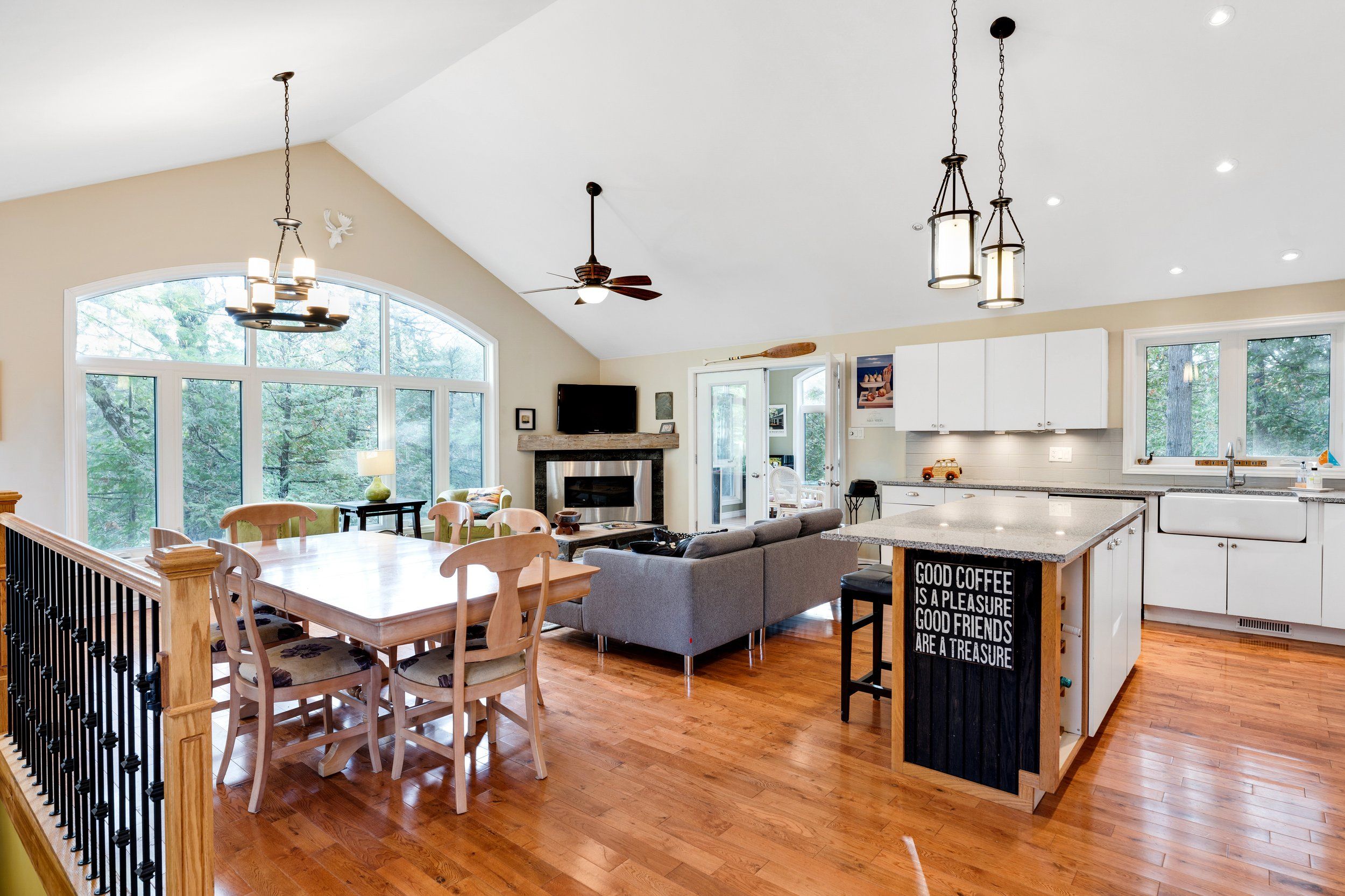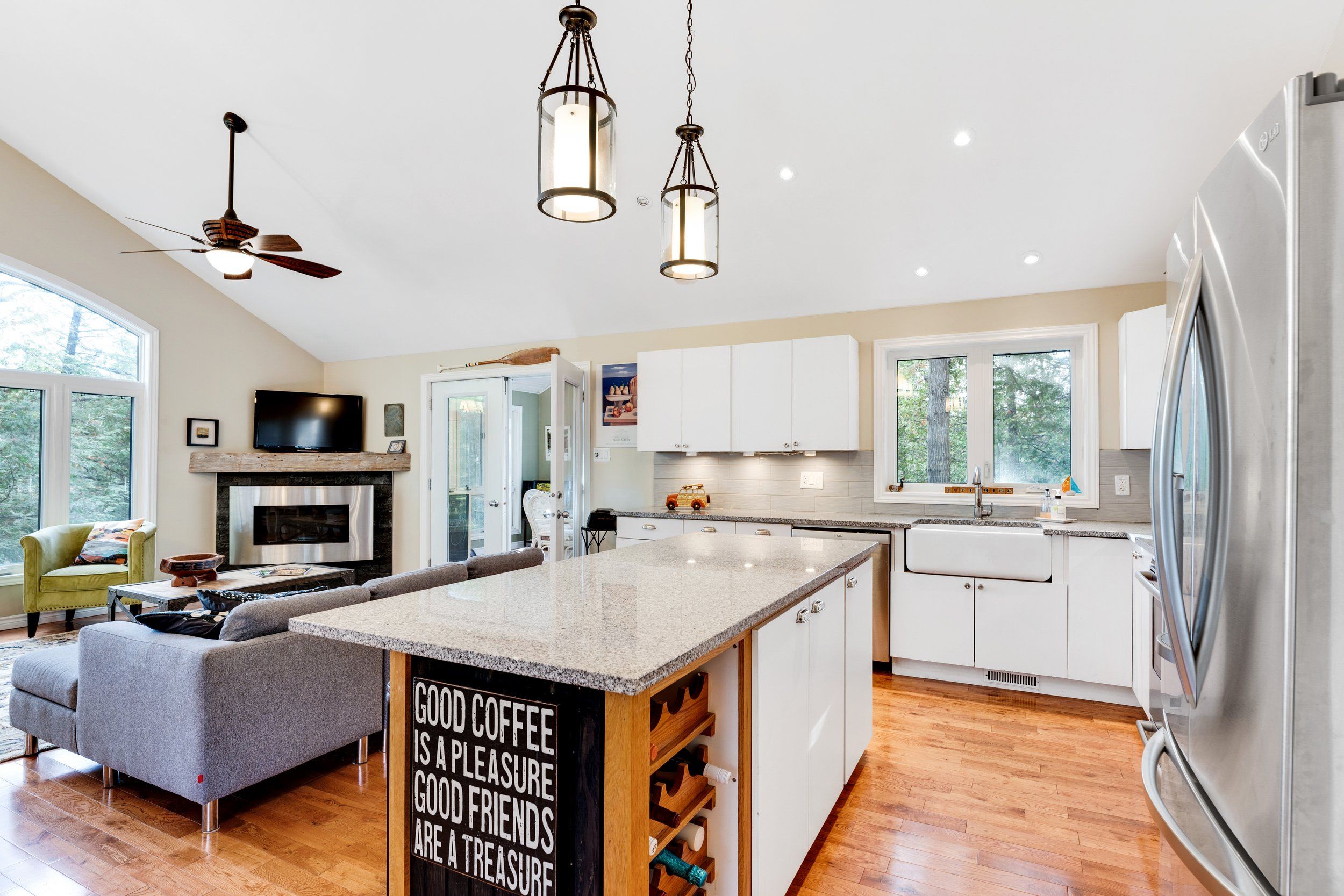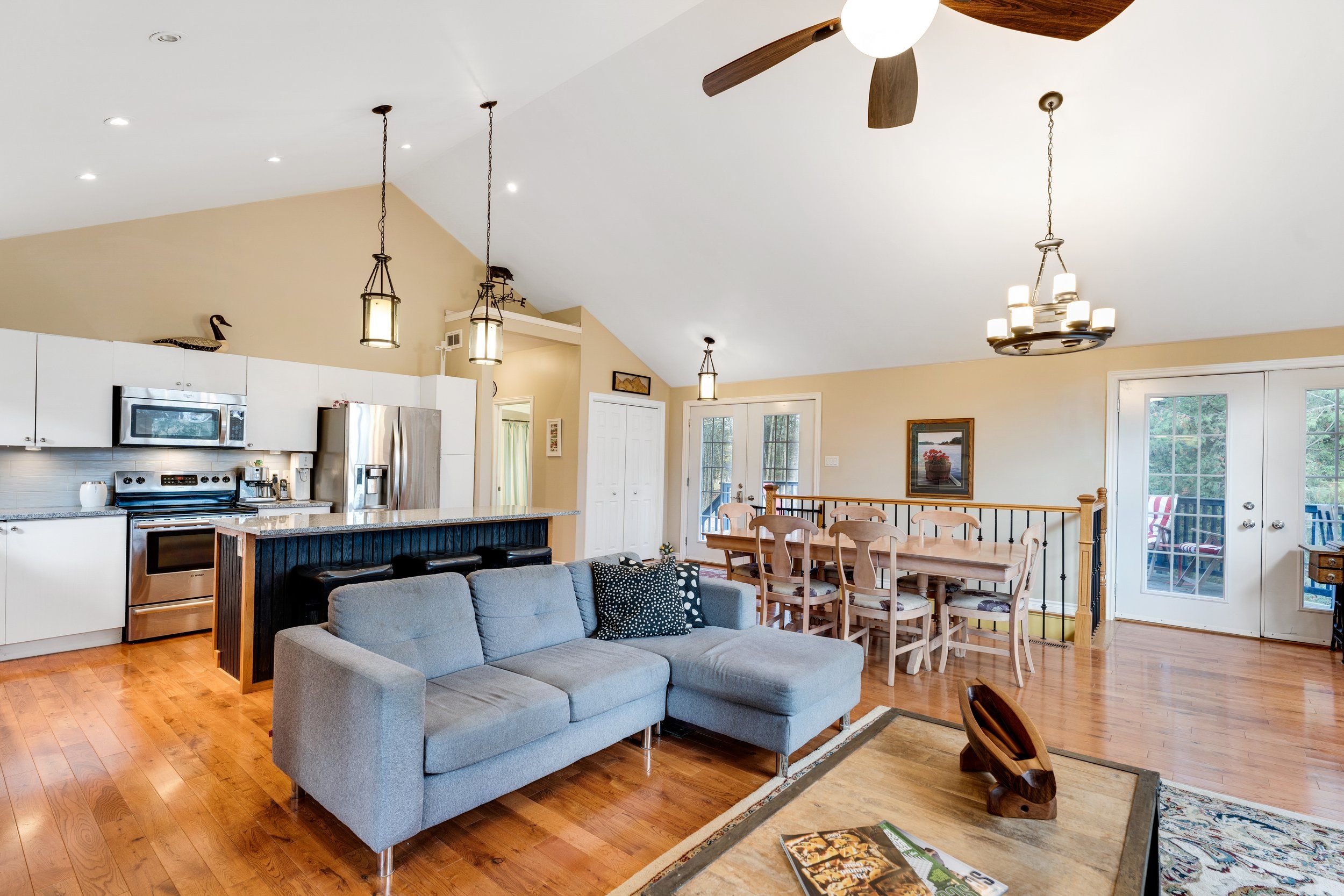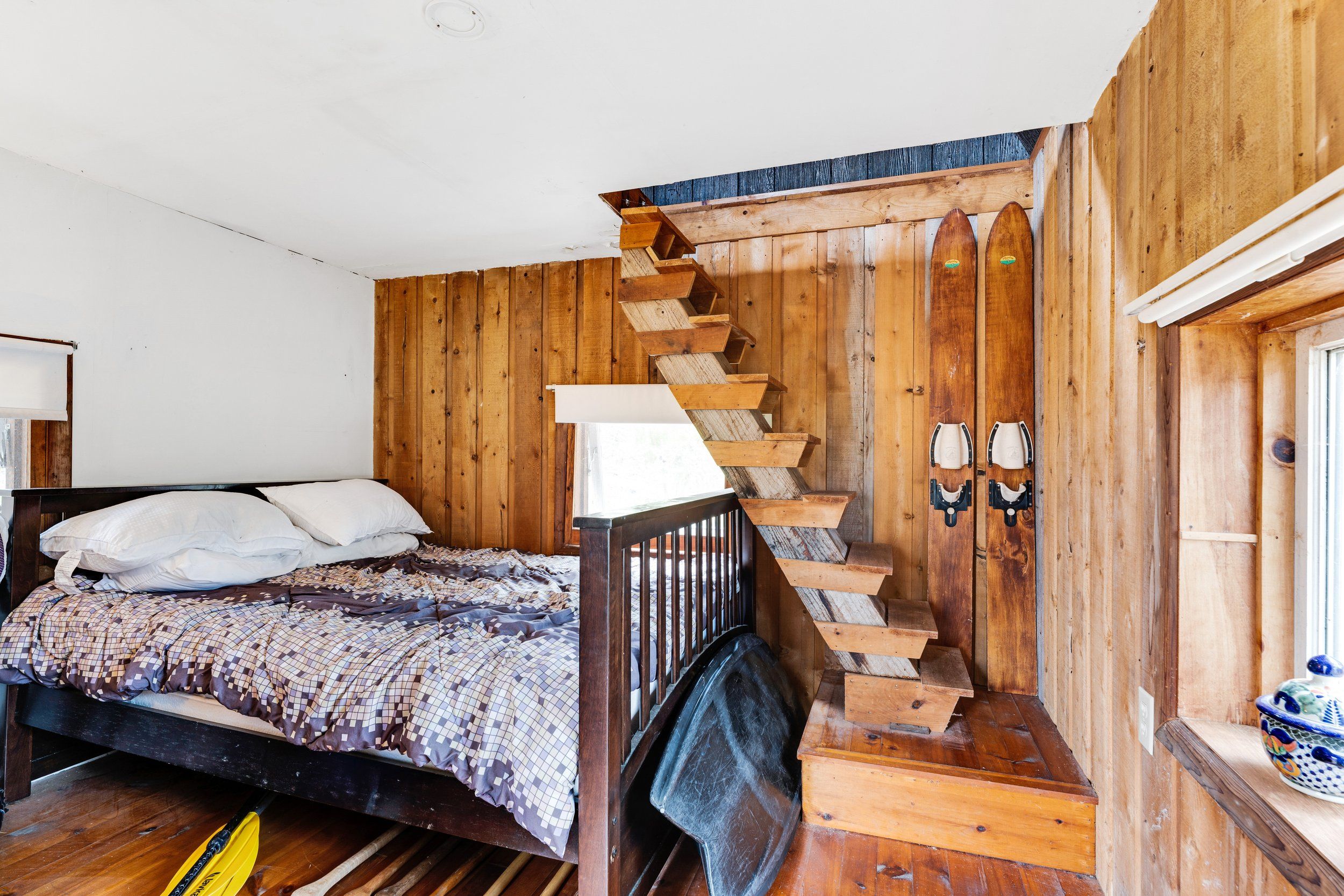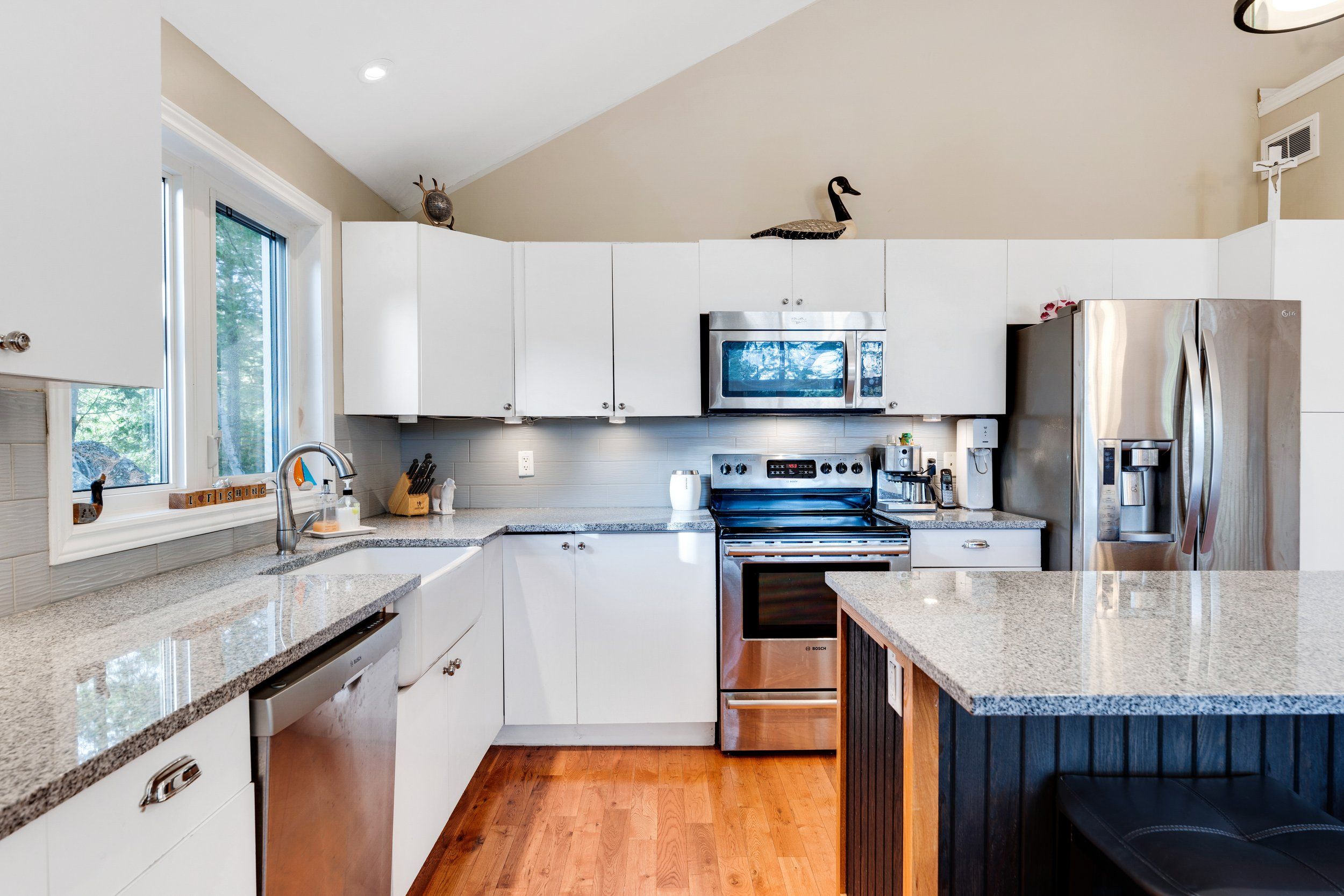 Merging the luxury of a stunning, four-season residence with the quintessential charm of a waterfront retreat, this 1.2-acre property-meticulously renovated in 2016-is sure to impress. Boasting 158 feet of Mississippi River frontage and adjacent to Palmerston Highlands Island, the home is easily accessible via a year-round, fully serviced municipal road. (Bridge to left of cottage leads to a private island, Palmerston Highlands Island). Rebuilt from the foundation up in 2016. The main level showcases an inviting open-concept Great Room anchored by a cozy propane fireplace, a chef-friendly kitchen featuring granite countertops, a center island, and stainless steel appliances, all set upon gleaming hardwood floors. Retreat to the primary suite, which offers a private 3-piece ensuite and dual closets, alongside two additional spacious bedrooms and a full family bathroom. Outdoor living is effortless: savour meals in the river-view screened porch or host gatherings on the expansive deck equipped with a gas BBQ hook-up. Guests will enjoy total privacy thanks to a fourth bedroom on the lower level and a charming bunkie that sleeps three. For recreation: swim from the dock or launch your canoe, kayak or seadoo from the 2-slip dock; enjoy ghost stories by the firepit; or let the kids blow off some steam at the play structure. The Snow Road Snowmobile Club and Snow Road Community hall offer community recreation as well. Don't miss out on summer on the Mississippi!