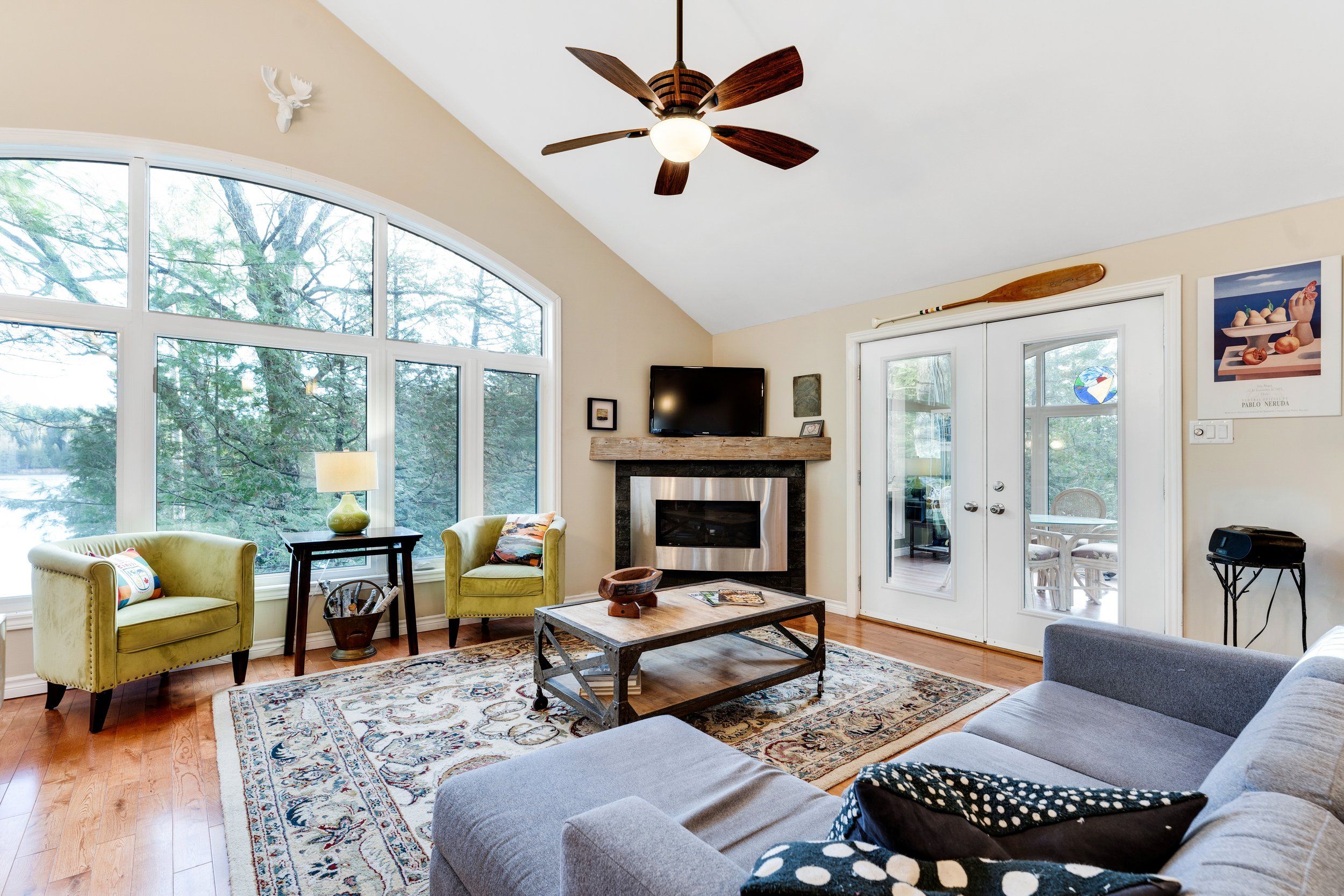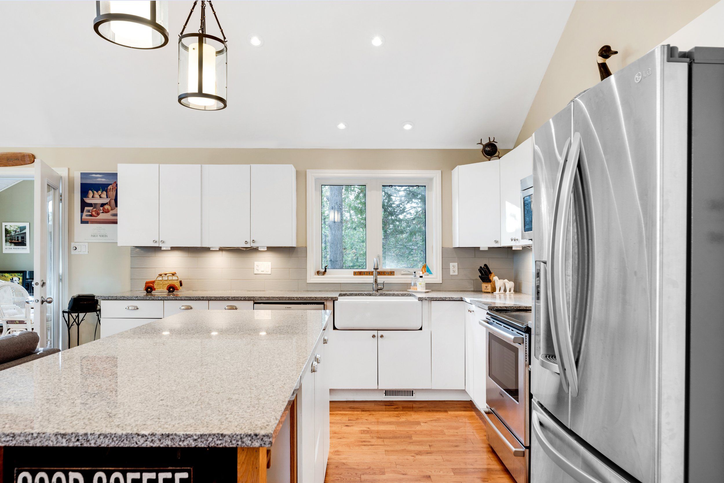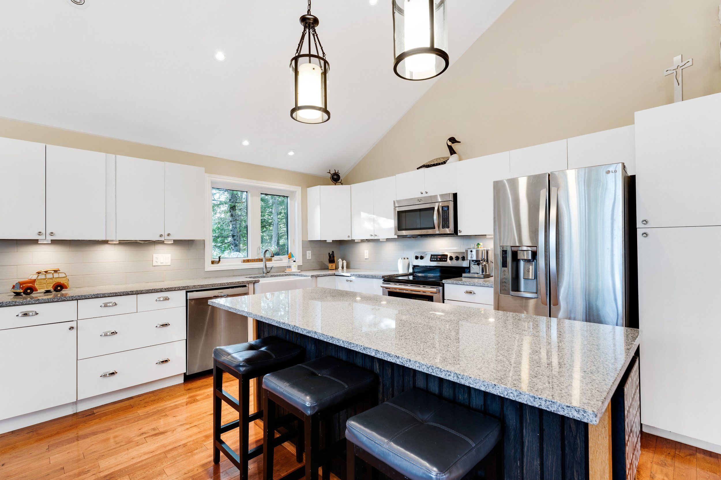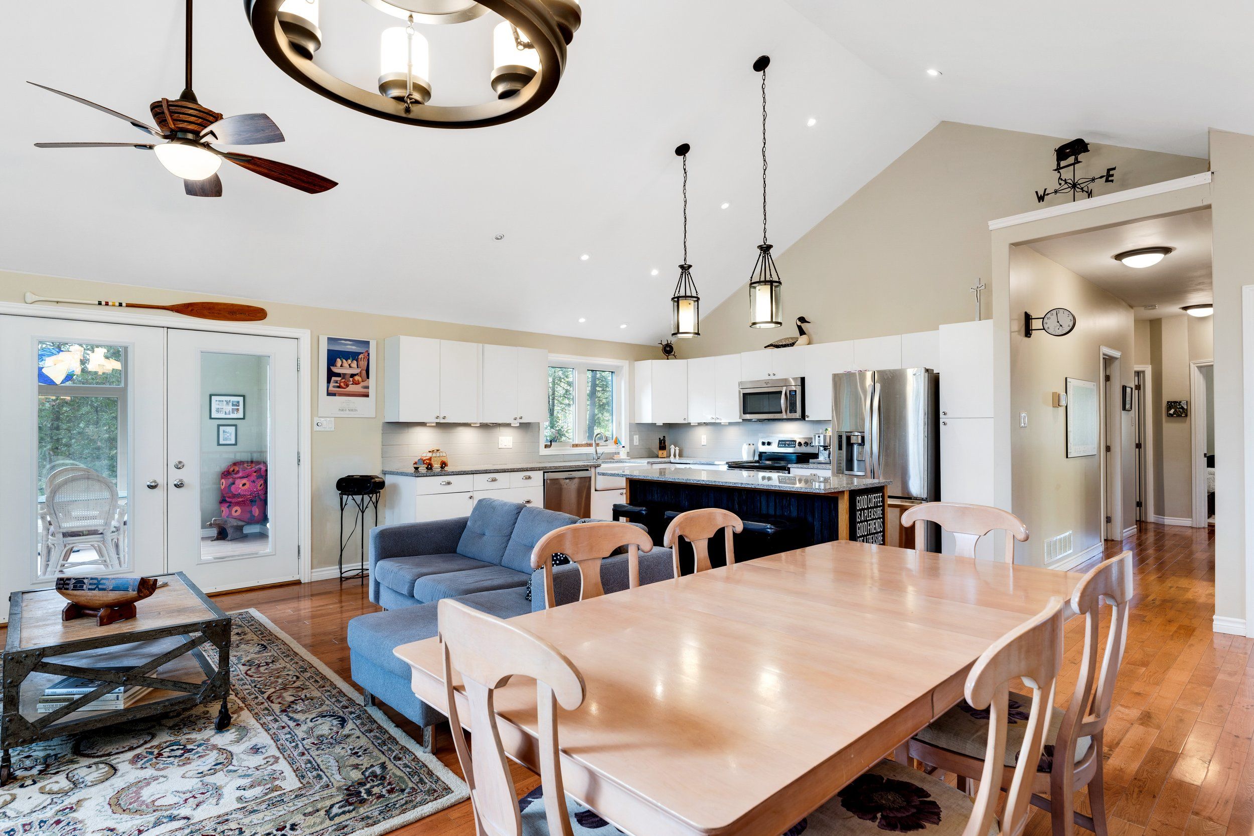 Merging the luxury of a stunning, four-season residence with the quintessential charm of a waterfront retreat, this 1.2-acre property-meticulously renovated in 2016-is sure to impress. Boasting 158 feet of Mississippi River frontage and adjacent to Palmerston Highlands Island, the home is easily accessible via a year-round, fully serviced municipal road. (Bridge to left of cottage leads to a private island, Palmerston Highlands Island). Rebuilt from the foundation up in 2016. The main level showcases an inviting open-concept Great Room anchored by a cozy propane fireplace, a chef-friendly kitchen featuring granite countertops, a center island, and stainless steel appliances, all set upon gleaming hardwood floors. Retreat to the primary suite, which offers a private 3-piece ensuite and dual closets, alongside two additional spacious bedrooms and a full family bathroom. Outdoor living is effortless: savour meals in the river-view screened porch or host gatherings on the expansive deck equipped with a gas BBQ hook-up. Guests will enjoy total privacy thanks to a fourth bedroom on the lower level and a charming bunkie that sleeps three. For recreation: swim from the dock or launch your canoe, kayak or seadoo from the 2-slip dock; enjoy ghost stories by the firepit; or let the kids blow off some steam at the play structure. The Snow Road Snowmobile Club and Snow Road Community hall offer community recreation as well. Don't miss out on summer on the Mississippi!