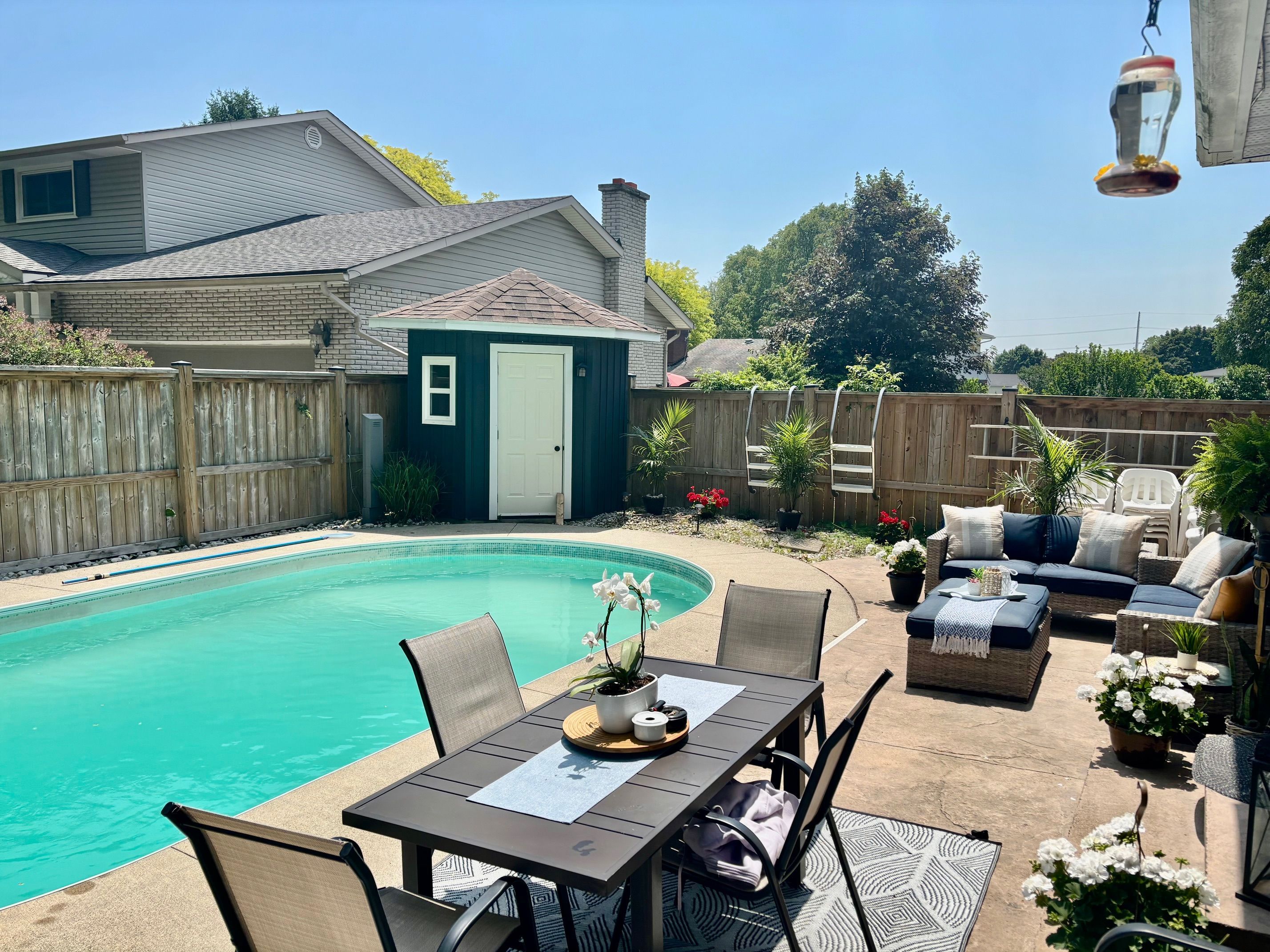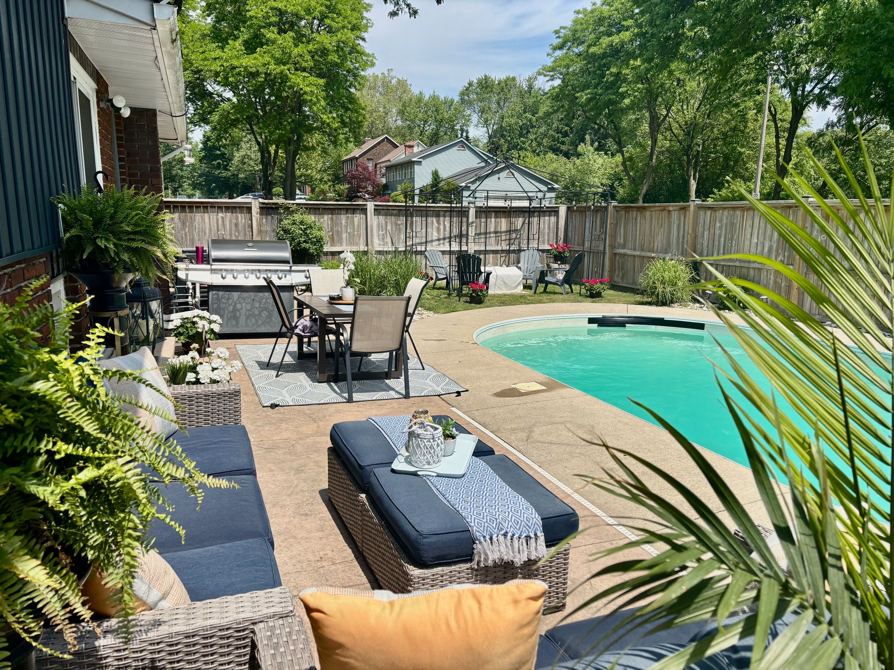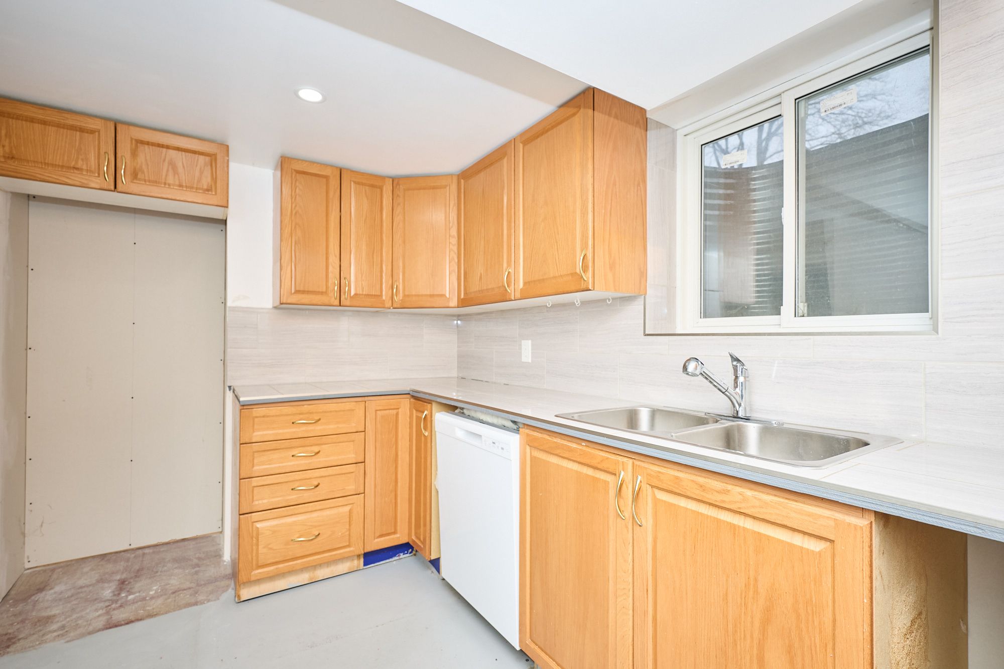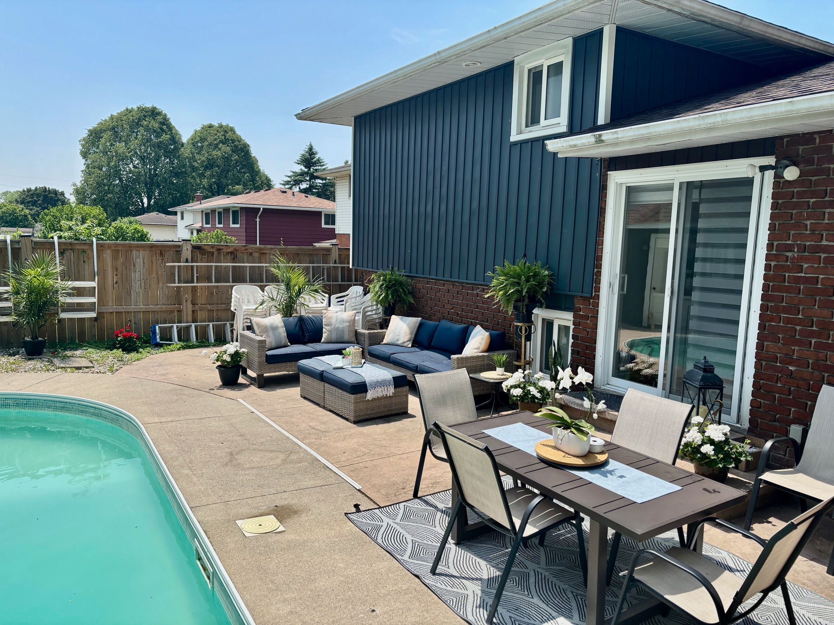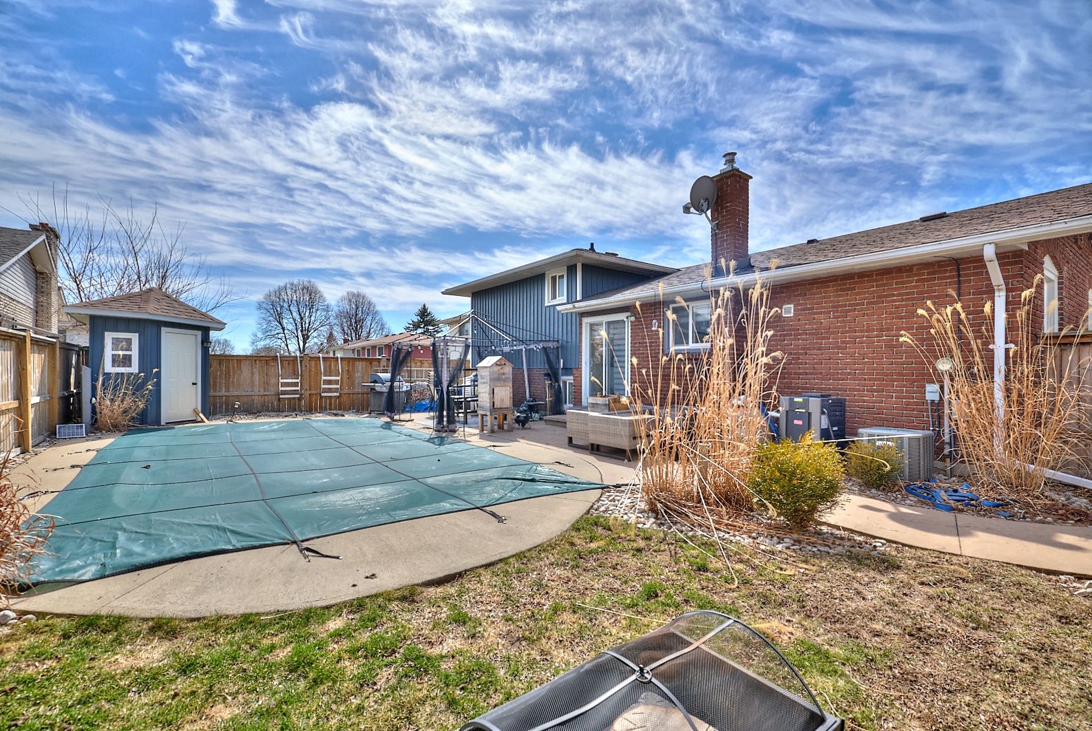 Welcome to this exceptional home with an in-law, inground pool & double garage located on a corner lot in a quiet, mature neighborhood. This spacious 3+2 bedroom, 2 bathroom home offers versatile living space suitable for families and multigenerational living. The main floor features an open-concept living , an updated kitchen boasting a large island, quartz countertops, and plenty of cabinet space, making it ideal for cooking and entertaining. The walk-up lower level is designed as a self-contained in-law suite, complete with a private entrance. It includes a bright spacious living area with a fireplace, an updated bathroom and a bedroom. In the mostly finished basement level you'll find an another bedroom w/large egress window, 2nd kitchen, a 3 pc bathroom rough-in for you to finish off and plenty of storage. Outside, the backyard features a heated inground pool, perfect for relaxation and entertaining during warmer months. The property also includes a double garage with a portion sectioned off featuring a private entrance to the finished room which features a sink providing endless possibilities. This is house you'll want to call home. Roof was updated in 2012. Pool liner needs to be replaced. Property is being sold under Power of Sale. Sold "as is, where is".
