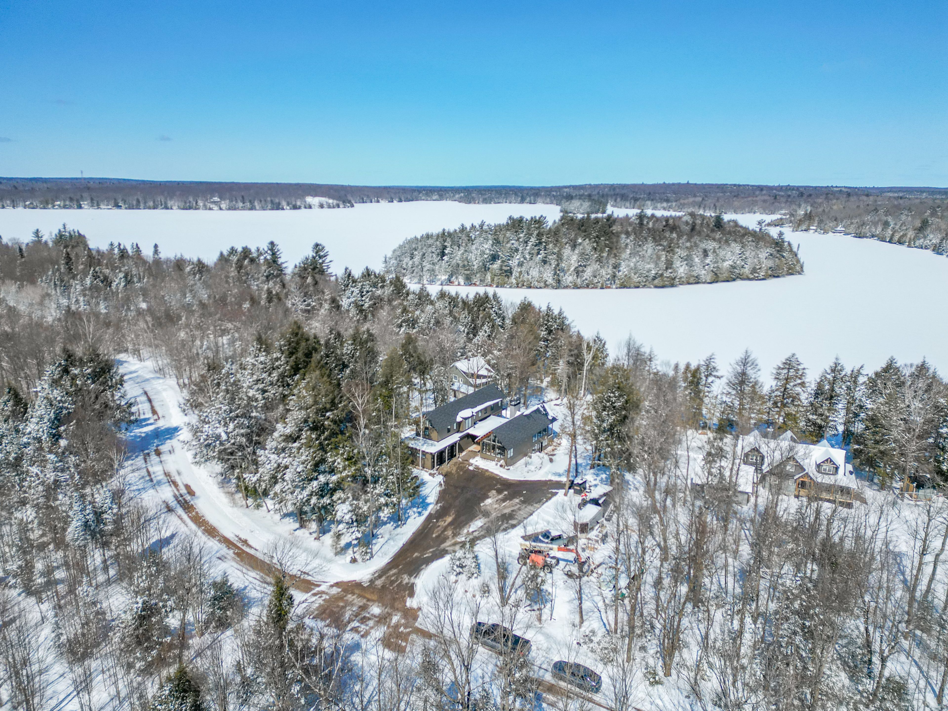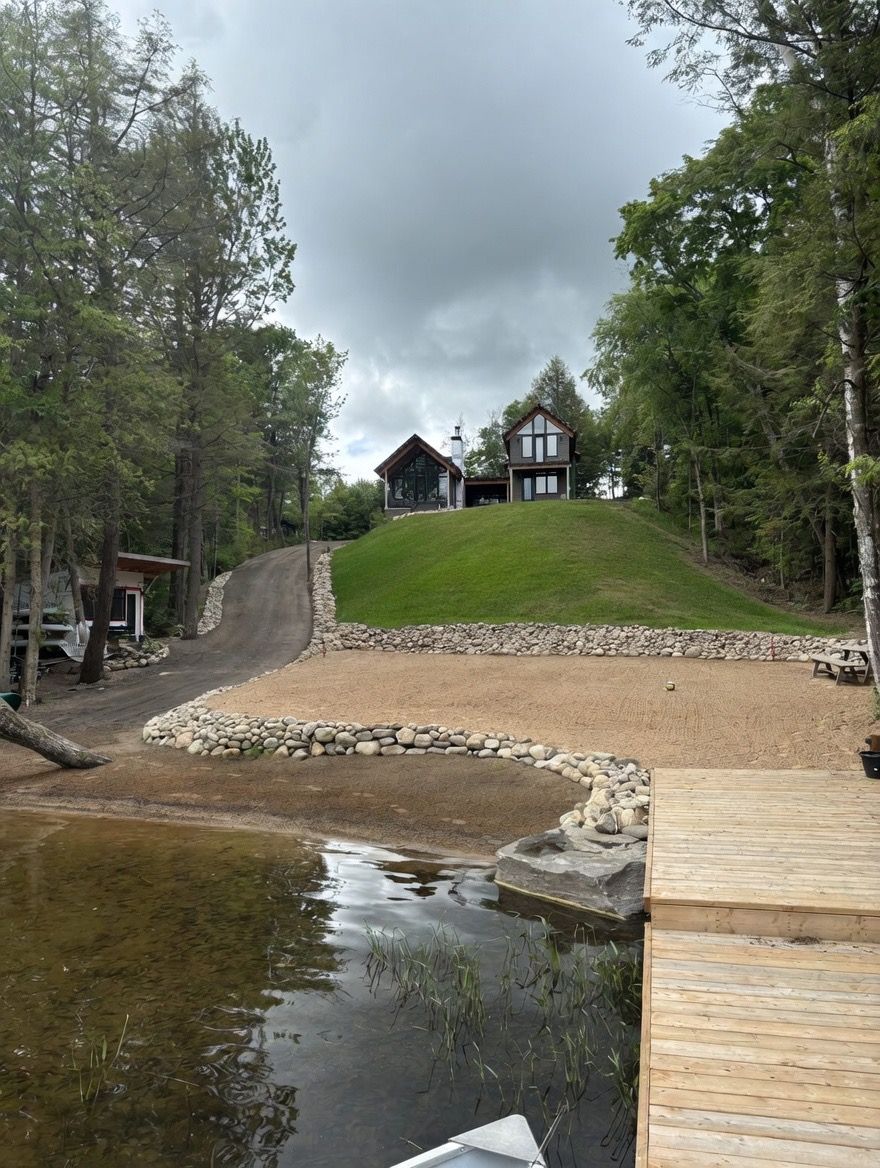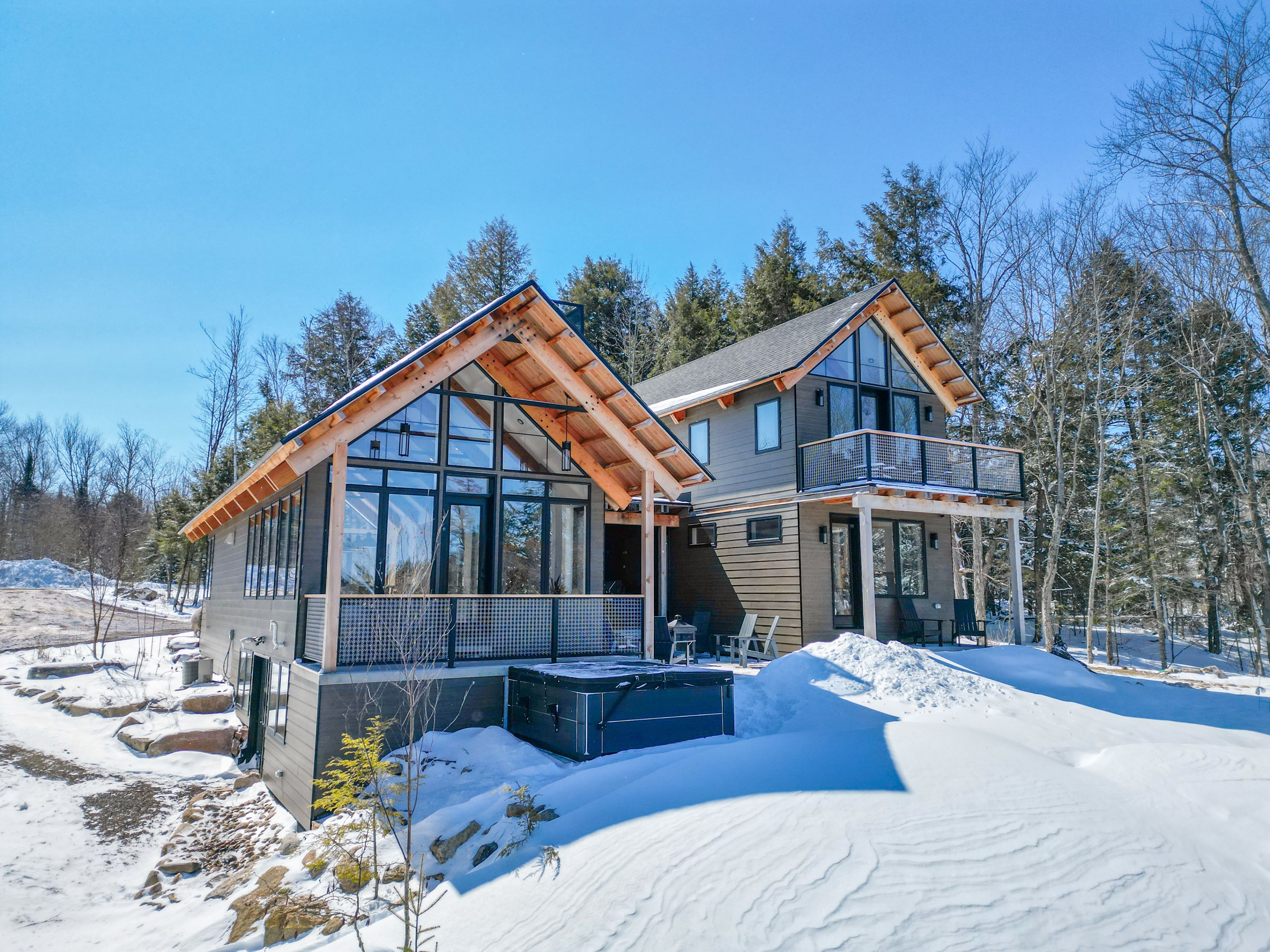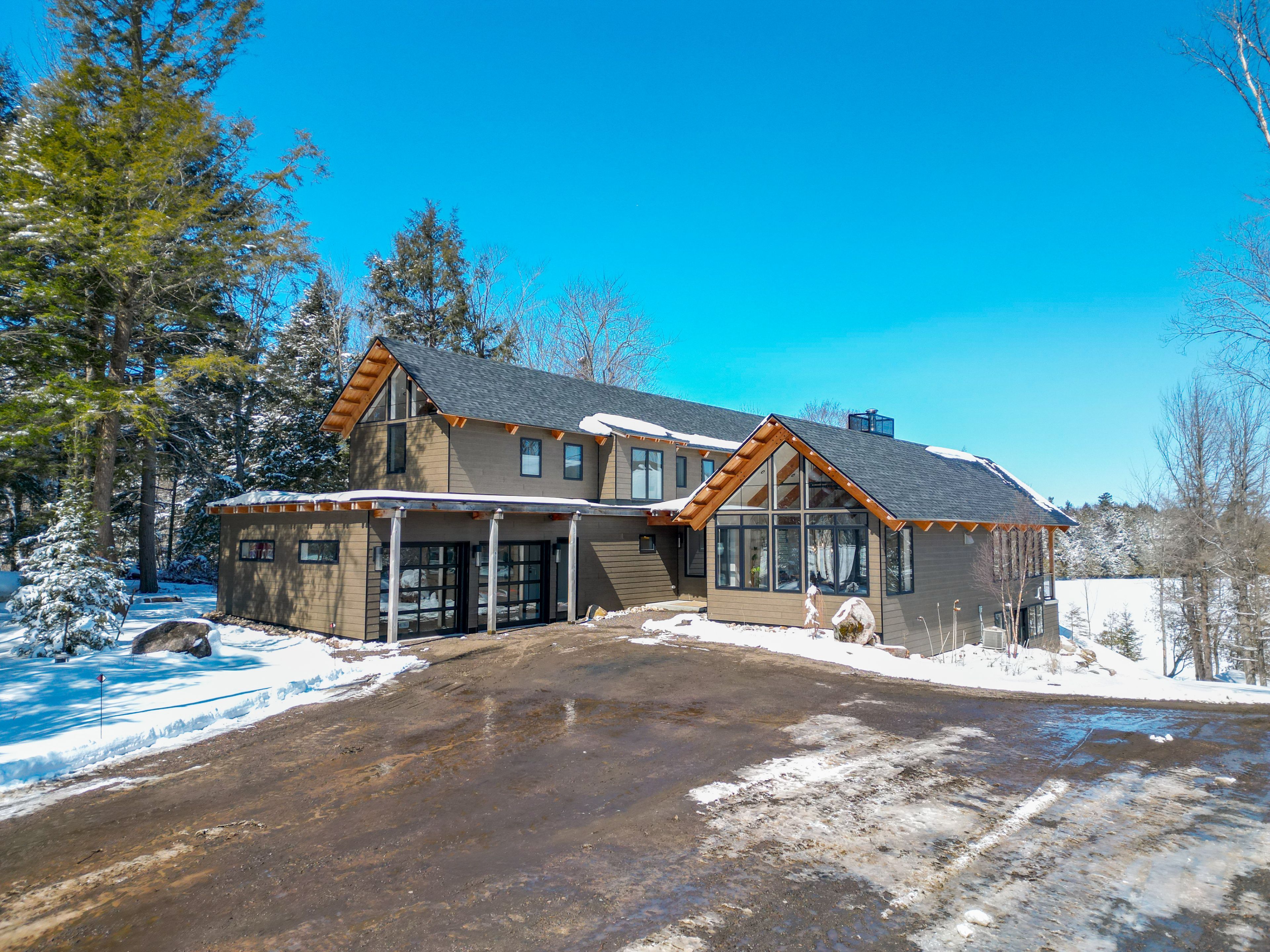 Custom Waterfront Luxury on 1 Acre - 5 Bed, 3 Bath. Experience exceptional craftsmanship and year round lakeside living in this custom built 5 bedroom, 3 bath waterfront home set on a beautifully landscaped 1 acre lot. Designed for comfort, efficiency, and unforgettable entertaining, this property blends rustic elegance with modern performance. Step into a breathtaking great room featuring soaring cathedral ceilings framed by striking Douglas Fir beams. A Napoleon wood burning factory fireplace with a large 50-pound firebox and zero gravity glass and screen creates a dramatic focal point and a warm, inviting atmosphere. NorthStar windows-backed by a lifetime warranty-flood the home with natural light and frame serene lake views. This home is equipped with central air, propane heat, and a wood boiler, offering efficient and flexible climate control year round. An ICF foundation ensures superior insulation and long term durability. A Generalink hook up adds peace of mind and convenience. Enjoy a gentle, sandy entrance into the lake-perfect for swimming, wading, and family fun. The private dock offers 5 ft of depth at the end, ideal for boating and water toys. A covered 16' x 16' concrete patio extends your living space outdoors, while the driveway continues all the way to the water, allowing you to launch your boat with ease. Relax under the stars in your brand new saltwater hot tub, positioned to take in the tranquil waterfront setting. A large heated garage provides ample room for vehicles, tools, recreational gear, or a workshop-perfect for hobbyists or those needing extra space. Situated on a year round maintained road, this property offers the rare combination of privacy, convenience, and four season accessibility.