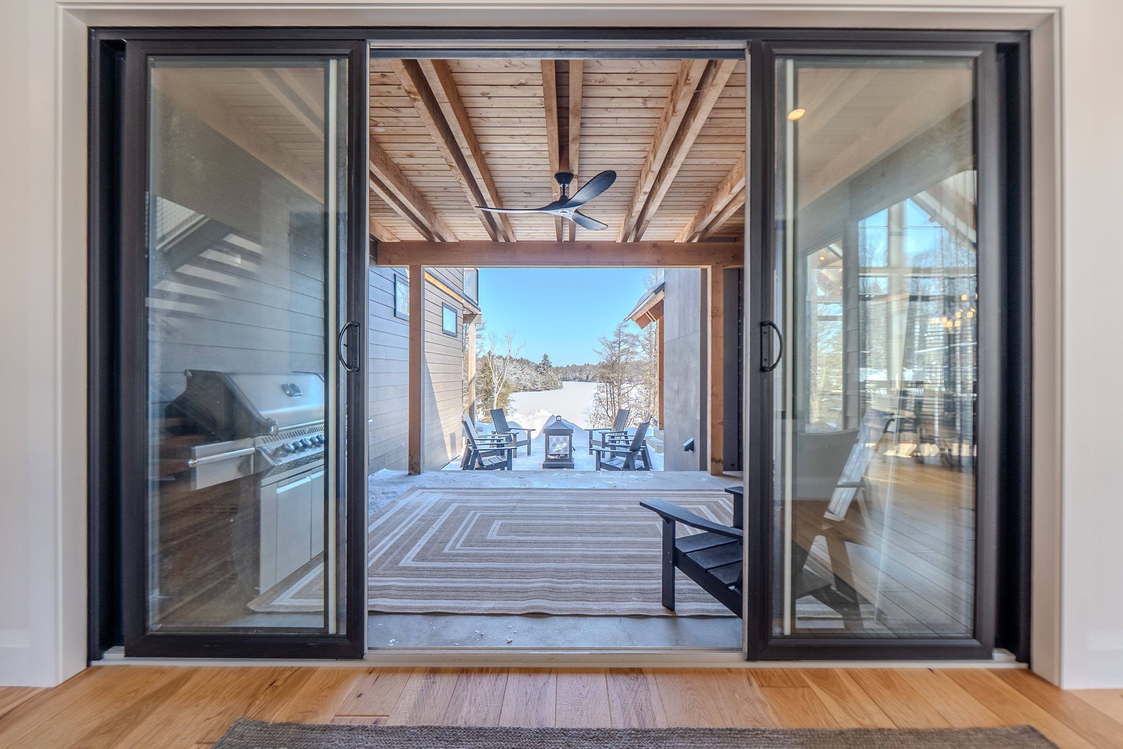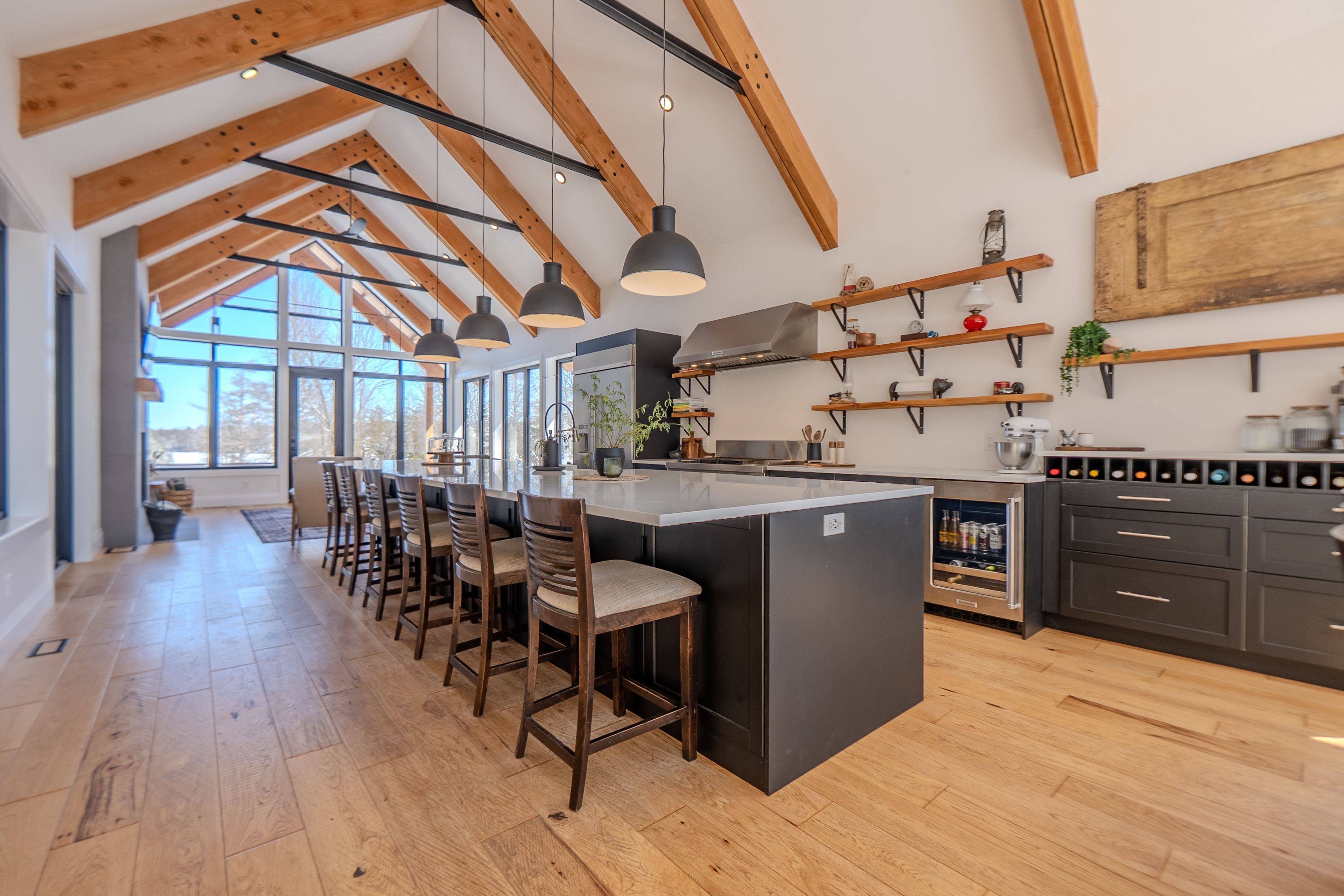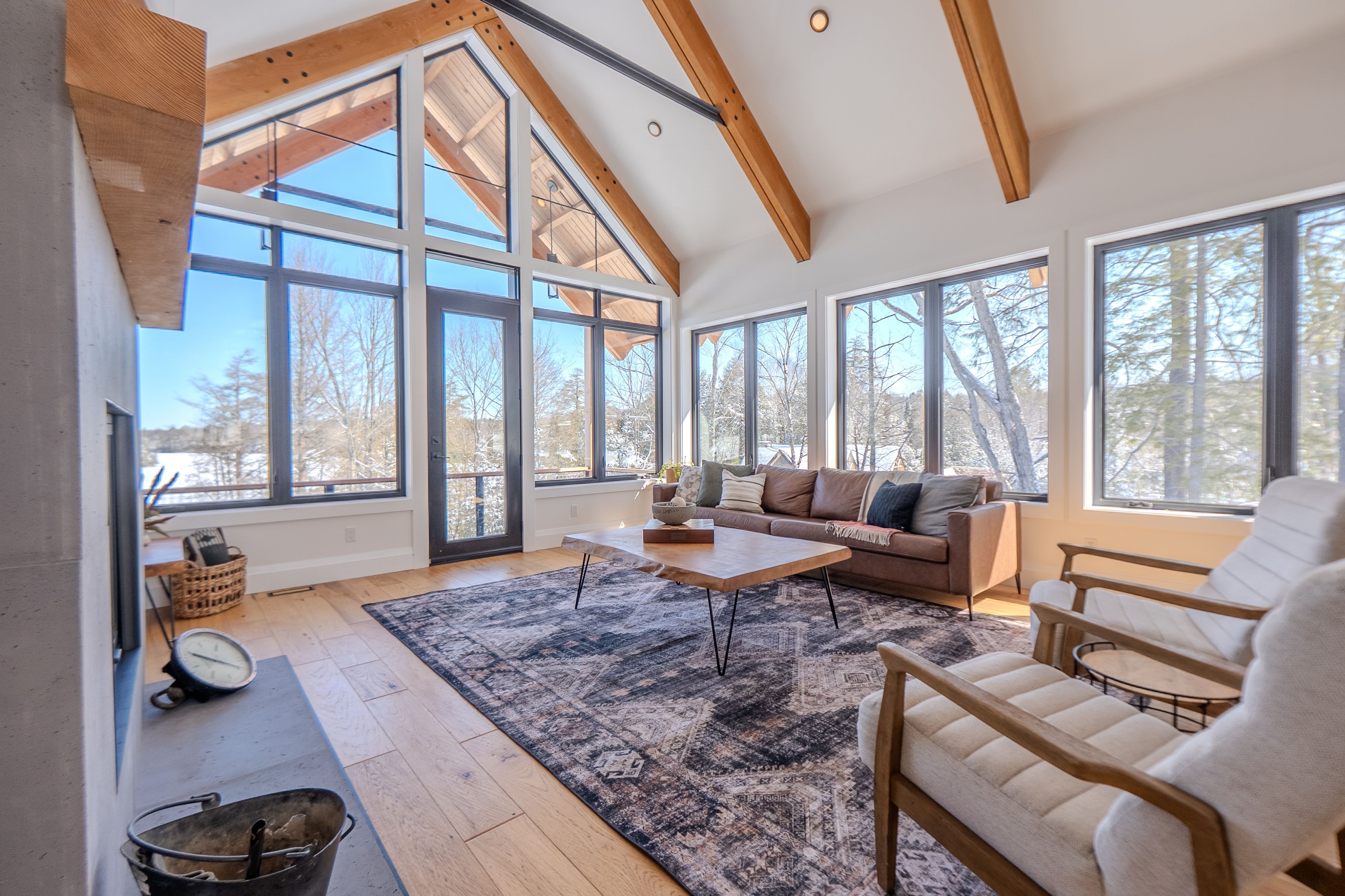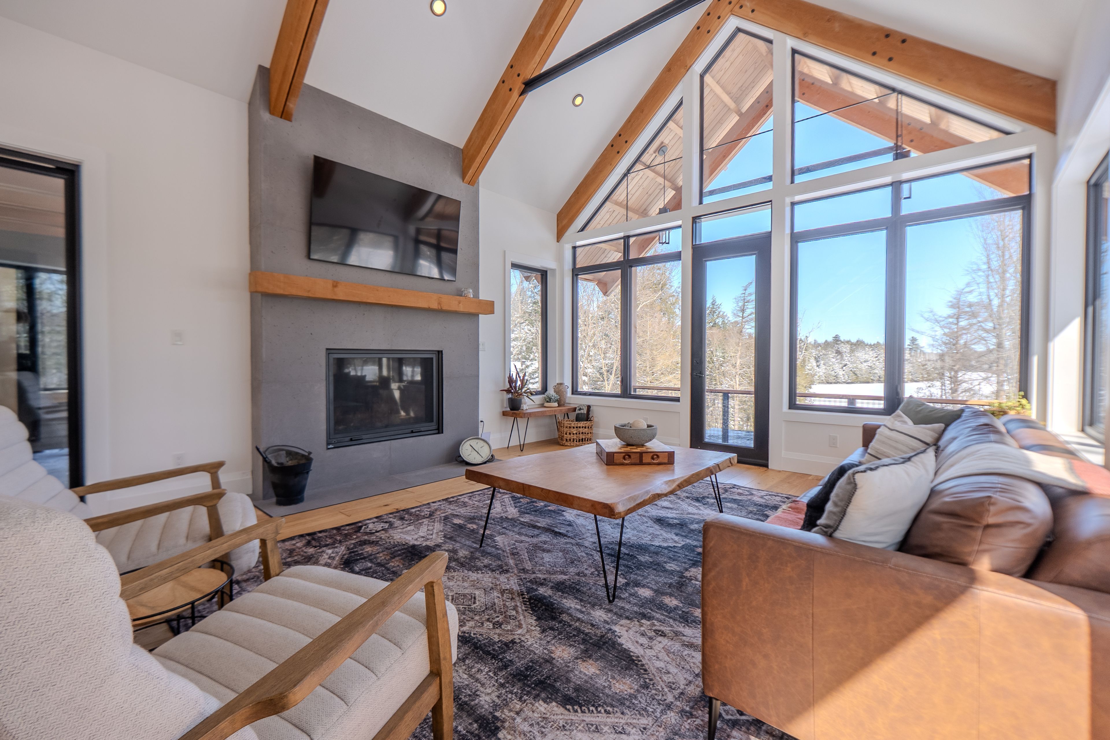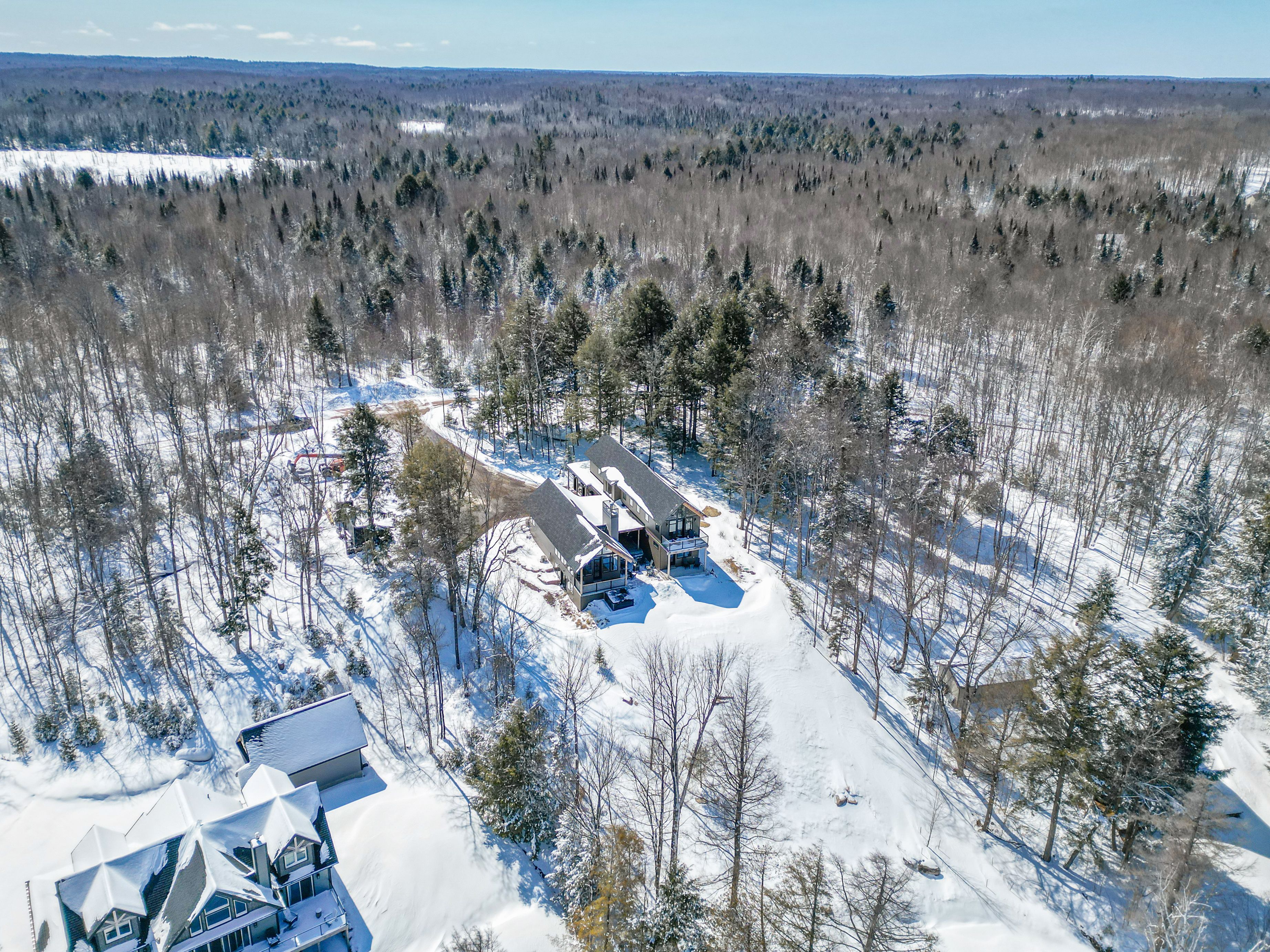 Custom Waterfront Luxury on 1 Acre - 5 Bed, 3 Bath. Experience exceptional craftsmanship and year round lakeside living in this custom built 5 bedroom, 3 bath waterfront home set on a beautifully landscaped 1 acre lot. Designed for comfort, efficiency, and unforgettable entertaining, this property blends rustic elegance with modern performance. Step into a breathtaking great room featuring soaring cathedral ceilings framed by striking Douglas Fir beams. A Napoleon wood burning factory fireplace with a large 50-pound firebox and zero gravity glass and screen creates a dramatic focal point and a warm, inviting atmosphere. NorthStar windows-backed by a lifetime warranty-flood the home with natural light and frame serene lake views. This home is equipped with central air, propane heat, and a wood boiler, offering efficient and flexible climate control year round. An ICF foundation ensures superior insulation and long term durability. A Generalink hook up adds peace of mind and convenience. Enjoy a gentle, sandy entrance into the lake-perfect for swimming, wading, and family fun. The private dock offers 5 ft of depth at the end, ideal for boating and water toys. A covered 16' x 16' concrete patio extends your living space outdoors, while the driveway continues all the way to the water, allowing you to launch your boat with ease. Relax under the stars in your brand new saltwater hot tub, positioned to take in the tranquil waterfront setting. A large heated garage provides ample room for vehicles, tools, recreational gear, or a workshop-perfect for hobbyists or those needing extra space. Situated on a year round maintained road, this property offers the rare combination of privacy, convenience, and four season accessibility.