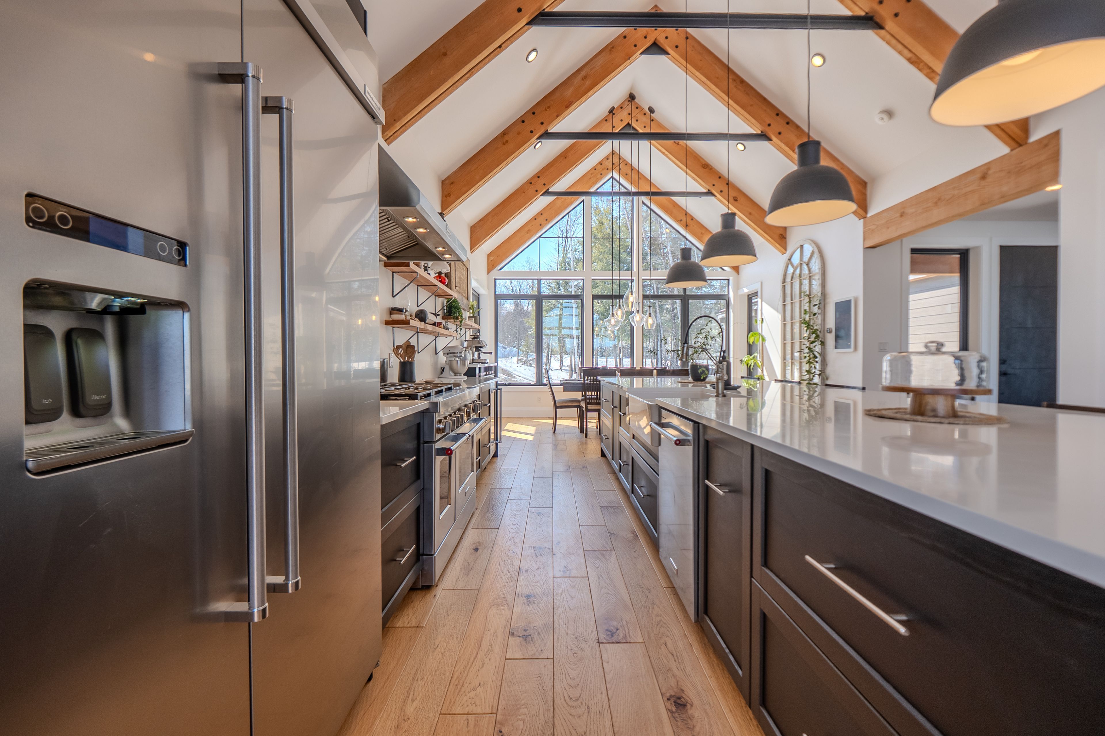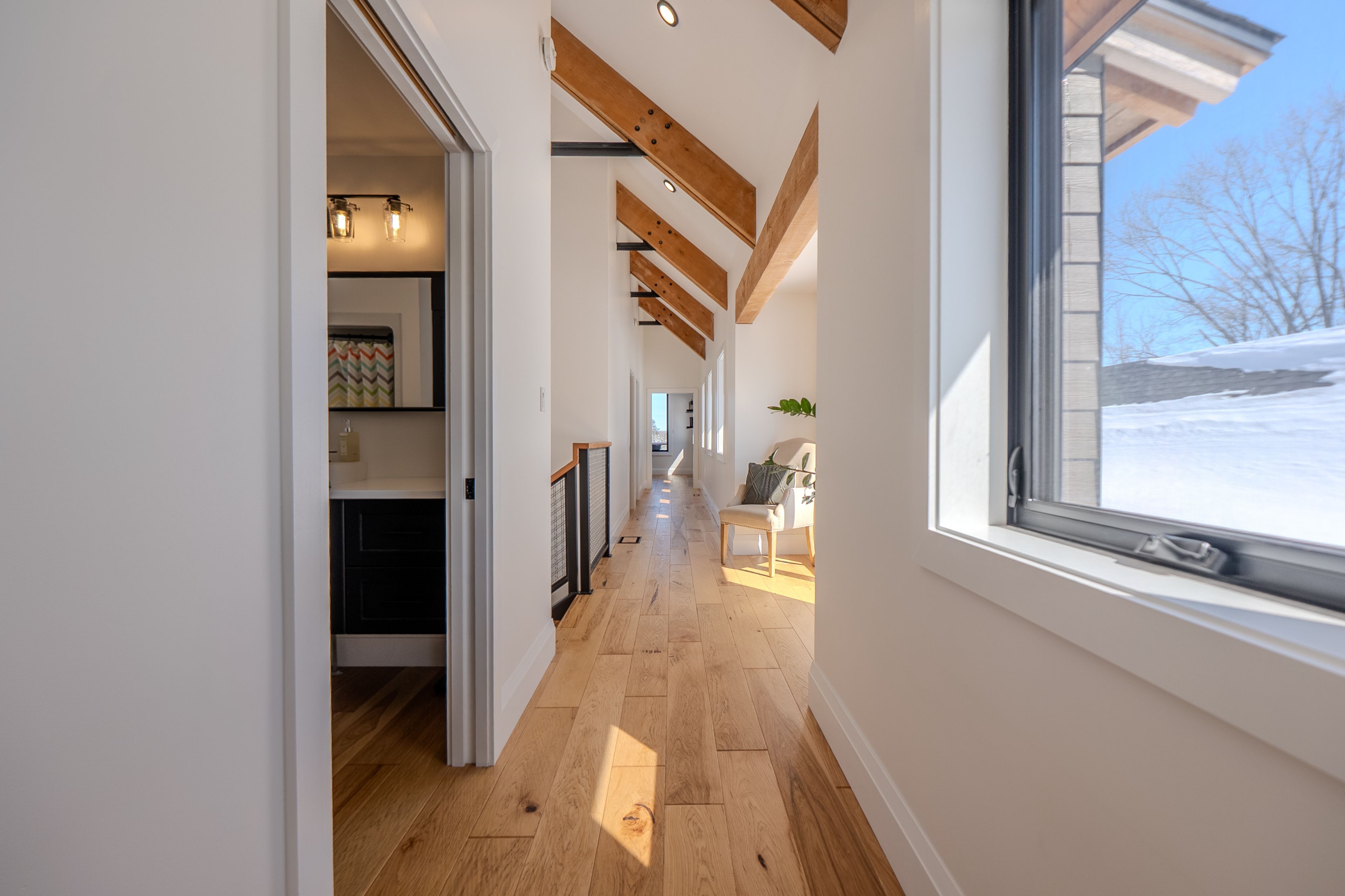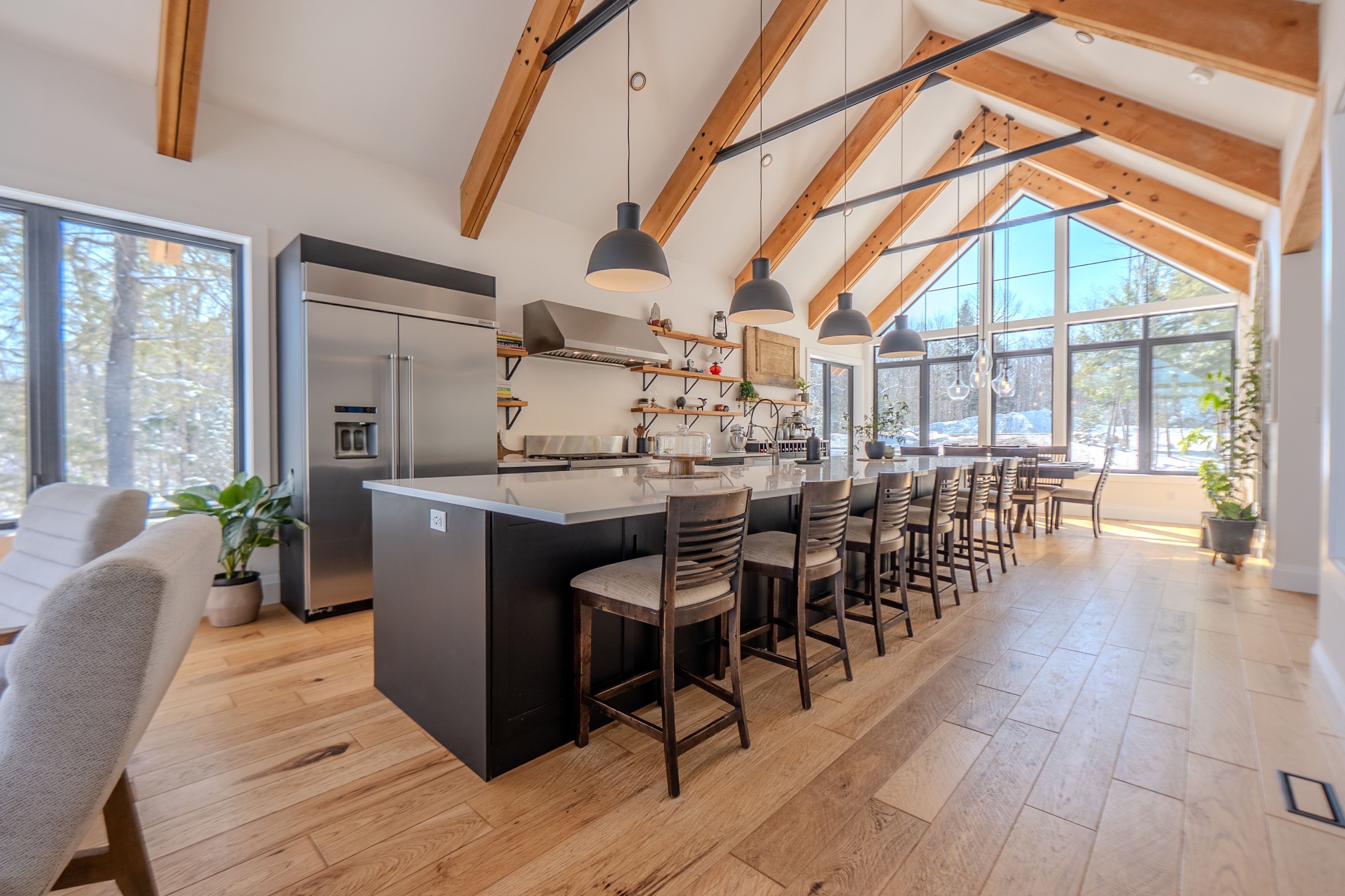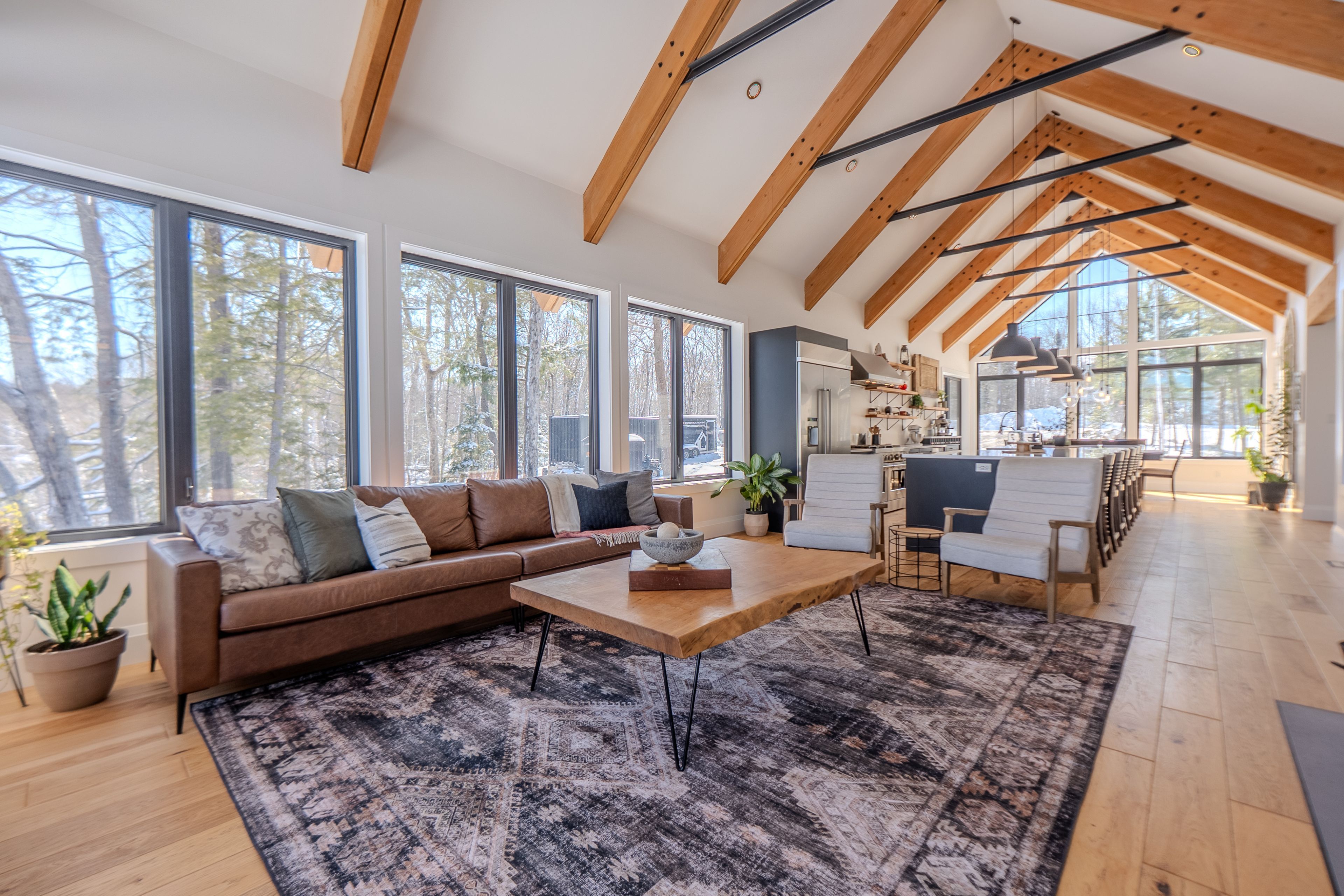 Custom Waterfront Luxury on 1 Acre - 5 Bed, 3 Bath. Experience exceptional craftsmanship and year round lakeside living in this custom built 5 bedroom, 3 bath waterfront home set on a beautifully landscaped 1 acre lot. Designed for comfort, efficiency, and unforgettable entertaining, this property blends rustic elegance with modern performance. Step into a breathtaking great room featuring soaring cathedral ceilings framed by striking Douglas Fir beams. A Napoleon wood burning factory fireplace with a large 50-pound firebox and zero gravity glass and screen creates a dramatic focal point and a warm, inviting atmosphere. NorthStar windows-backed by a lifetime warranty-flood the home with natural light and frame serene lake views. This home is equipped with central air, propane heat, and a wood boiler, offering efficient and flexible climate control year round. An ICF foundation ensures superior insulation and long term durability. A Generalink hook up adds peace of mind and convenience. Enjoy a gentle, sandy entrance into the lake-perfect for swimming, wading, and family fun. The private dock offers 5 ft of depth at the end, ideal for boating and water toys. A covered 16' x 16' concrete patio extends your living space outdoors, while the driveway continues all the way to the water, allowing you to launch your boat with ease. Relax under the stars in your brand new saltwater hot tub, positioned to take in the tranquil waterfront setting. A large heated garage provides ample room for vehicles, tools, recreational gear, or a workshop-perfect for hobbyists or those needing extra space. Situated on a year round maintained road, this property offers the rare combination of privacy, convenience, and four season accessibility.